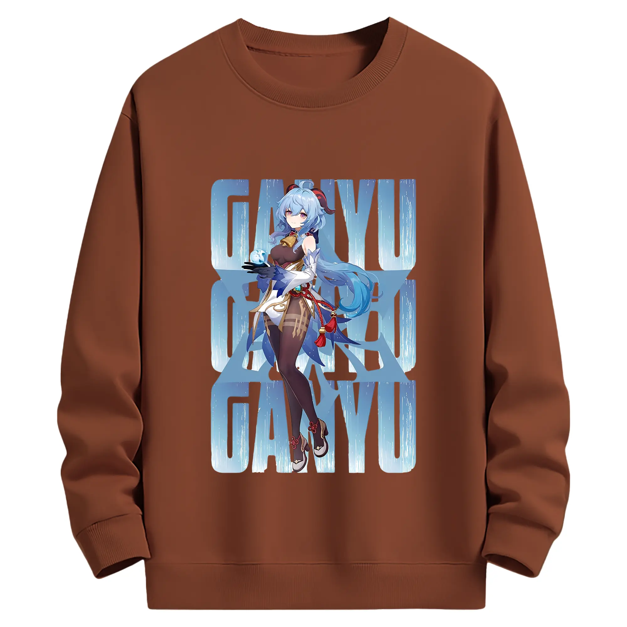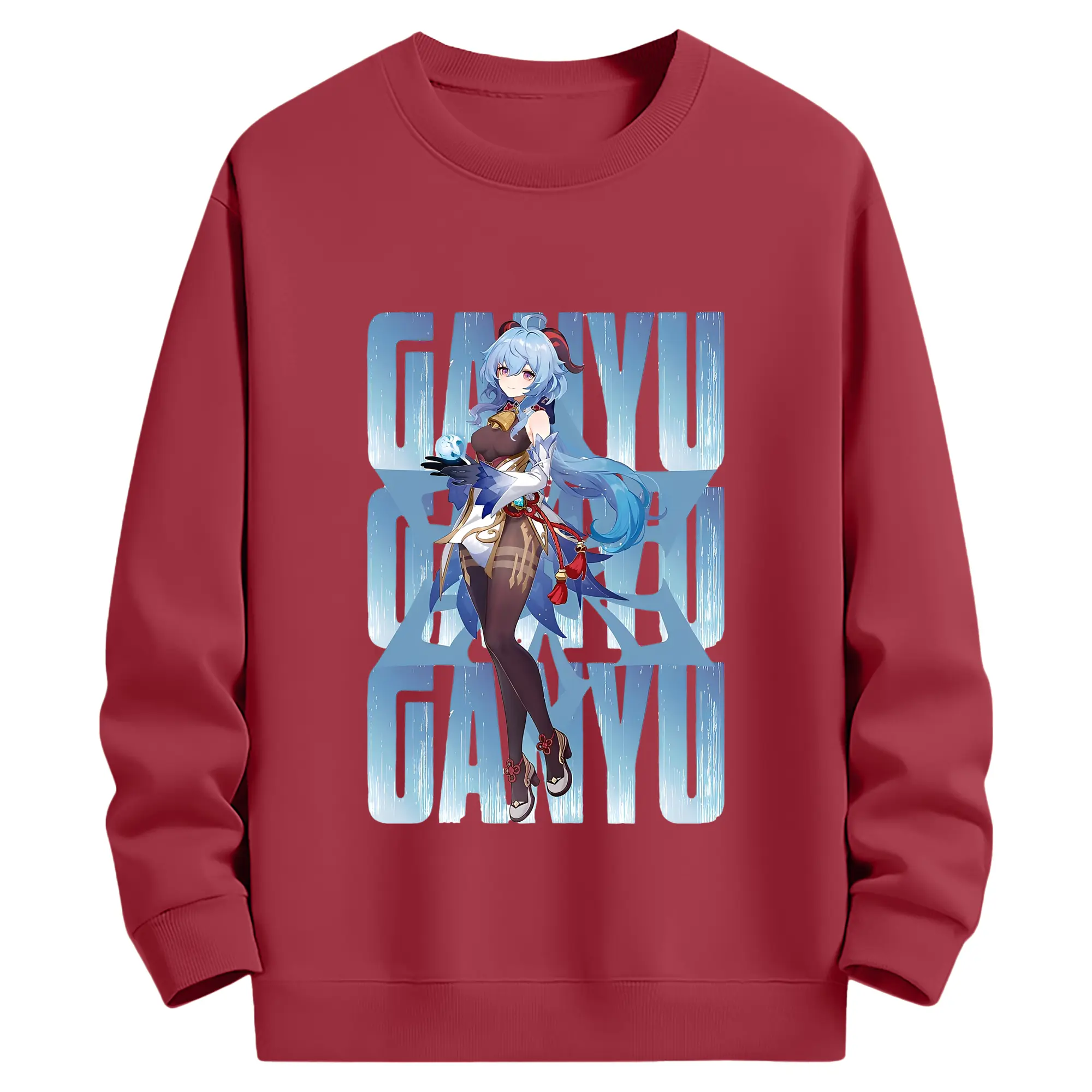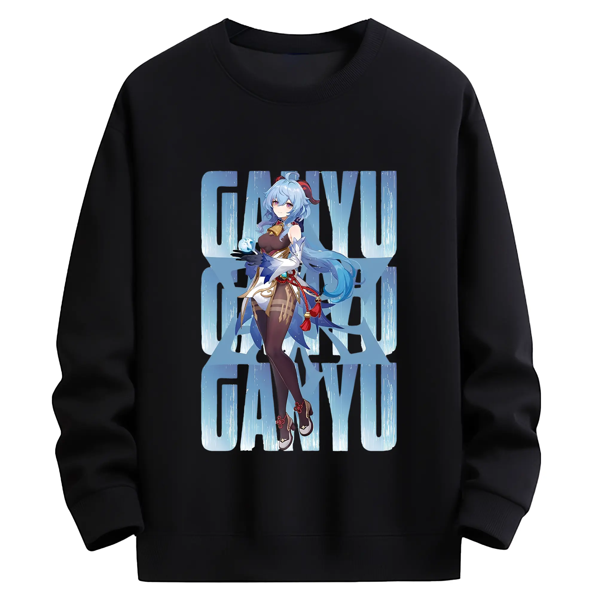 原神 甘雨 クリーンデザイン ファッション 原宿系 - 綿100% 半袖Tシャツ ・ フロントプリント ・ 快適 通気性 ・ 日常使い 散歩 スポーツ用