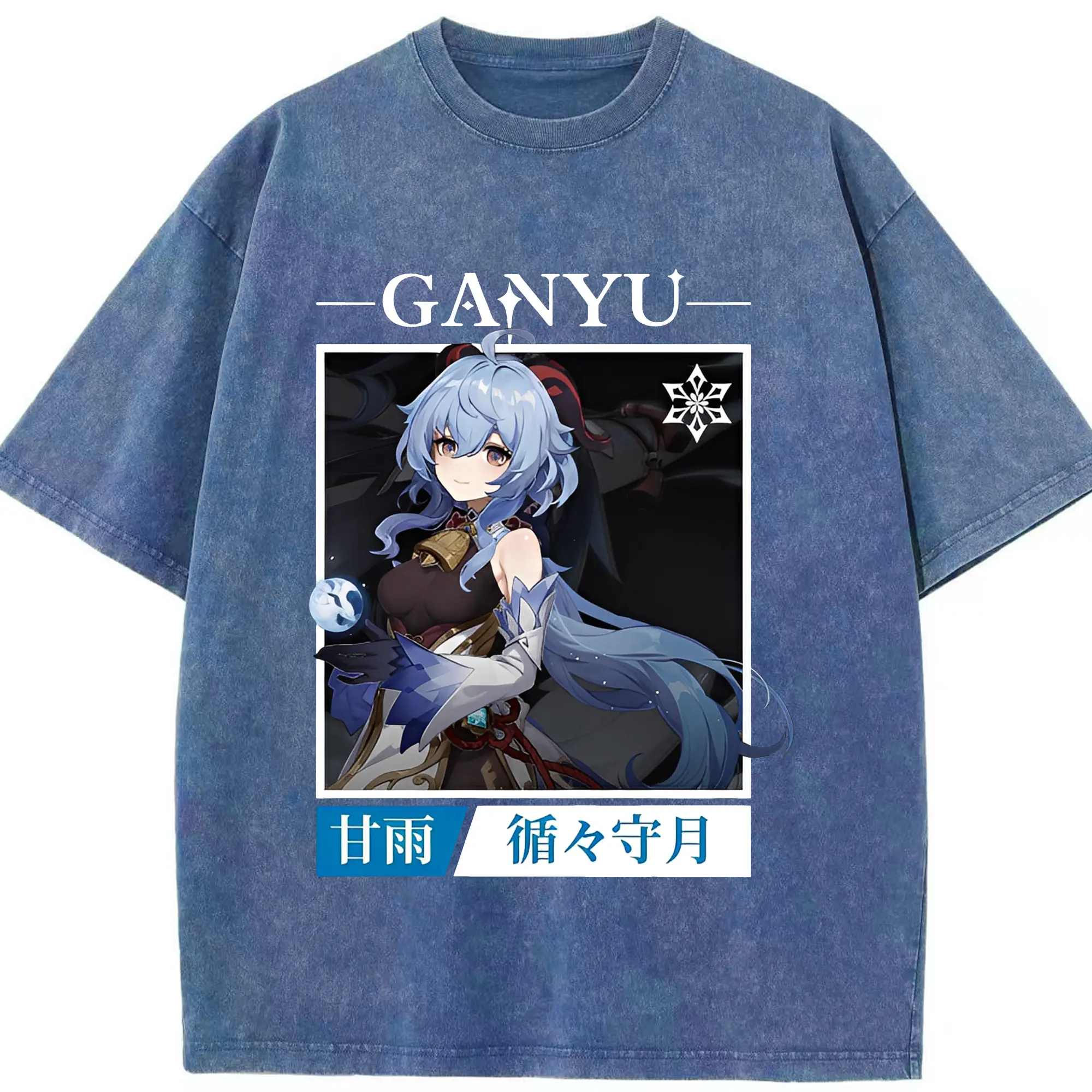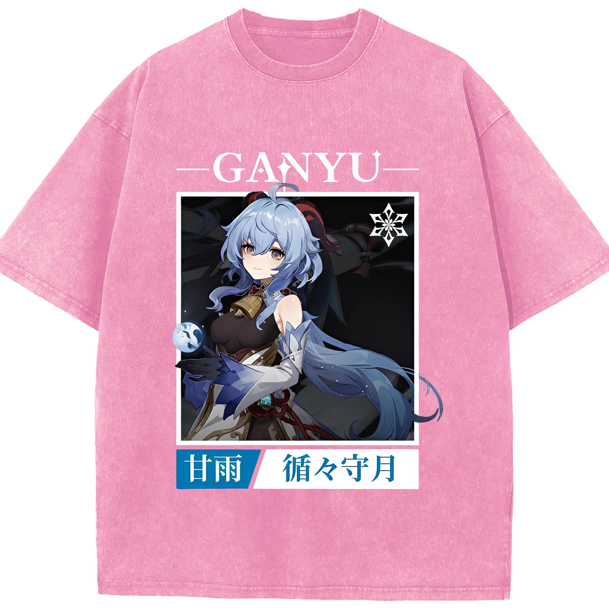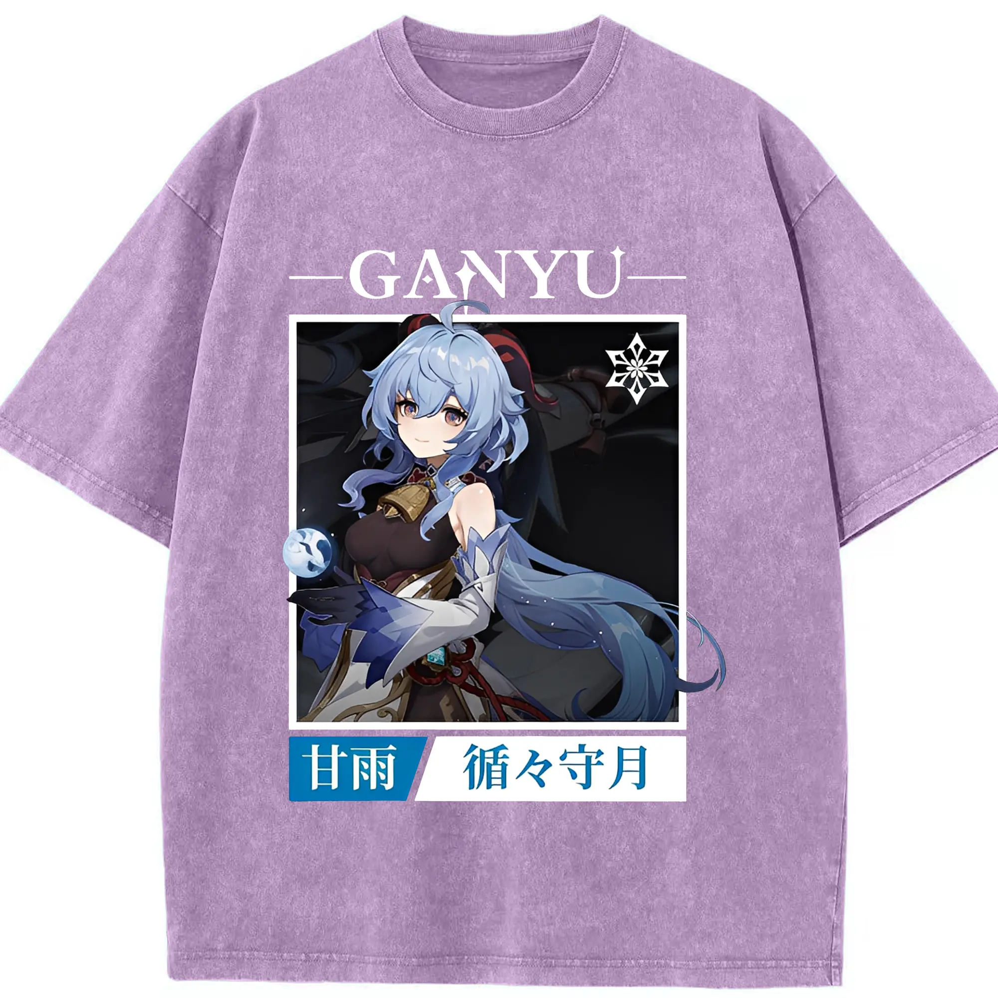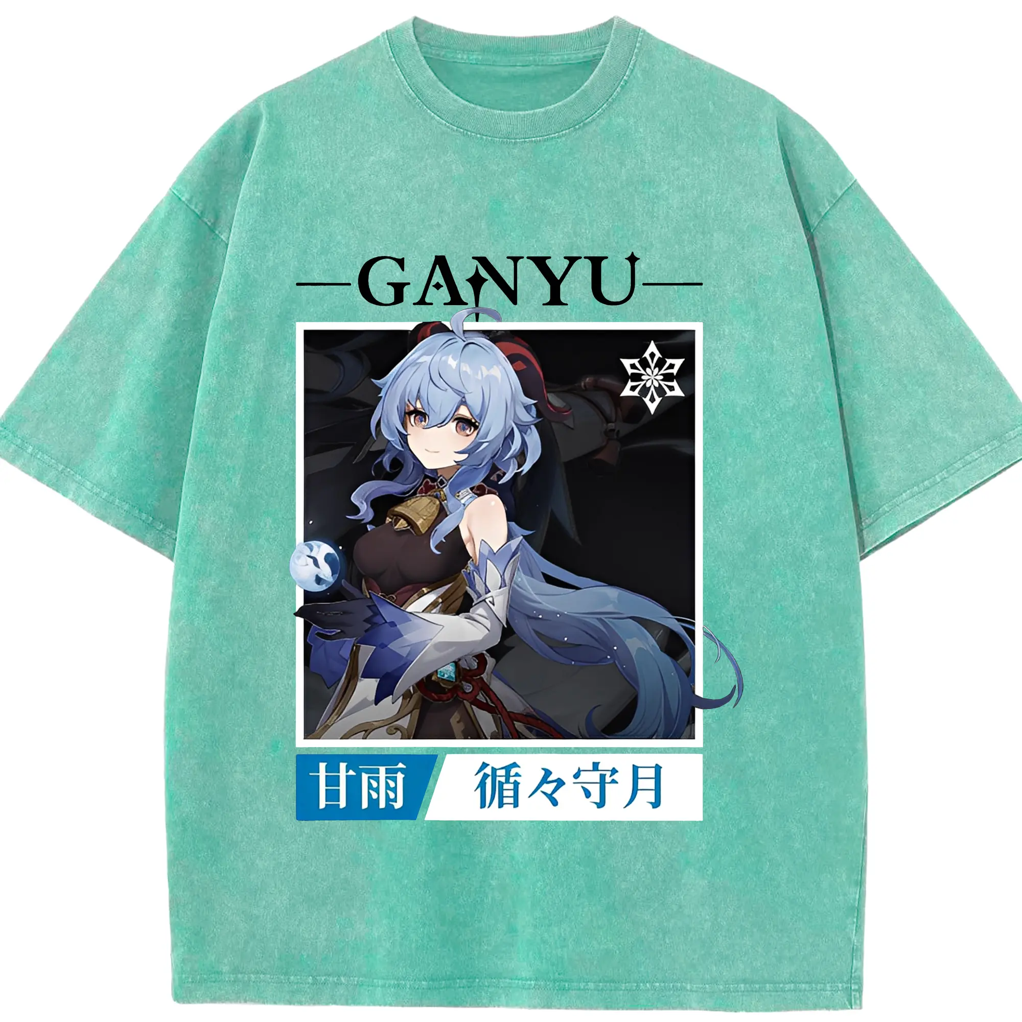 原神 甘雨 人気キャラクター 限定デザイン【2025新作】 - 綿100% 半袖Tシャツ ・ フロントプリント ・ 快適 通気性 ・ 日常使い 散歩 スポーツ用