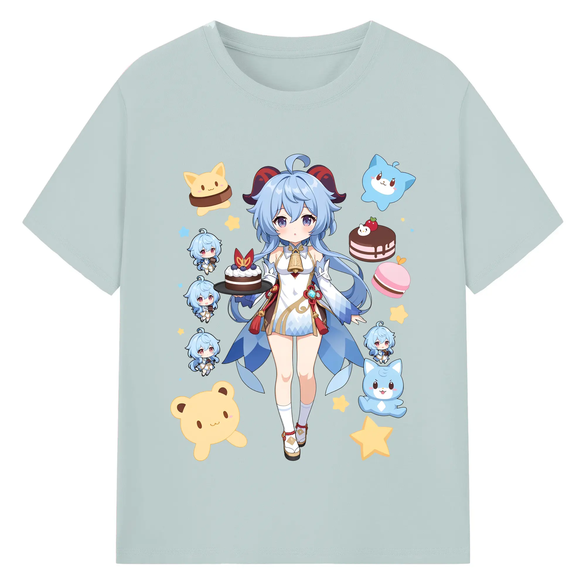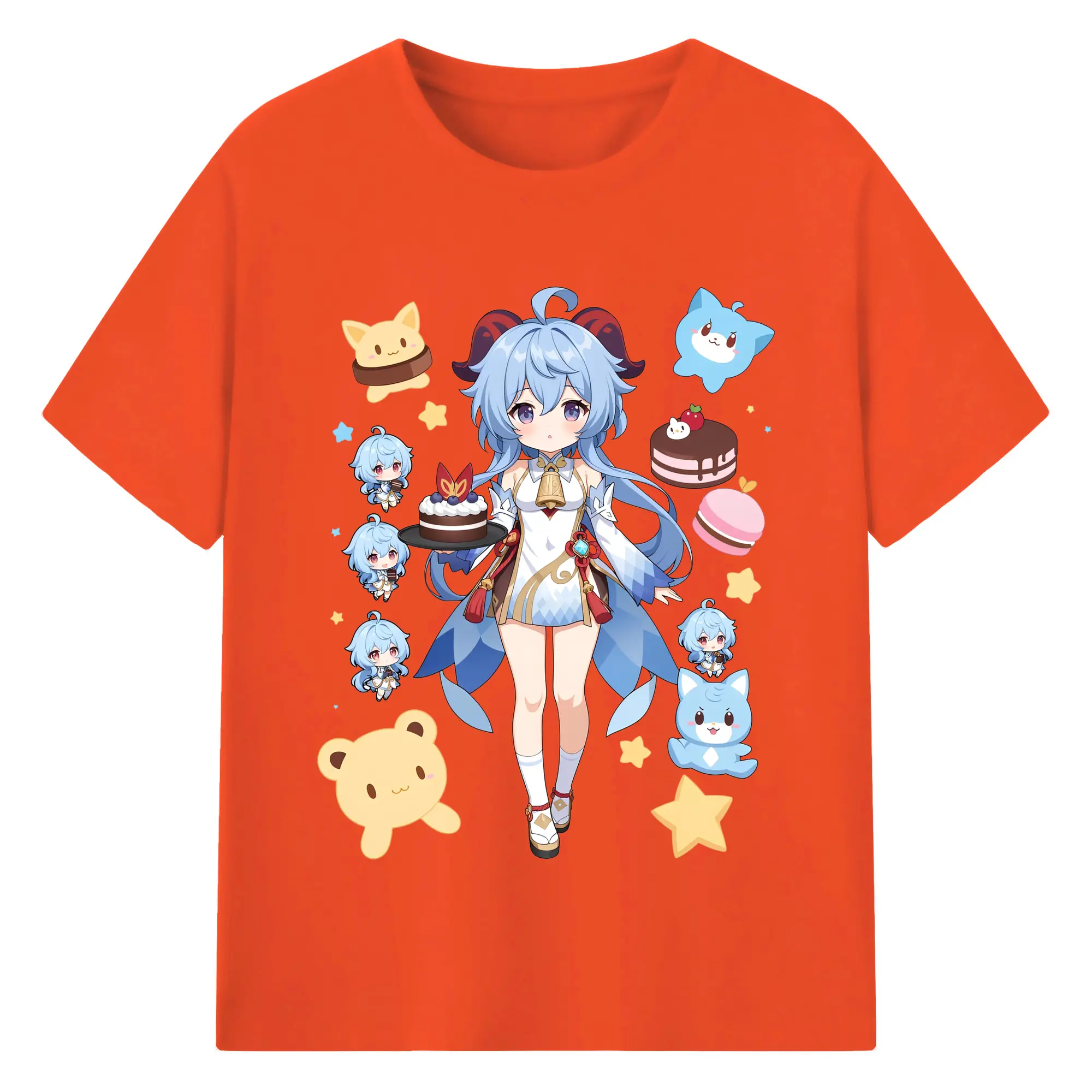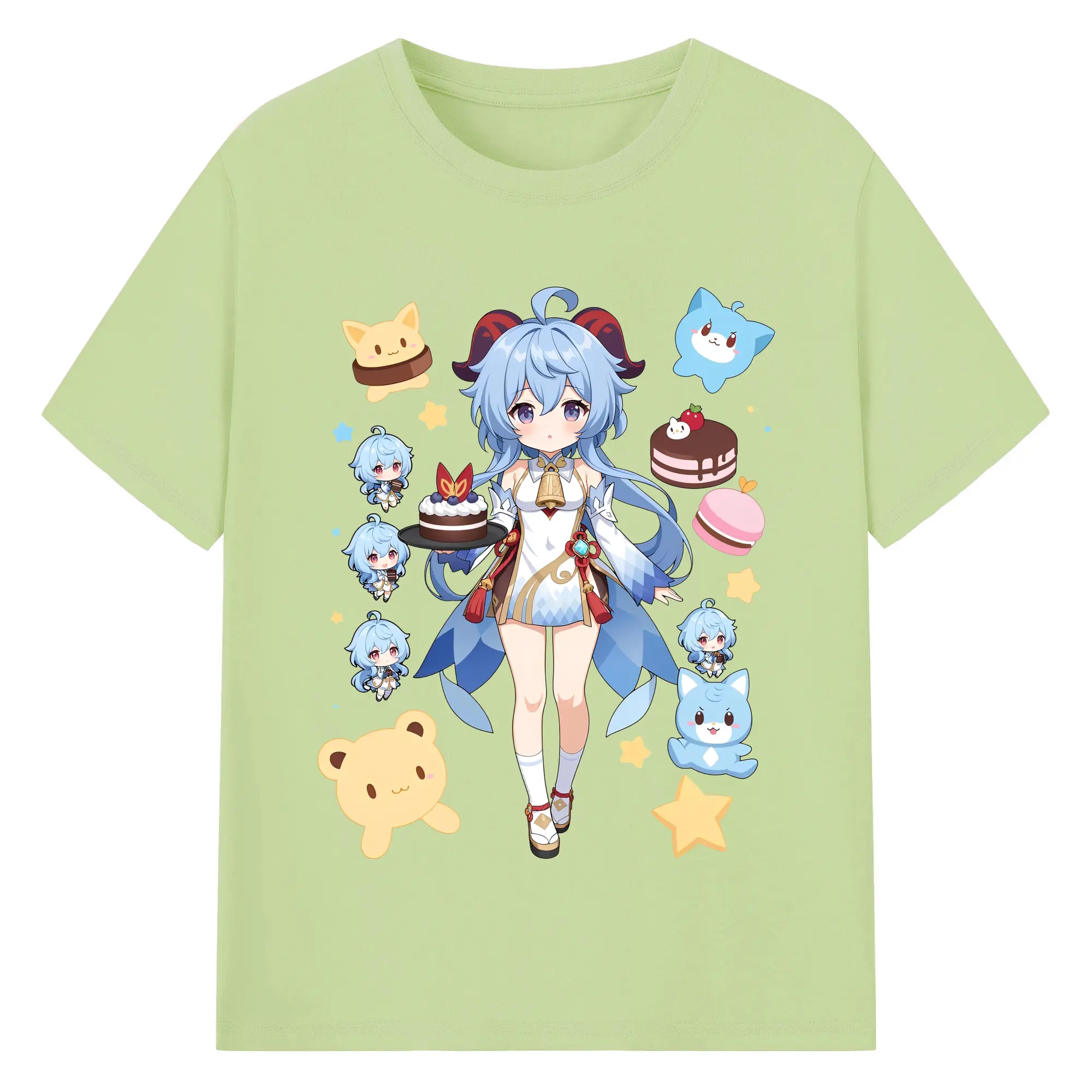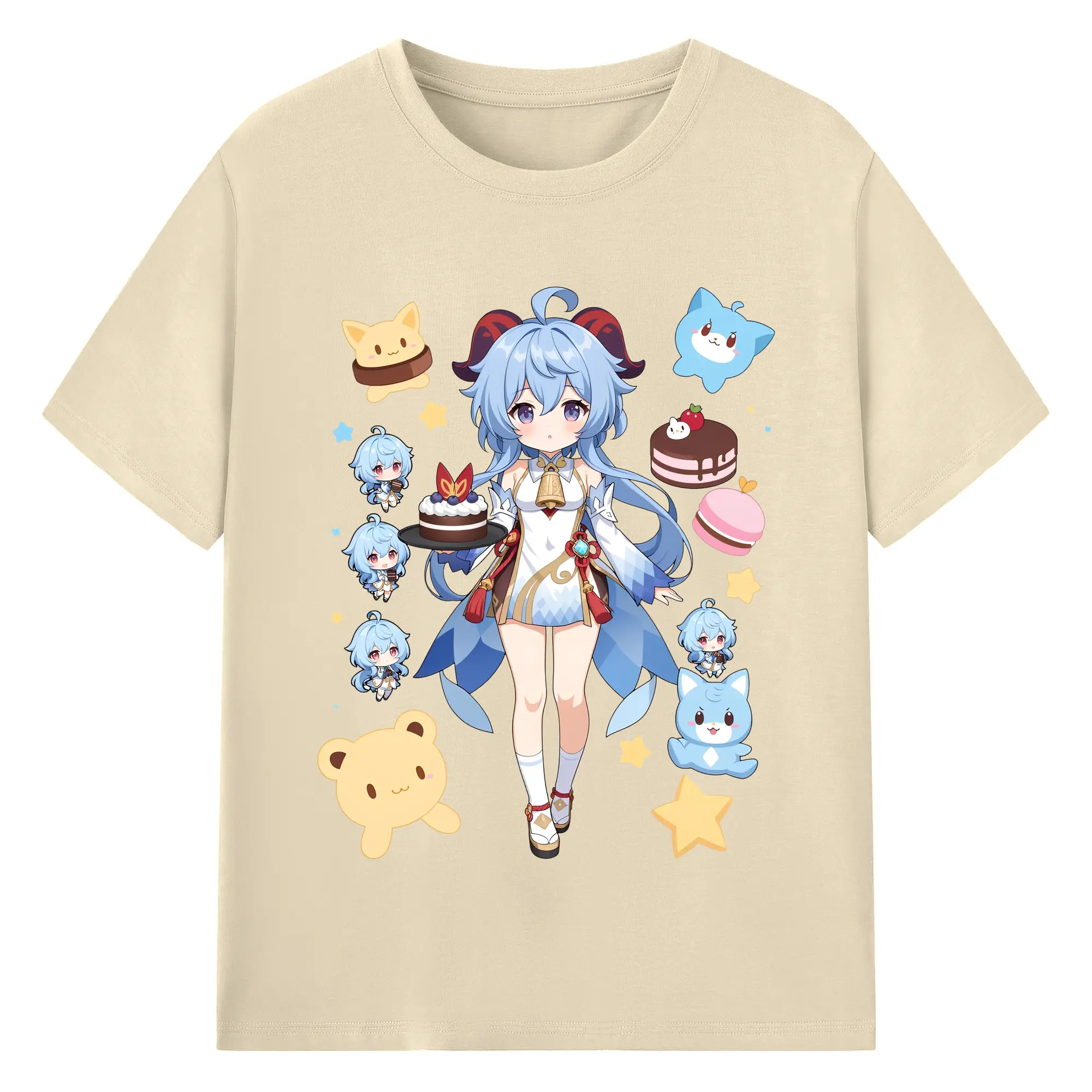 原神 甘雨 クリーンデザイン ファッション 原宿系 - 綿100% 半袖Tシャツ ・ フロントプリント ・ 快適 通気性 ・ 日常使い 散歩 スポーツ用