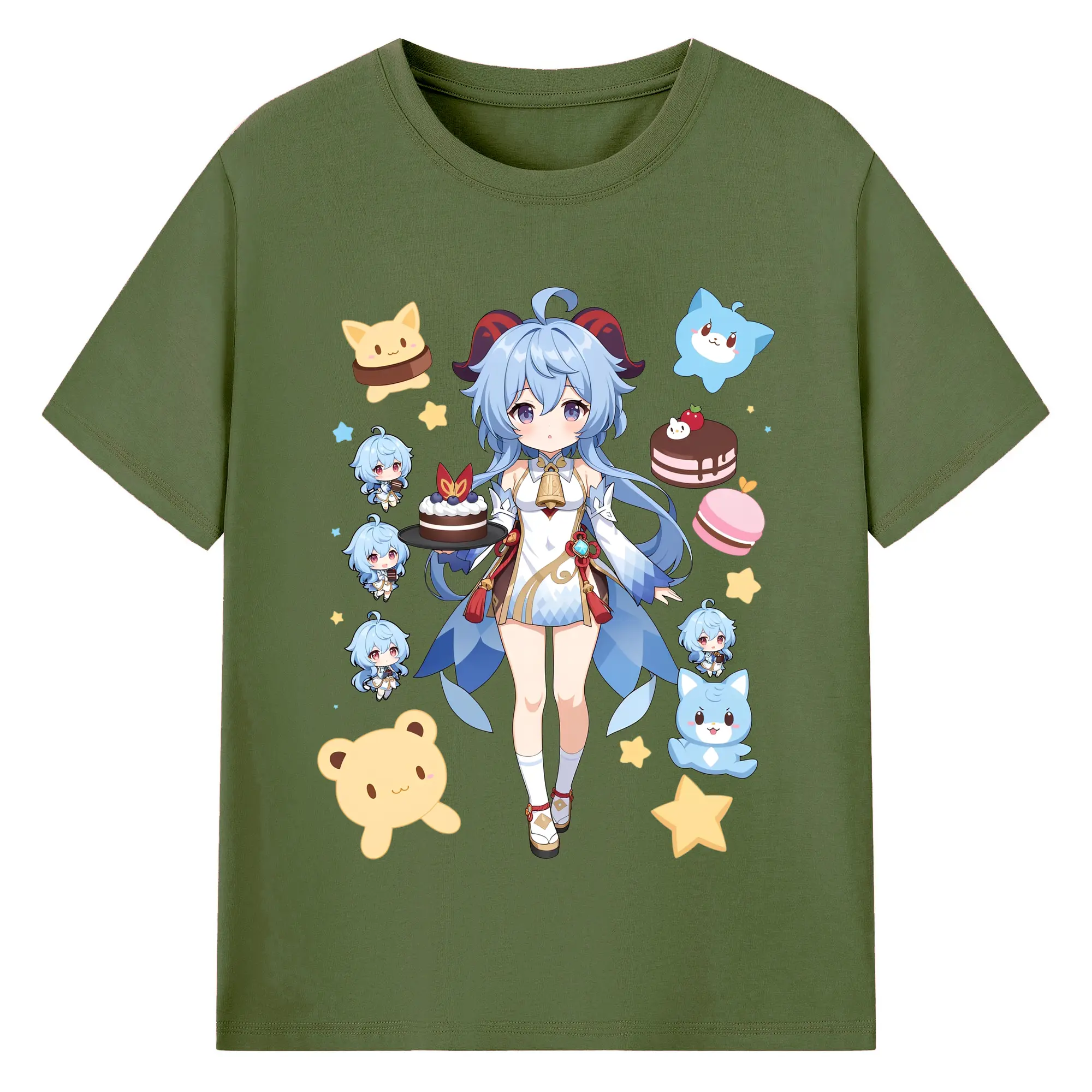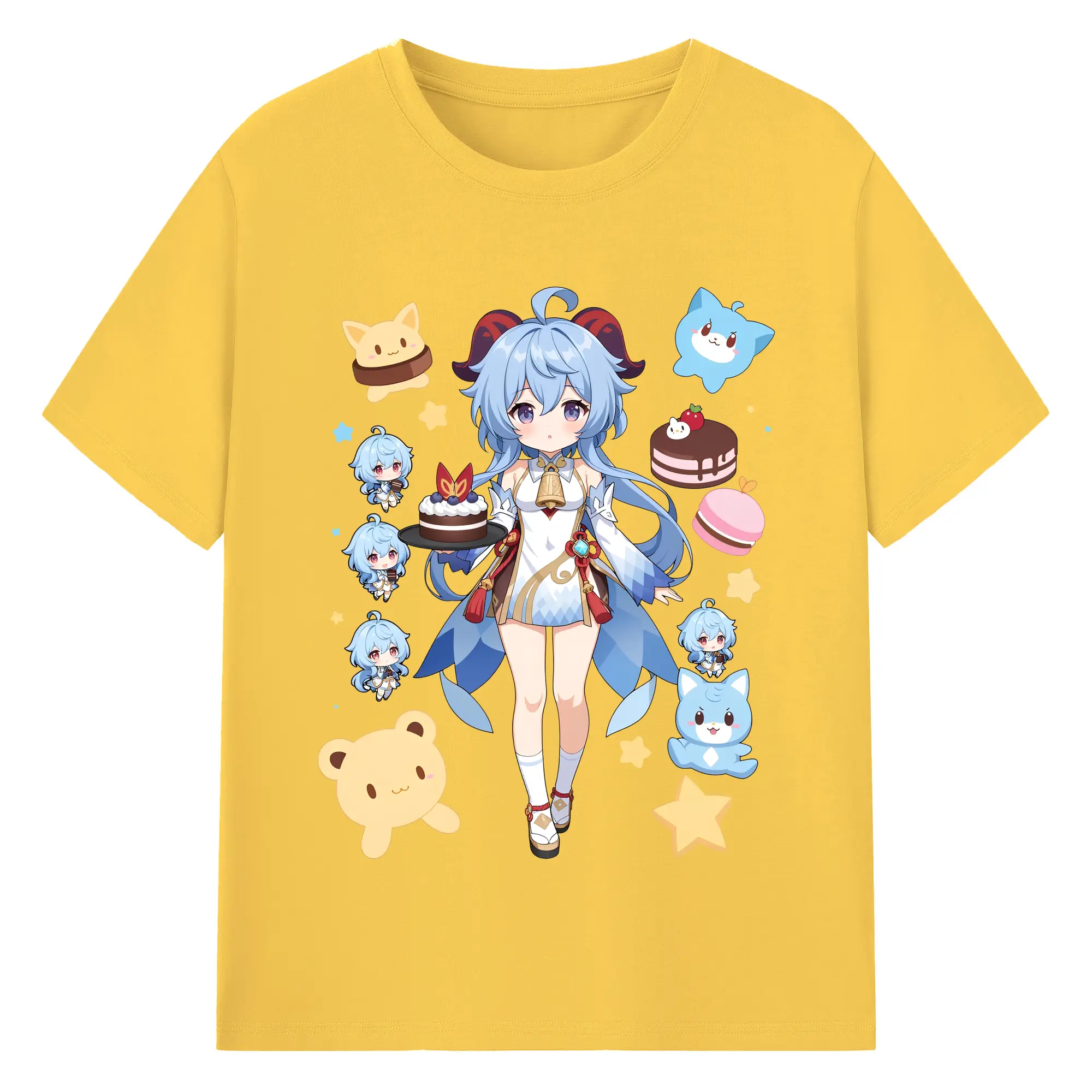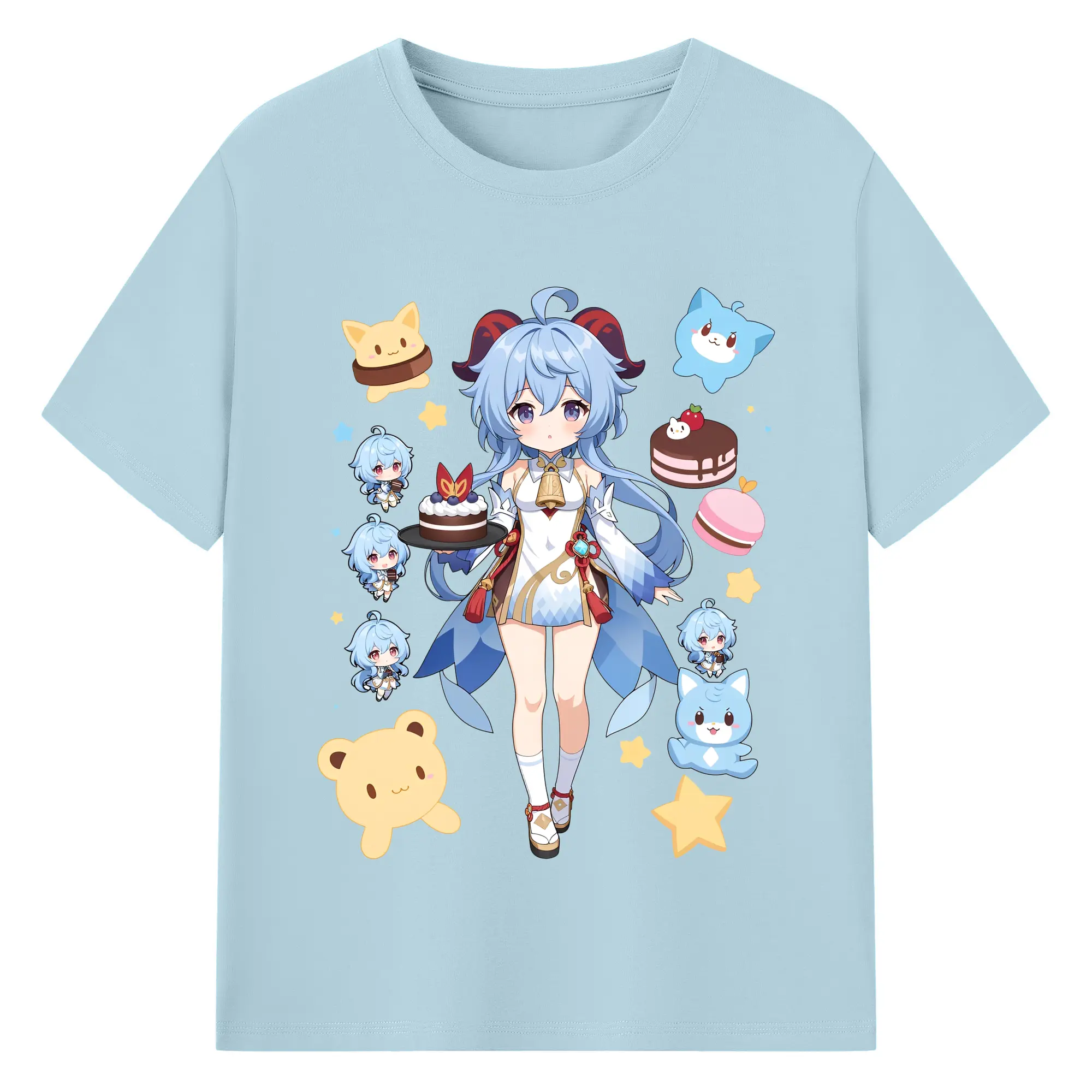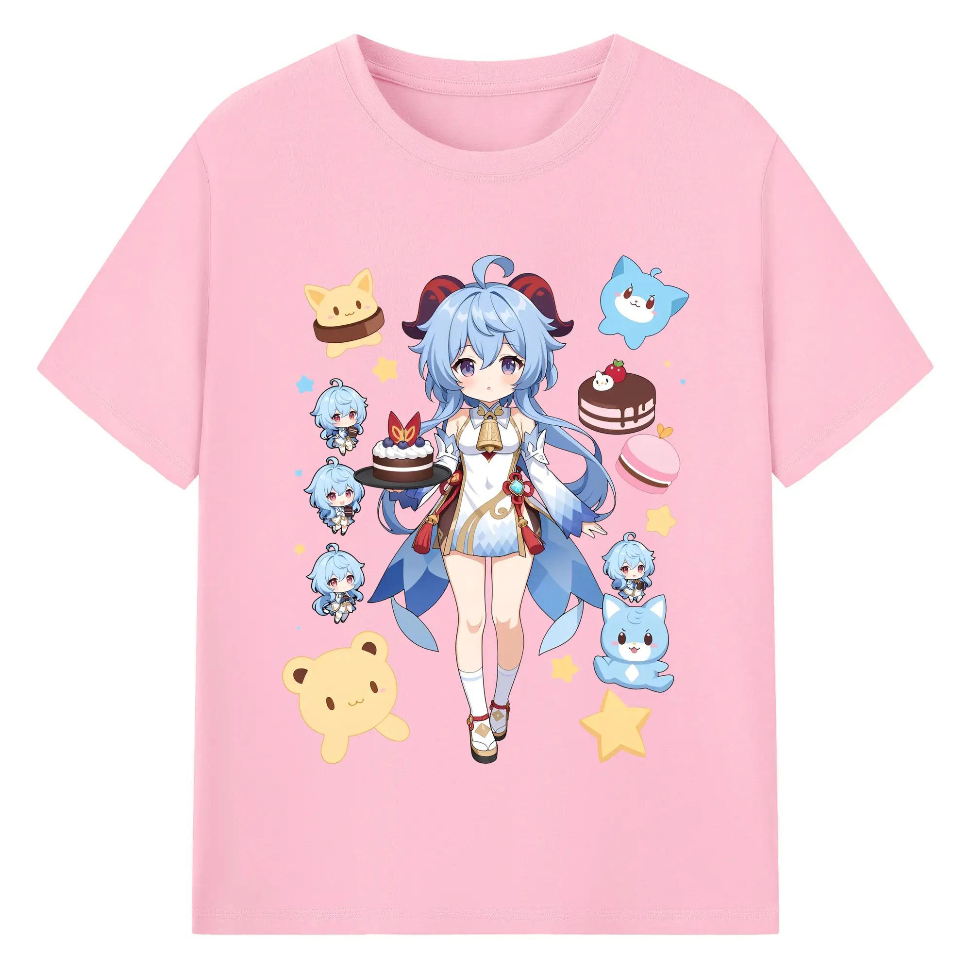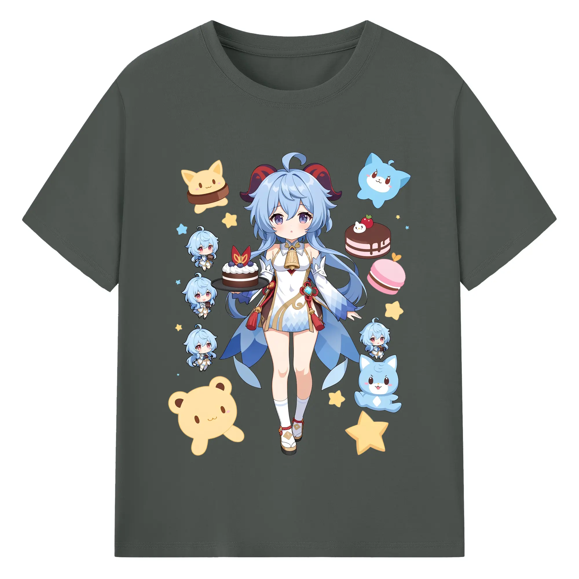 原神 甘雨 クリーンデザイン ファッション 原宿系 - 綿100% 半袖Tシャツ ・ フロントプリント ・ 快適 通気性 ・ 日常使い 散歩 スポーツ用
