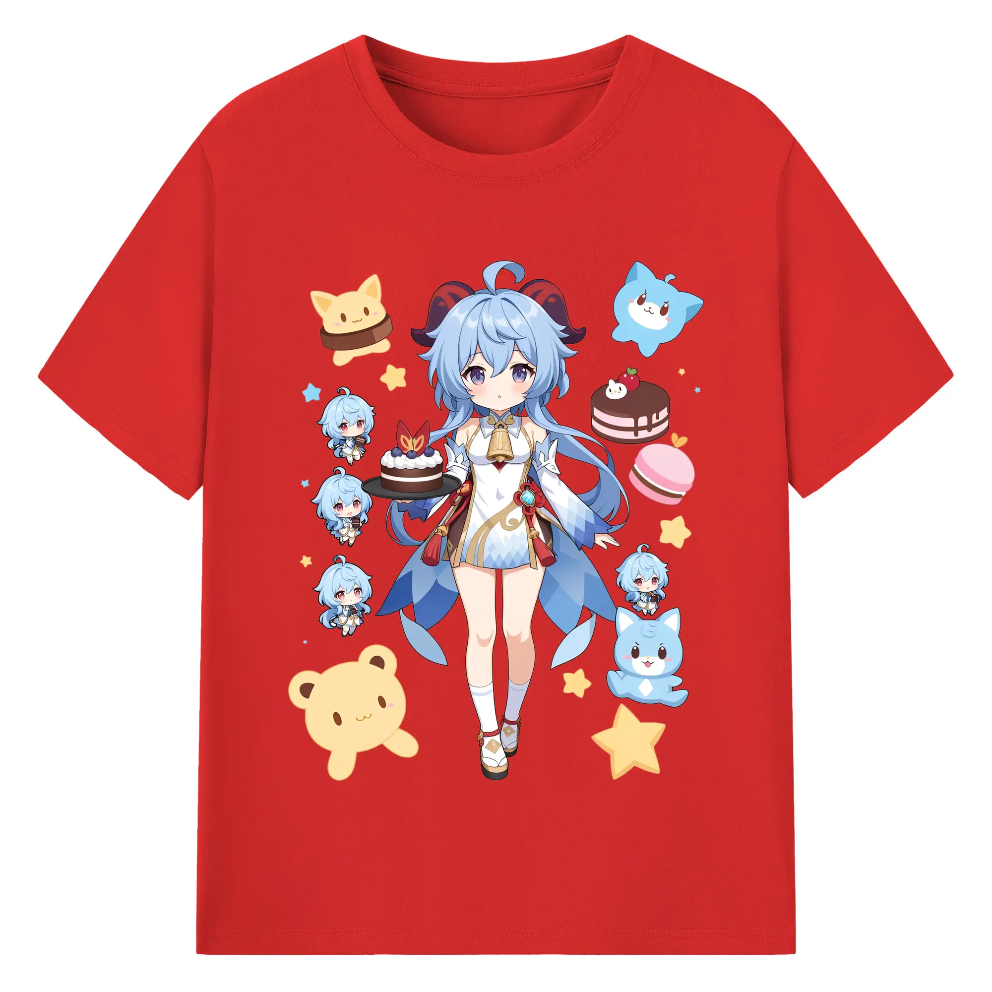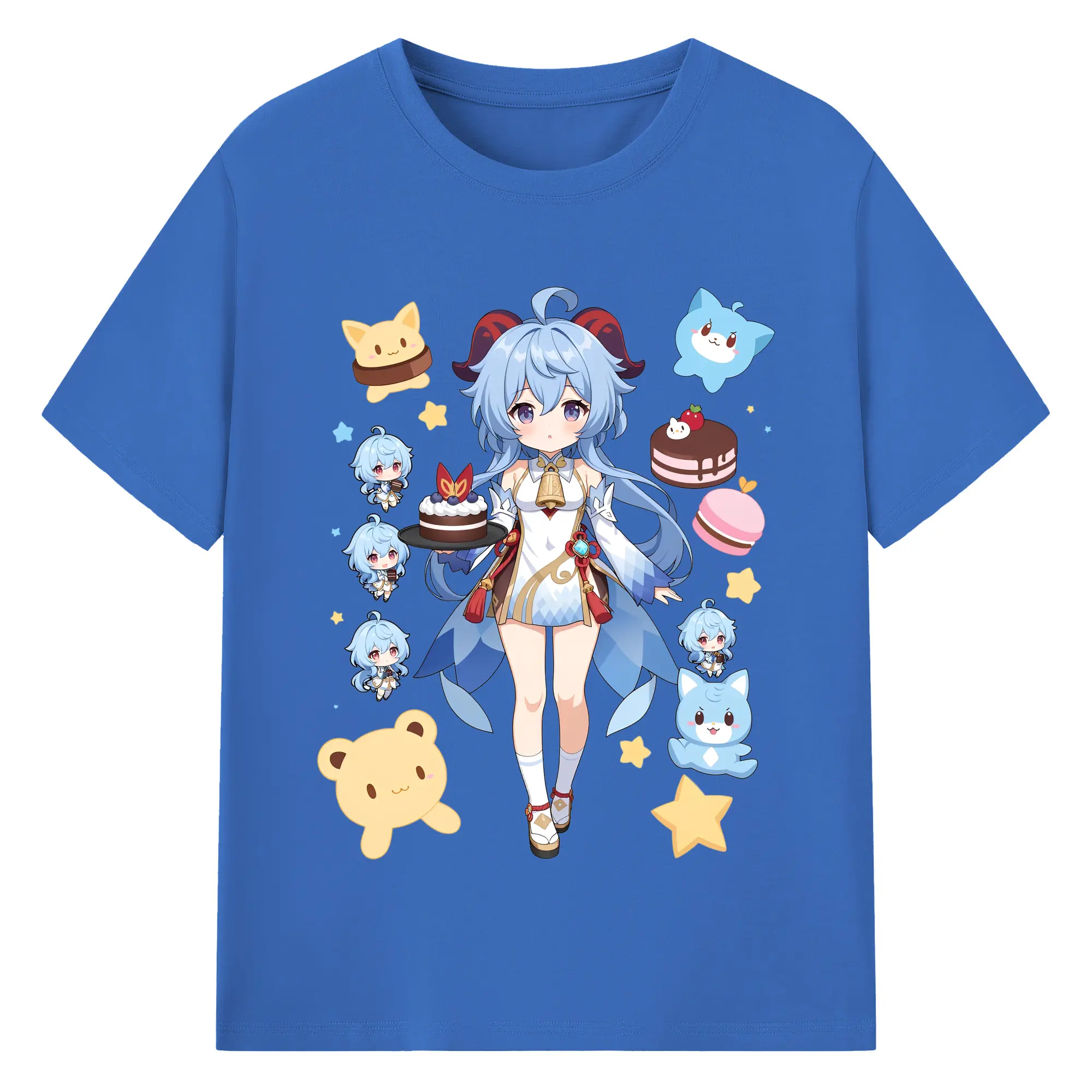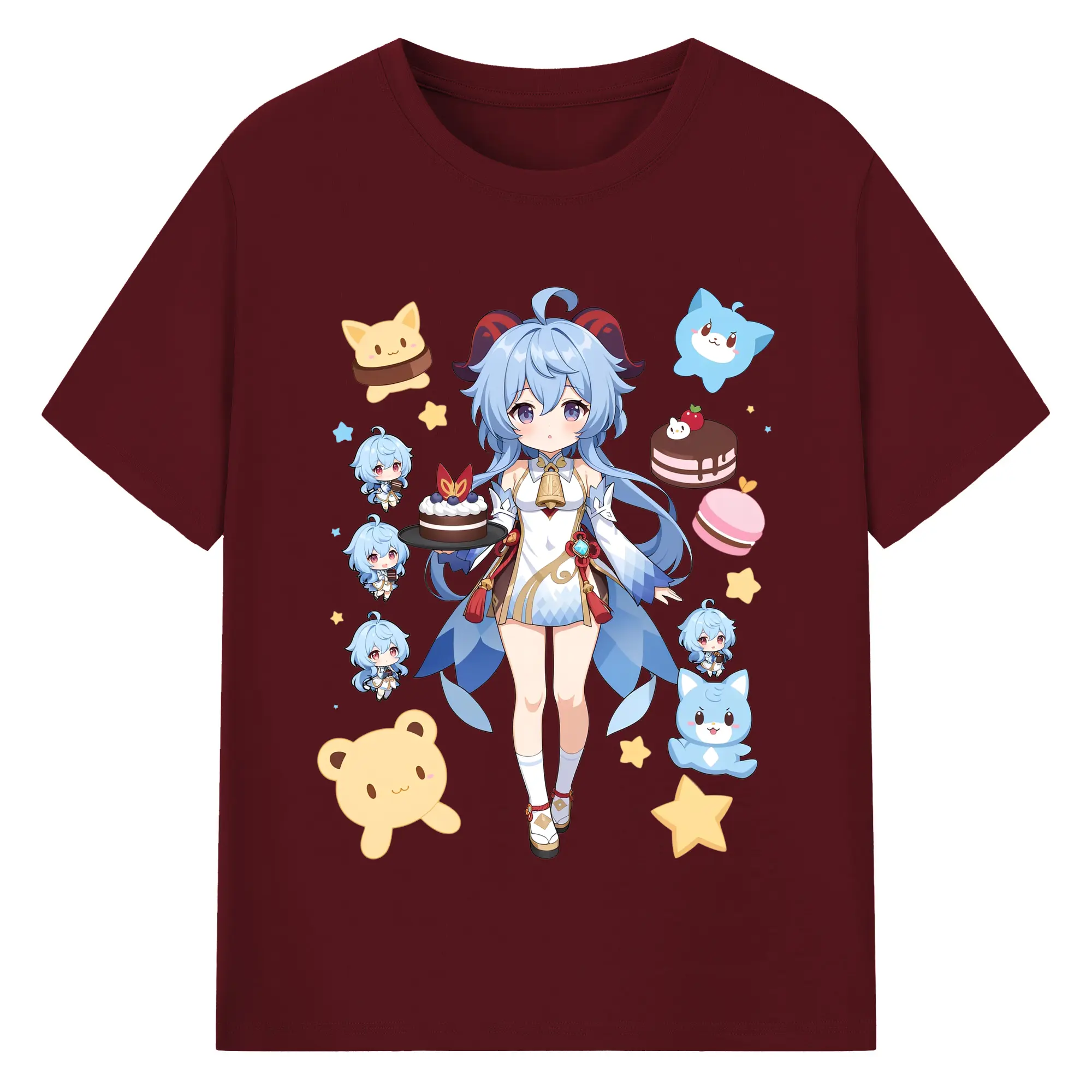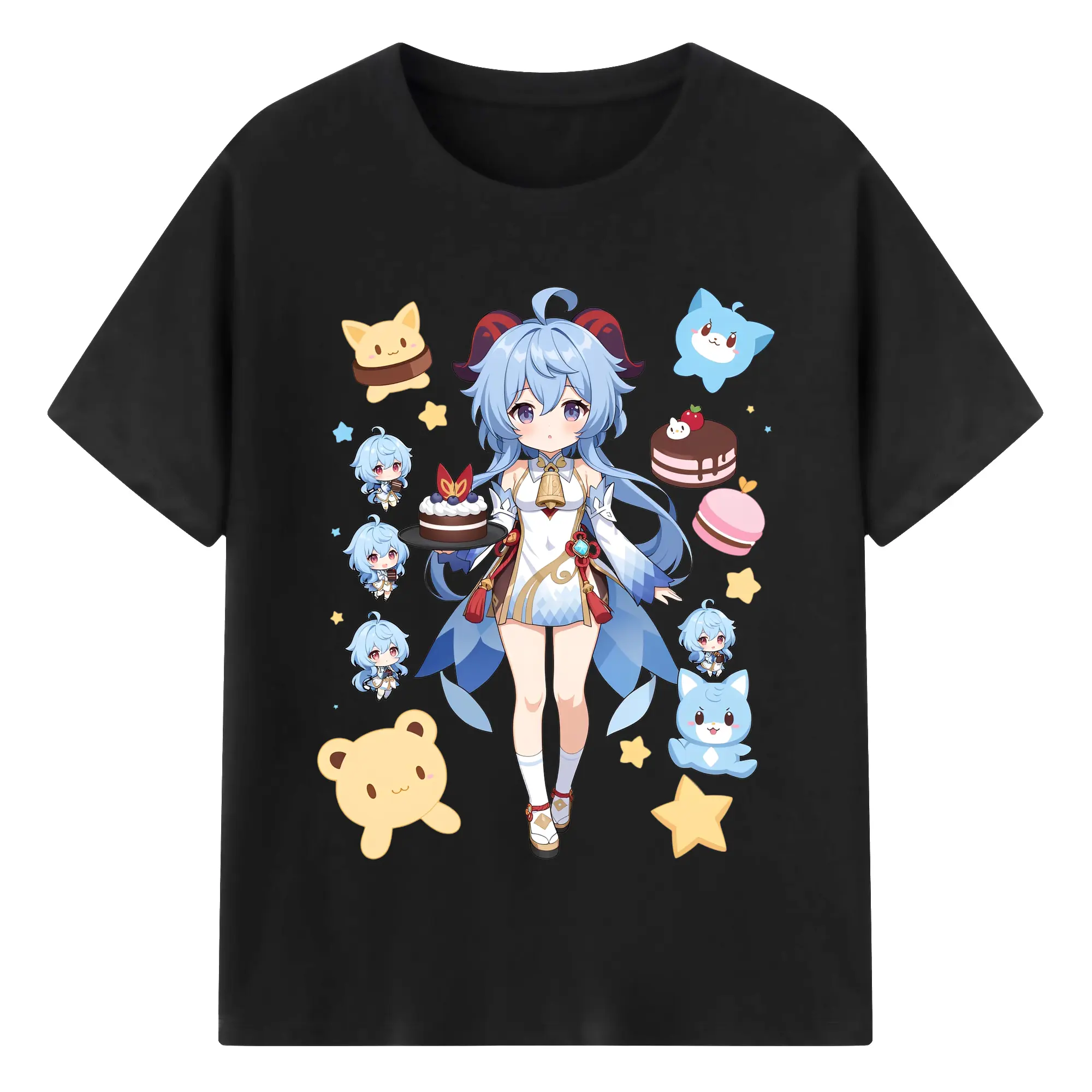 二次元 Furina ファン必見!萌えデザインキャラクター - 綿100% 半袖Tシャツ ・ フロントプリント ・ 快適 通気性 ・ 日常使い 散歩 スポーツ用