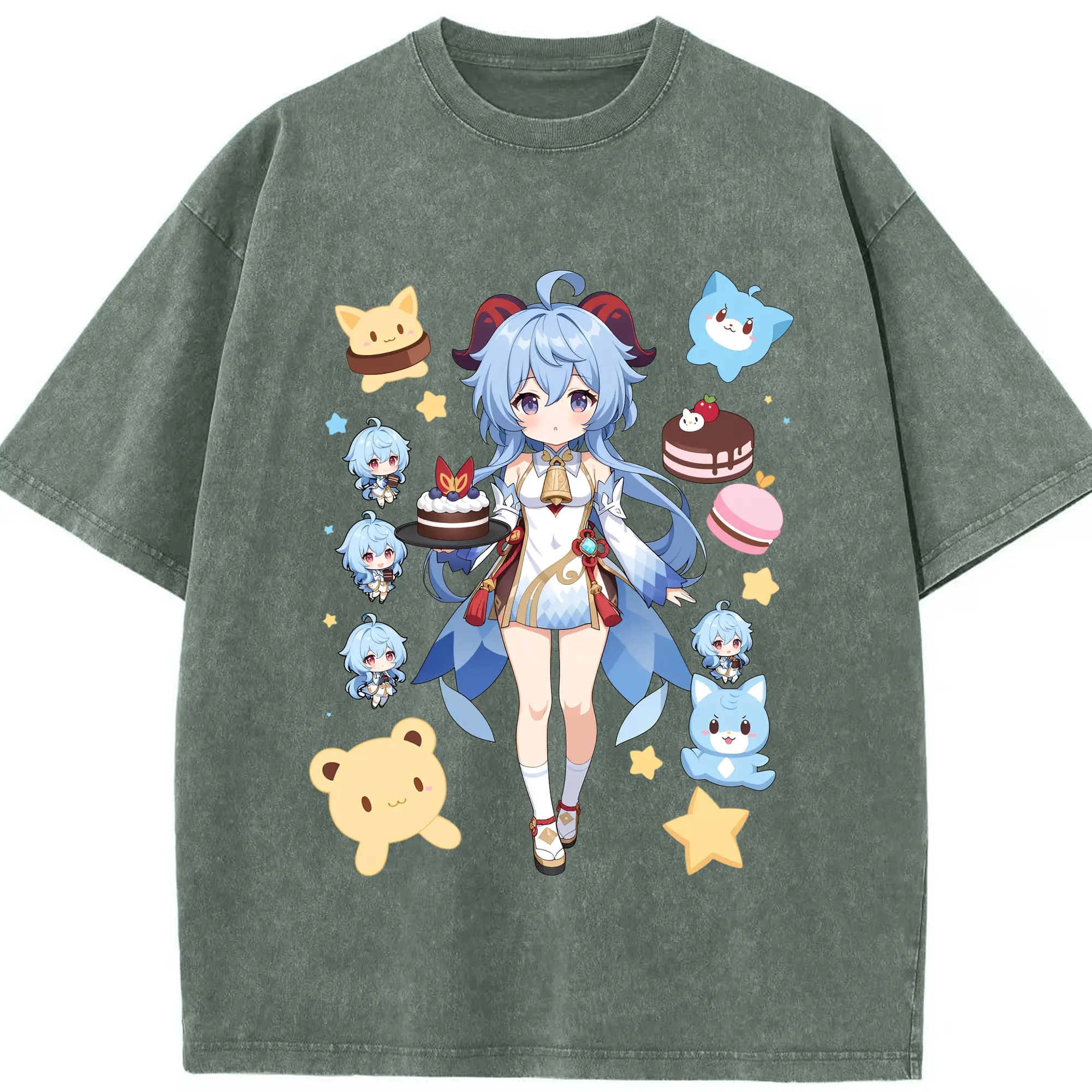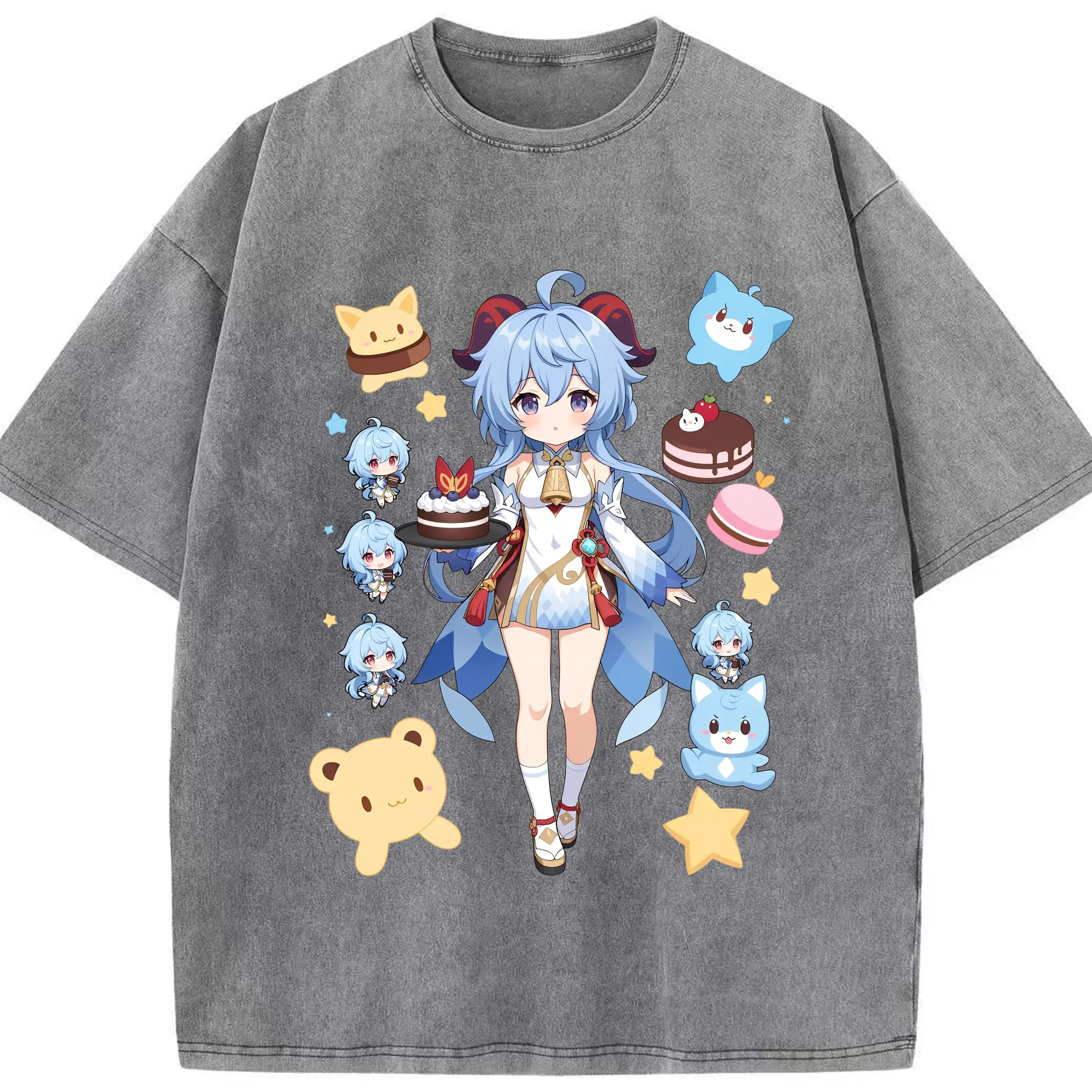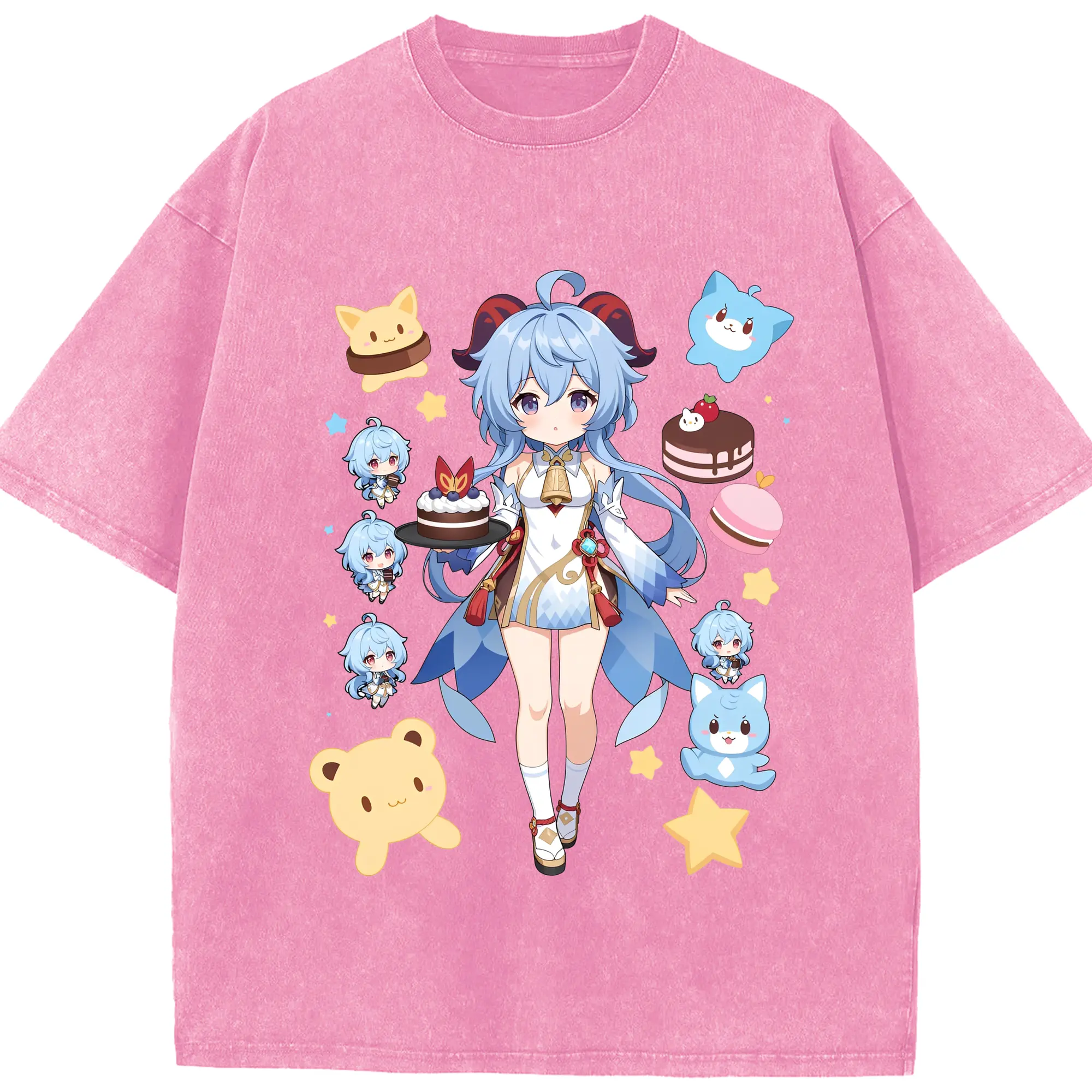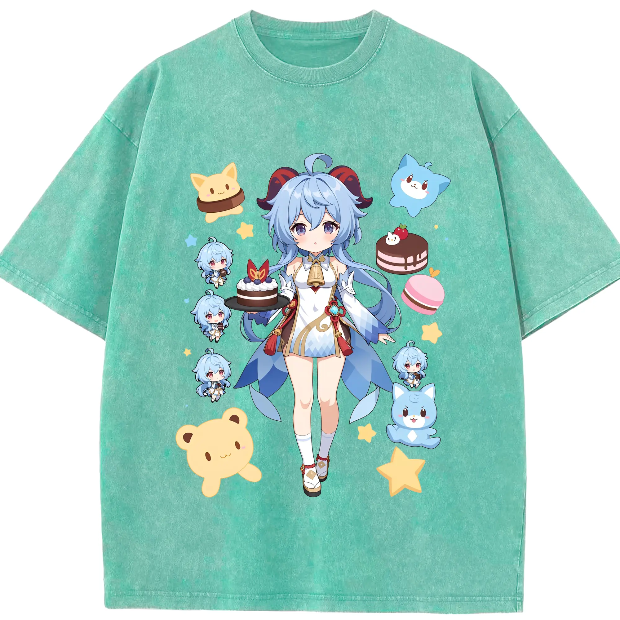 原神 甘雨 新作Tシャツ トレンドデザイン ギフトにもおすすめ - 綿100% 半袖Tシャツ ・ フロントプリント ・ 快適 通気性 ・ 日常使い 散歩 スポーツ用