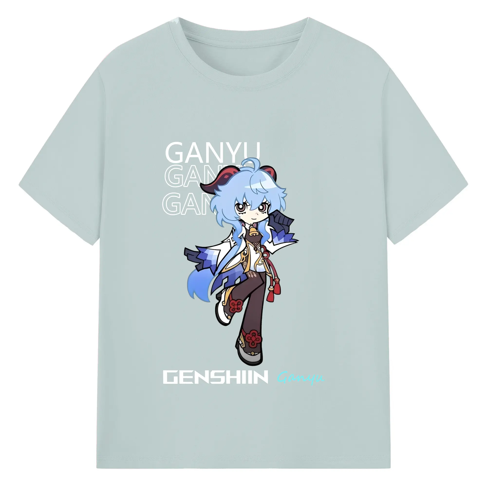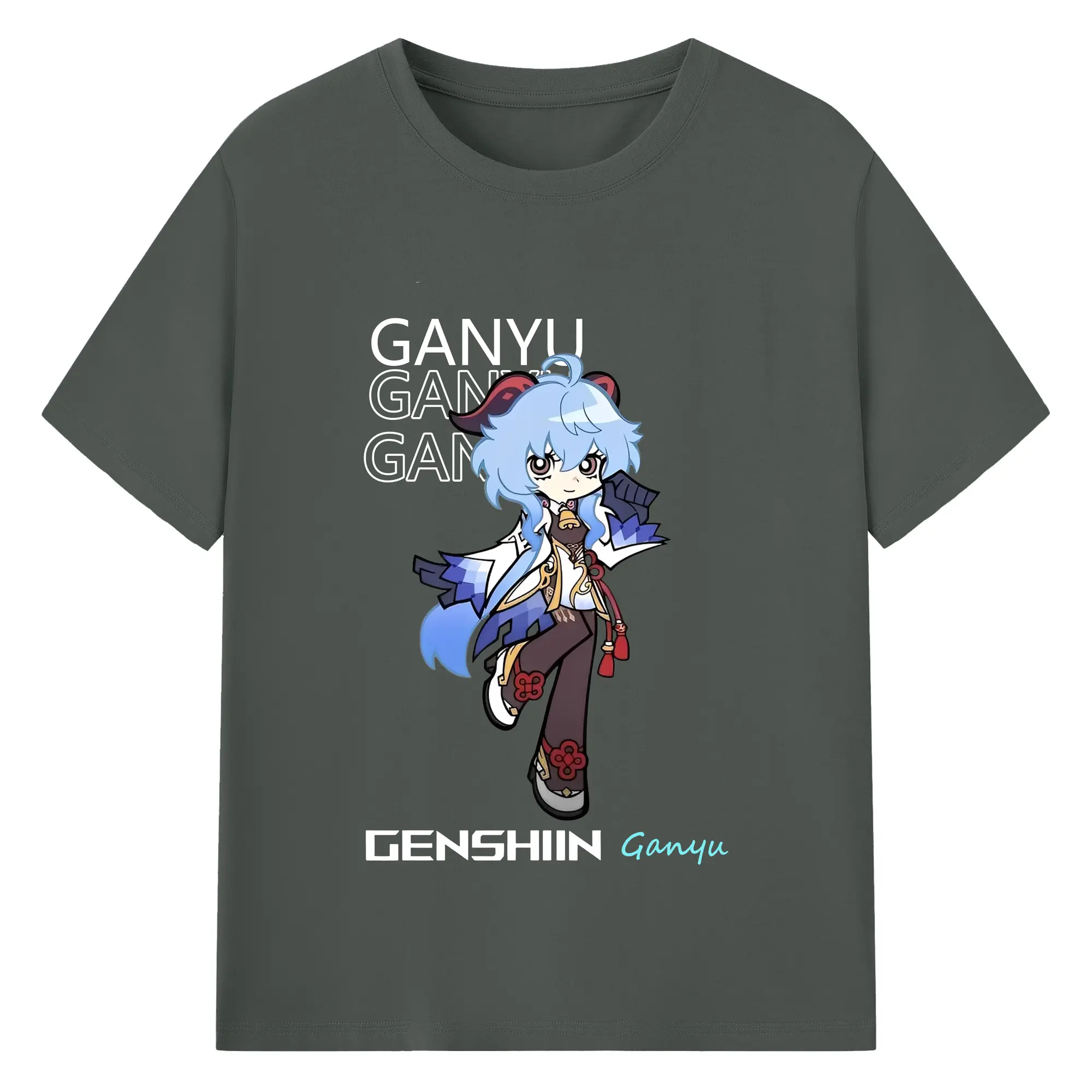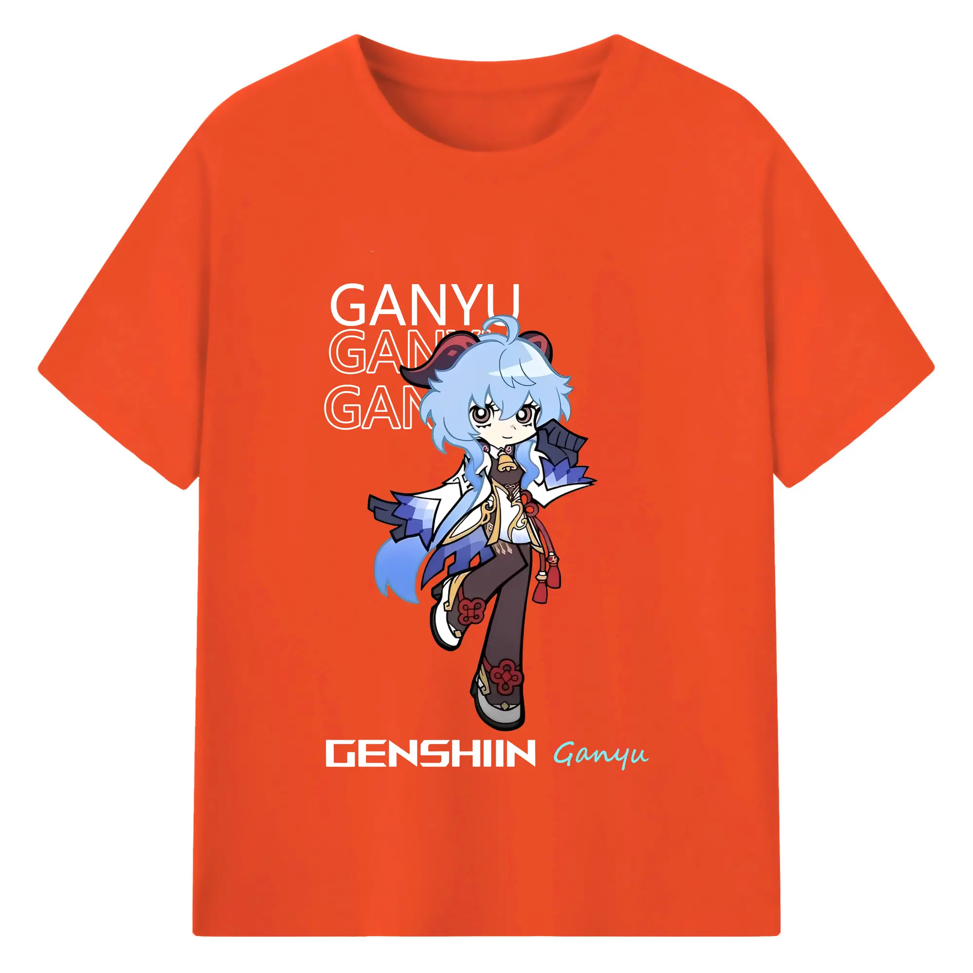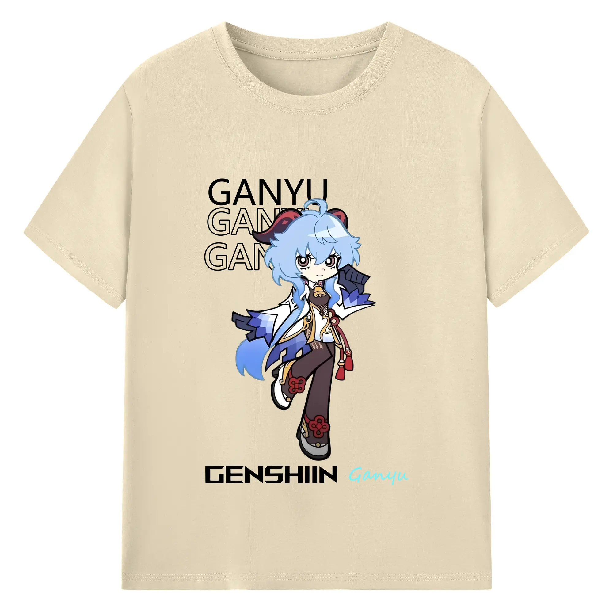 原神 甘雨 2025限定モデル プレミアムデザイン 大人気! - 綿100% ヴィンテージ風 半袖Tシャツ ・ フロントプリント ・ 柔らか肌触り ・ 通気性 快適 ・ スポーツ カジュアル 外出用