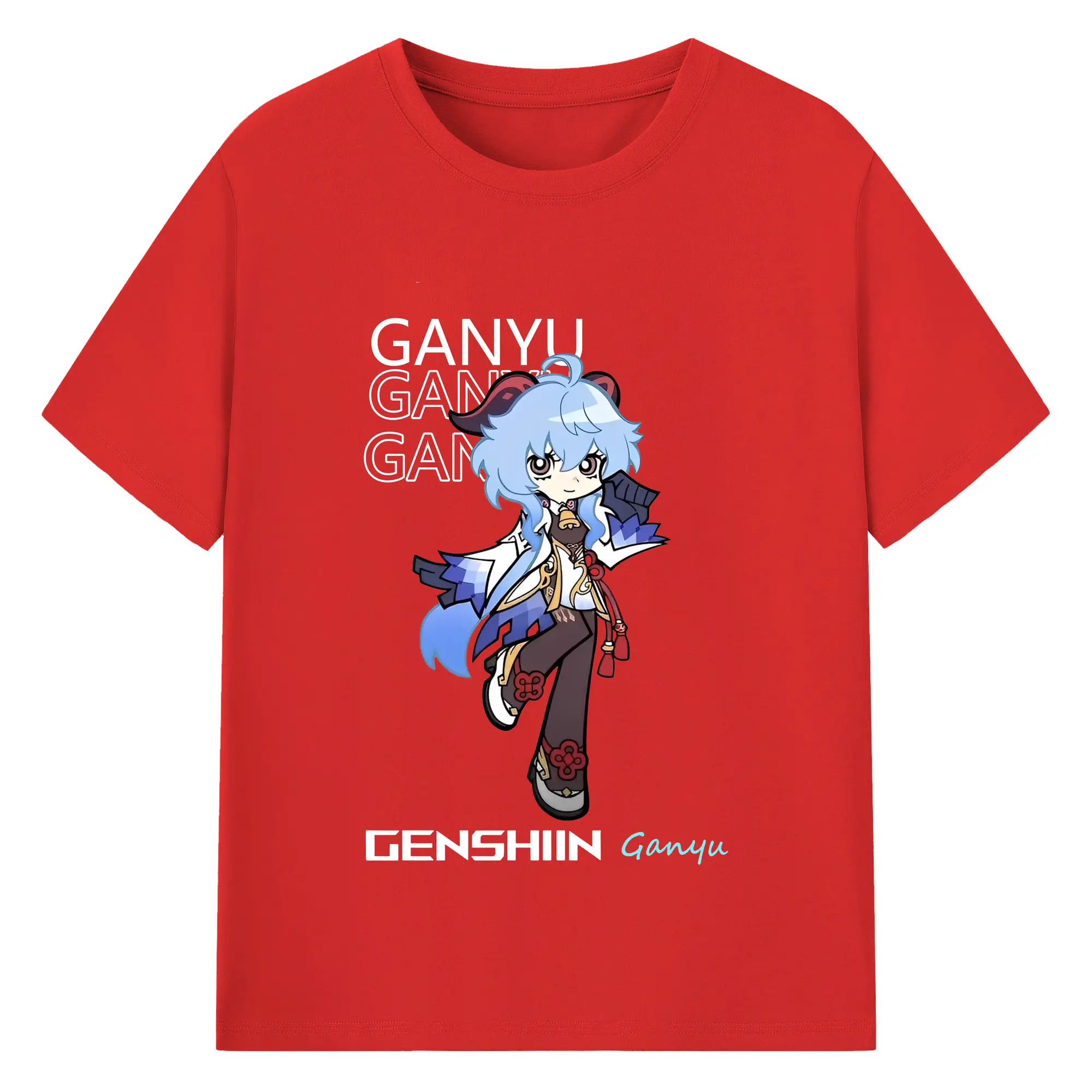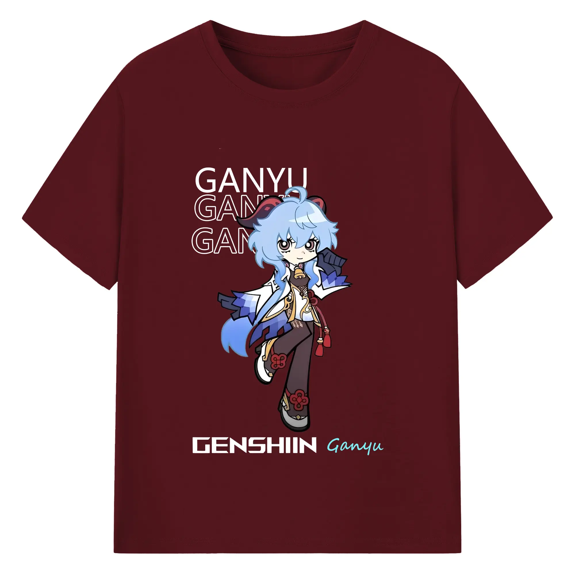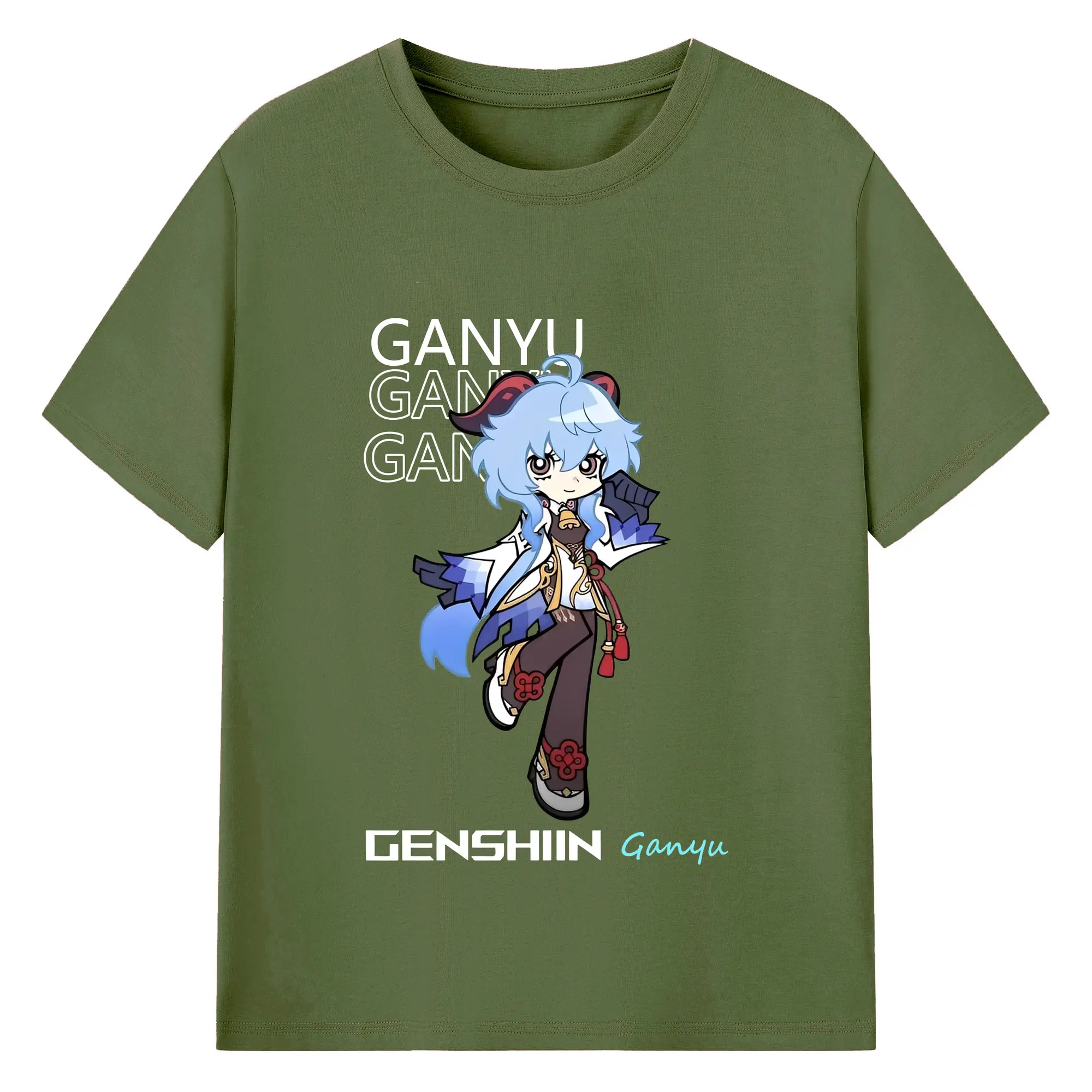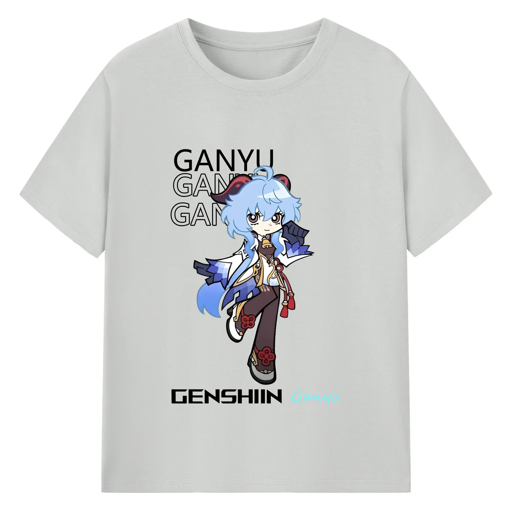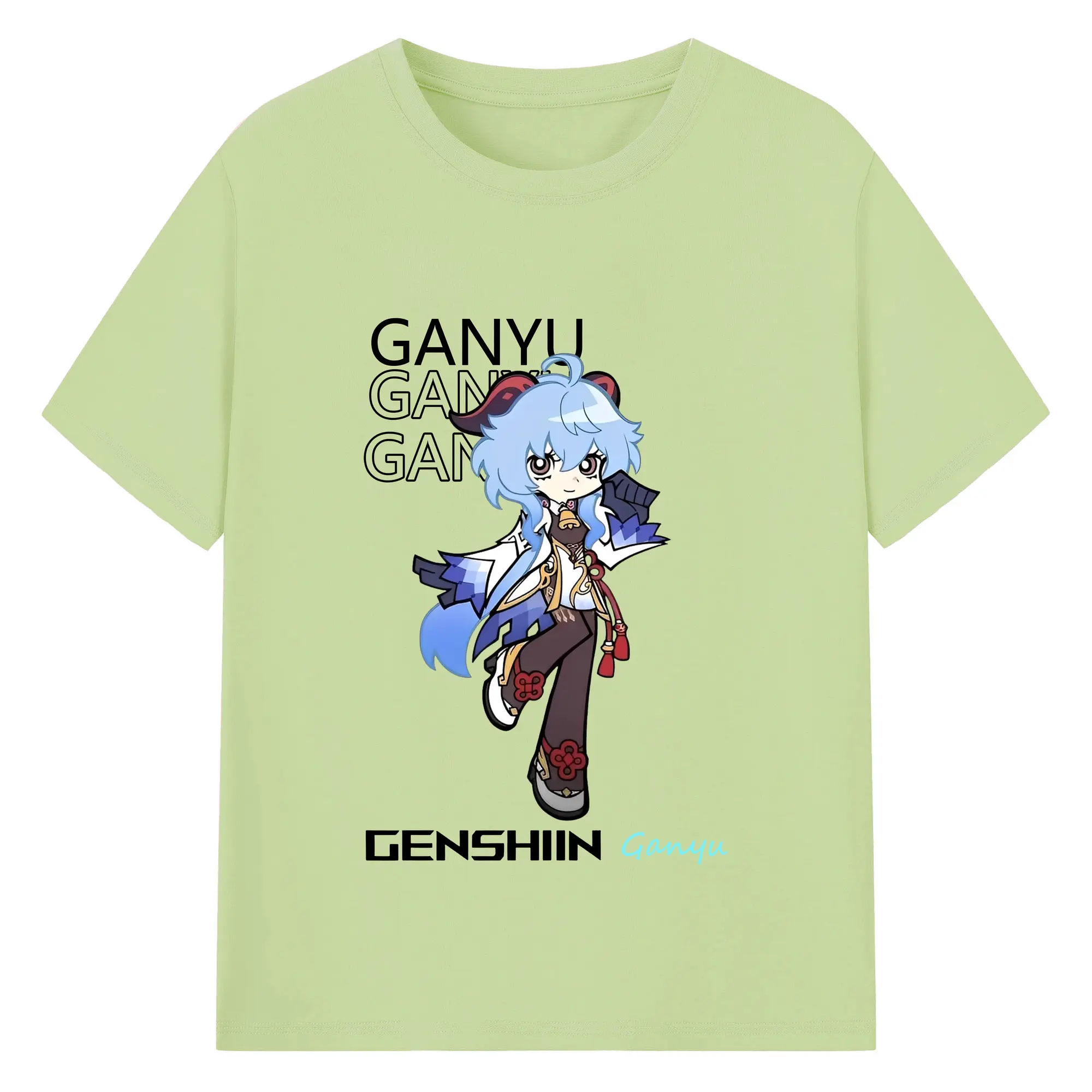 原神 甘雨 2025限定モデル プレミアムデザイン 大人気! - 綿100% ヴィンテージ風 半袖Tシャツ ・ フロントプリント ・ 柔らか肌触り ・ 通気性 快適 ・ スポーツ カジュアル 外出用