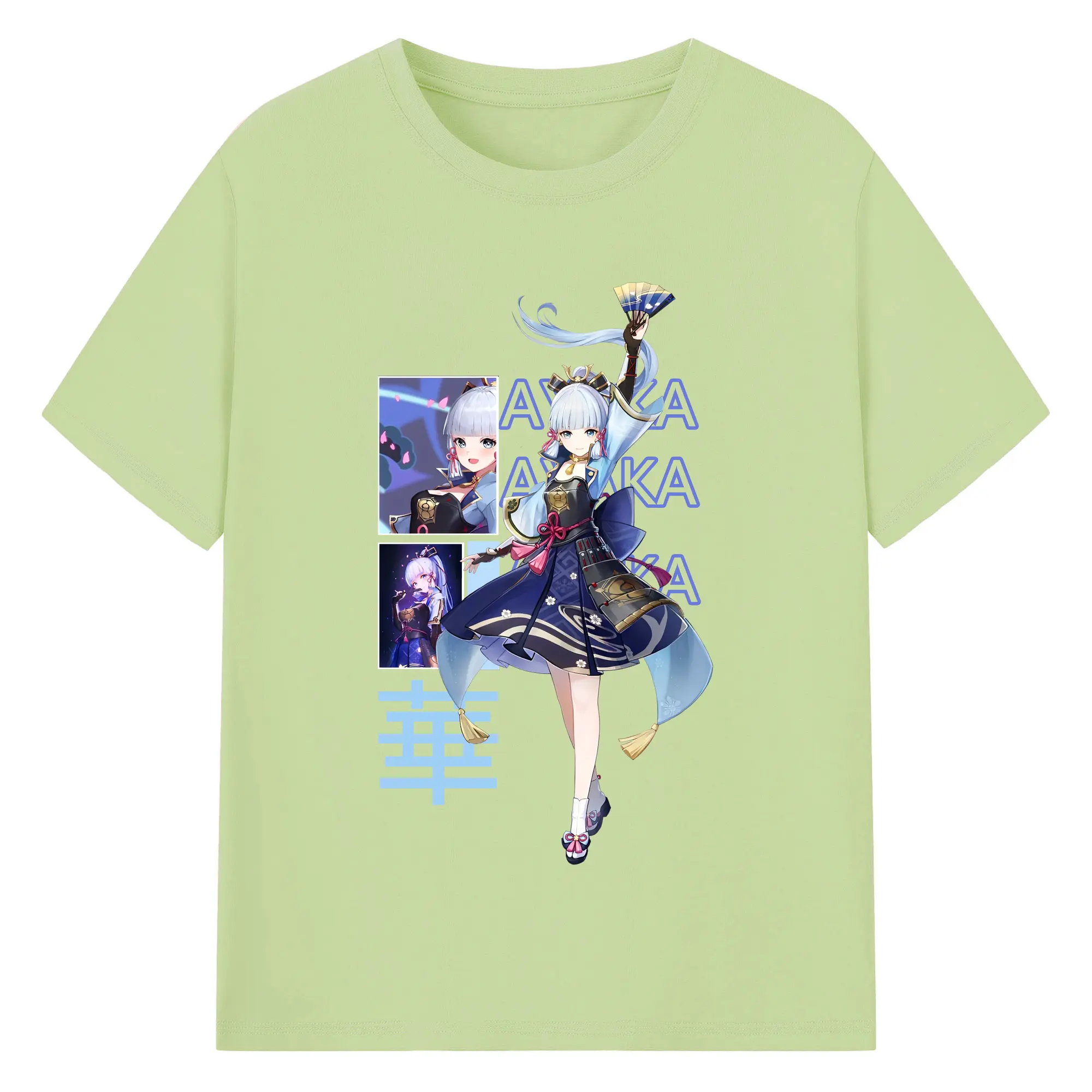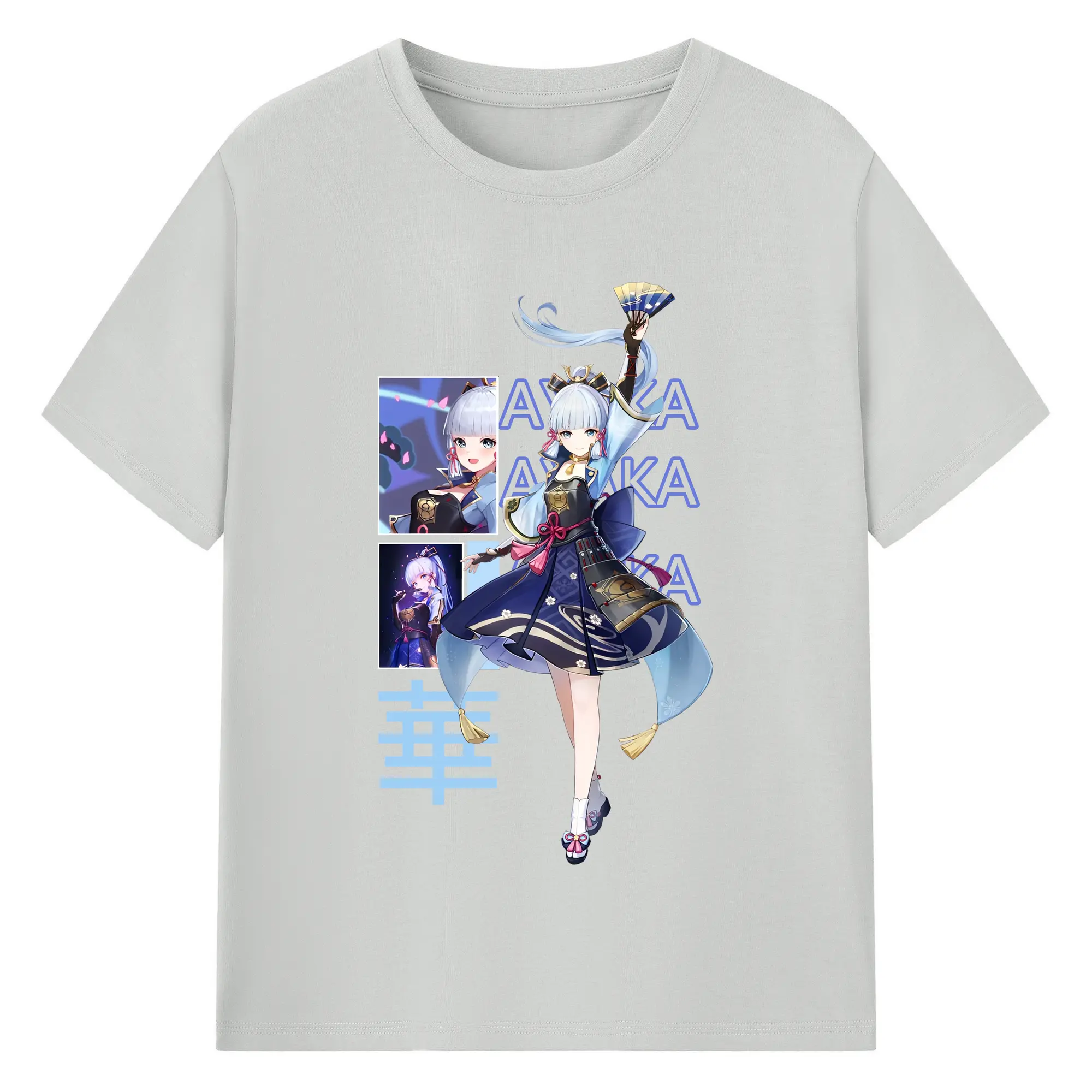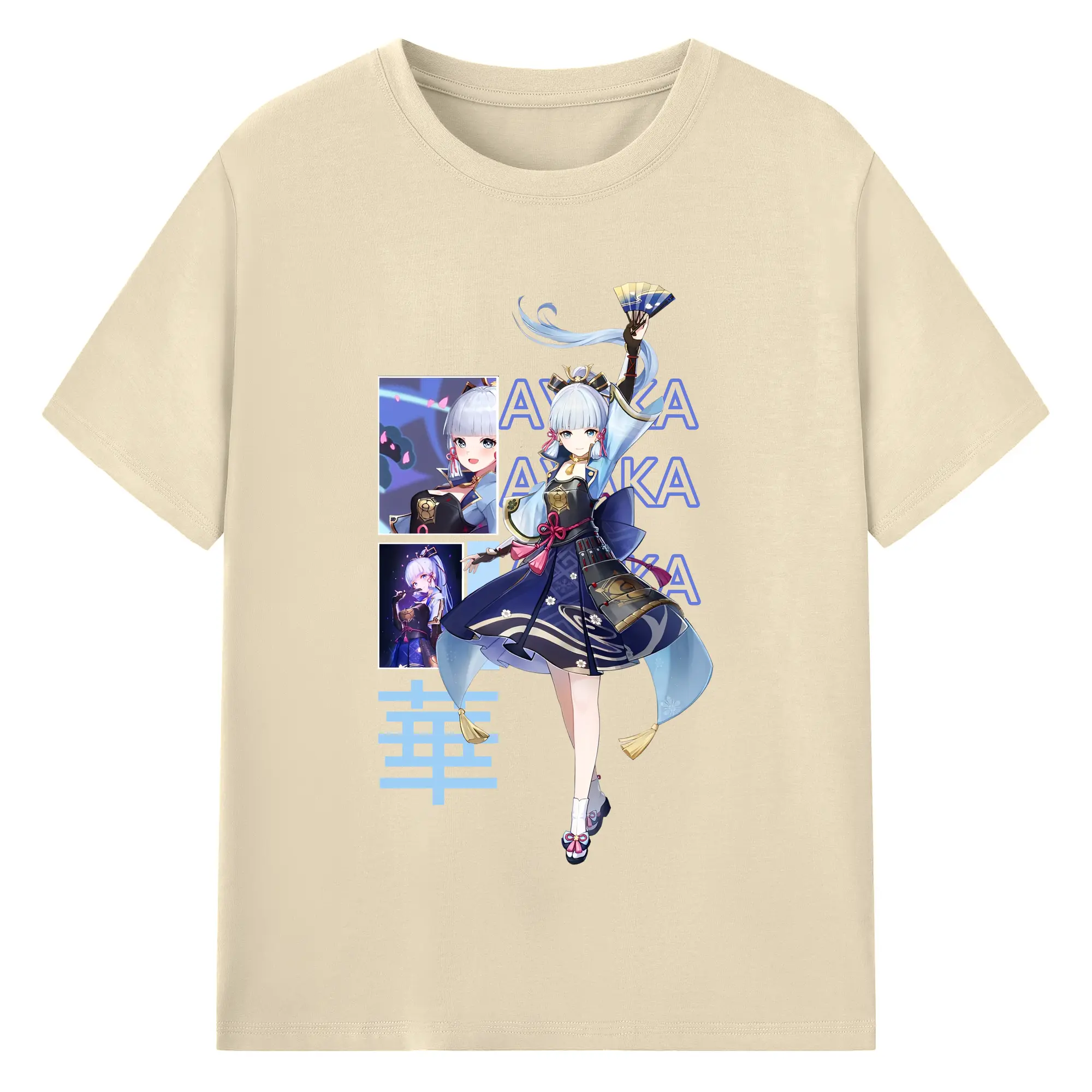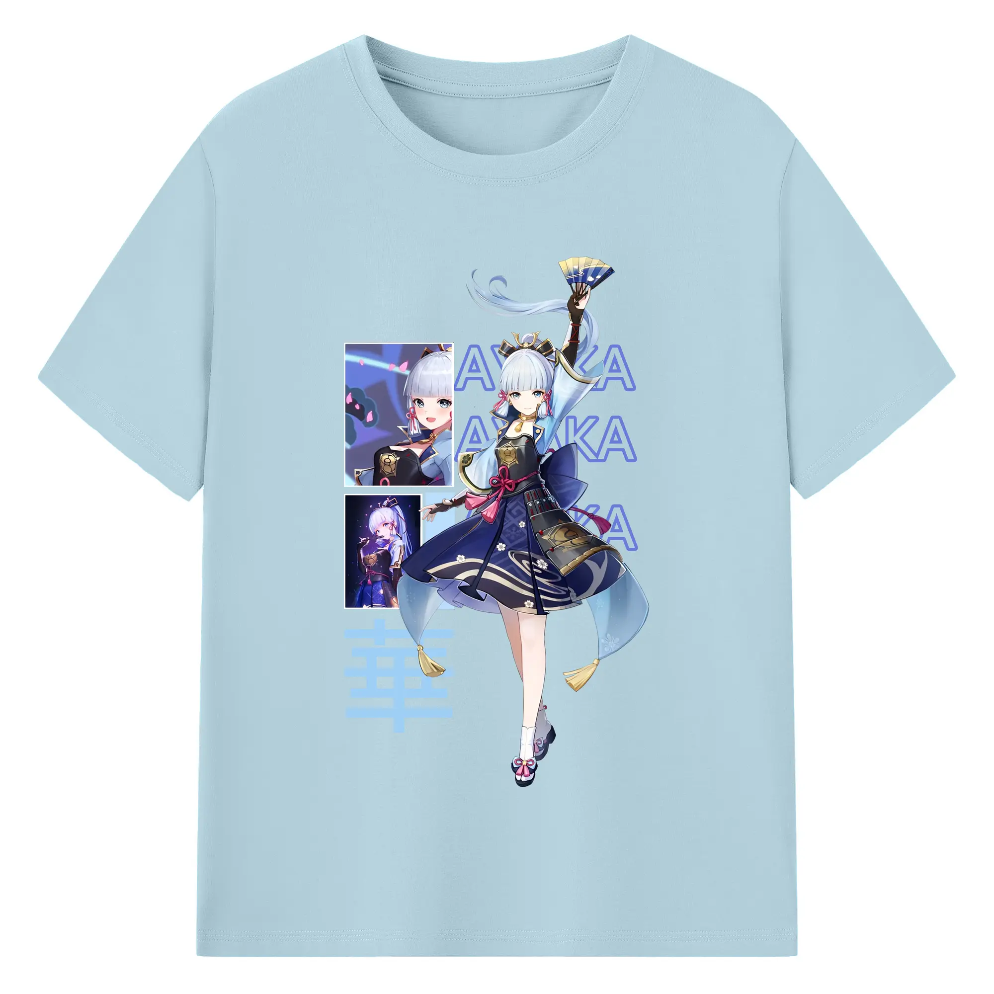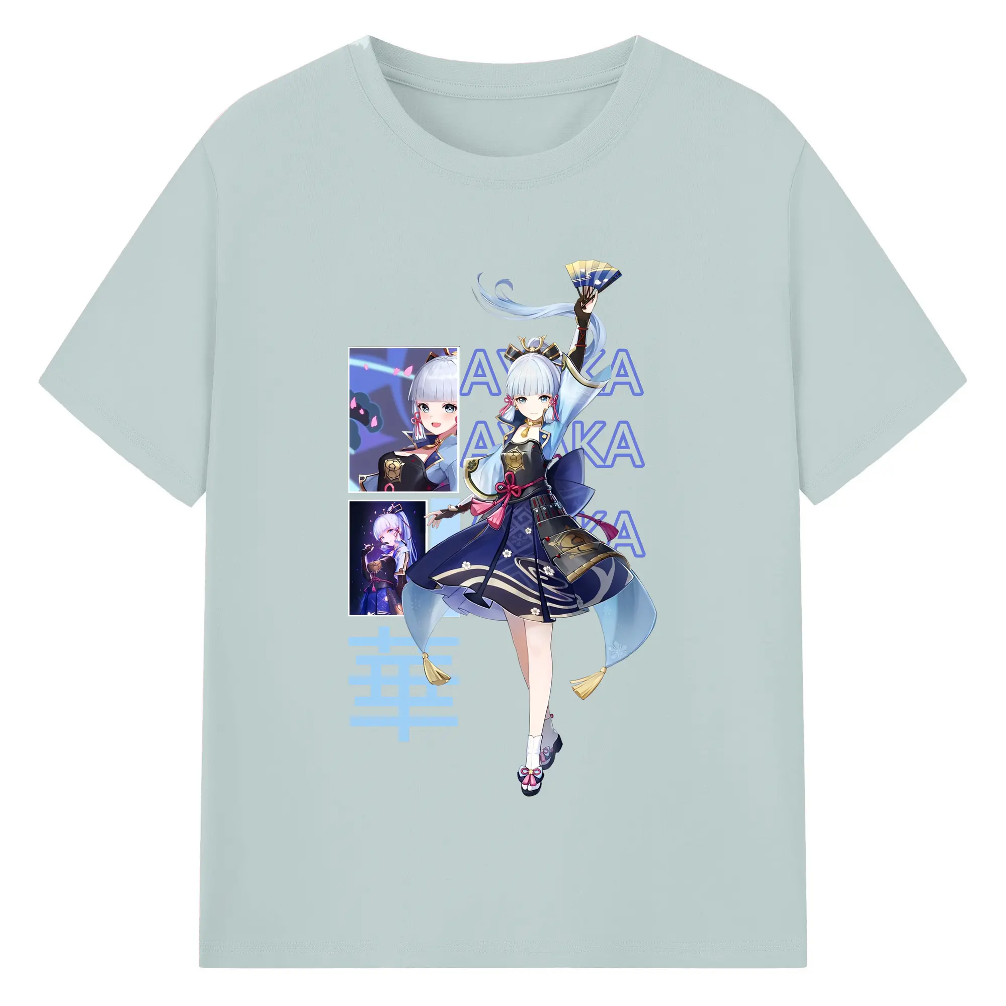 原神 神里綾華 人気キャラクター 限定デザイン【2025年新作】 - 綿100% ヴィンテージ風 半袖Tシャツ ・ フロントプリント ・ 柔らか肌触り ・ 通気性 快適 ・ スポーツ カジュアル 外出用