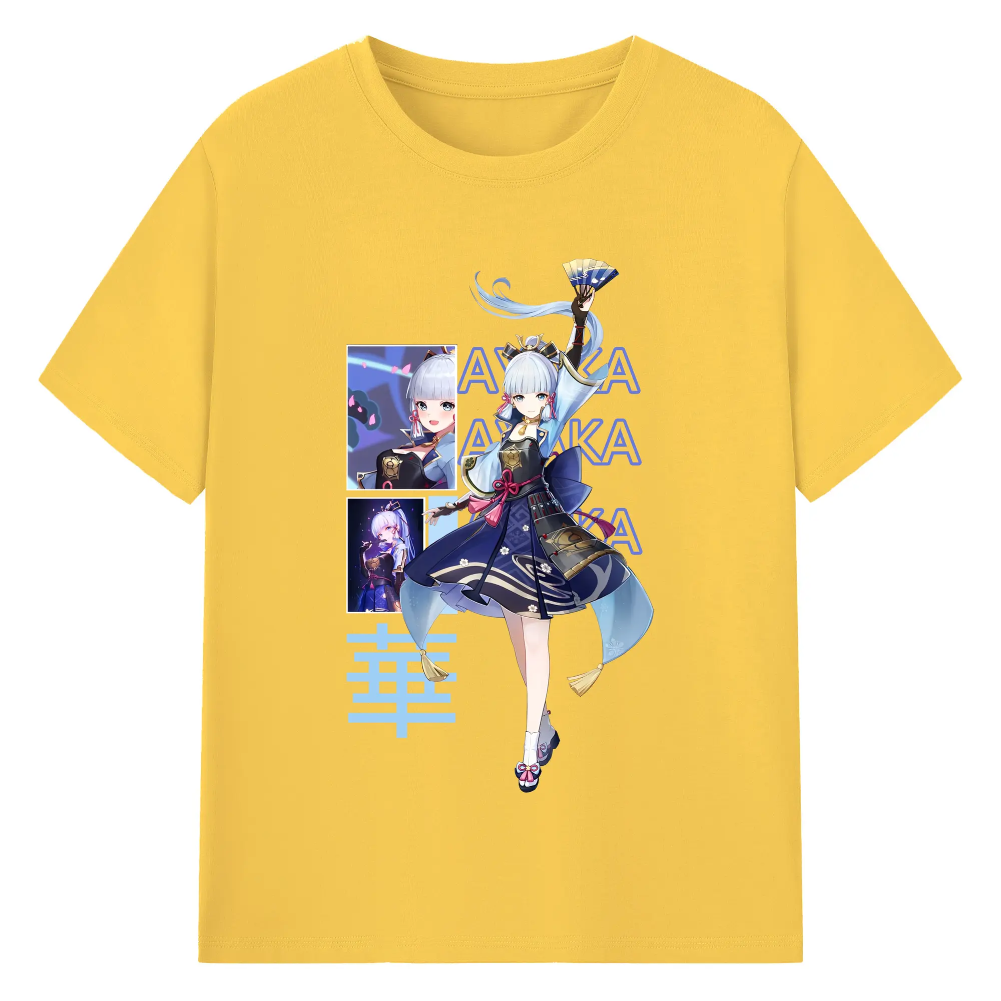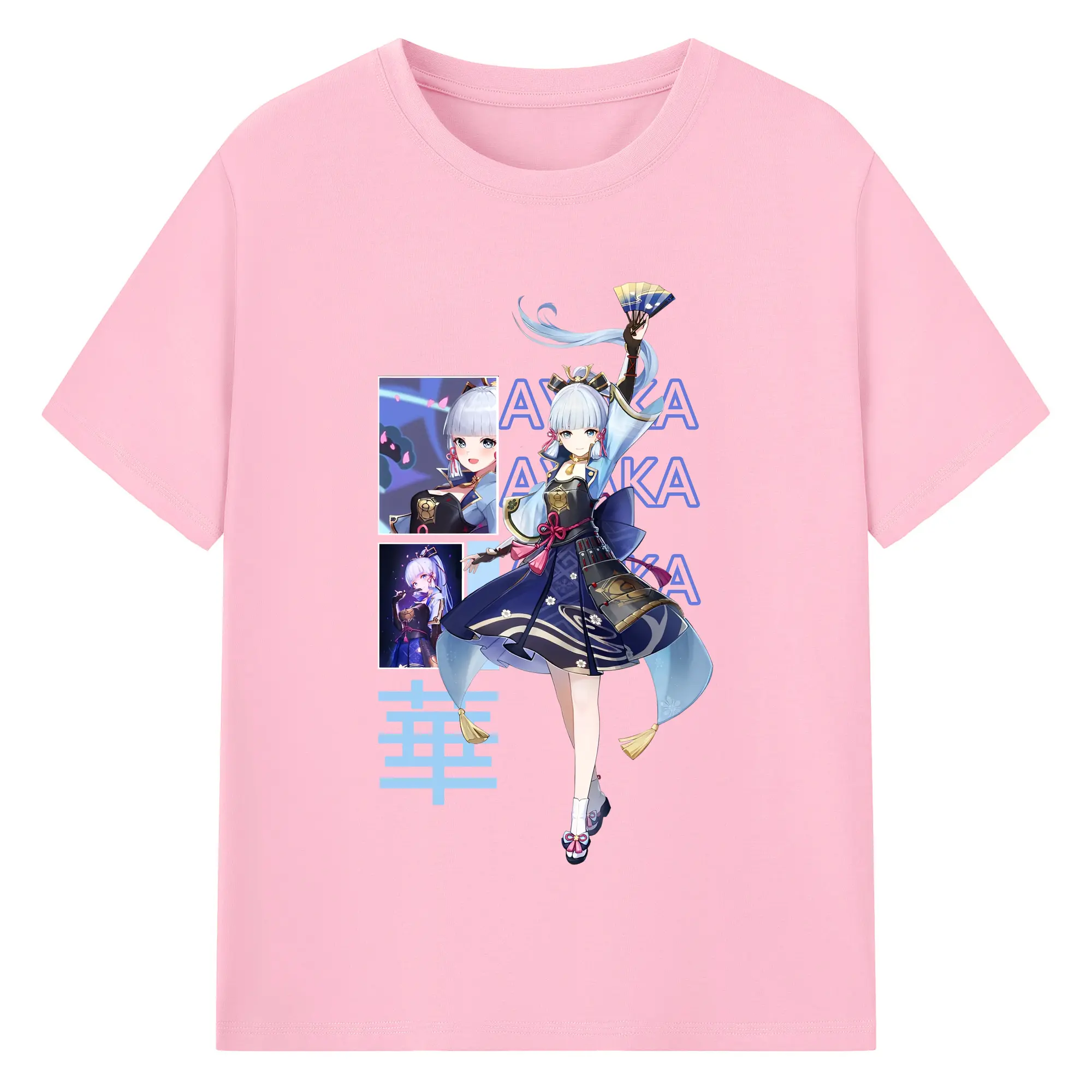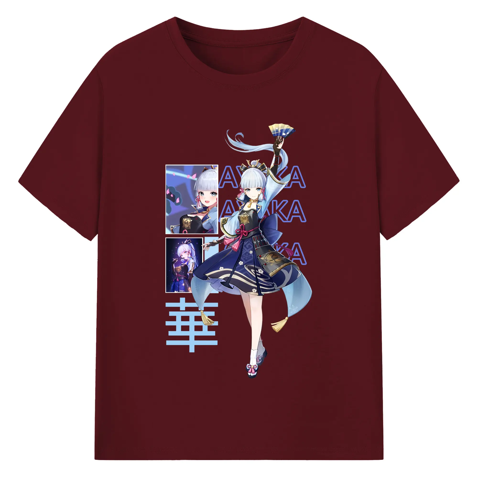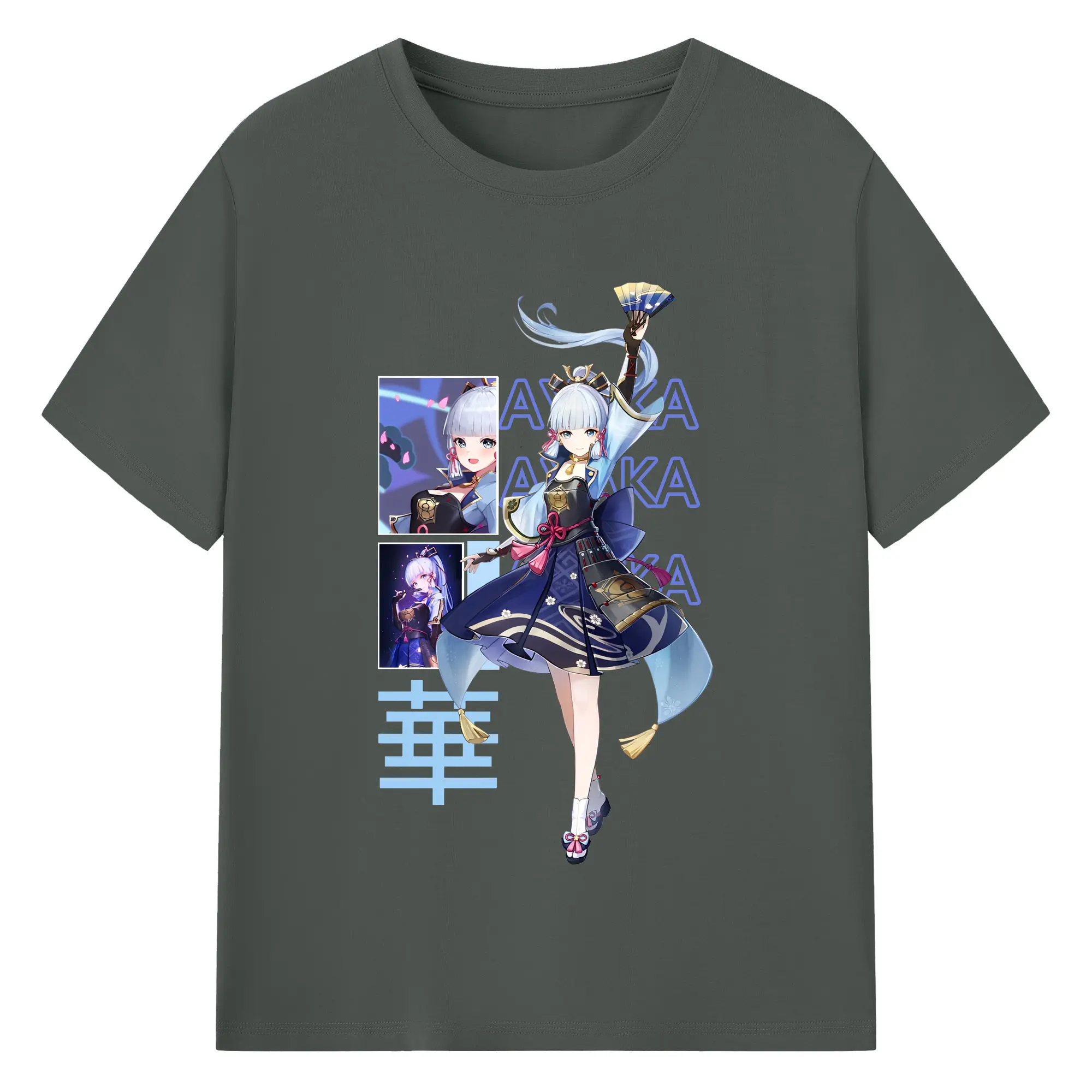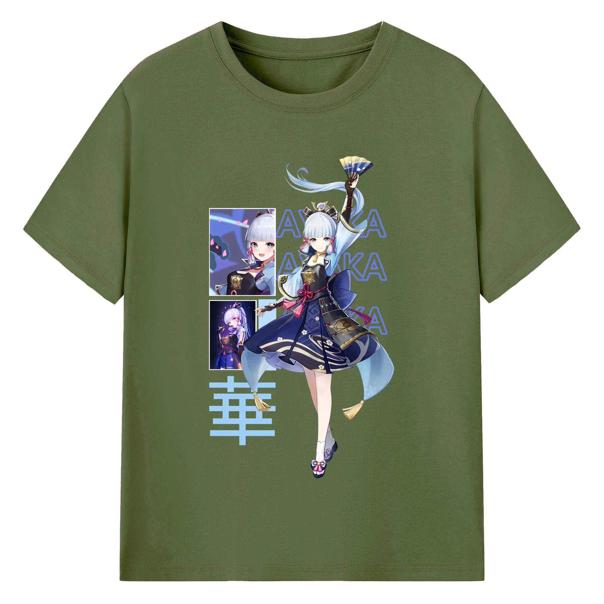 原神 神里綾華 人気キャラクター 限定デザイン【2025年新作】 - 綿100% ヴィンテージ風 半袖Tシャツ ・ フロントプリント ・ 柔らか肌触り ・ 通気性 快適 ・ スポーツ カジュアル 外出用