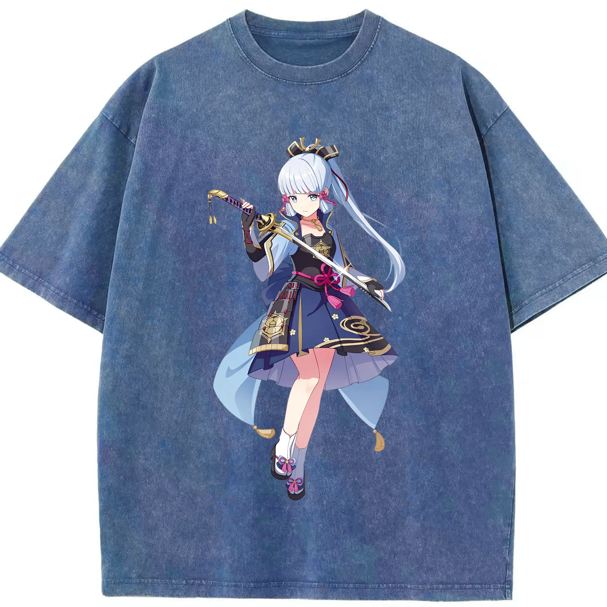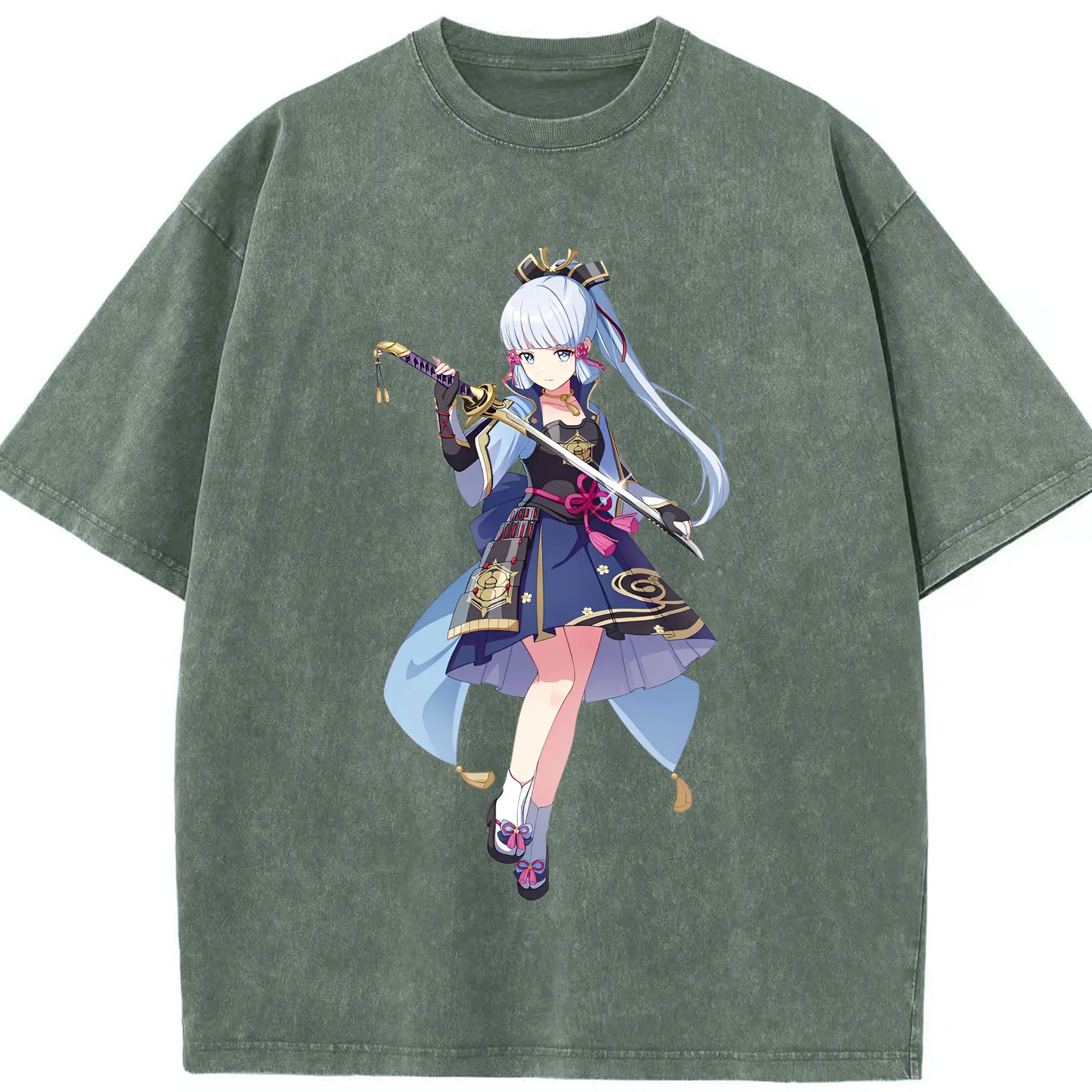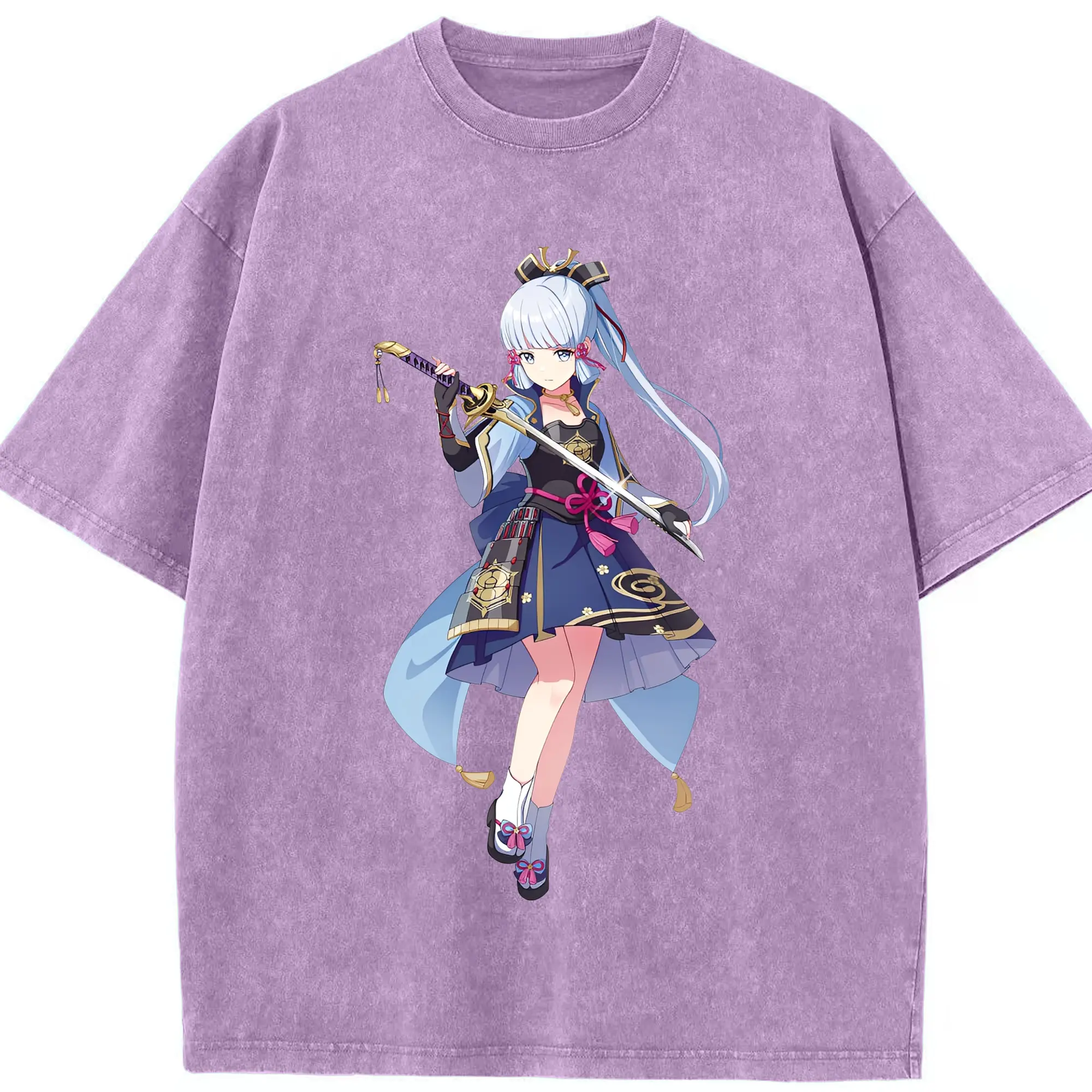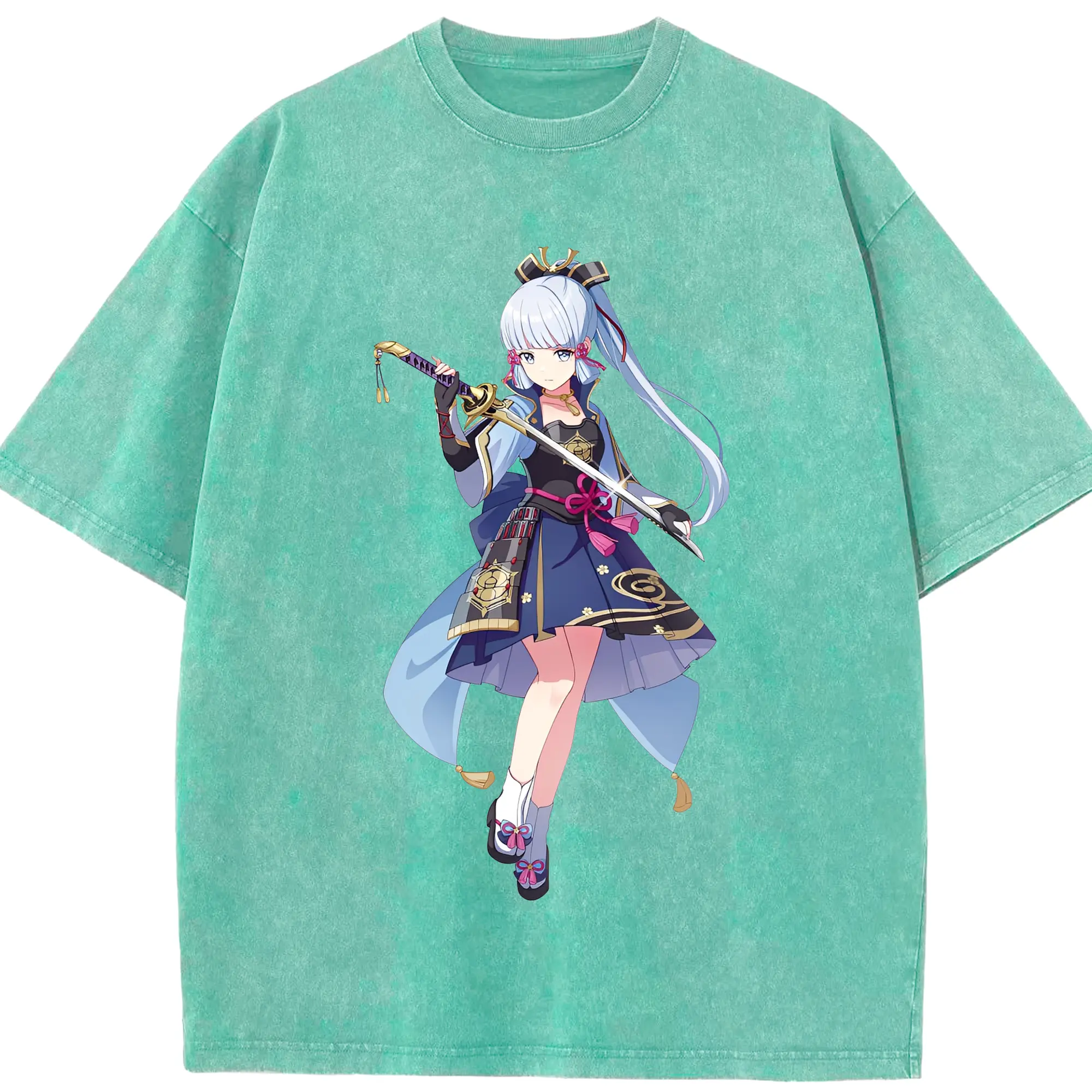 原神 神里綾華 大人気キャラクター 新作ファングッズ - 綿100% 半袖Tシャツ ・ フロントプリント ・ 快適 通気性 ・ 日常使い 散歩 スポーツ用