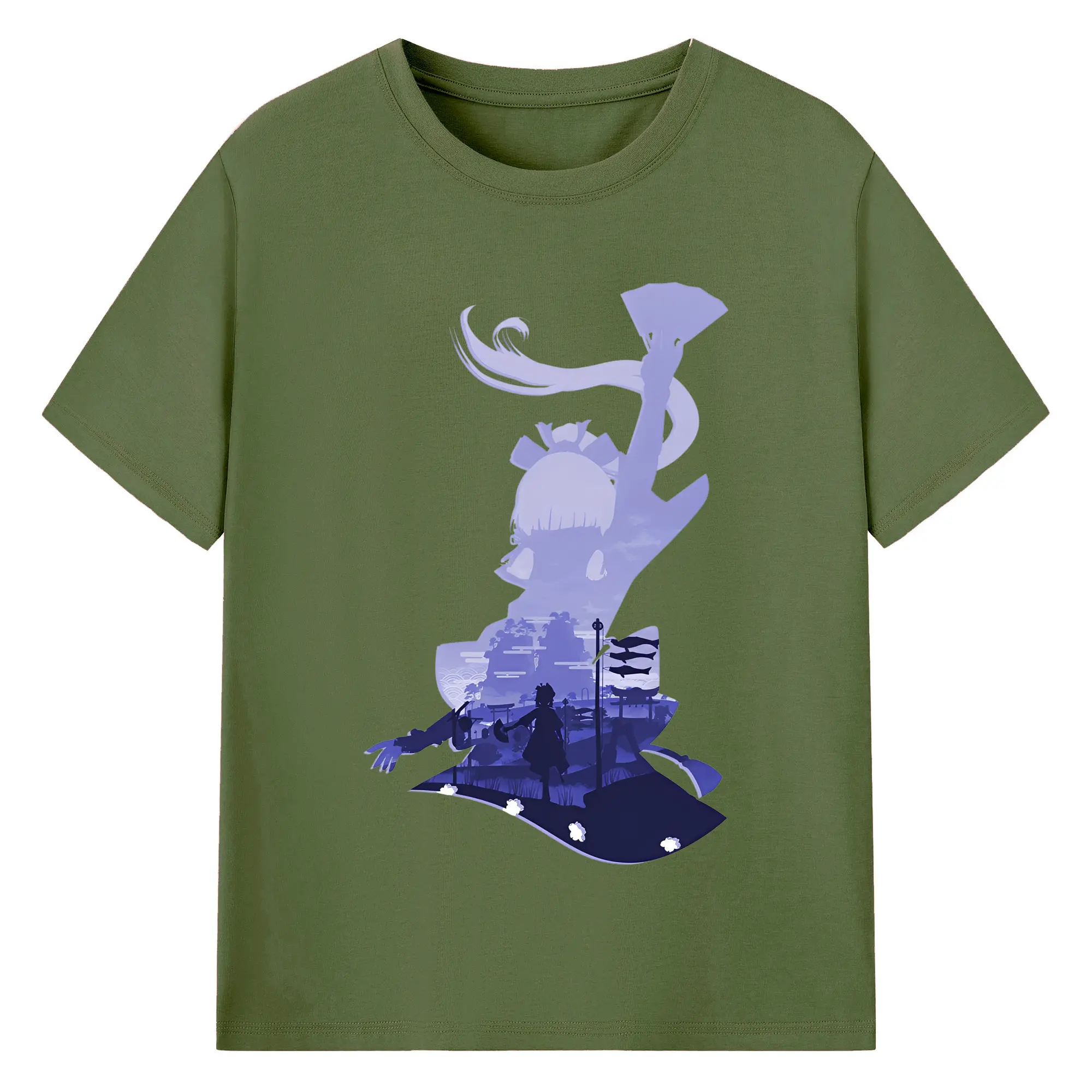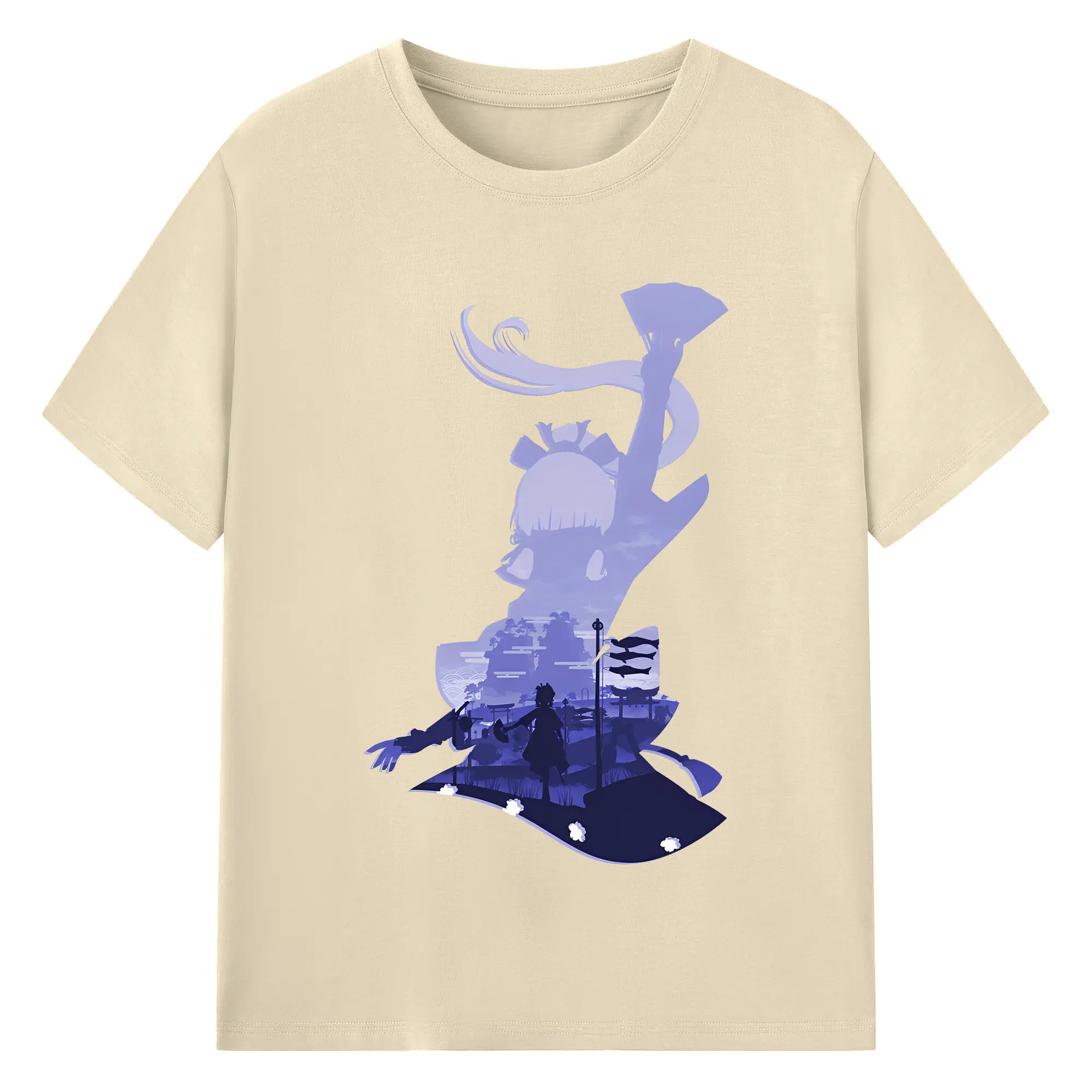 原神 神里綾華 新作アパレル 2025 トレンドコスパ最高 - 綿100% ヴィンテージ風 半袖Tシャツ ・ フロントプリント ・ 柔らか肌触り ・ 通気性 快適 ・ スポーツ カジュアル 外出用