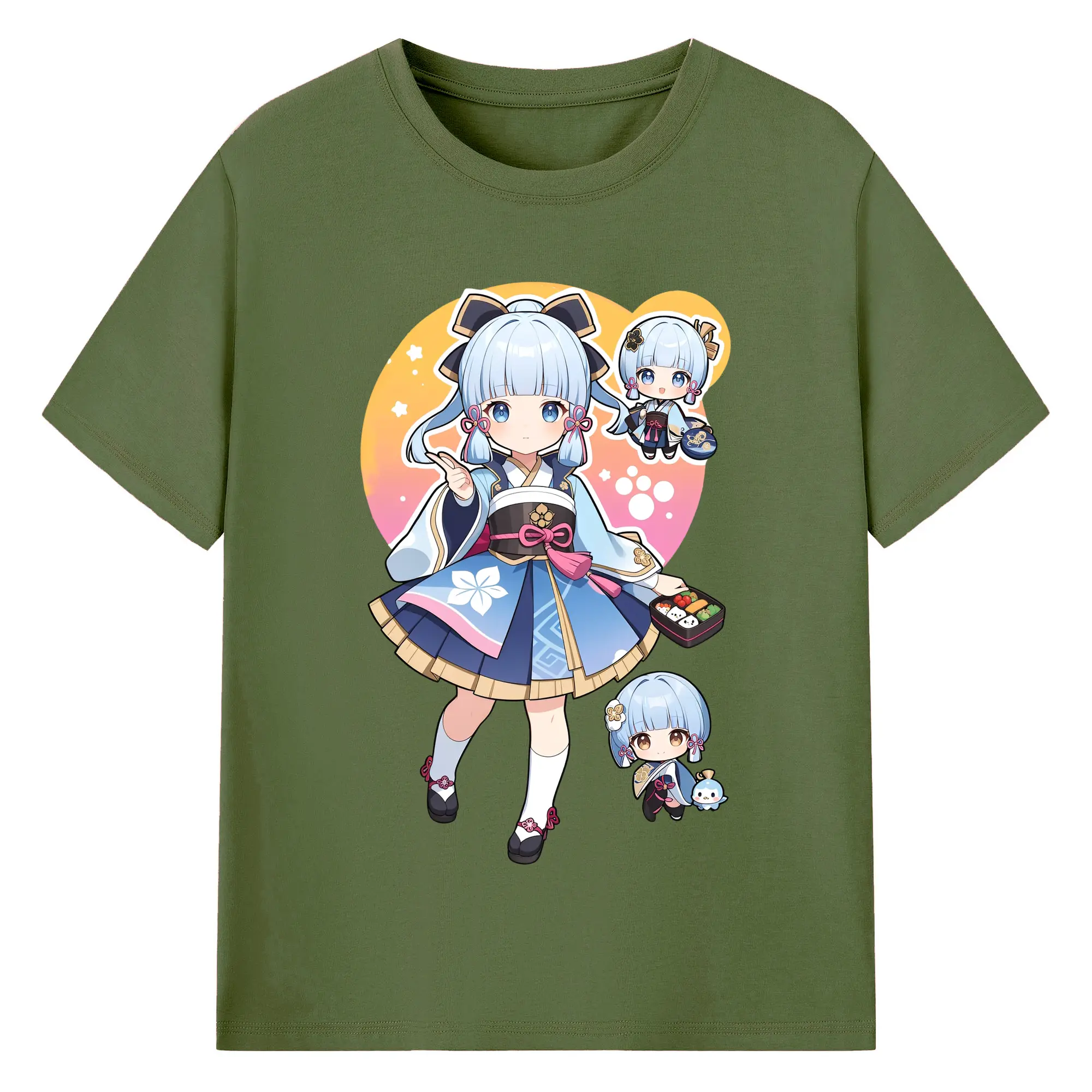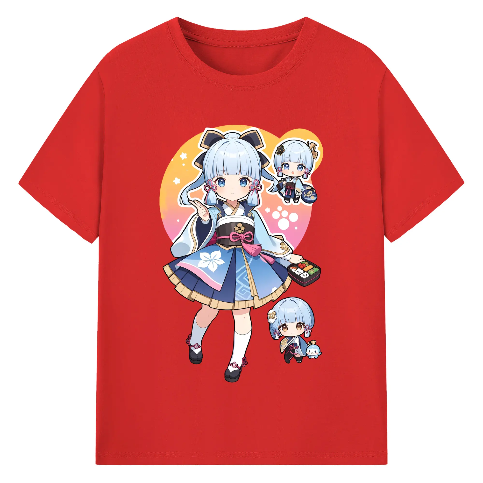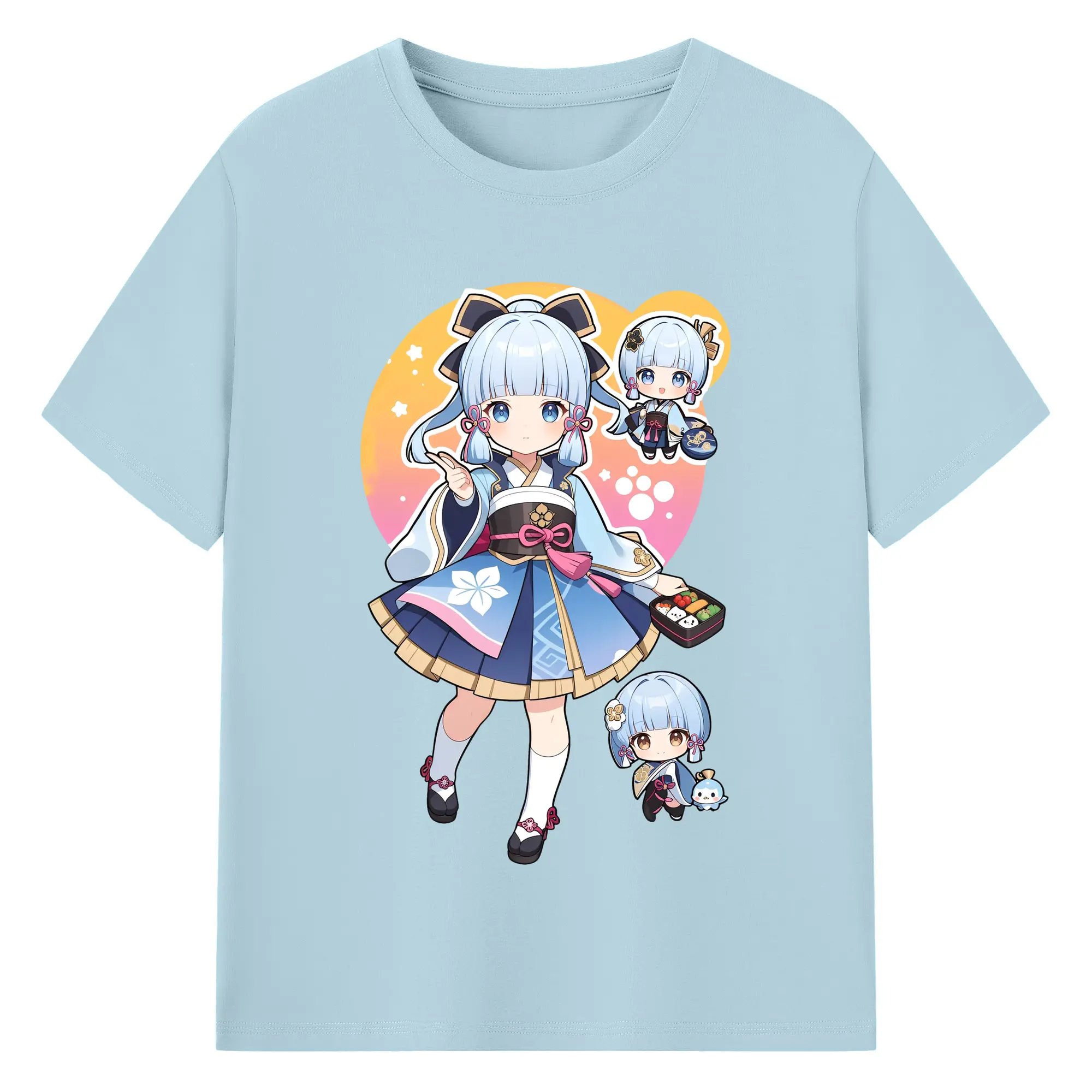 原神 神里綾華 限定デザイン グッズ 可愛いキャラクター - 綿100% 半袖Tシャツ ・ フロントプリント ・ 快適 通気性 ・ 日常使い 散歩 スポーツ用