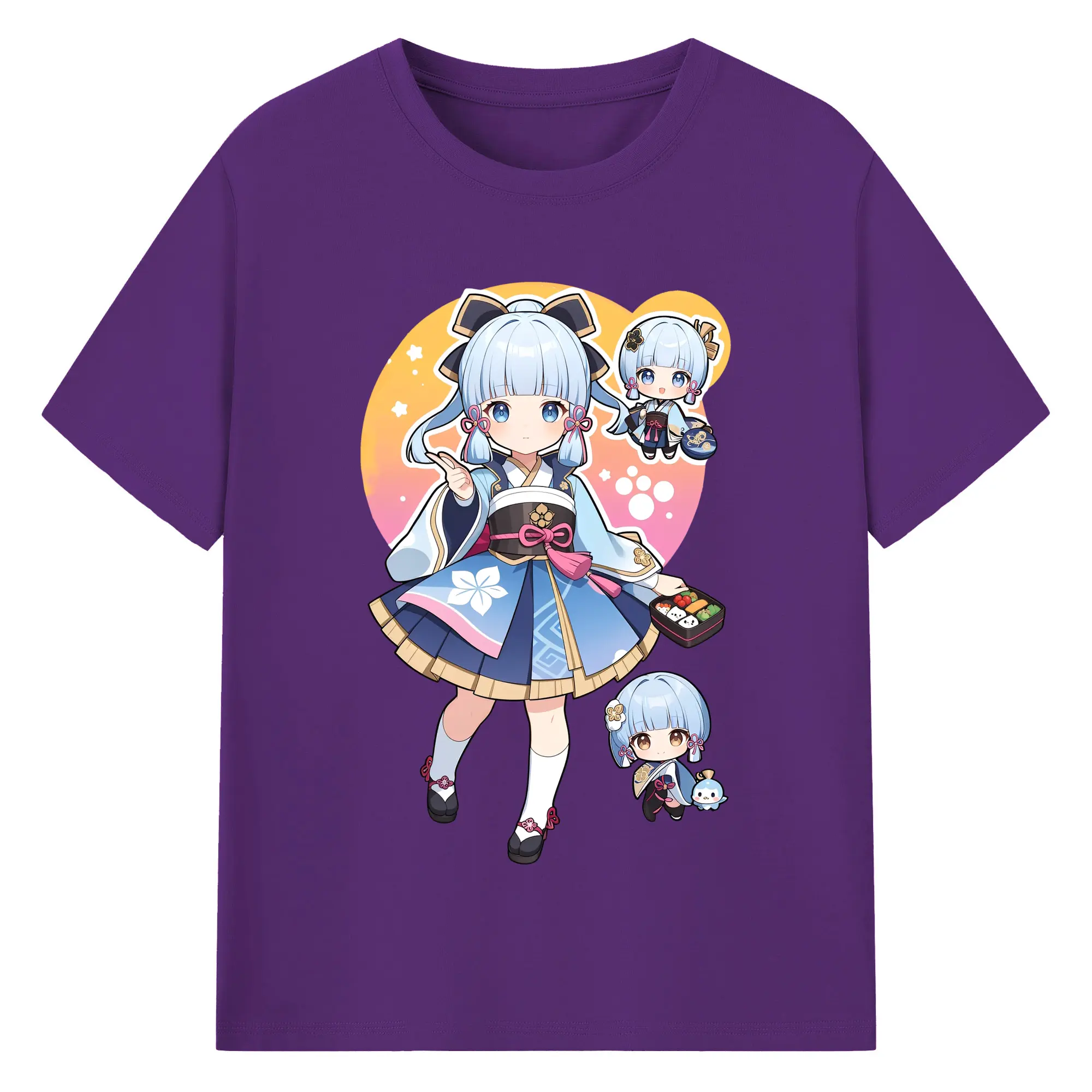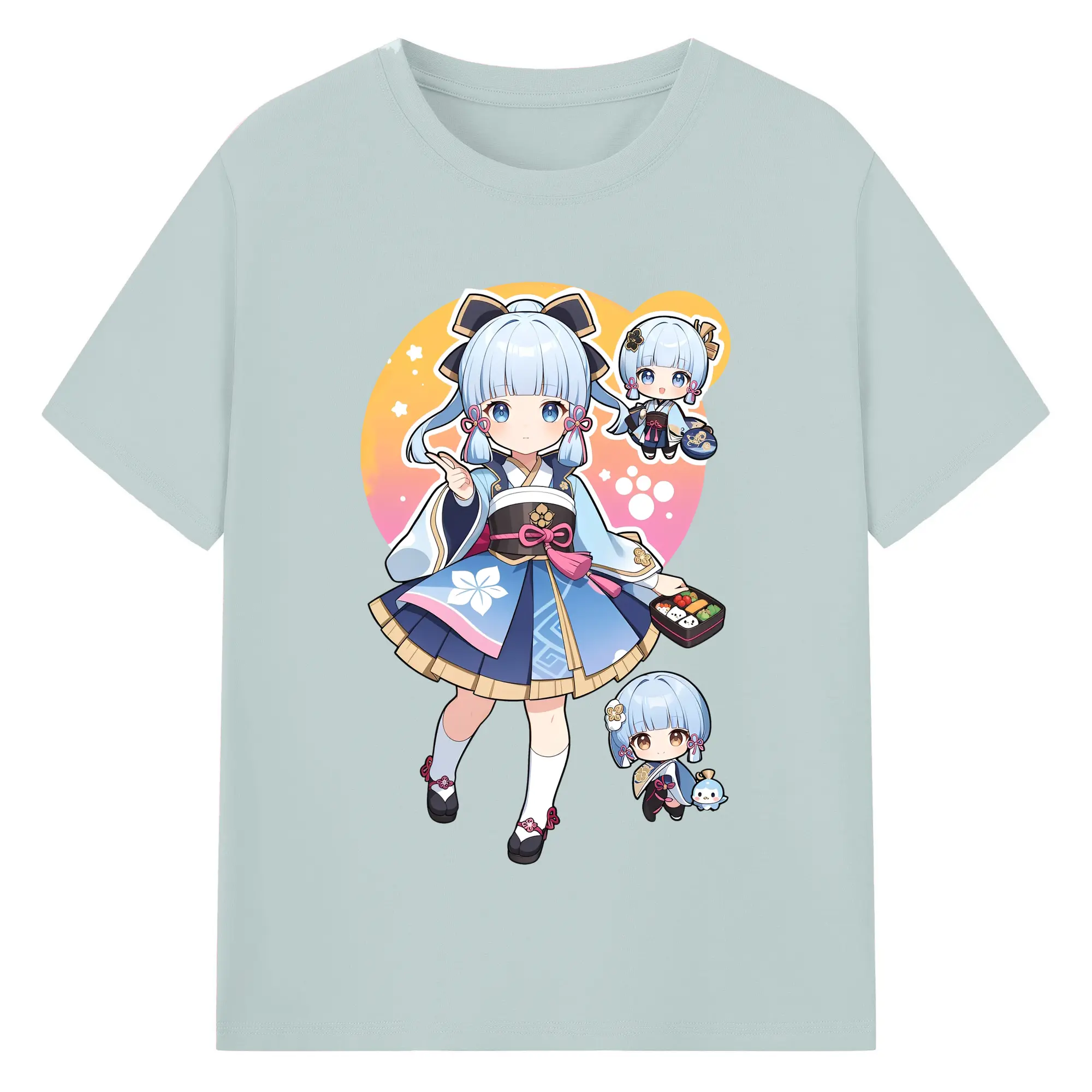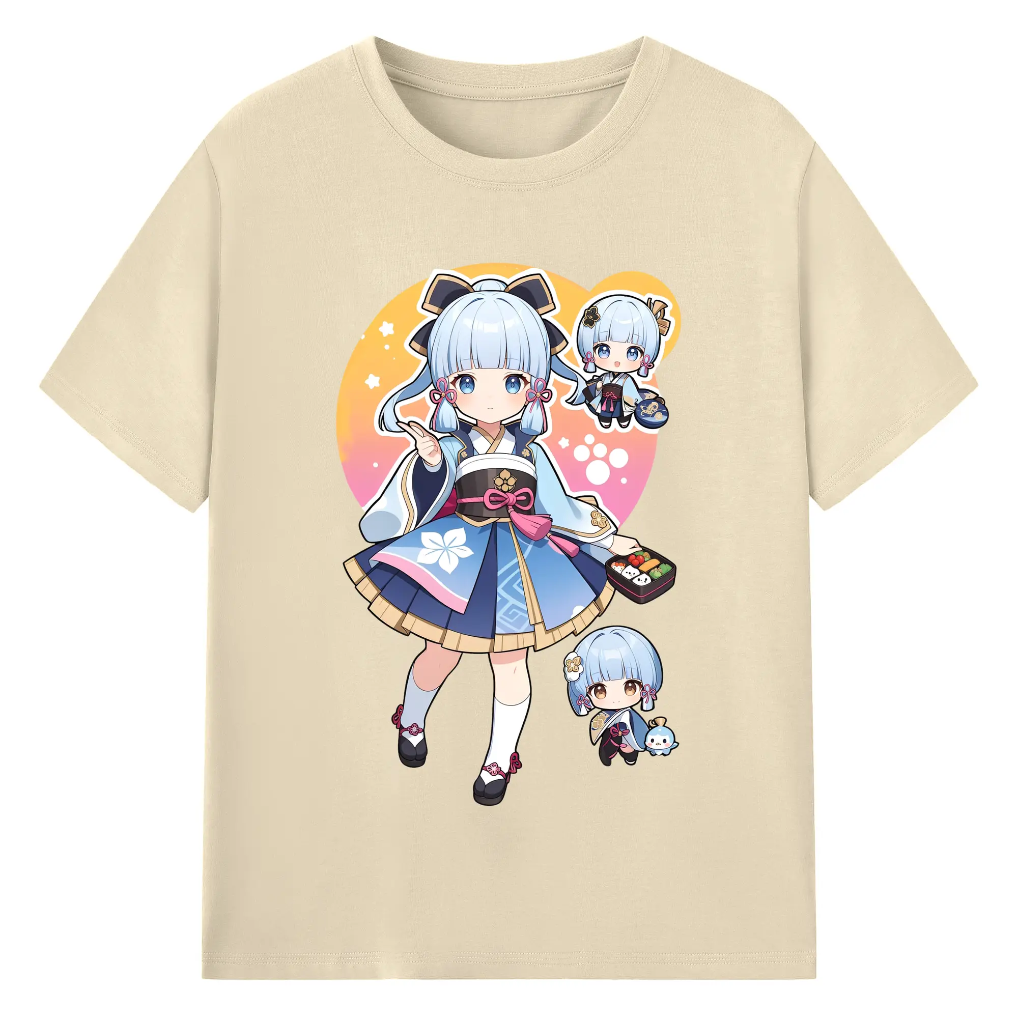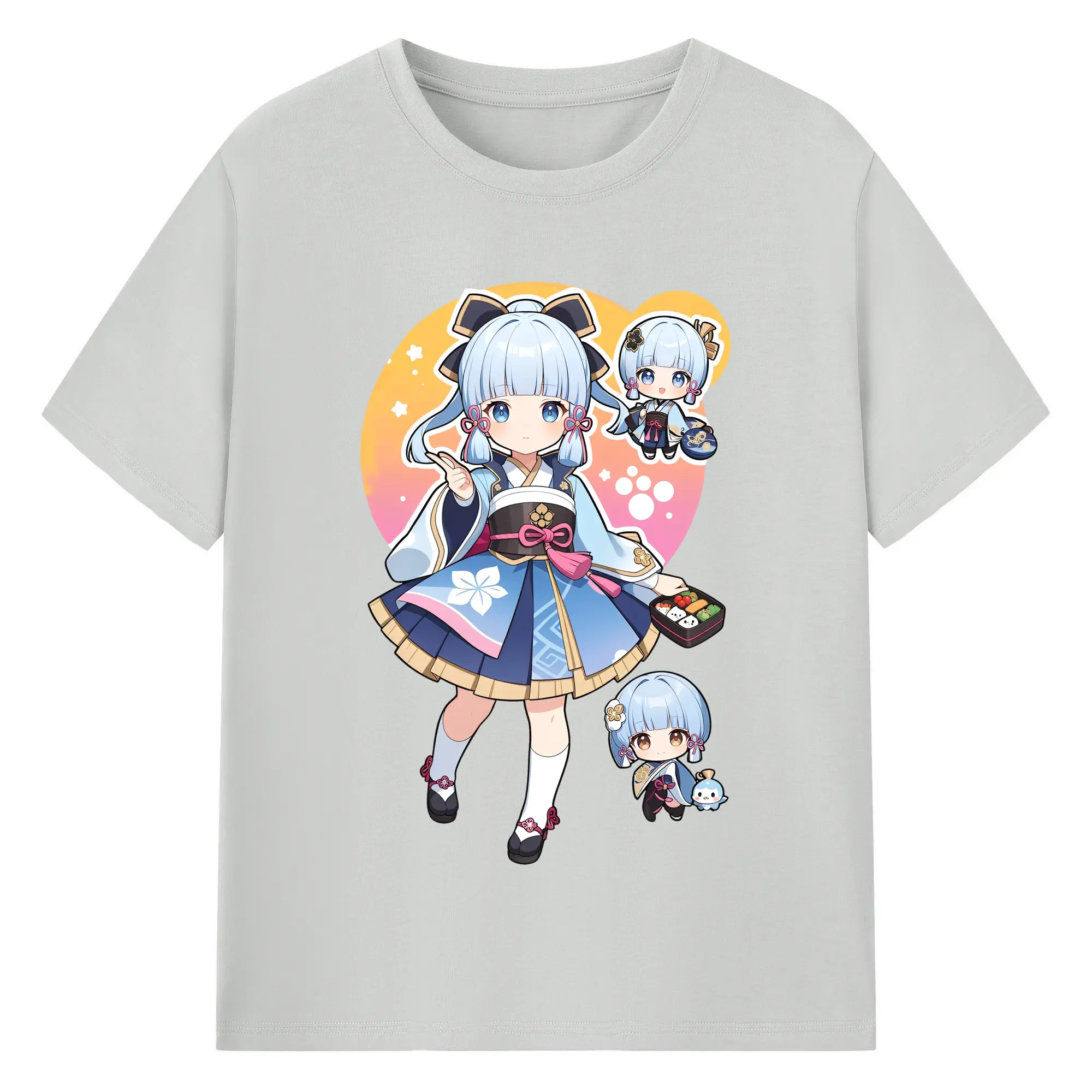 原神 神里綾華 Q版キャラクターキュートデザイン 推し活グッズ - 綿100% ヴィンテージ風 半袖Tシャツ ・ フロントプリント ・ 柔らか肌触り ・ 通気性 快適 ・ スポーツ カジュアル 外出用