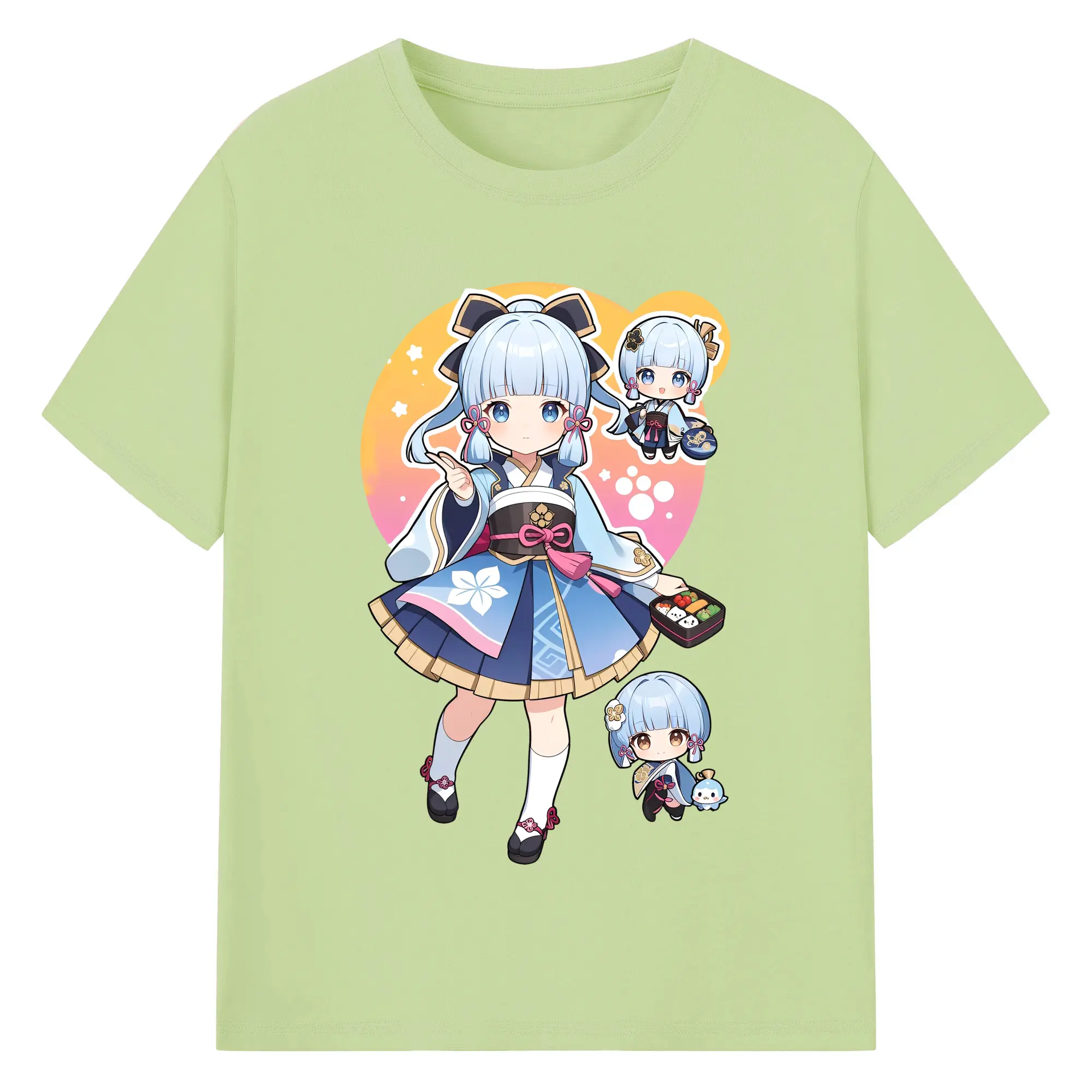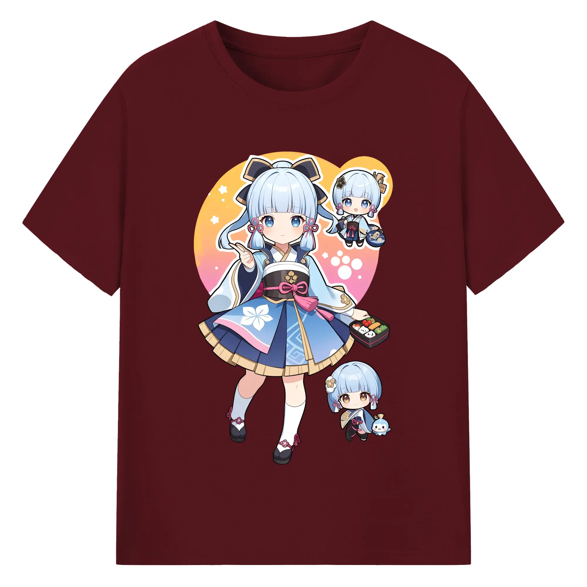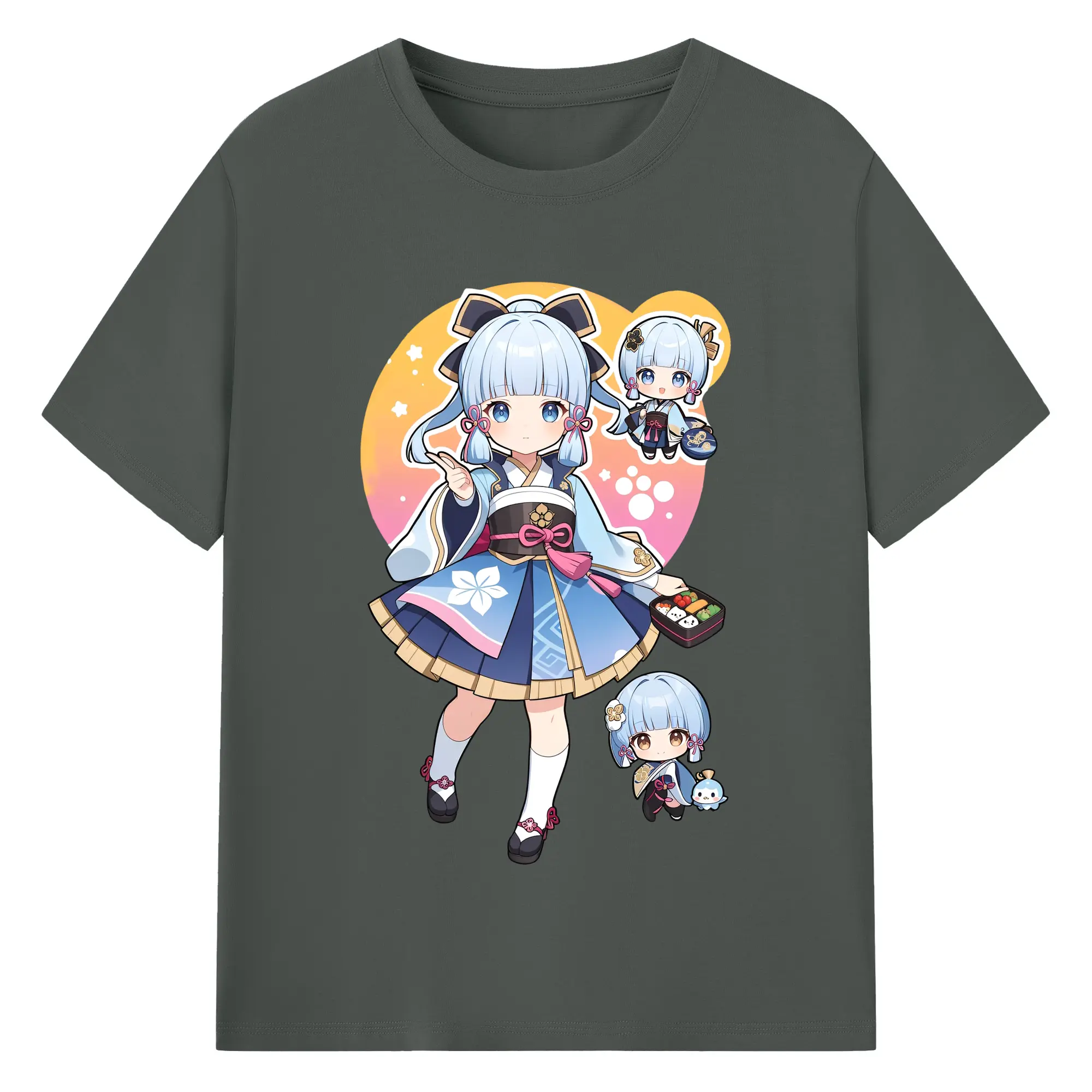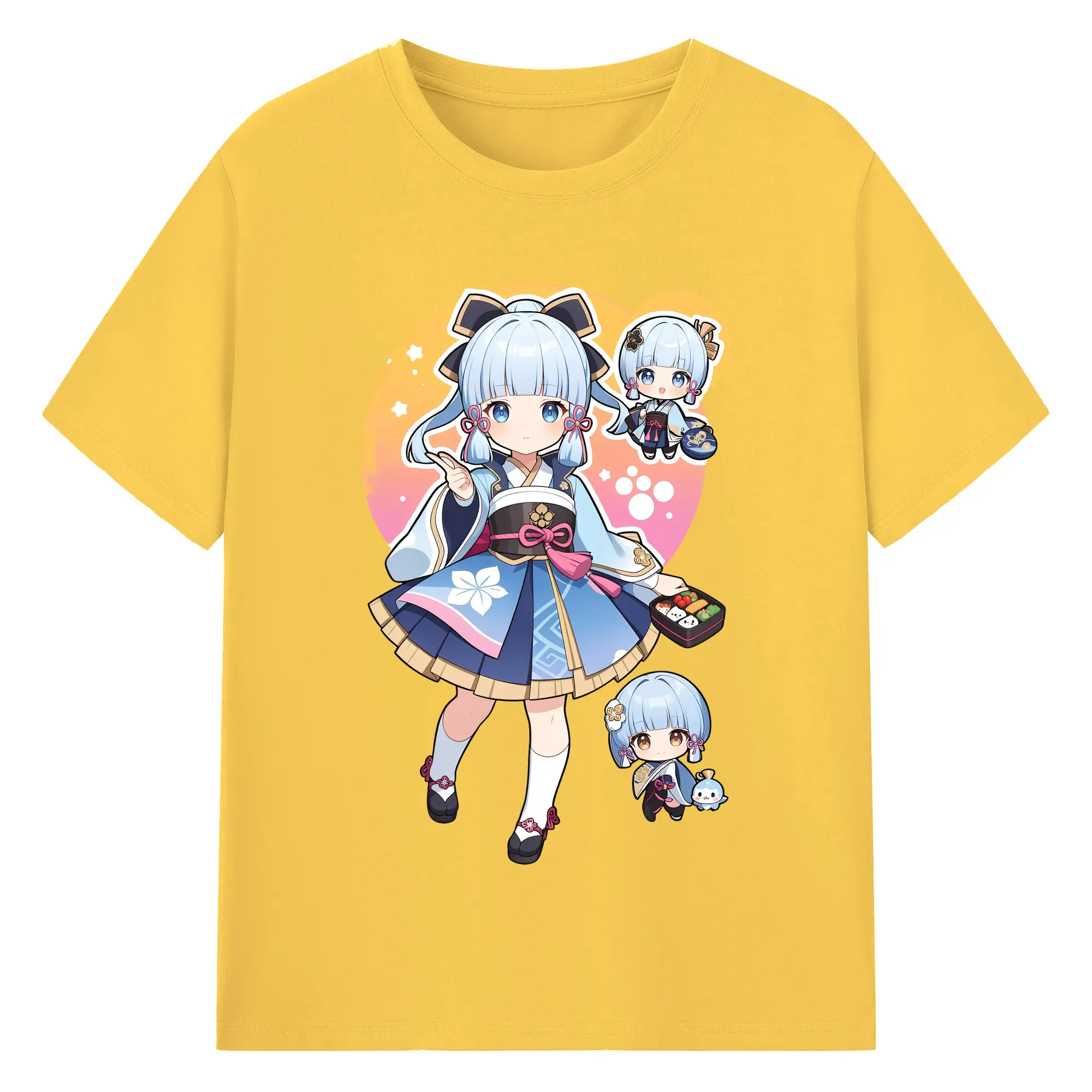 原神 神里綾華 Q版キャラクターキュートデザイン 推し活グッズ - 綿100% ヴィンテージ風 半袖Tシャツ ・ フロントプリント ・ 柔らか肌触り ・ 通気性 快適 ・ スポーツ カジュアル 外出用