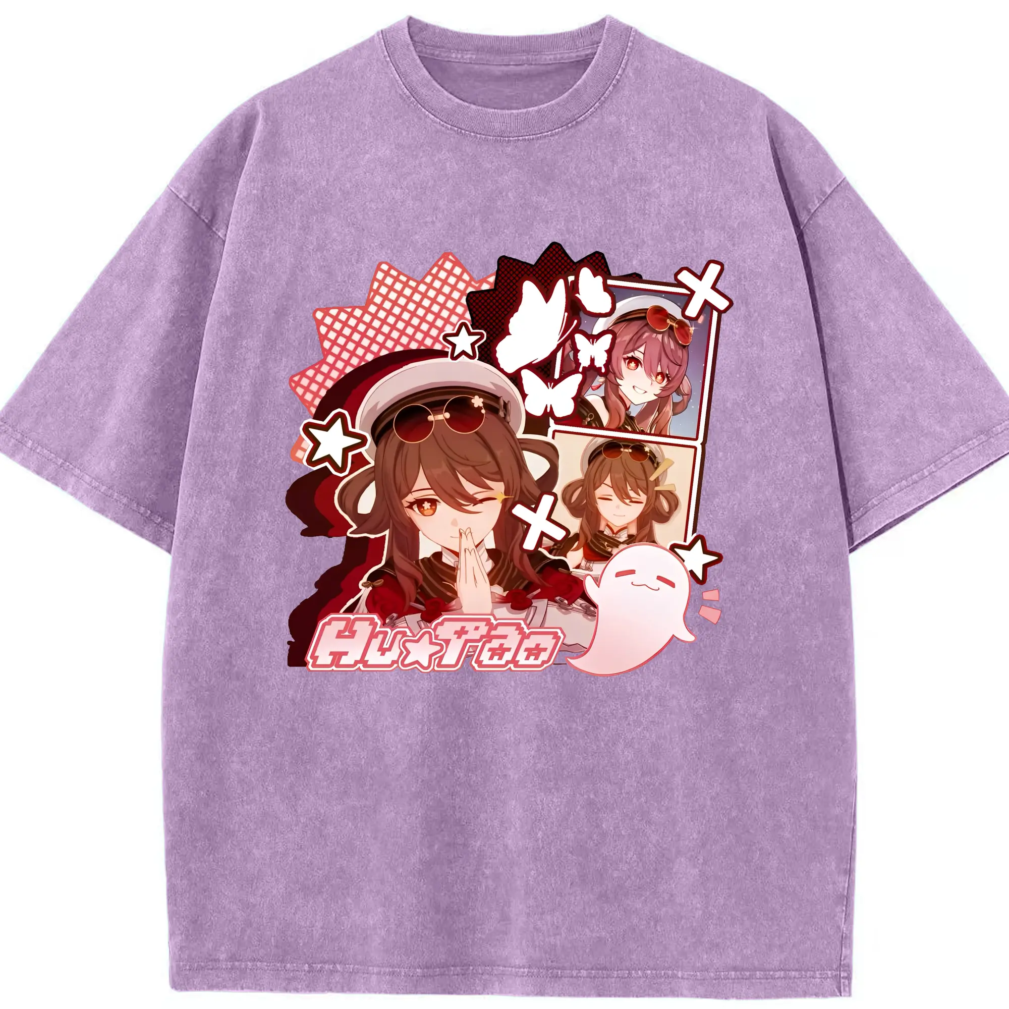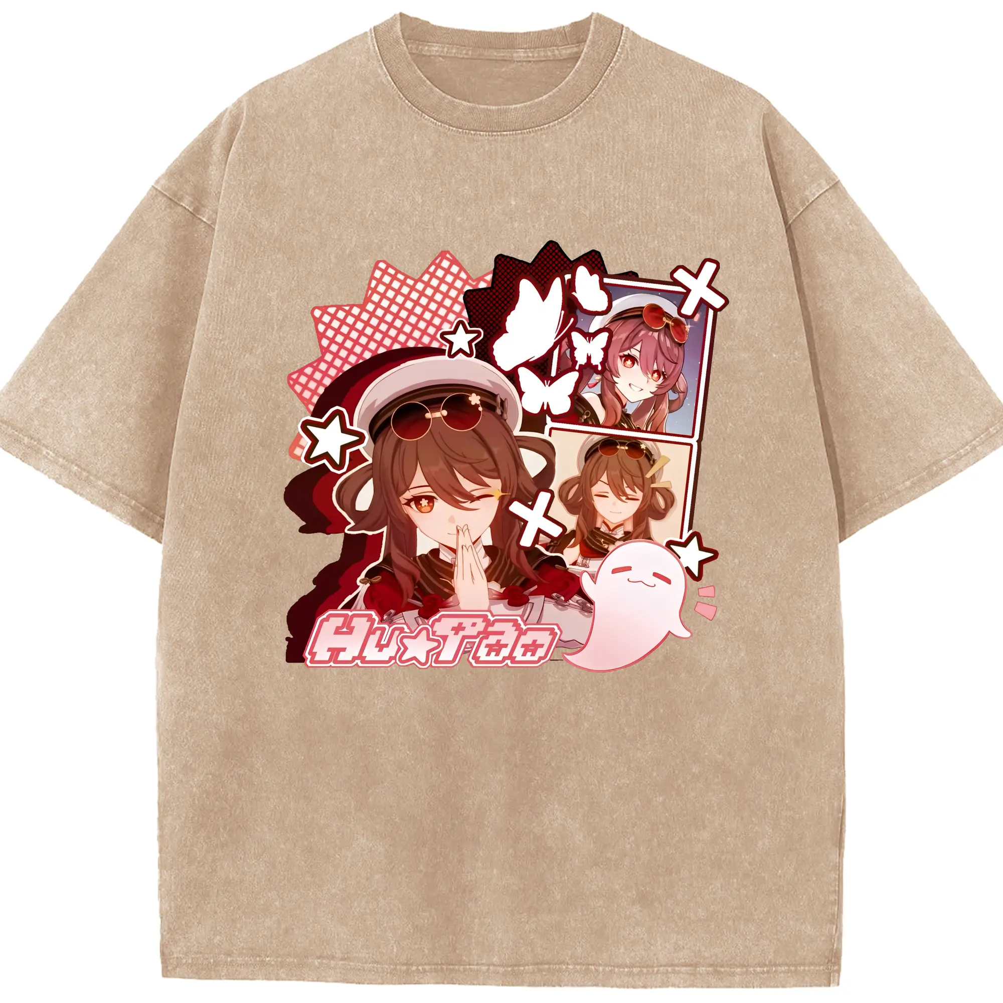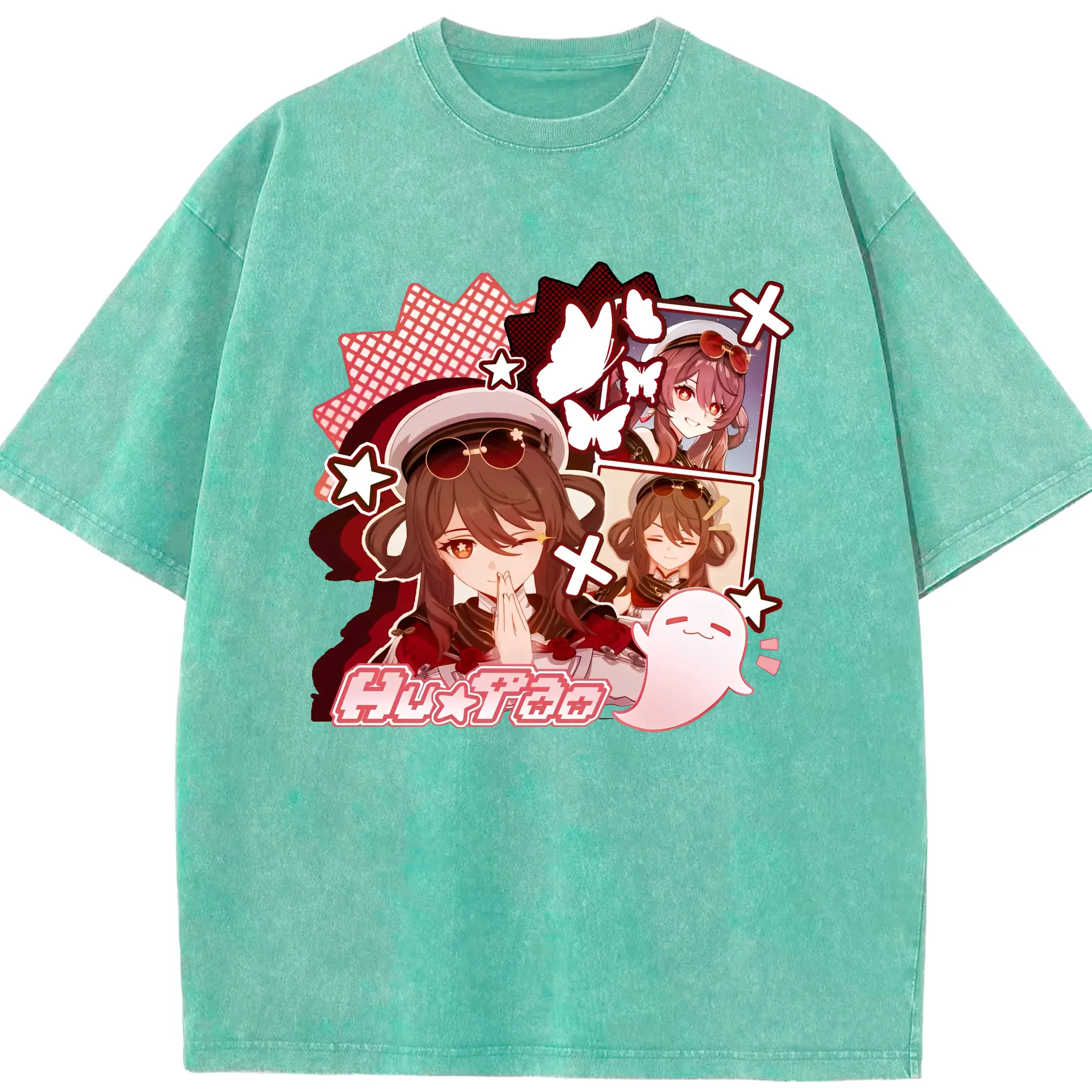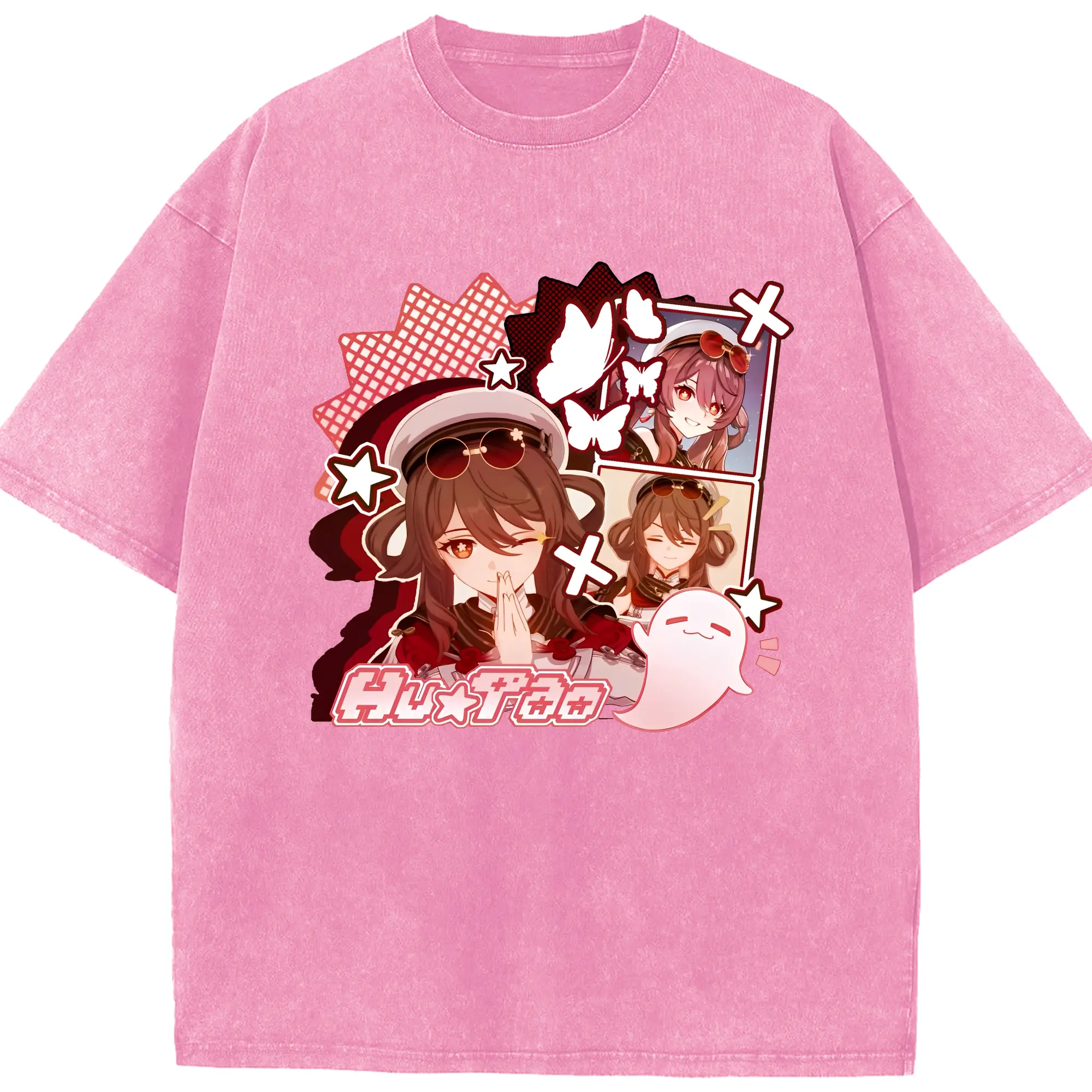 原神 胡桃 ゆるかわアート - 綿100% 半袖Tシャツ ・ フロントプリント ・ 快適 通気性 ・ 日常使い 散歩 スポーツ用