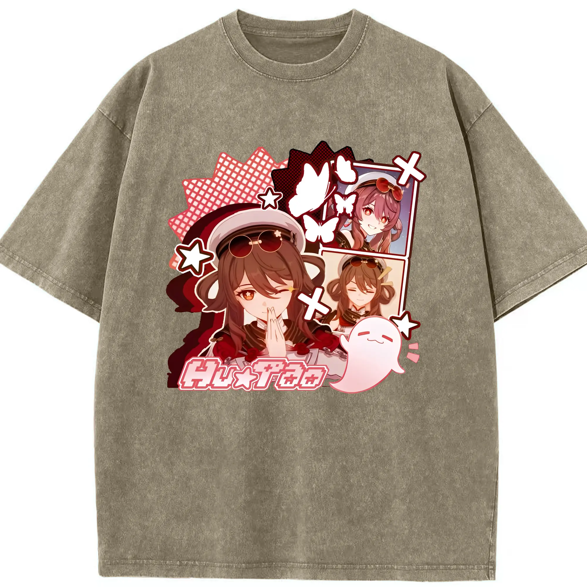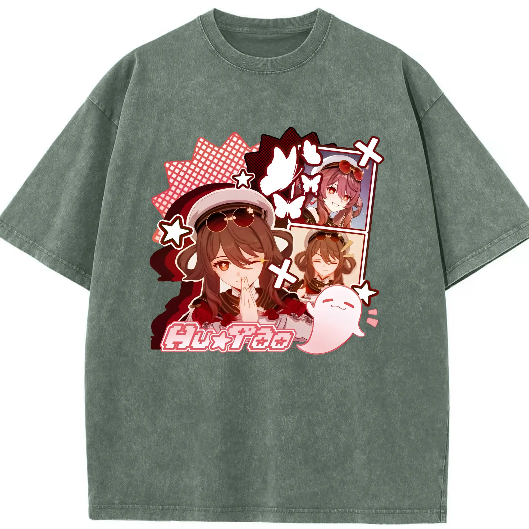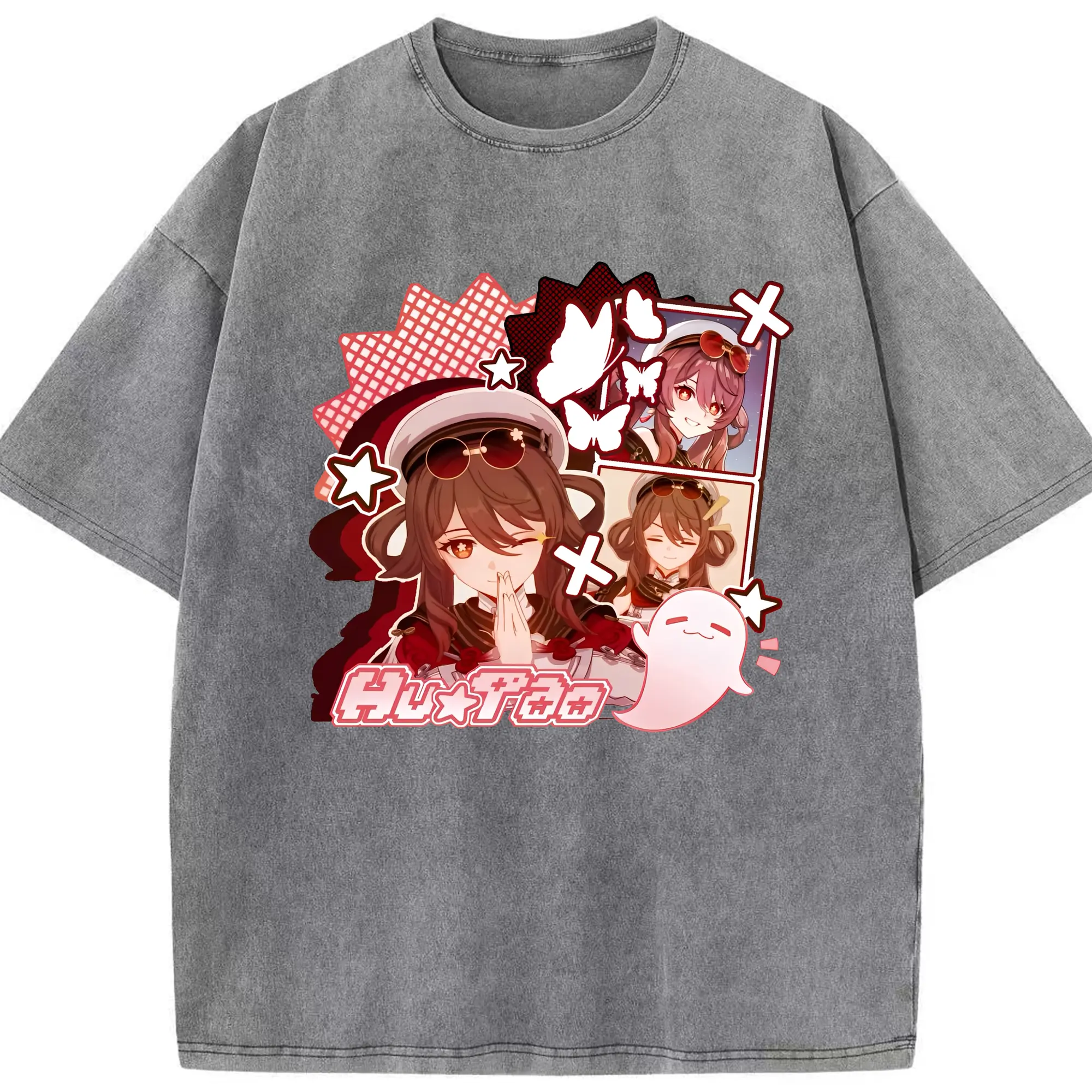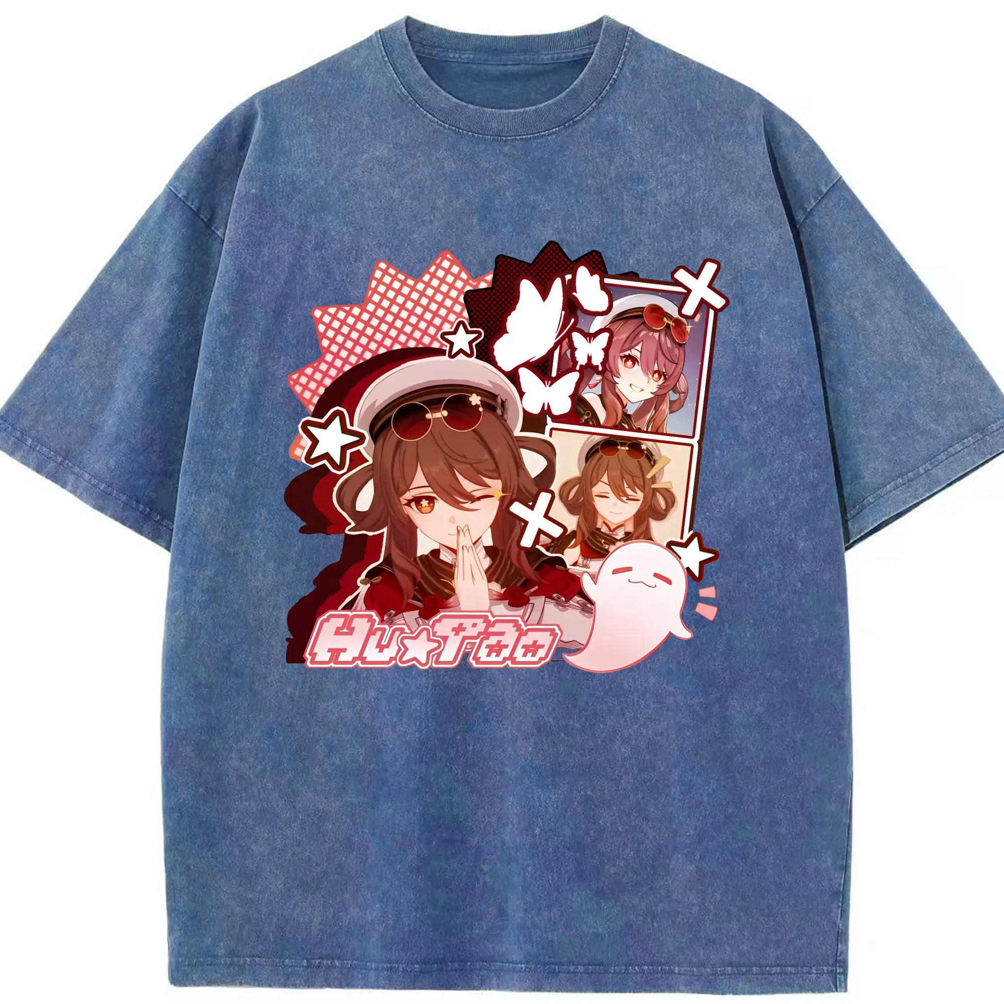原神 胡桃 ゆるかわアート - 綿100% 半袖Tシャツ ・ フロントプリント ・ 快適 通気性 ・ 日常使い 散歩 スポーツ用