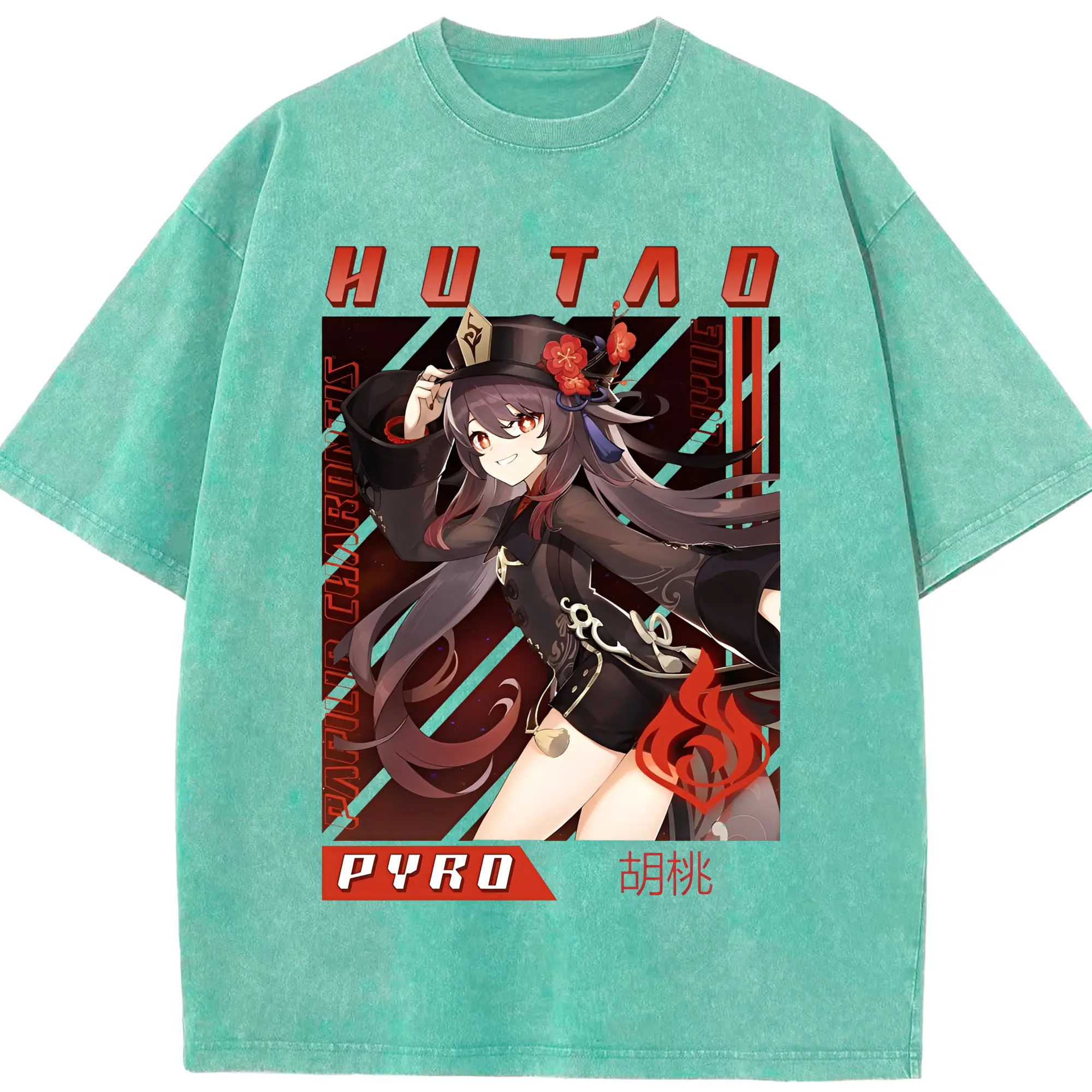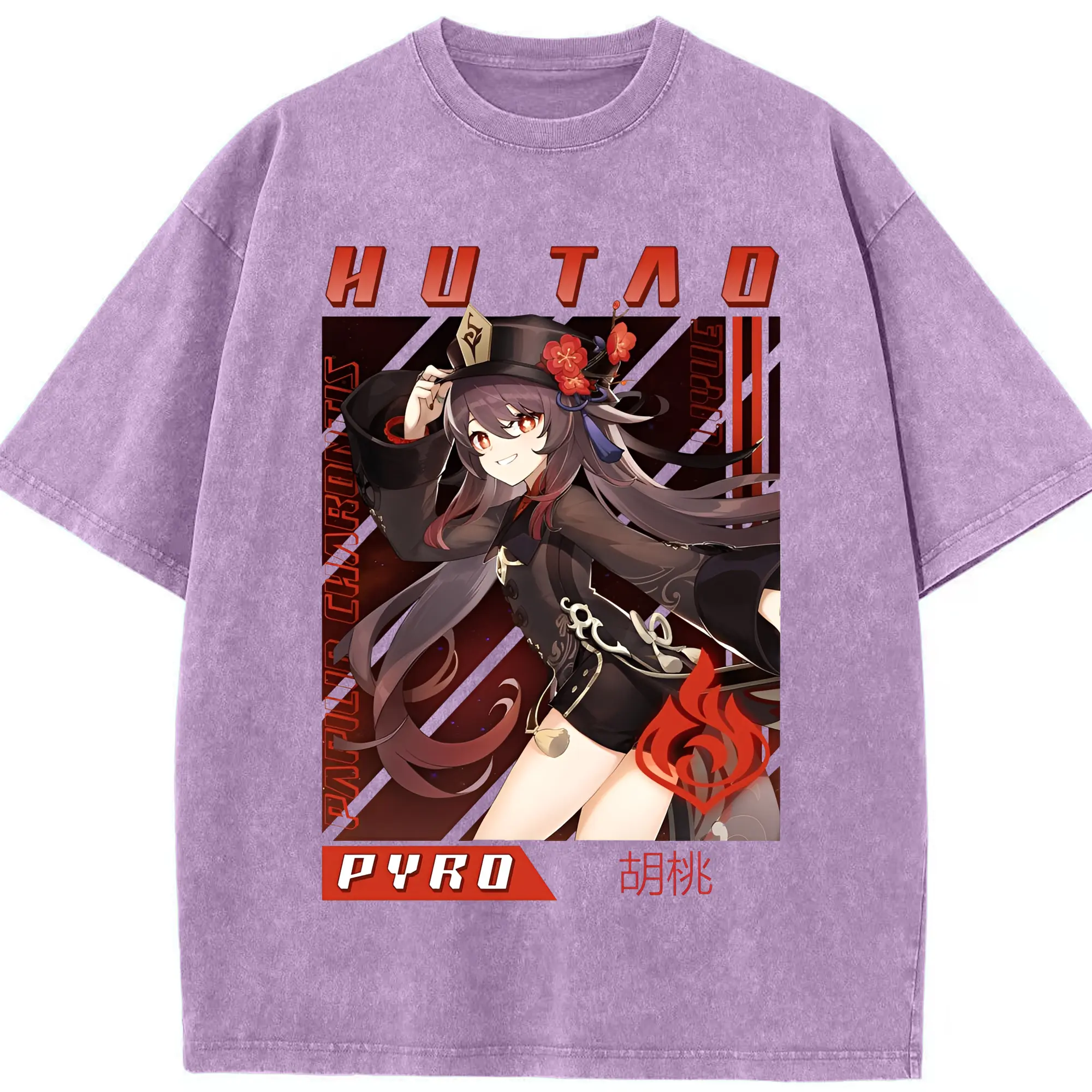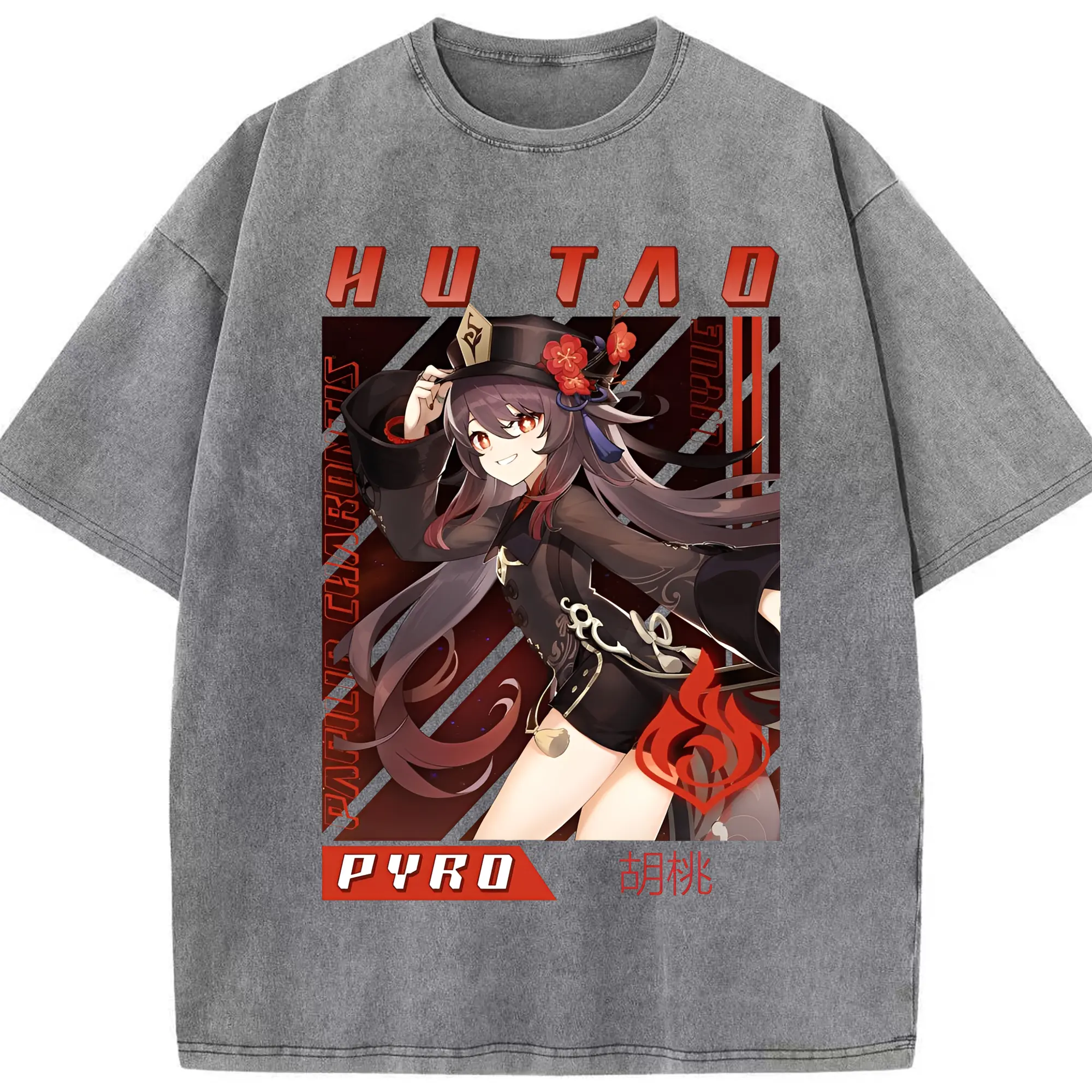 原神 胡桃 グラフィックアート - 綿100% 半袖Tシャツ ・ フロントプリント ・ 快適 通気性 ・ 日常使い 散歩 スポーツ用