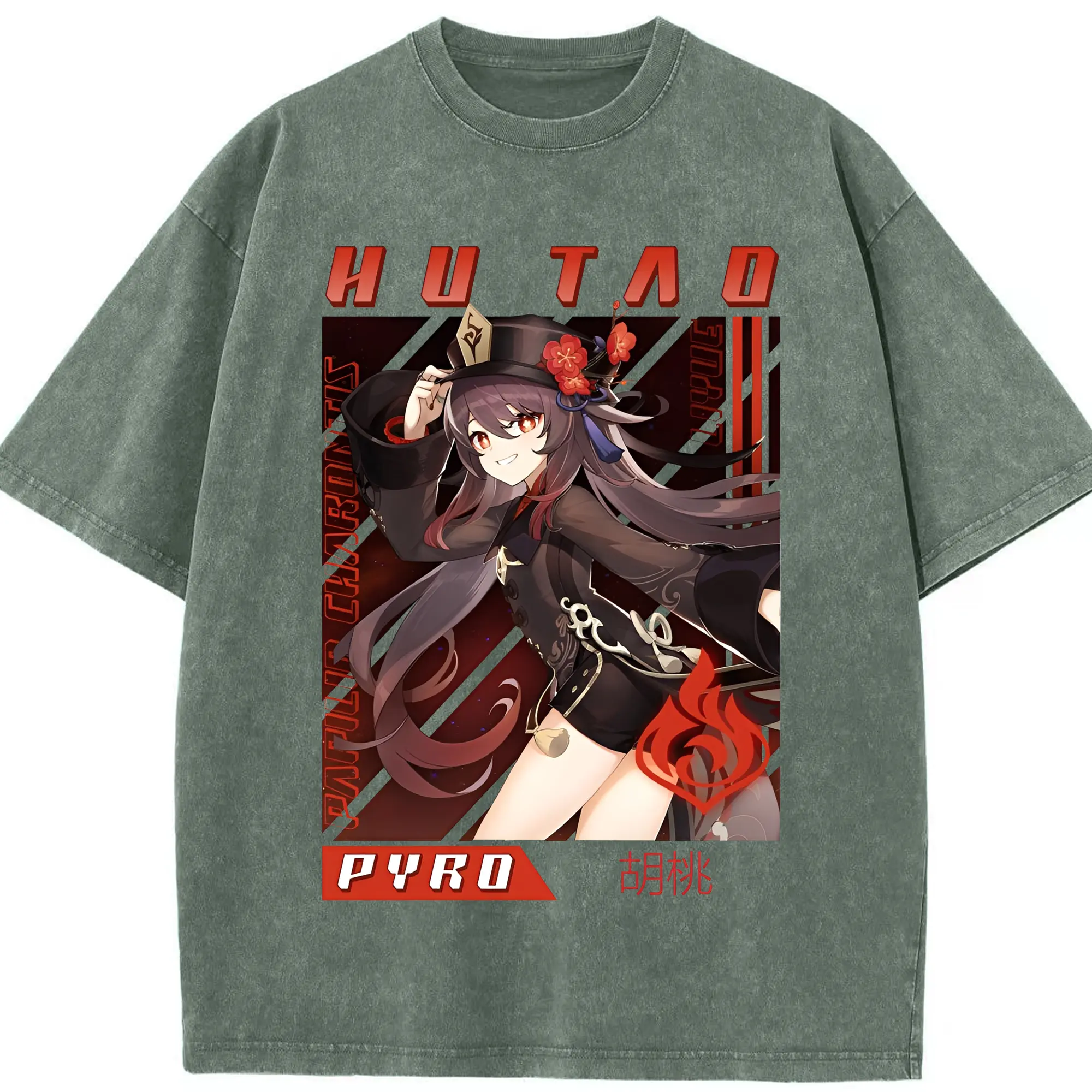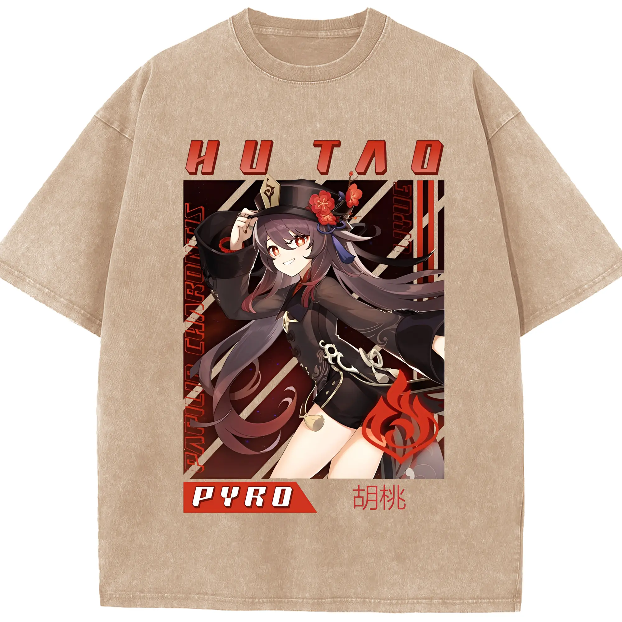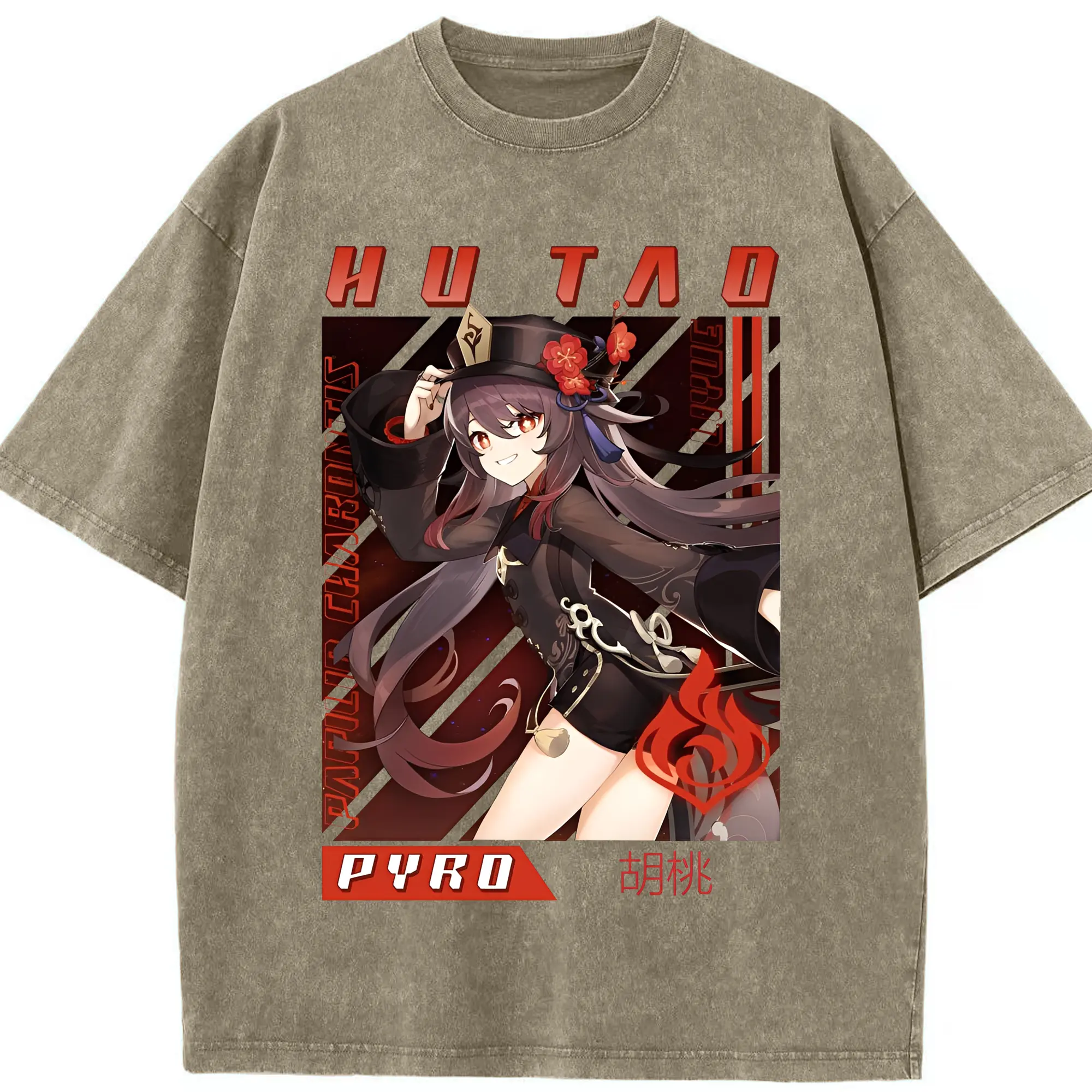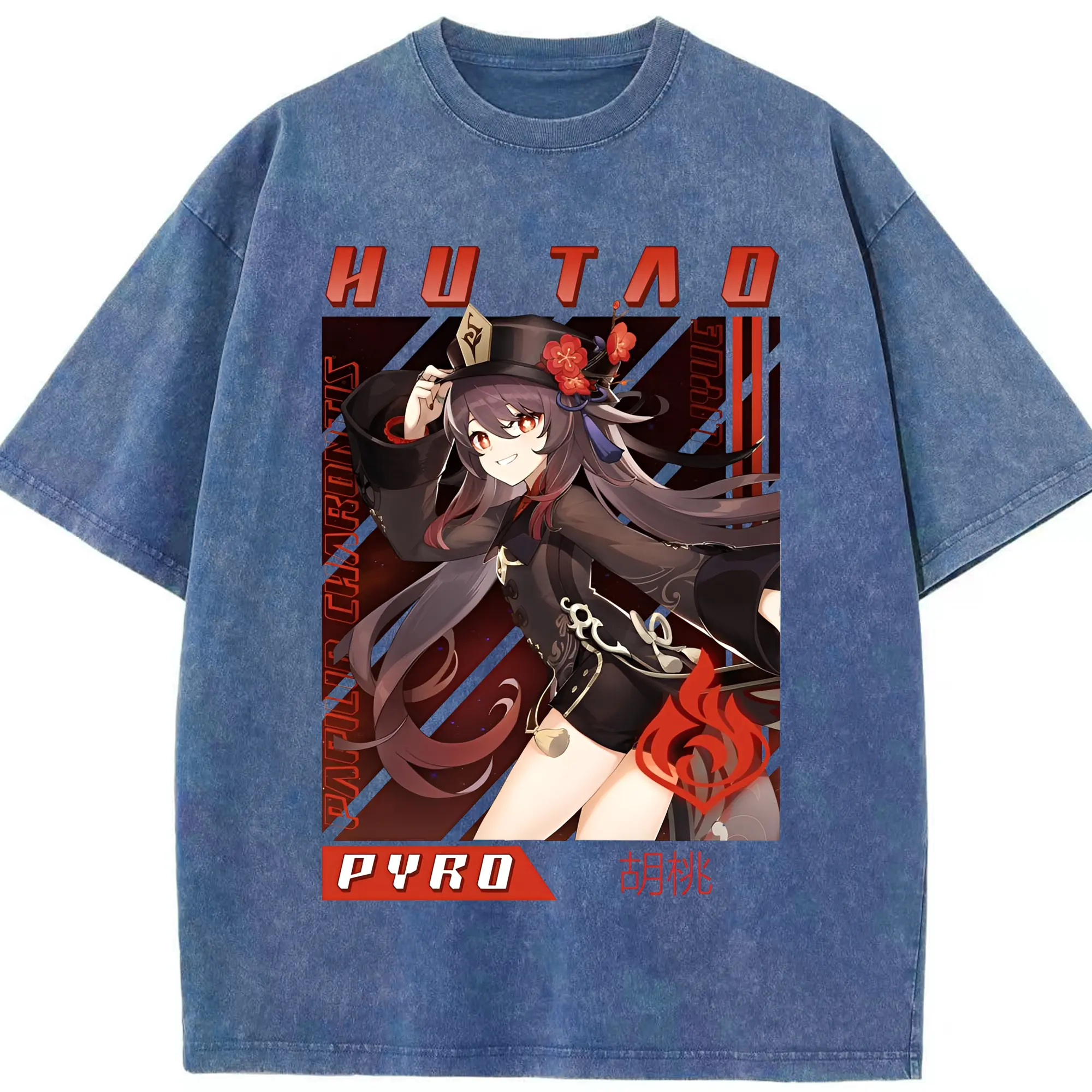 原神 胡桃 グラフィックアート - 綿100% 半袖Tシャツ ・ フロントプリント ・ 快適 通気性 ・ 日常使い 散歩 スポーツ用