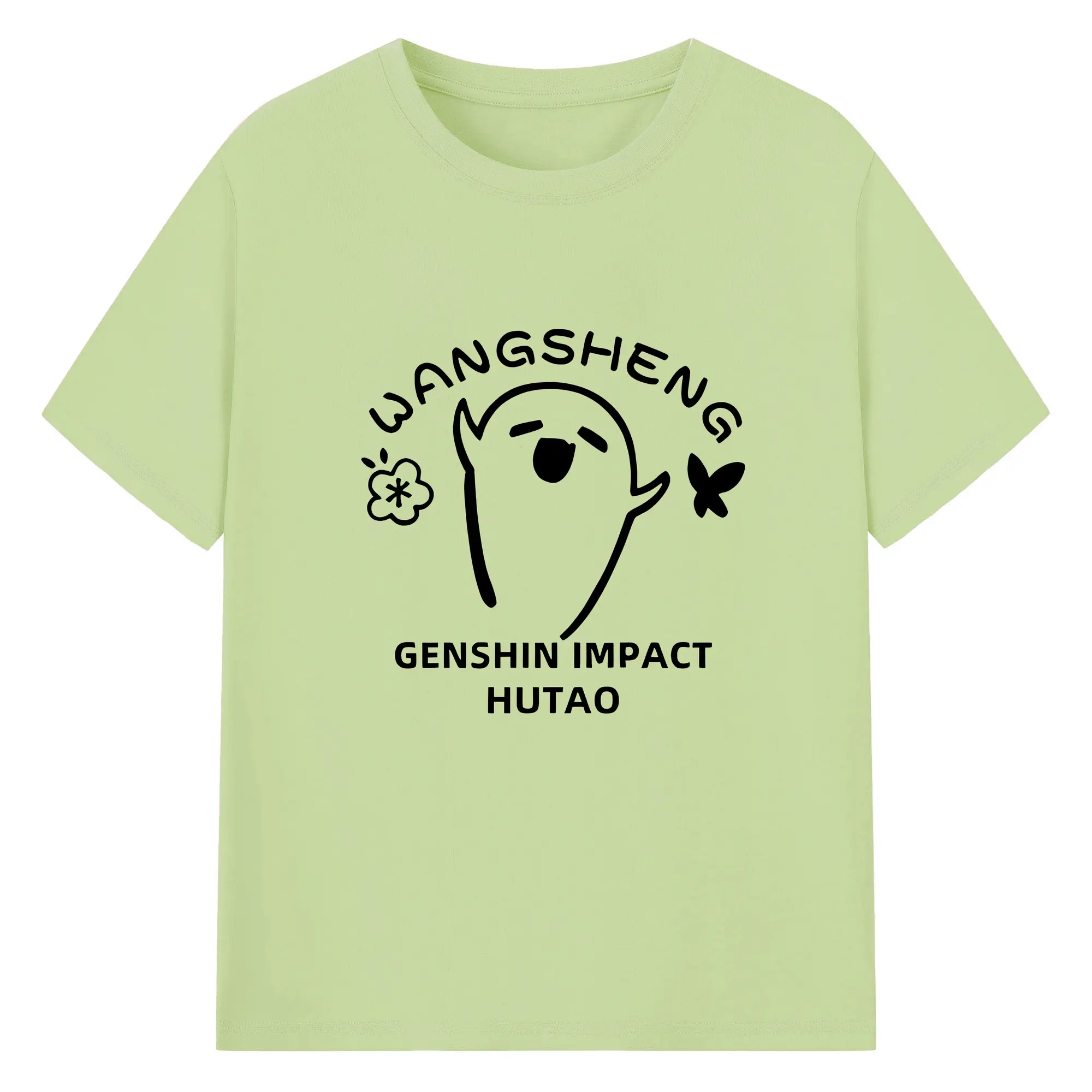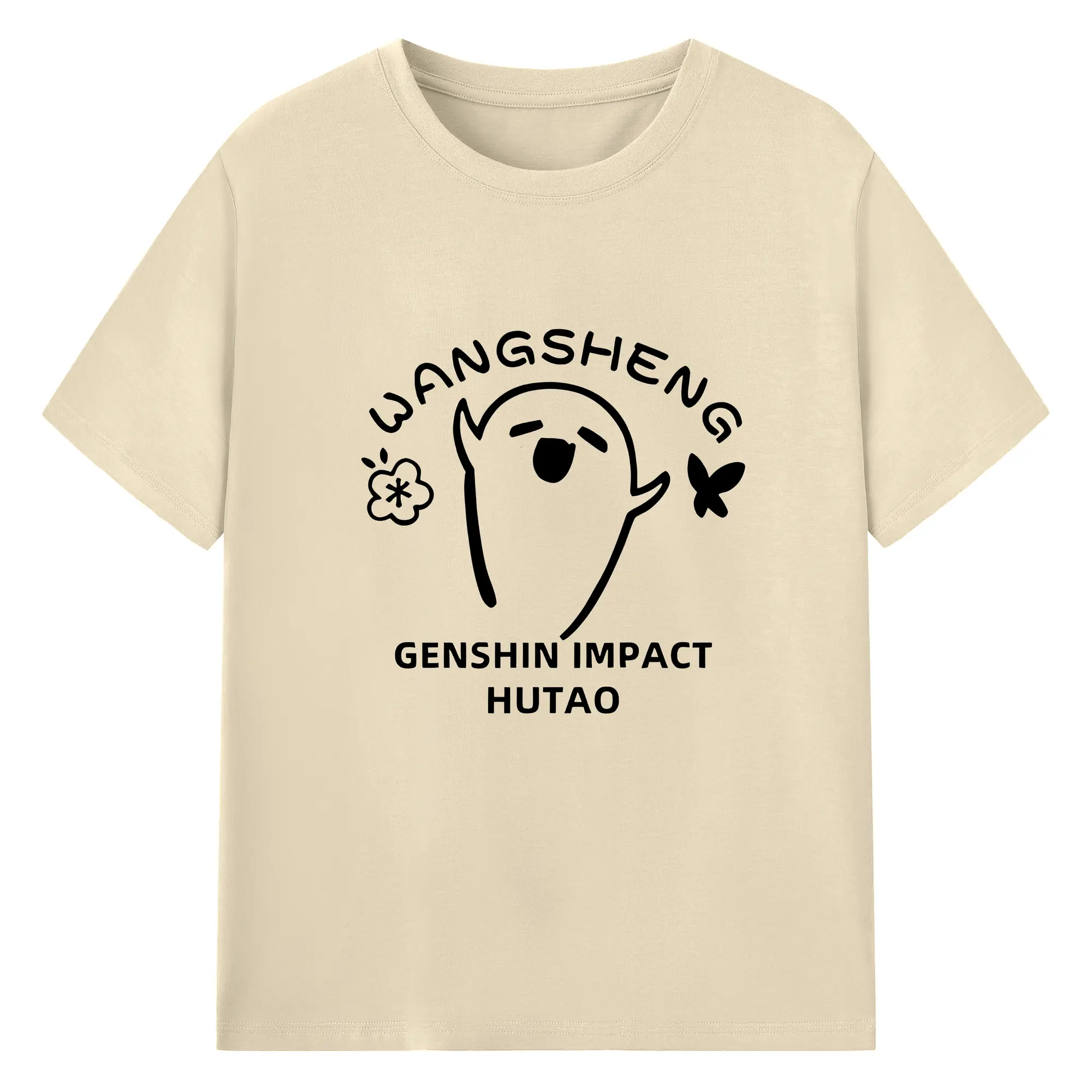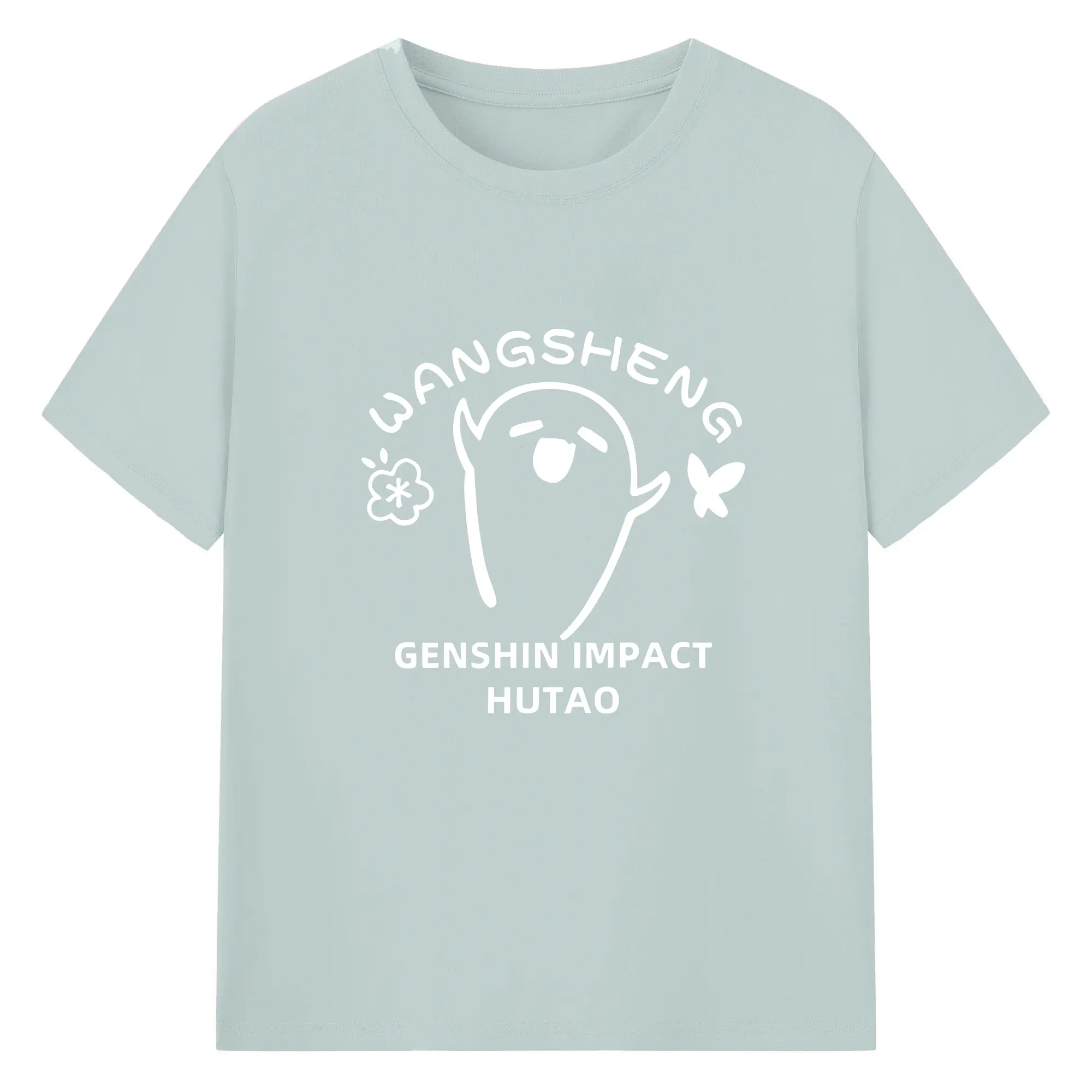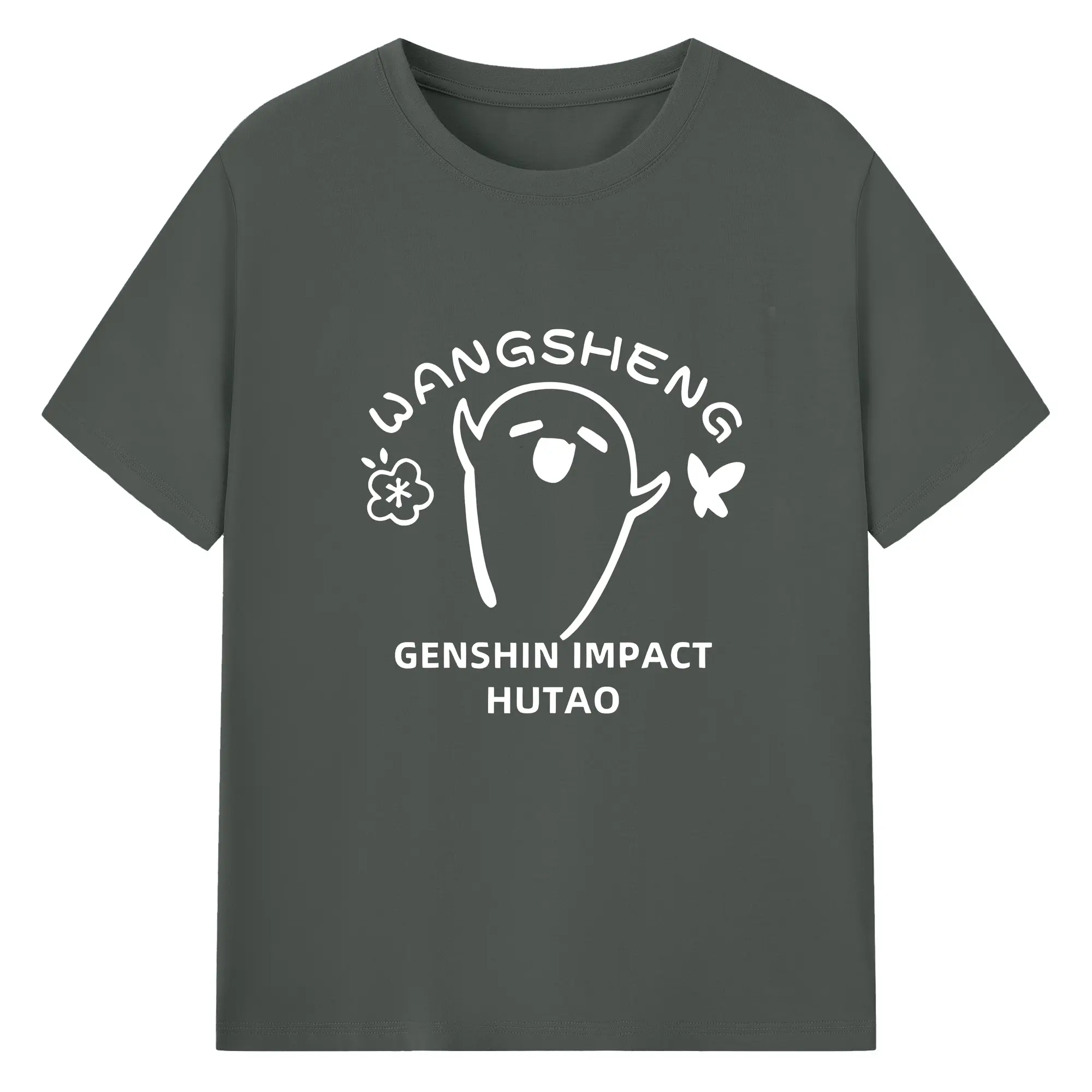 原神 胡桃 同款Tシャツ キャラクターグッズ【ファン必見】 - 綿100% ヴィンテージ風 半袖Tシャツ ・ フロントプリント ・ 柔らか肌触り ・ 通気性 快適 ・ スポーツ カジュアル 外出用