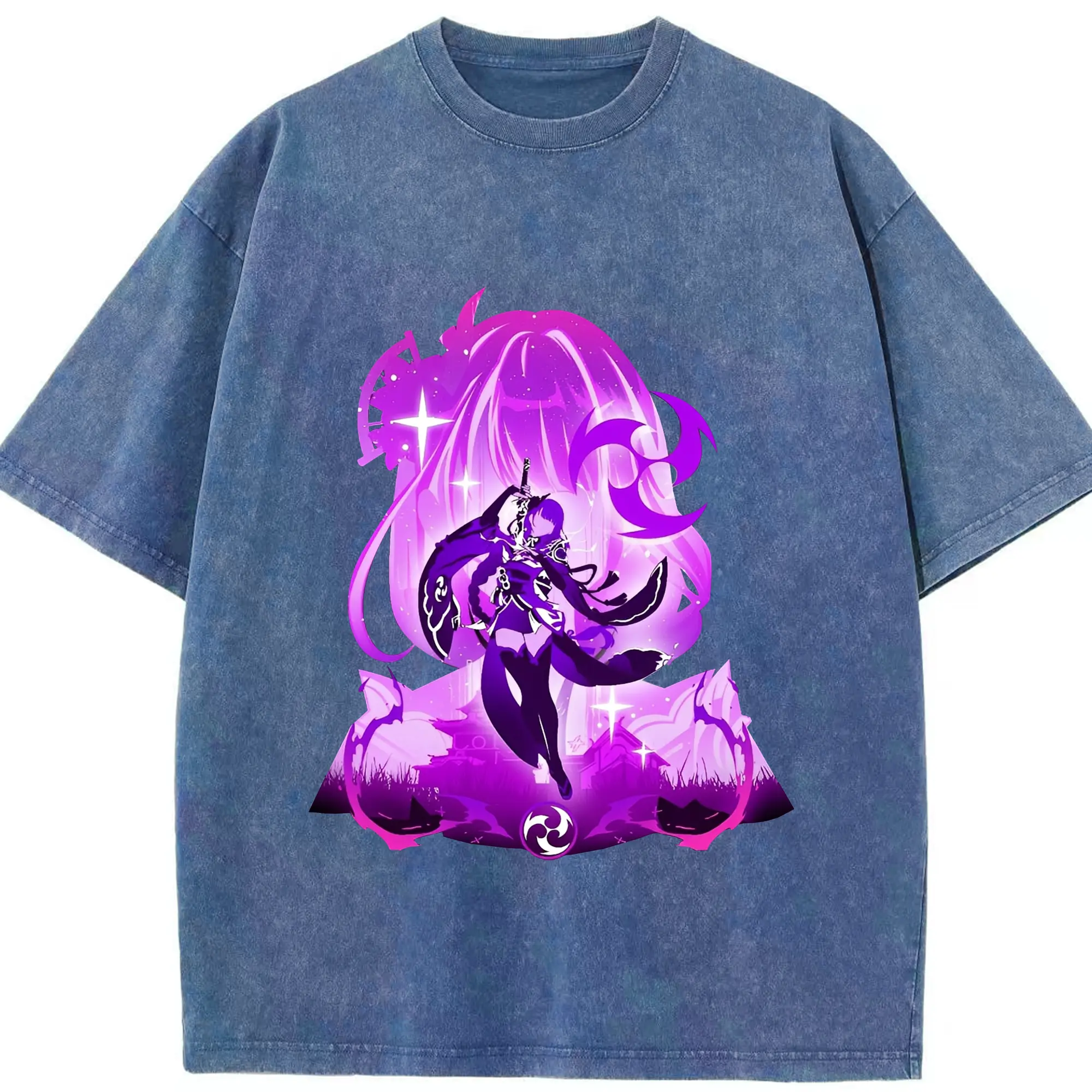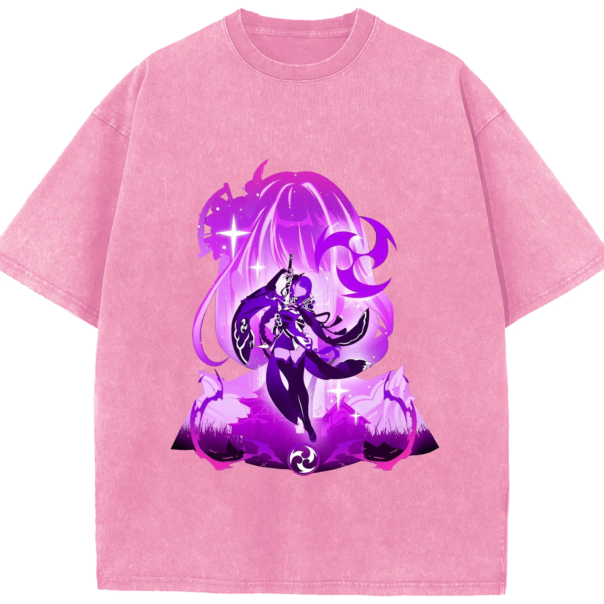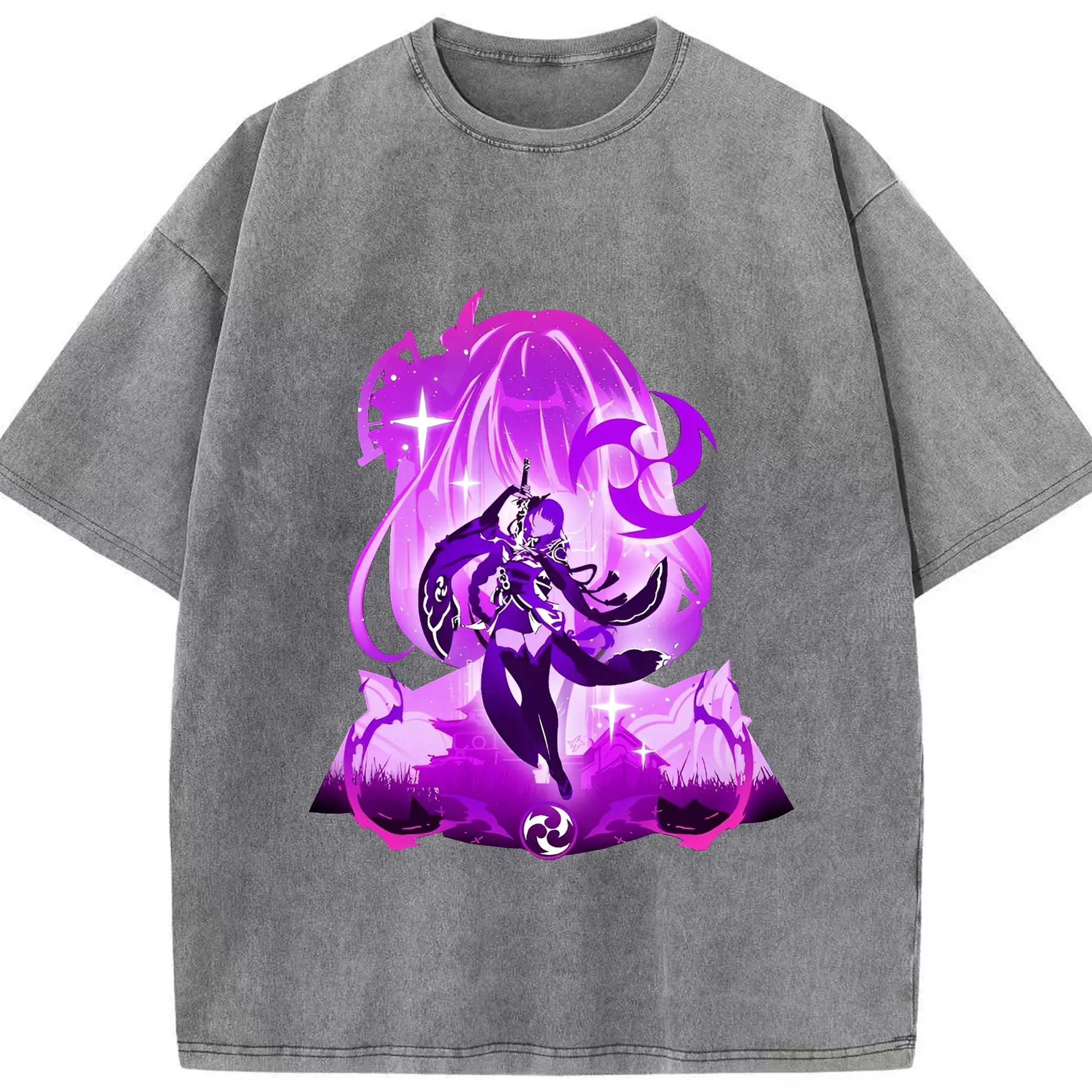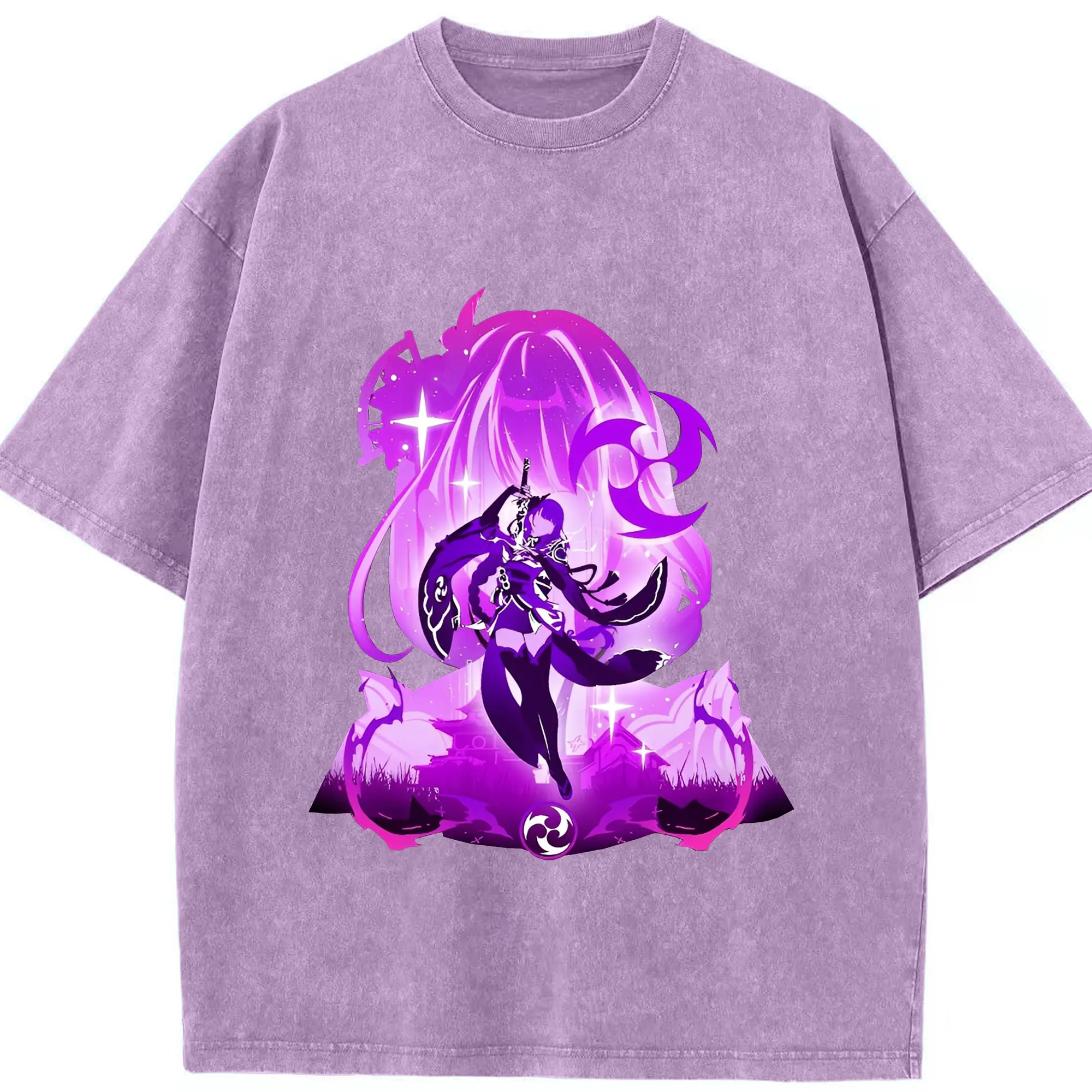 原神 雷電将軍 アニメ風プリント推し活グッズ - 綿100% 半袖Tシャツ ・ フロントプリント ・ 快適 通気性 ・ 日常使い 散歩 スポーツ用