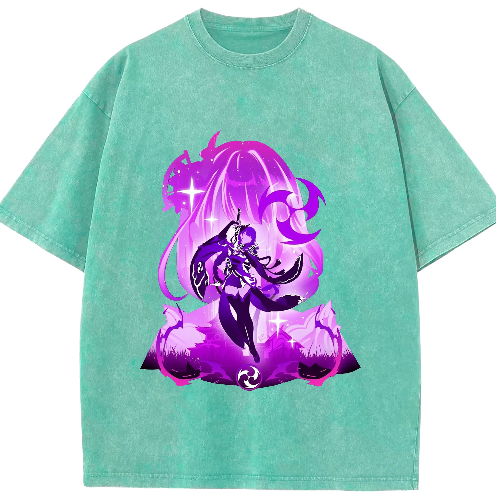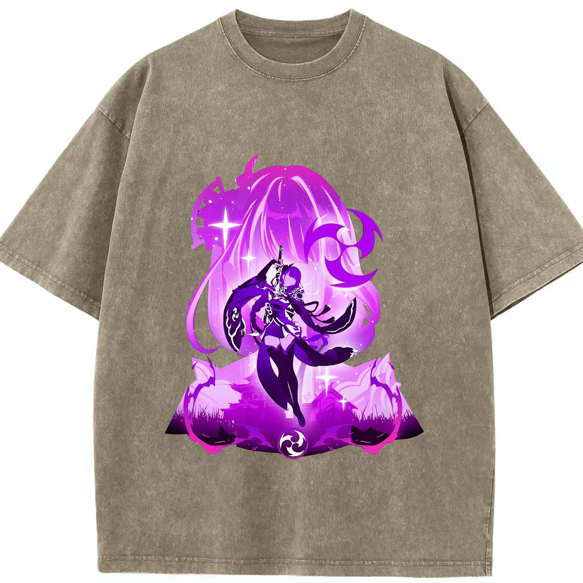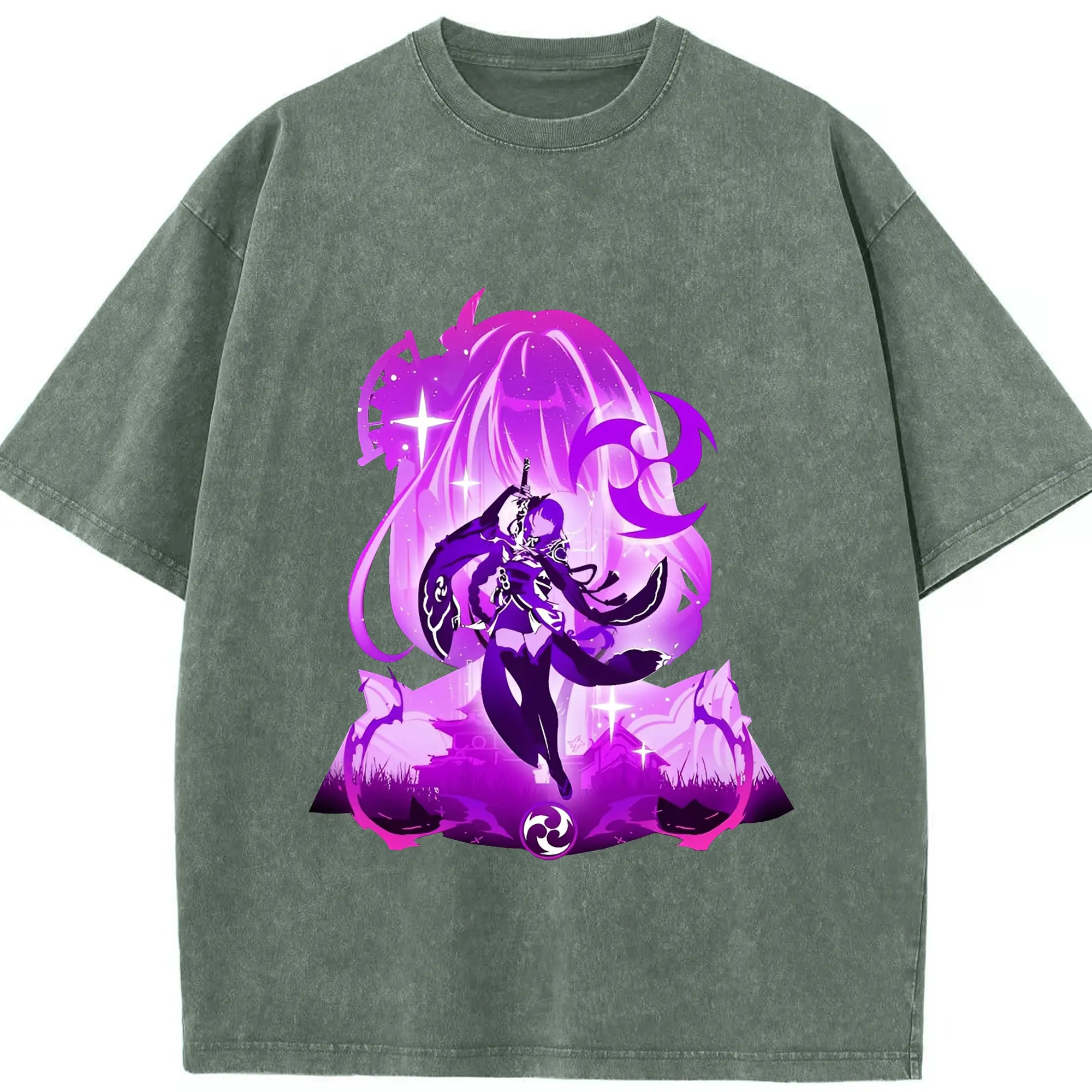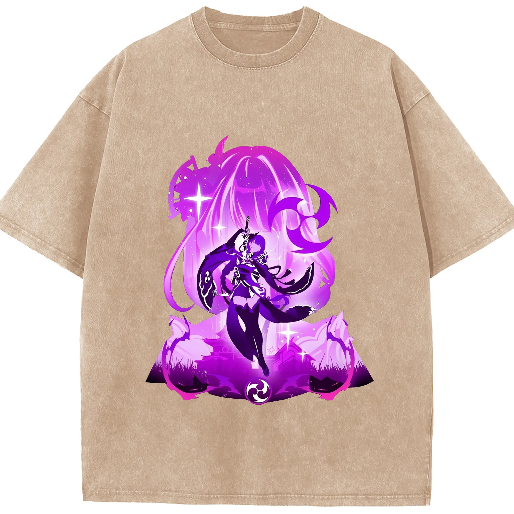 原神 雷電将軍 アニメ風プリント推し活グッズ - 綿100% 半袖Tシャツ ・ フロントプリント ・ 快適 通気性 ・ 日常使い 散歩 スポーツ用