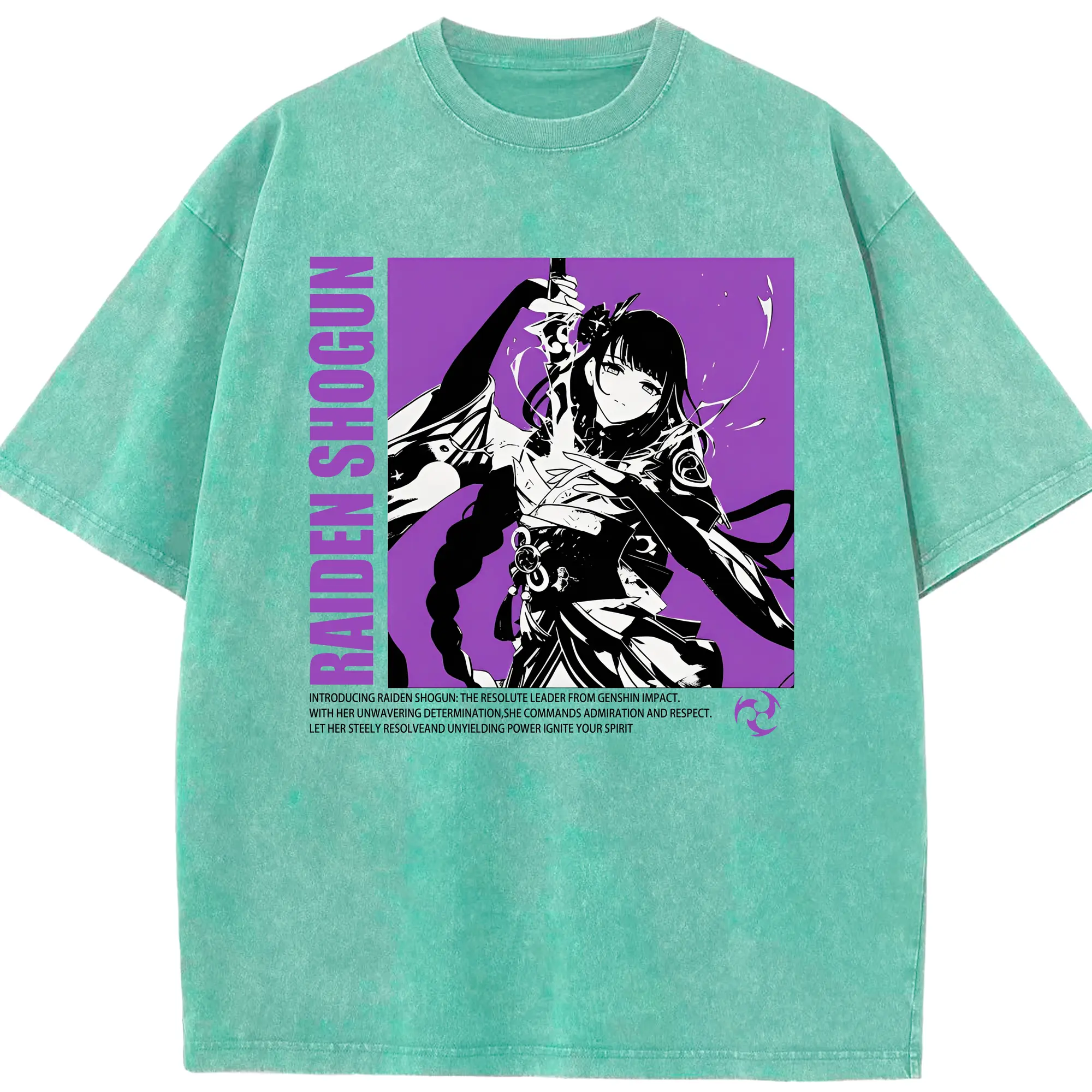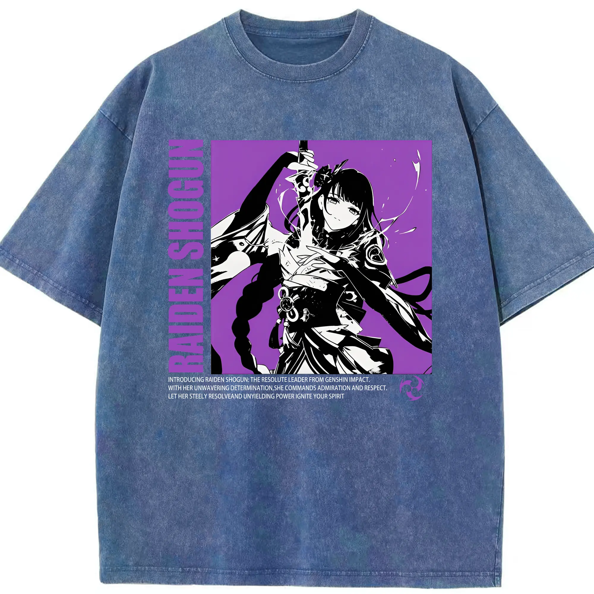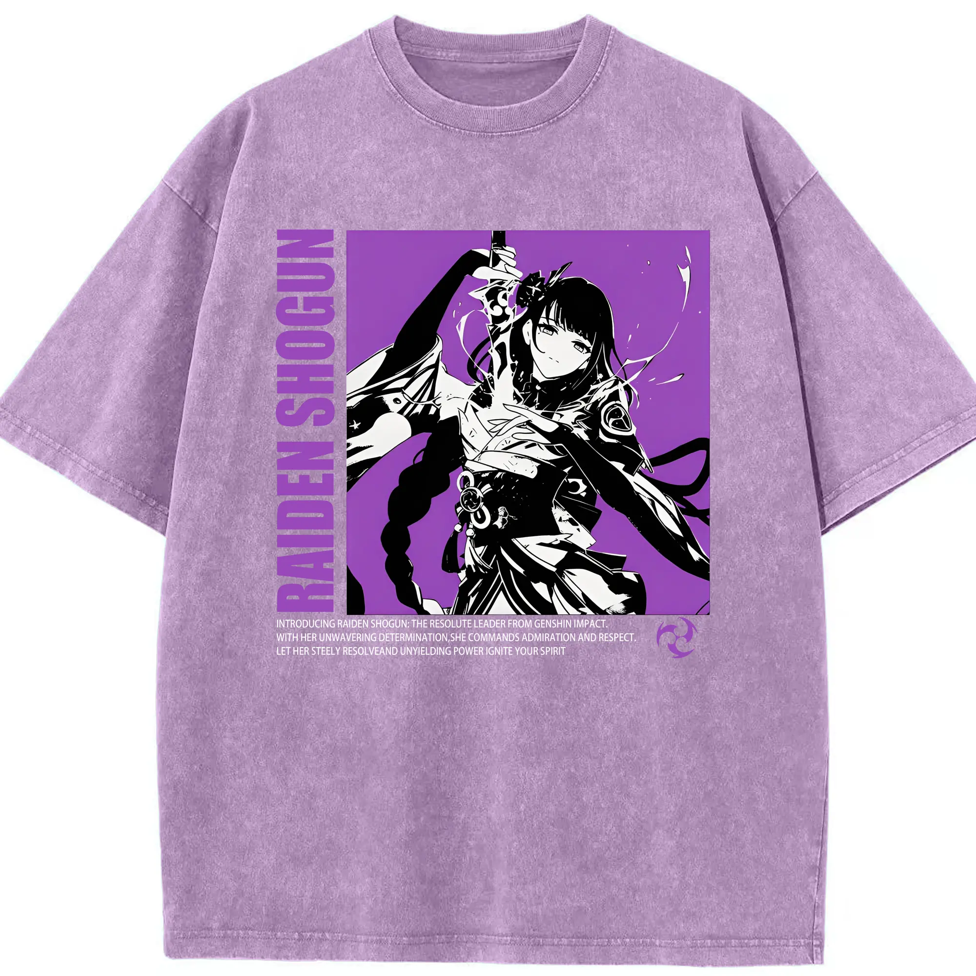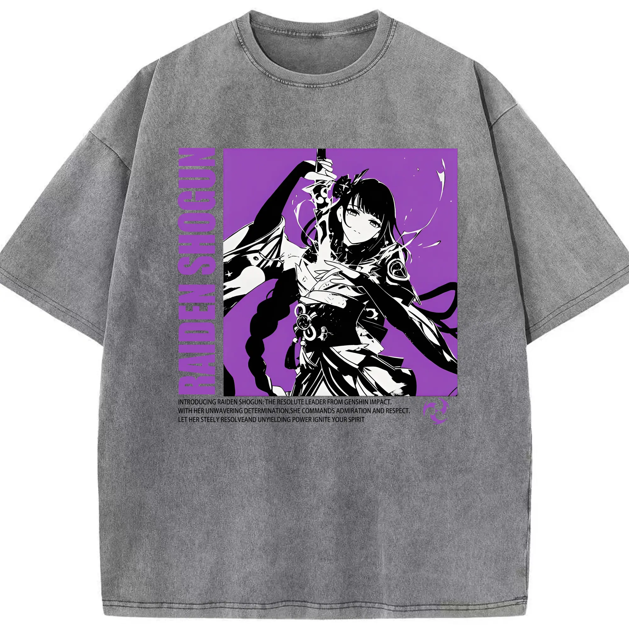 原神 雷電将軍 キャラクターグッズ - 綿100% 半袖Tシャツ ・ フロントプリント ・ 快適 通気性 ・ 日常使い 散歩 スポーツ用