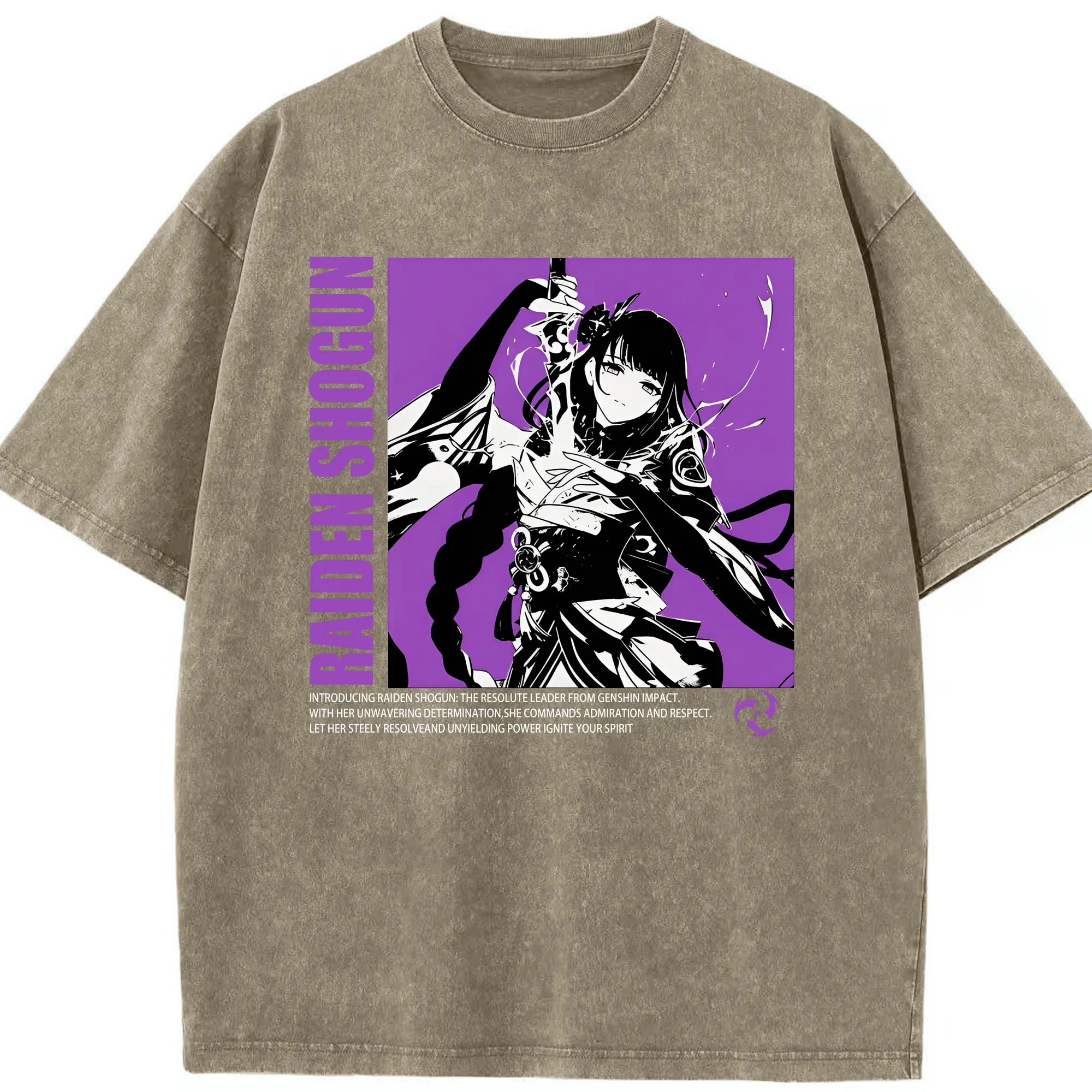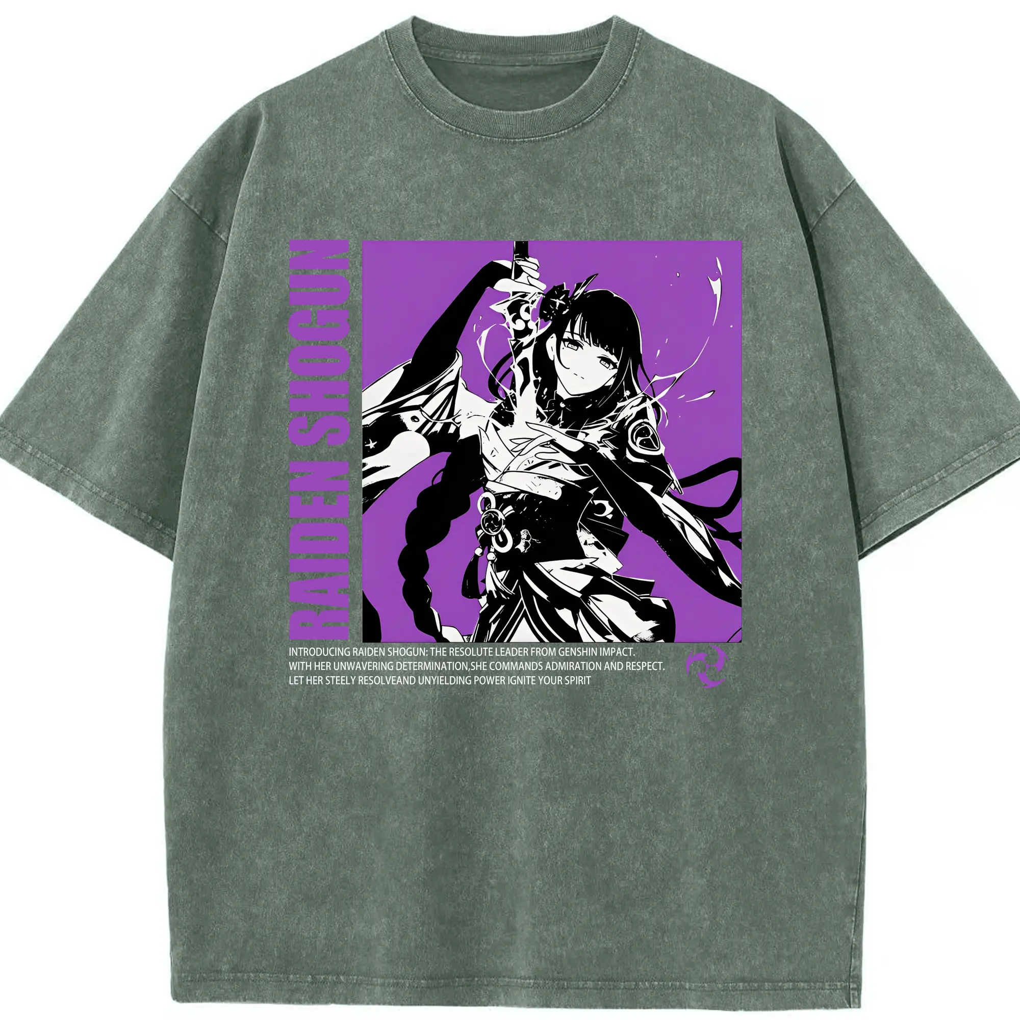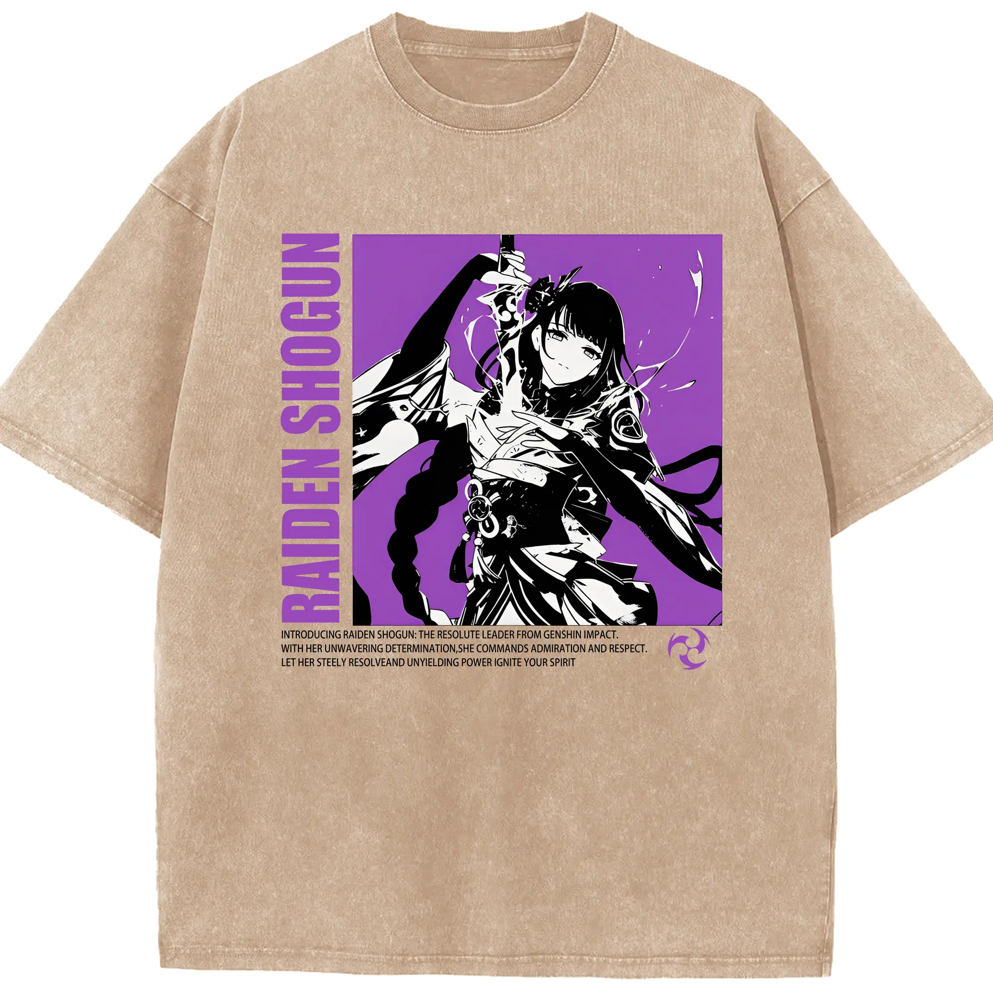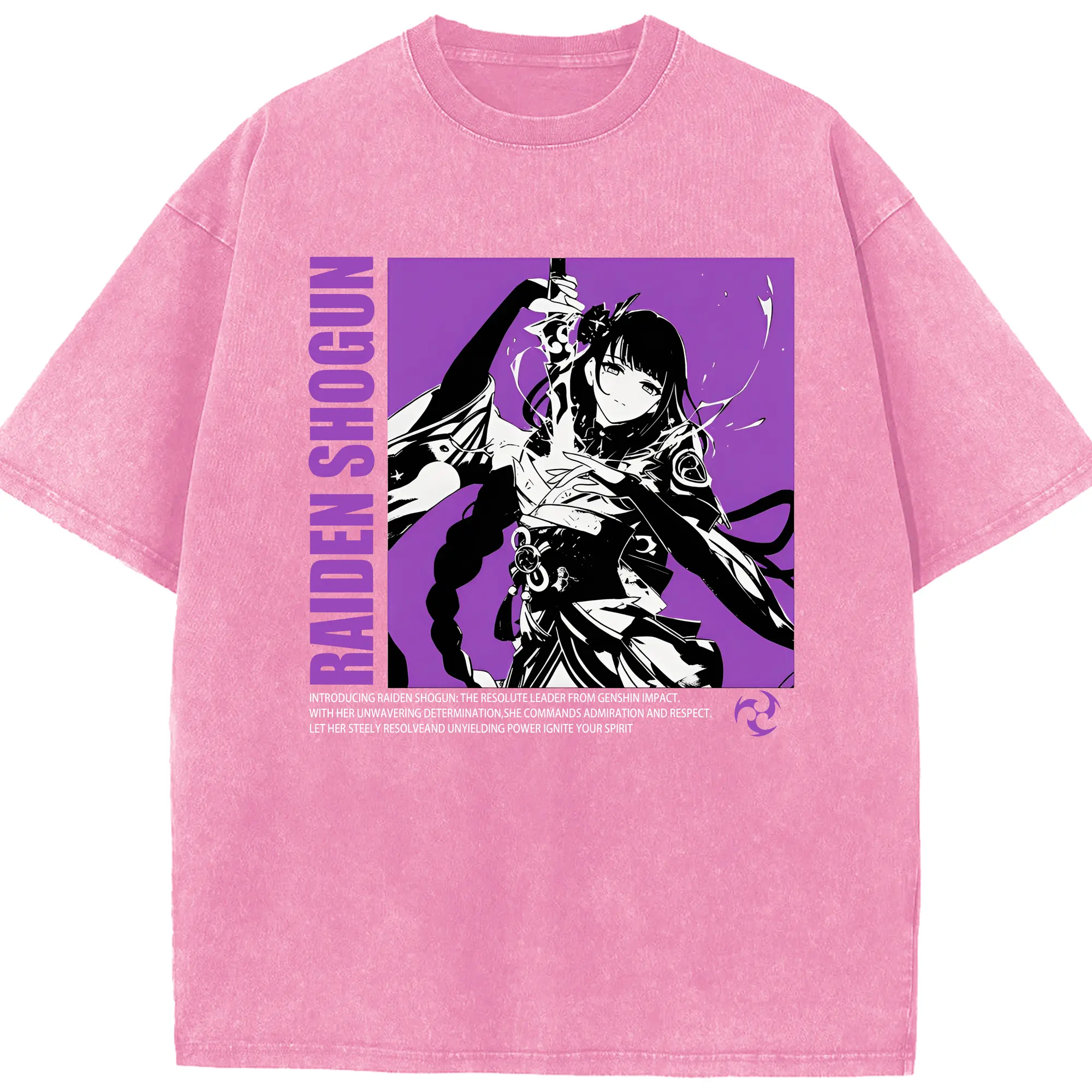 原神 雷電将軍 キャラクターグッズ - 綿100% 半袖Tシャツ ・ フロントプリント ・ 快適 通気性 ・ 日常使い 散歩 スポーツ用