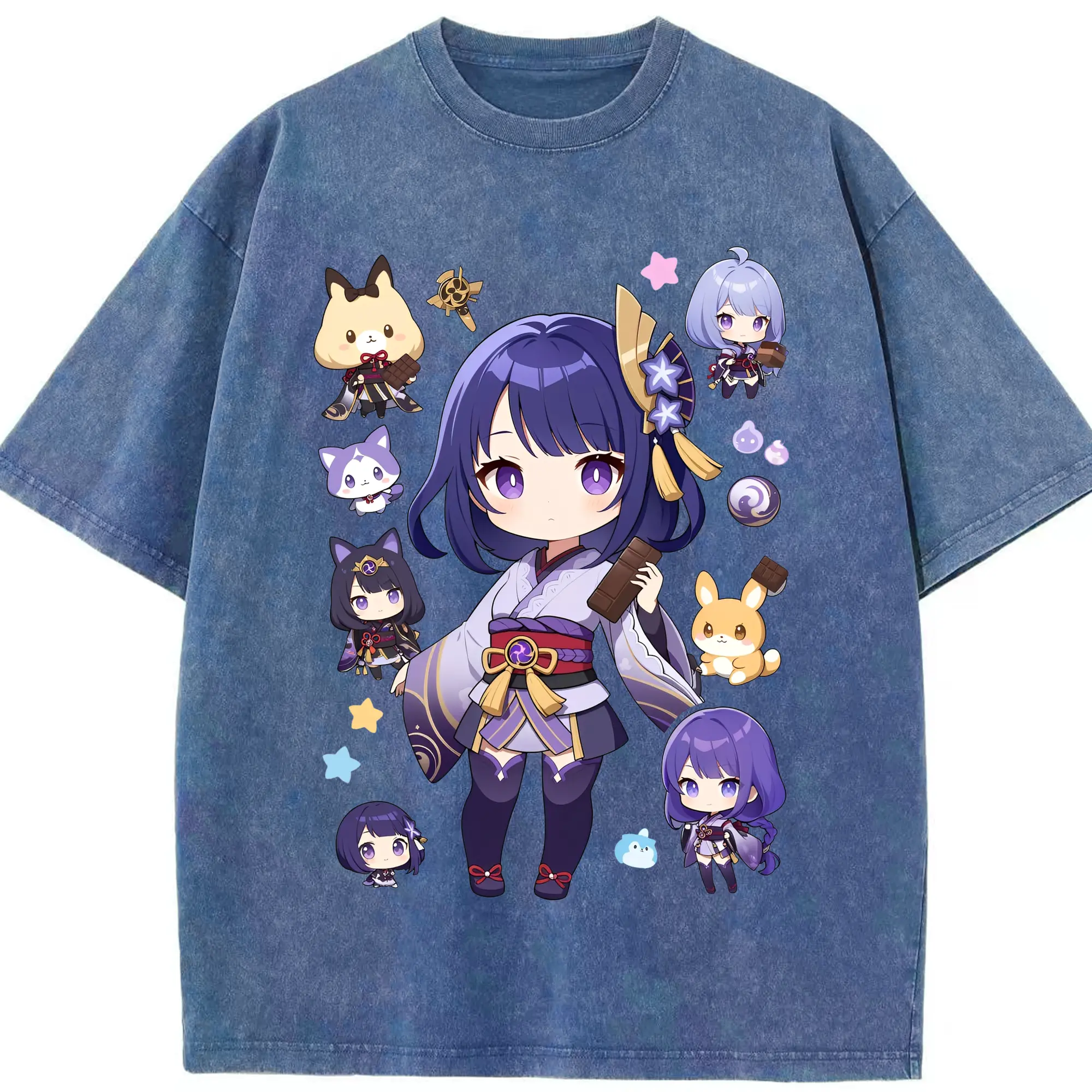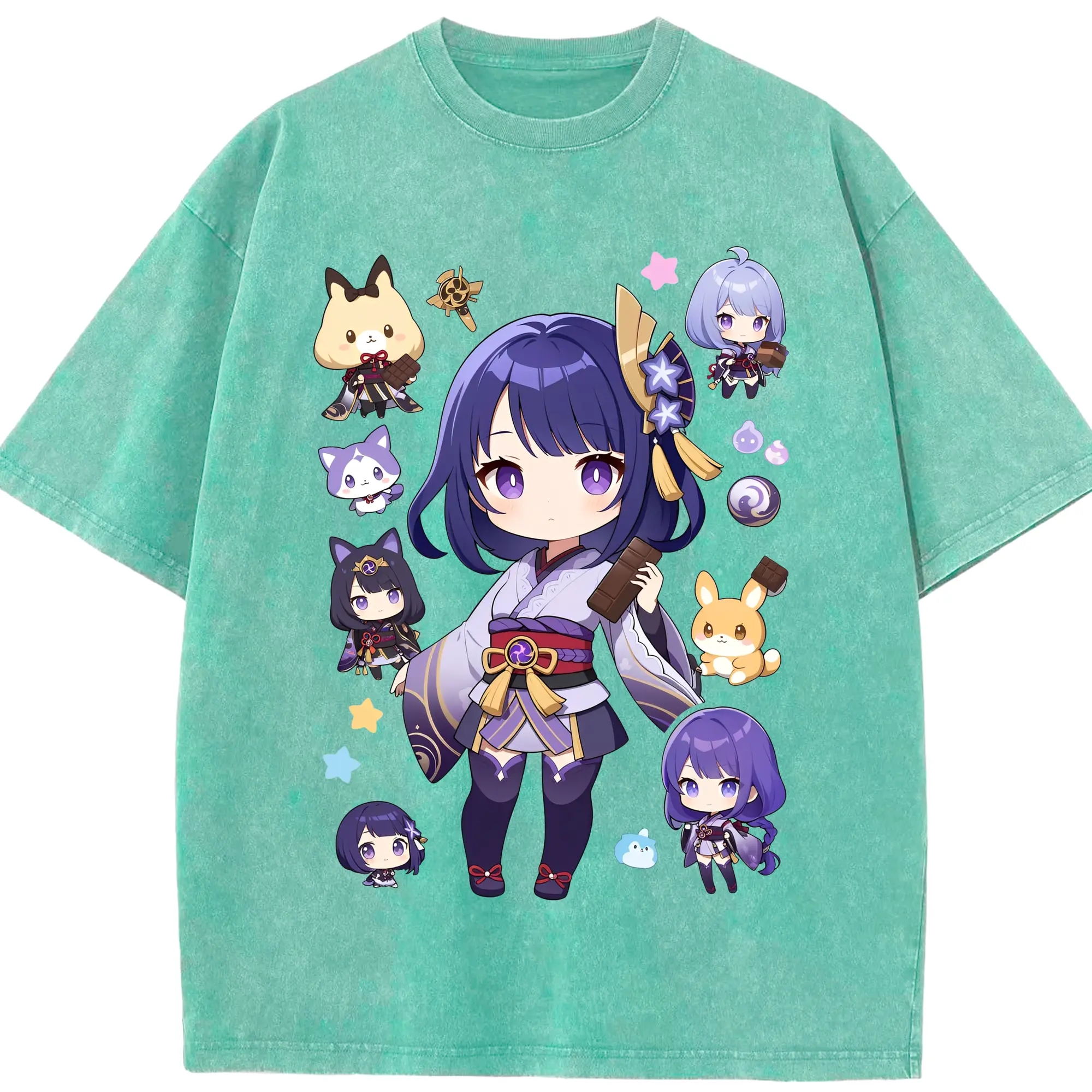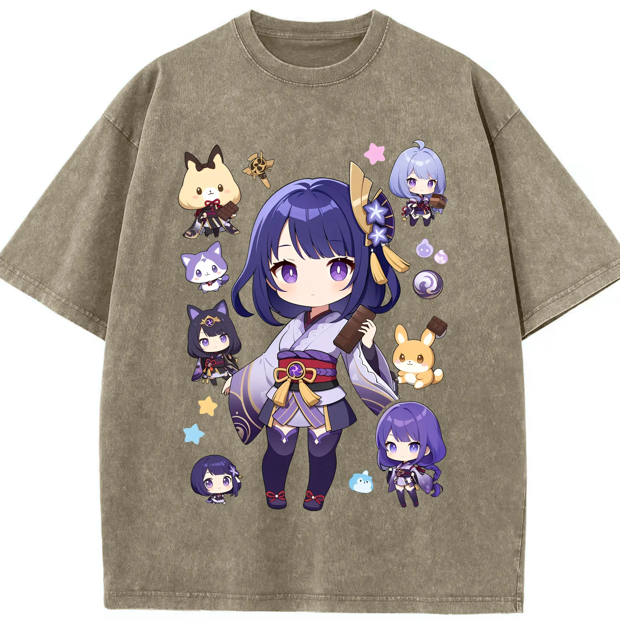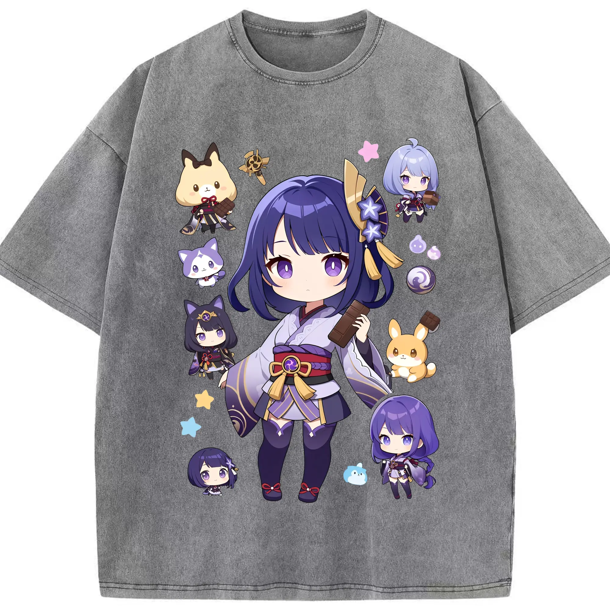 原神 雷電将軍 グラフィックアート - 綿100% ヴィンテージ風 半袖Tシャツ ・ フロントプリント ・ 柔らか肌触り ・ 通気性 快適 ・ スポーツ カジュアル 外出用