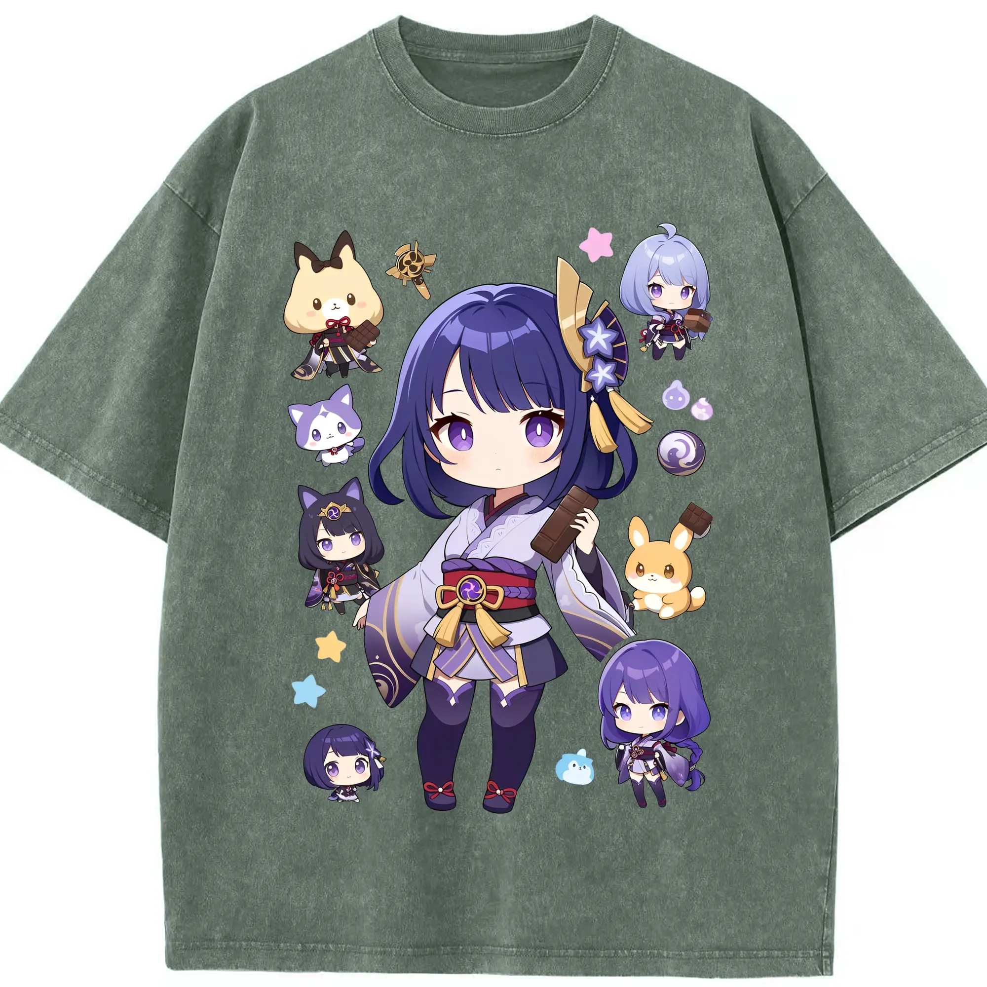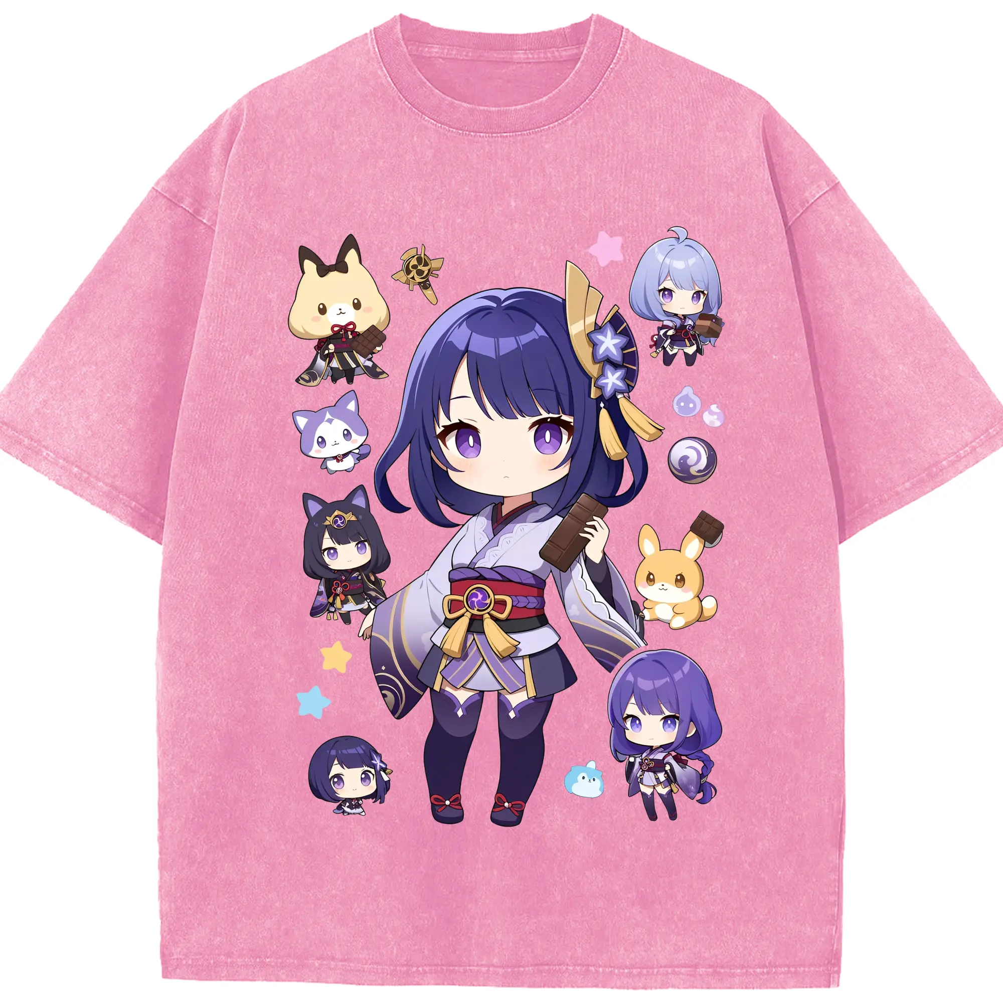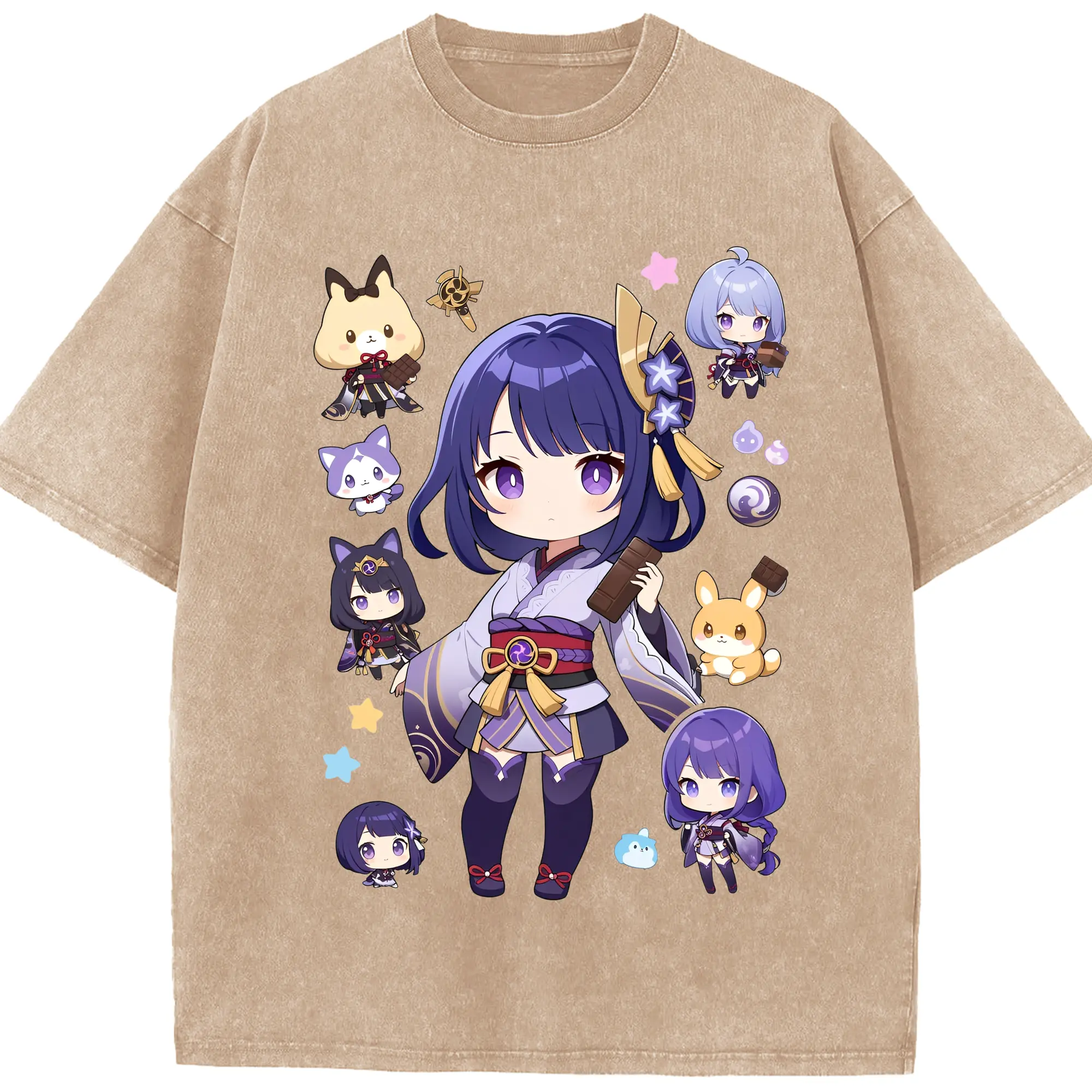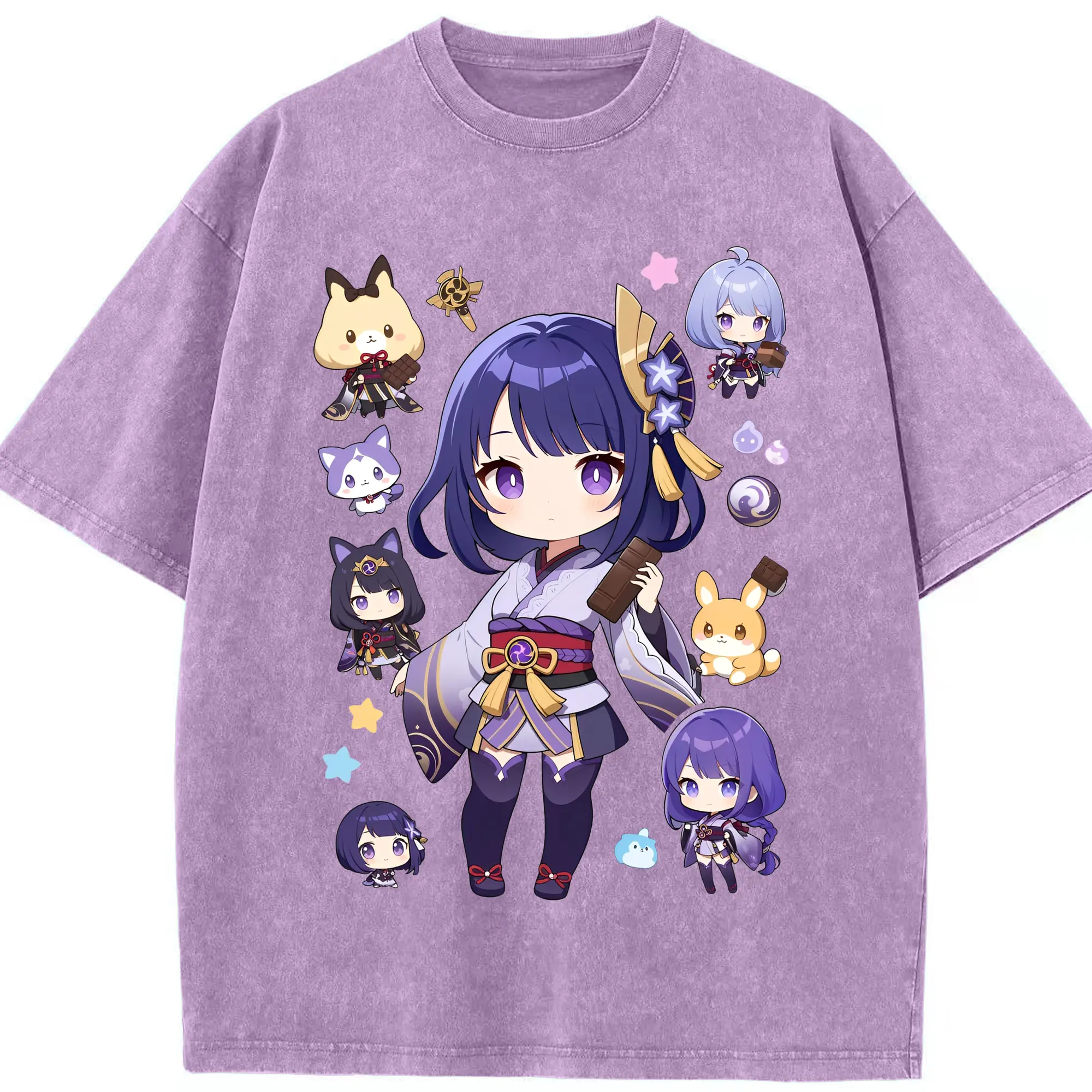 原神 雷電将軍 グラフィックアート - 綿100% ヴィンテージ風 半袖Tシャツ ・ フロントプリント ・ 柔らか肌触り ・ 通気性 快適 ・ スポーツ カジュアル 外出用