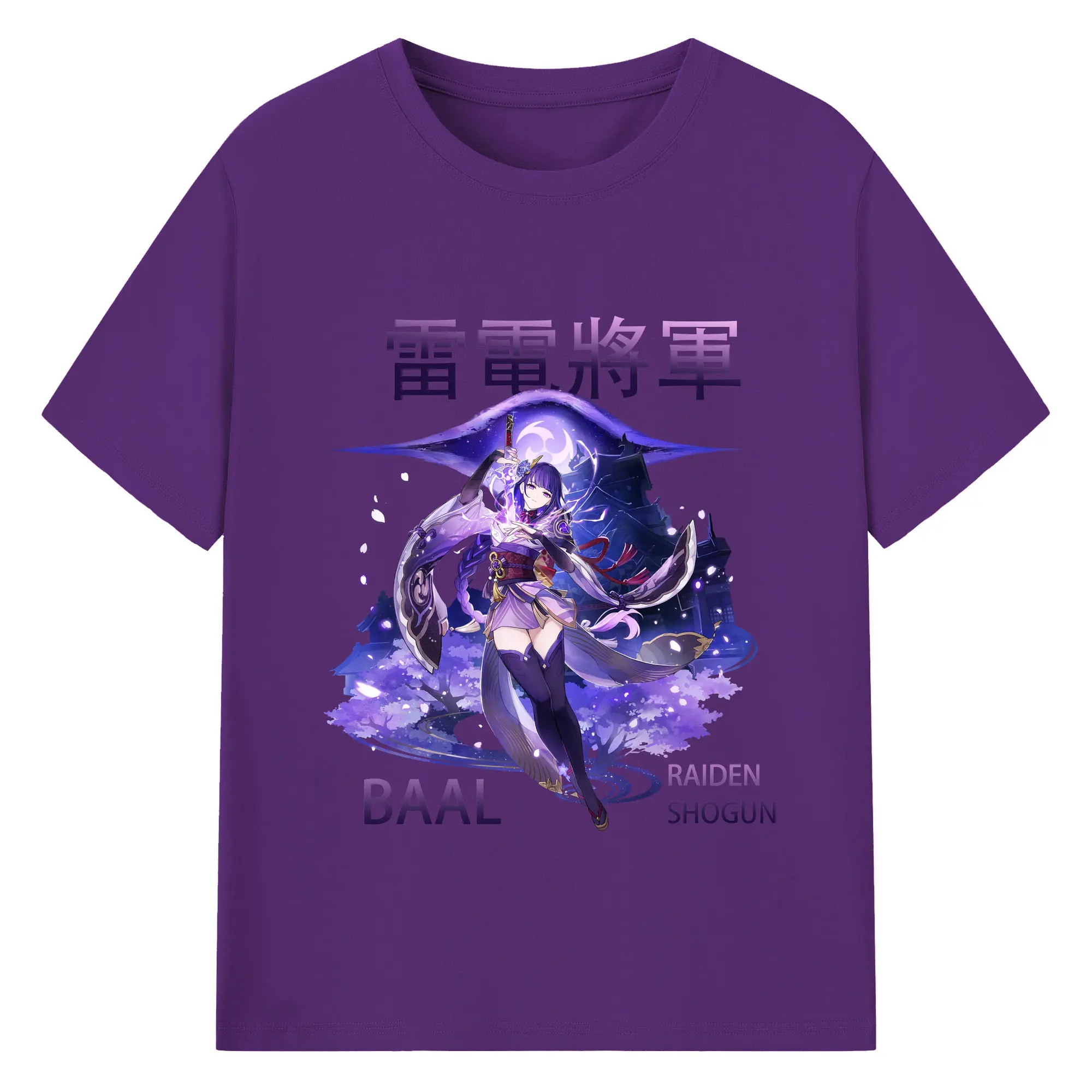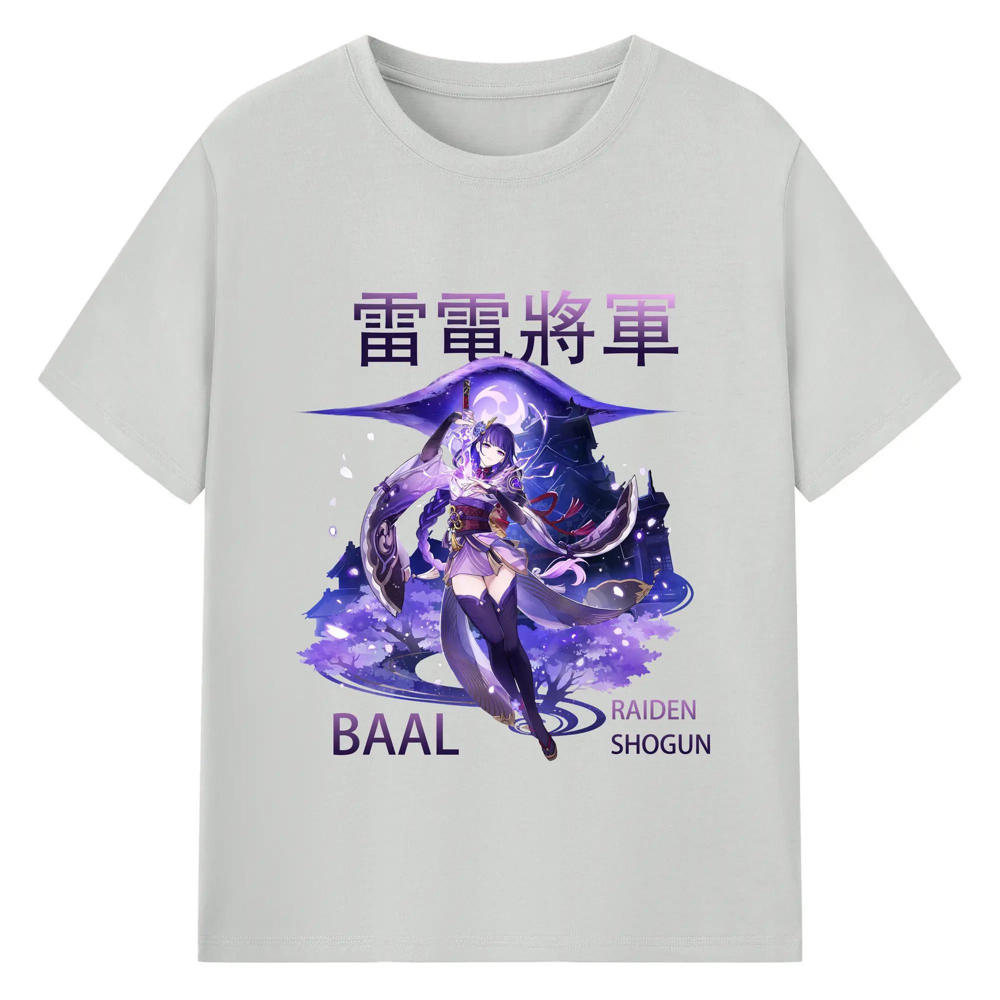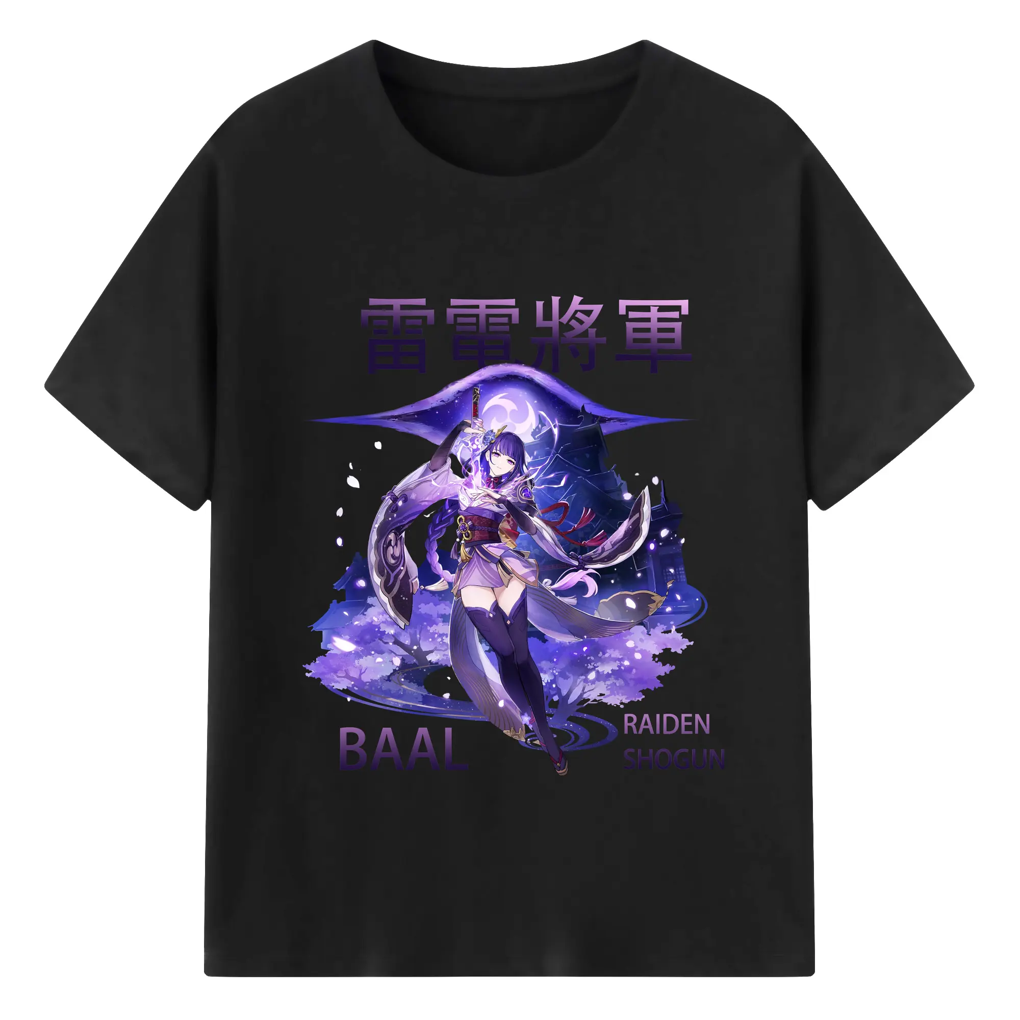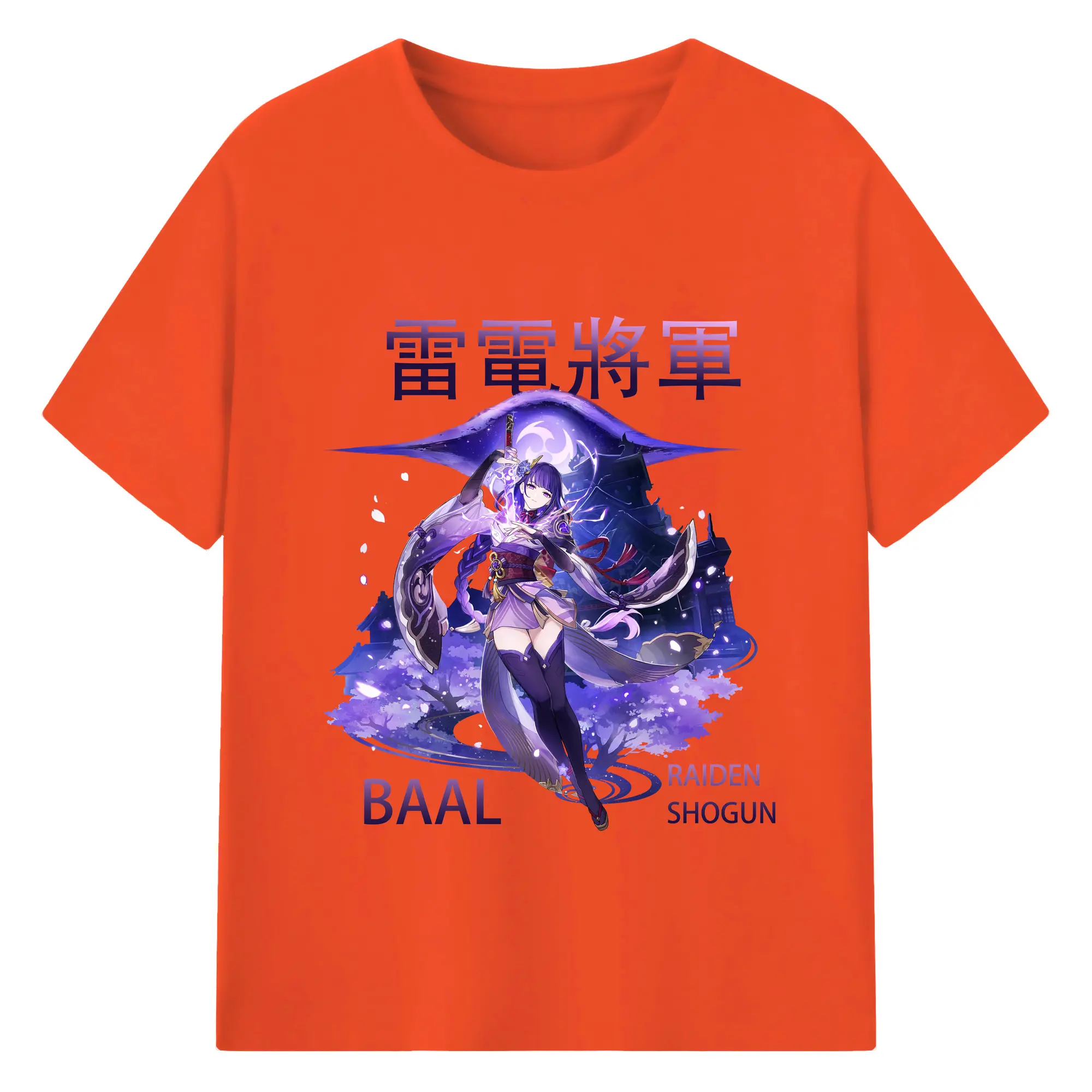 原神 雷電将軍 クリーンデザイン ファッション 原宿系 - 綿100% 半袖Tシャツ ・ フロントプリント ・ 快適 通気性 ・ 日常使い 散歩 スポーツ用