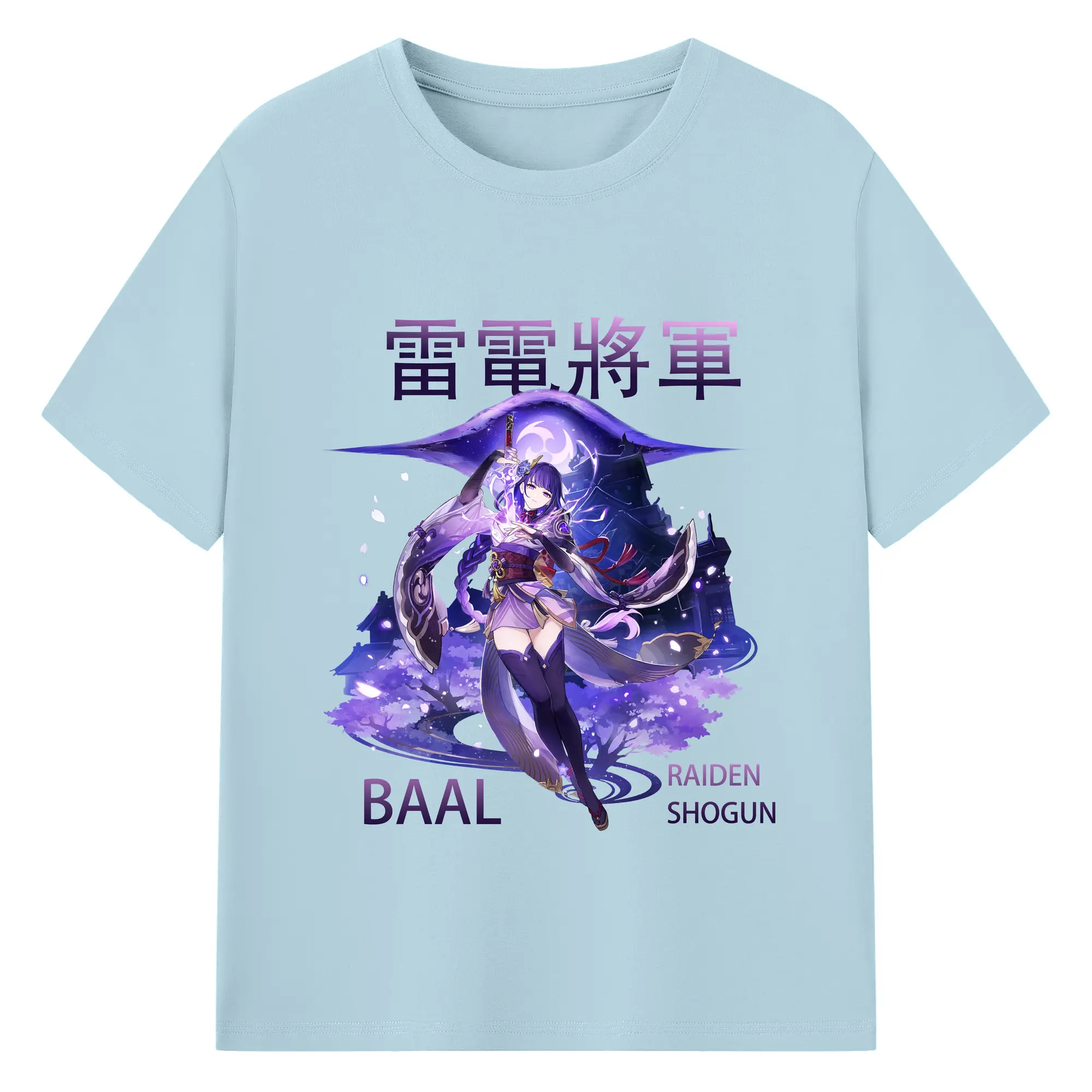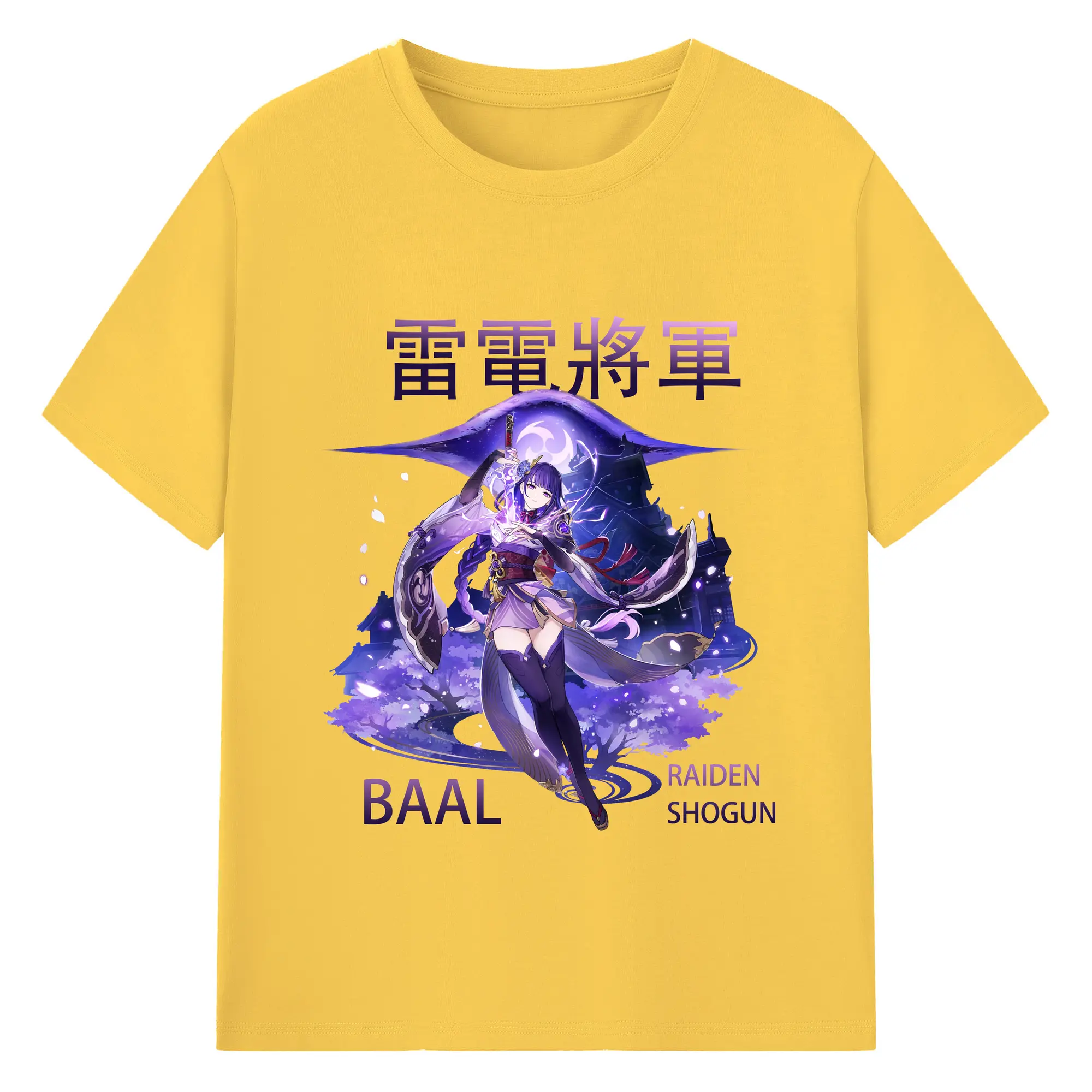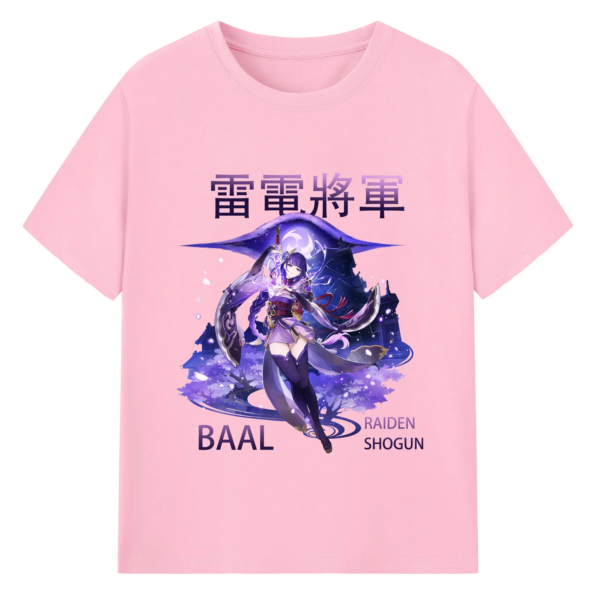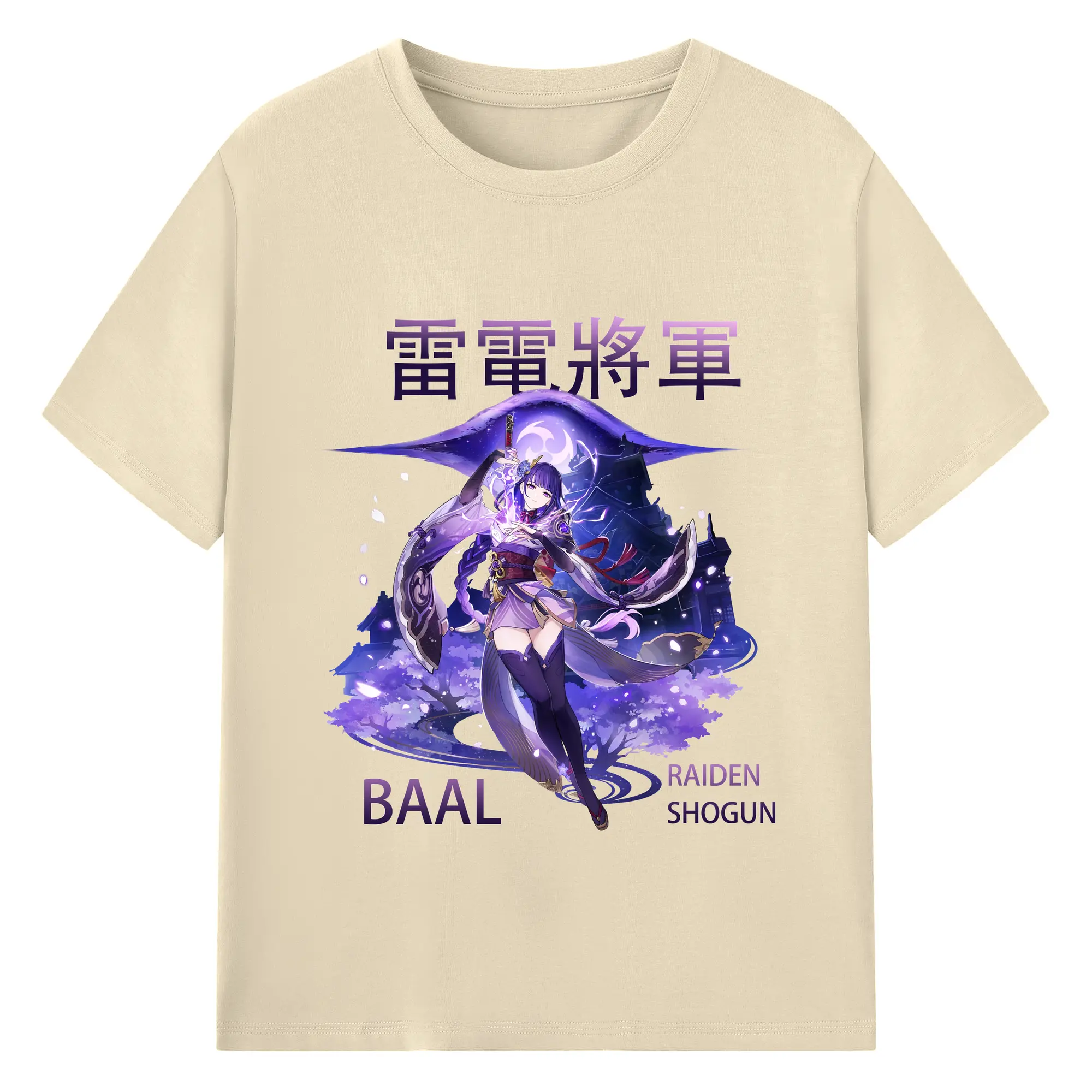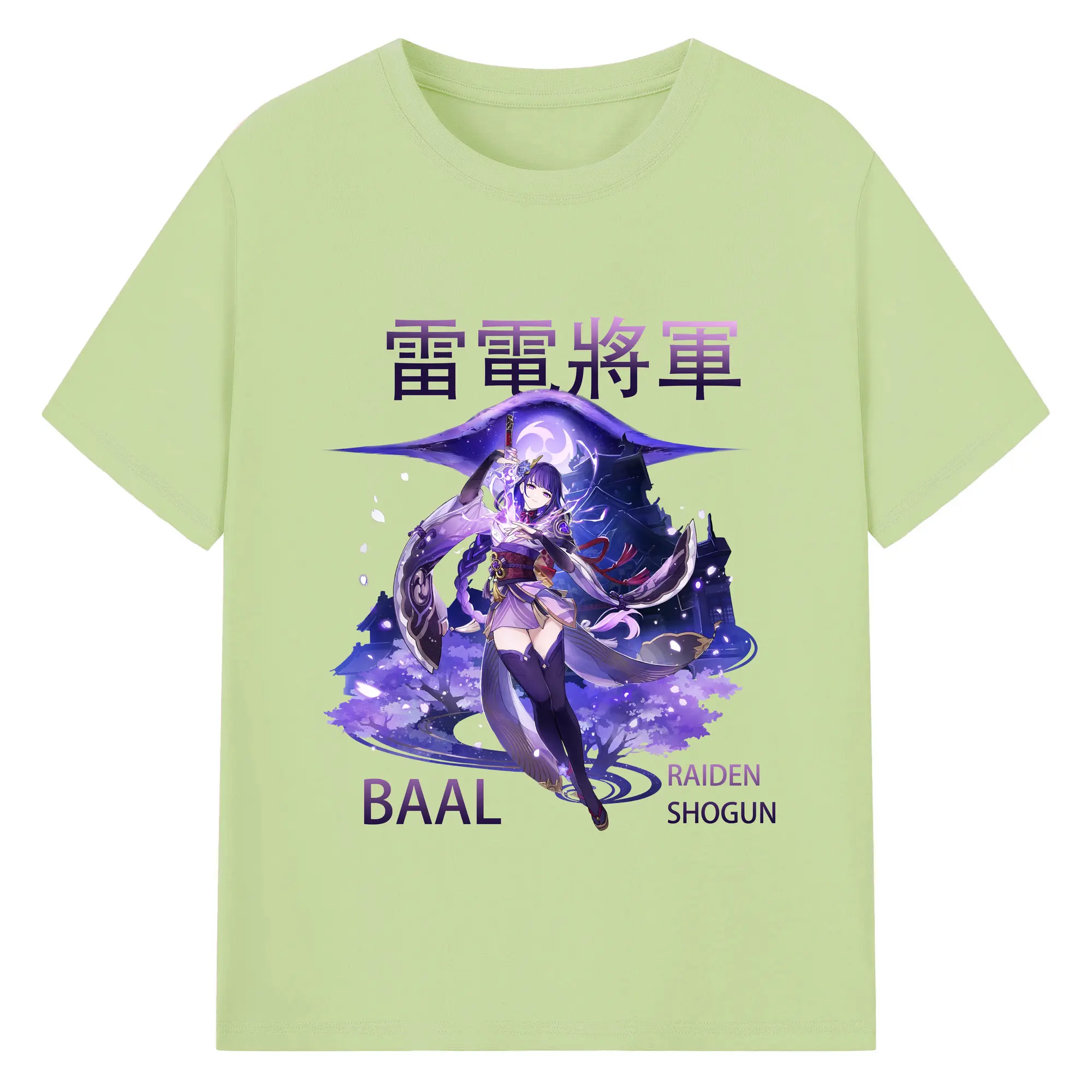 原神 雷電将軍 クリーンデザイン ファッション 原宿系 - 綿100% 半袖Tシャツ ・ フロントプリント ・ 快適 通気性 ・ 日常使い 散歩 スポーツ用