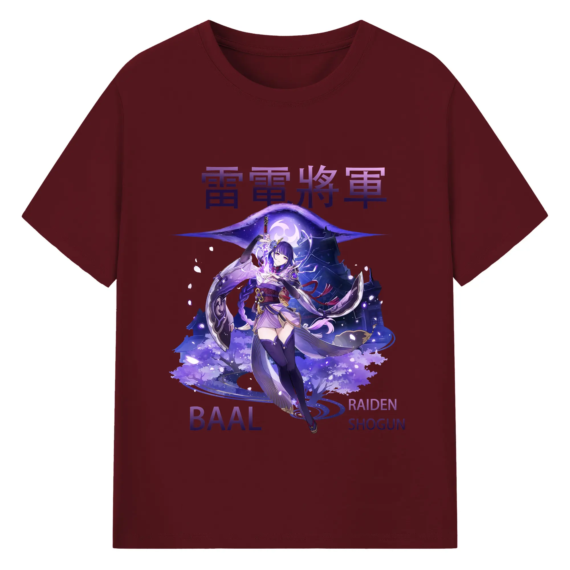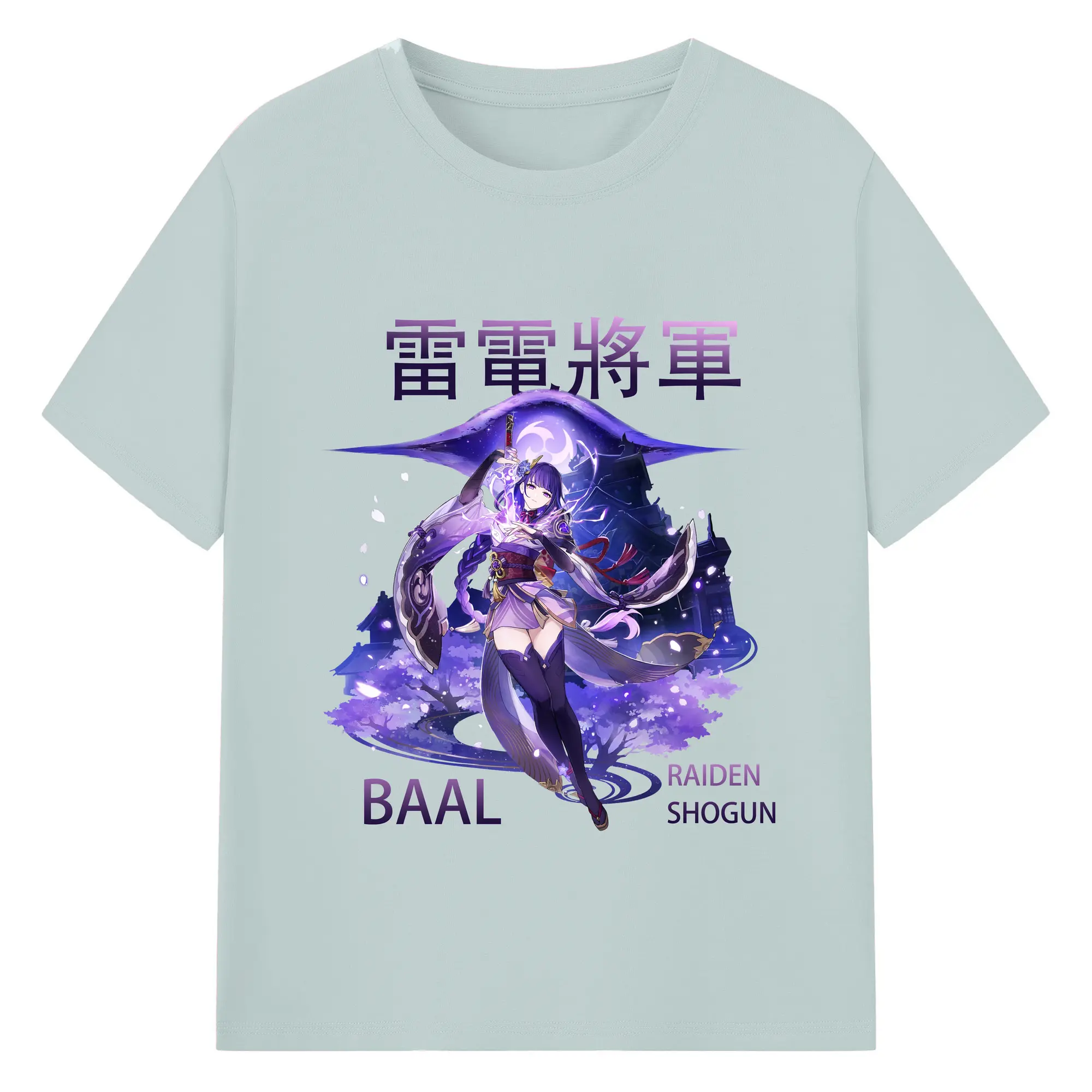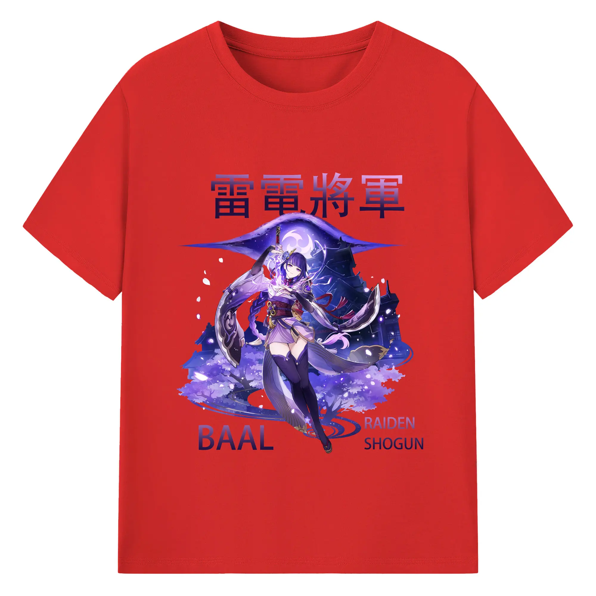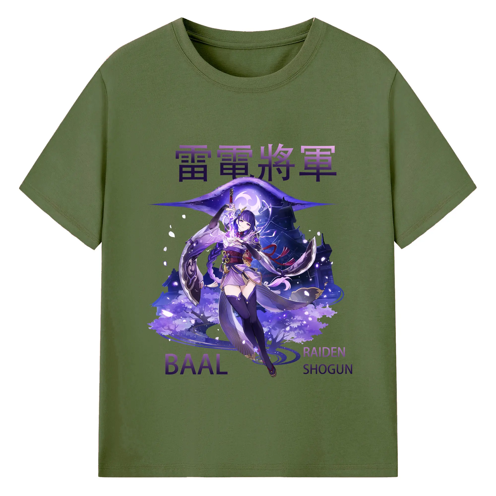 原神 雷電将軍 クリーンデザイン ファッション 原宿系 - 綿100% 半袖Tシャツ ・ フロントプリント ・ 快適 通気性 ・ 日常使い 散歩 スポーツ用