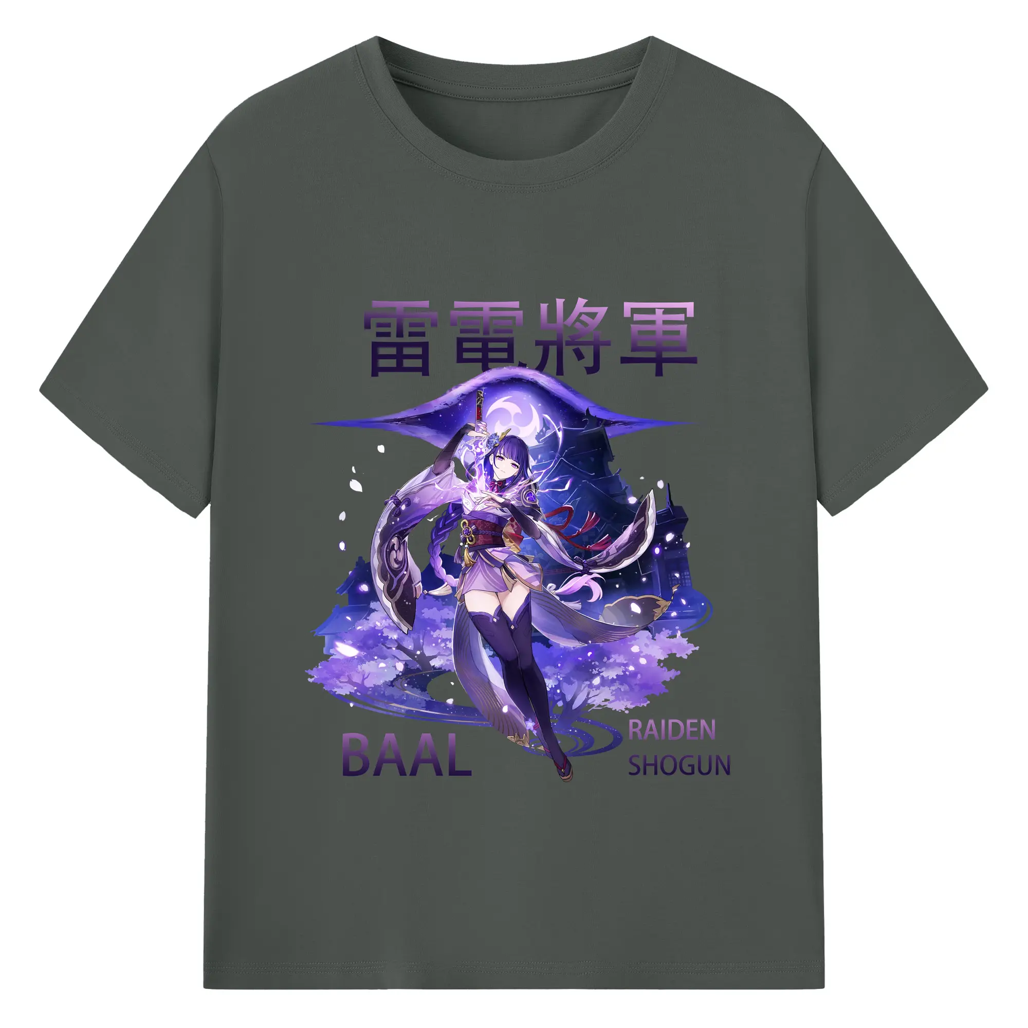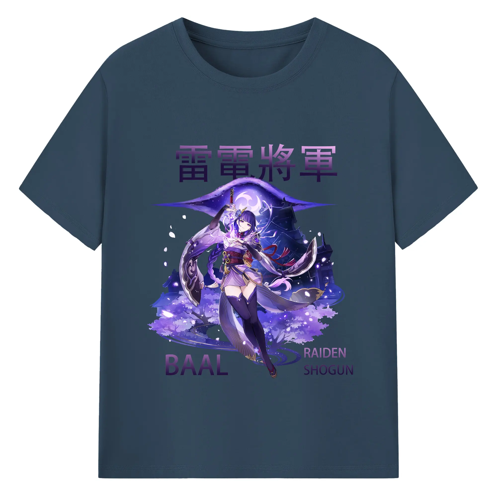 原神 雷電将軍 グラフィックアート - 綿100% ヴィンテージ風 半袖Tシャツ ・ フロントプリント ・ 柔らか肌触り ・ 通気性 快適 ・ スポーツ カジュアル 外出用