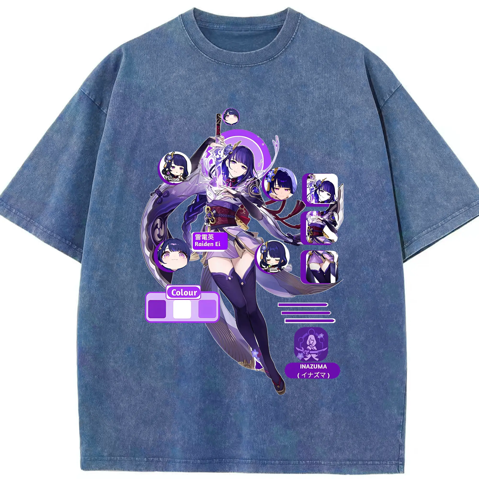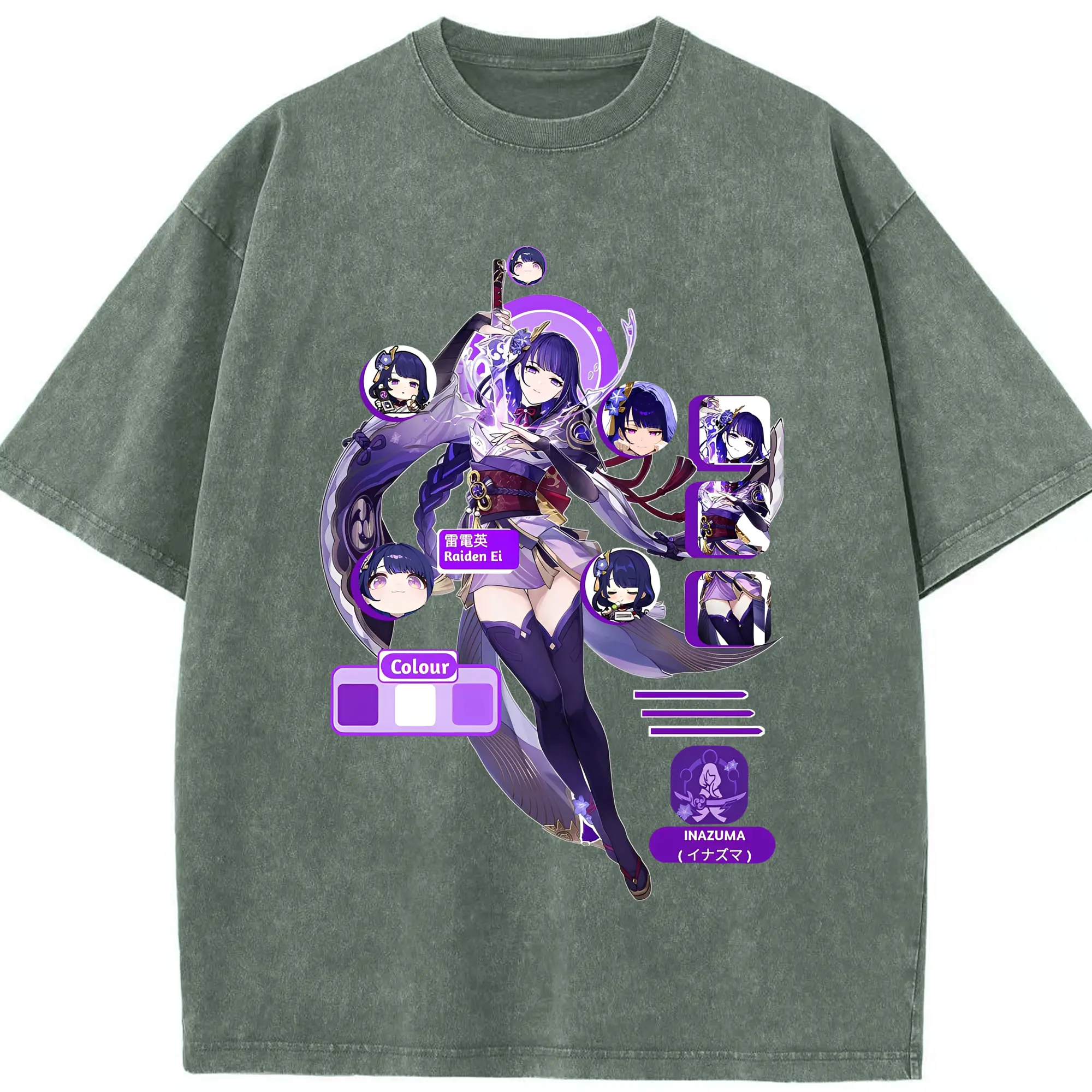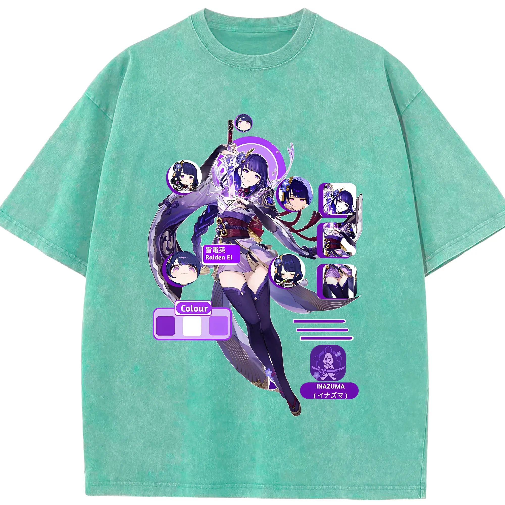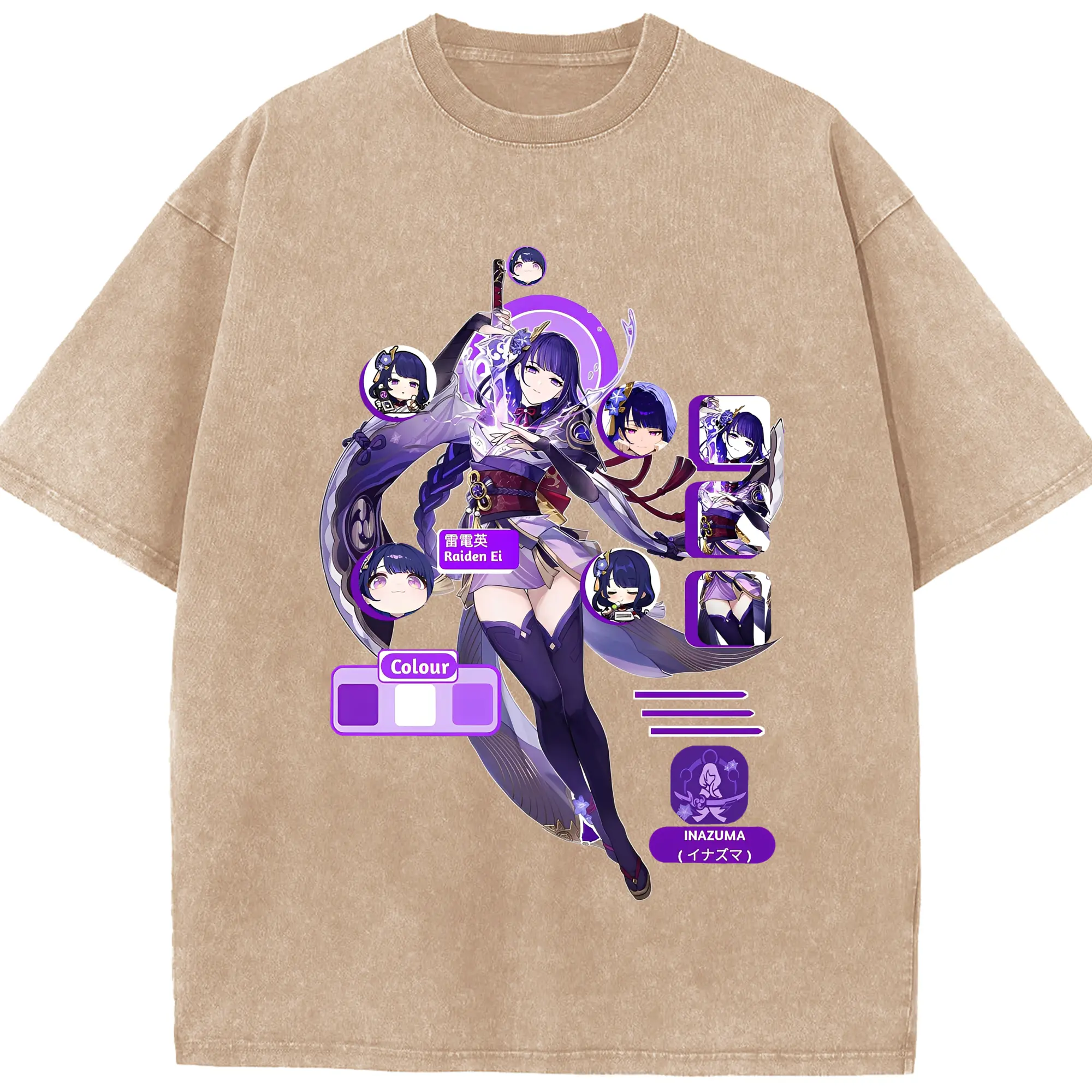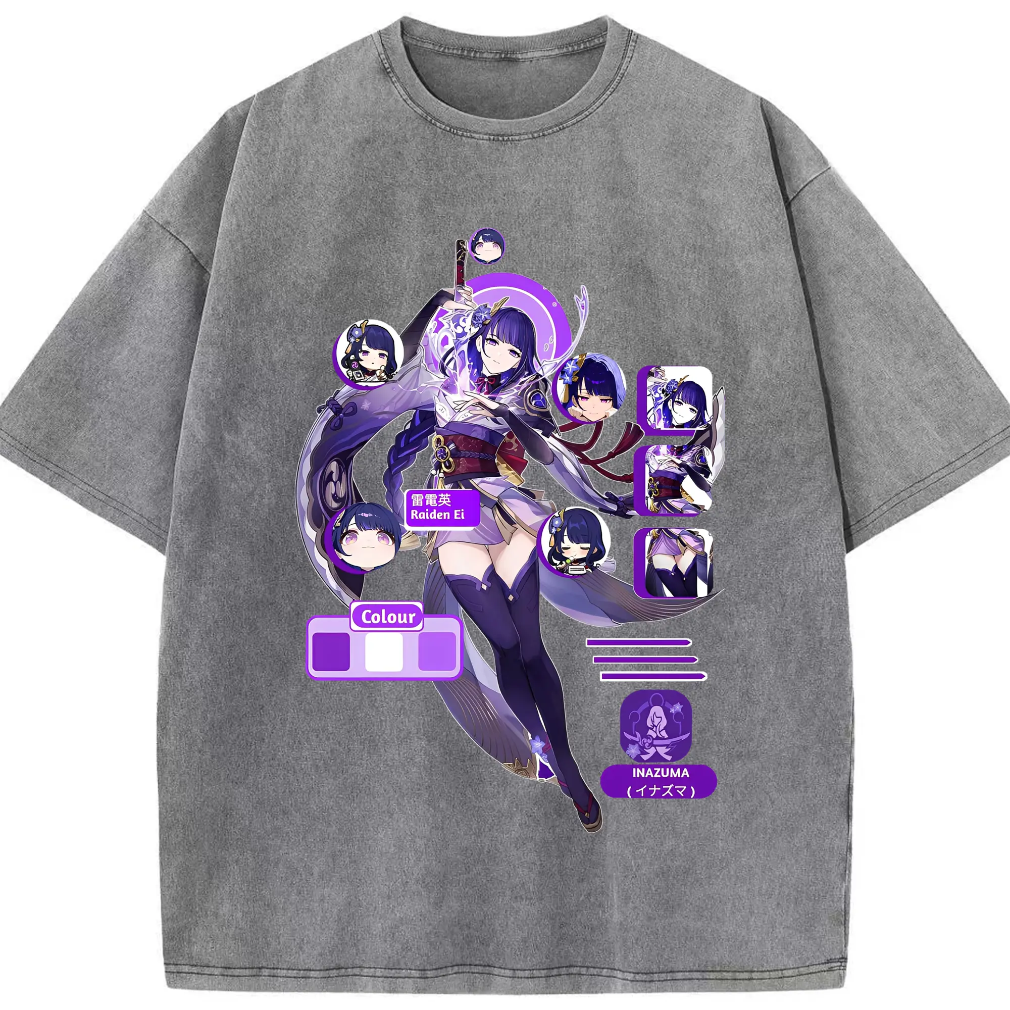 原神 雷電将軍 グラフィックアート - 綿100% 半袖Tシャツ ・ フロントプリント ・ 快適 通気性 ・ 日常使い 散歩 スポーツ用