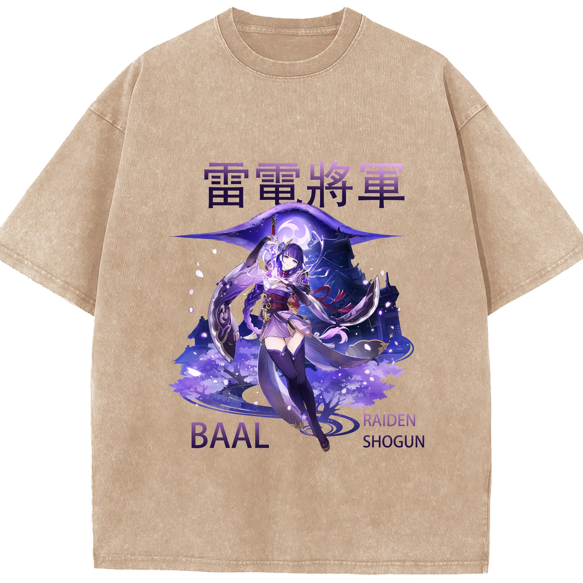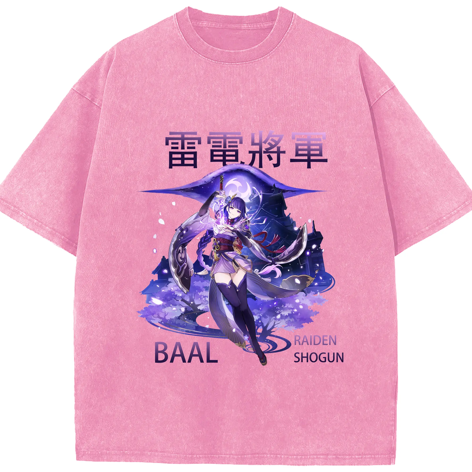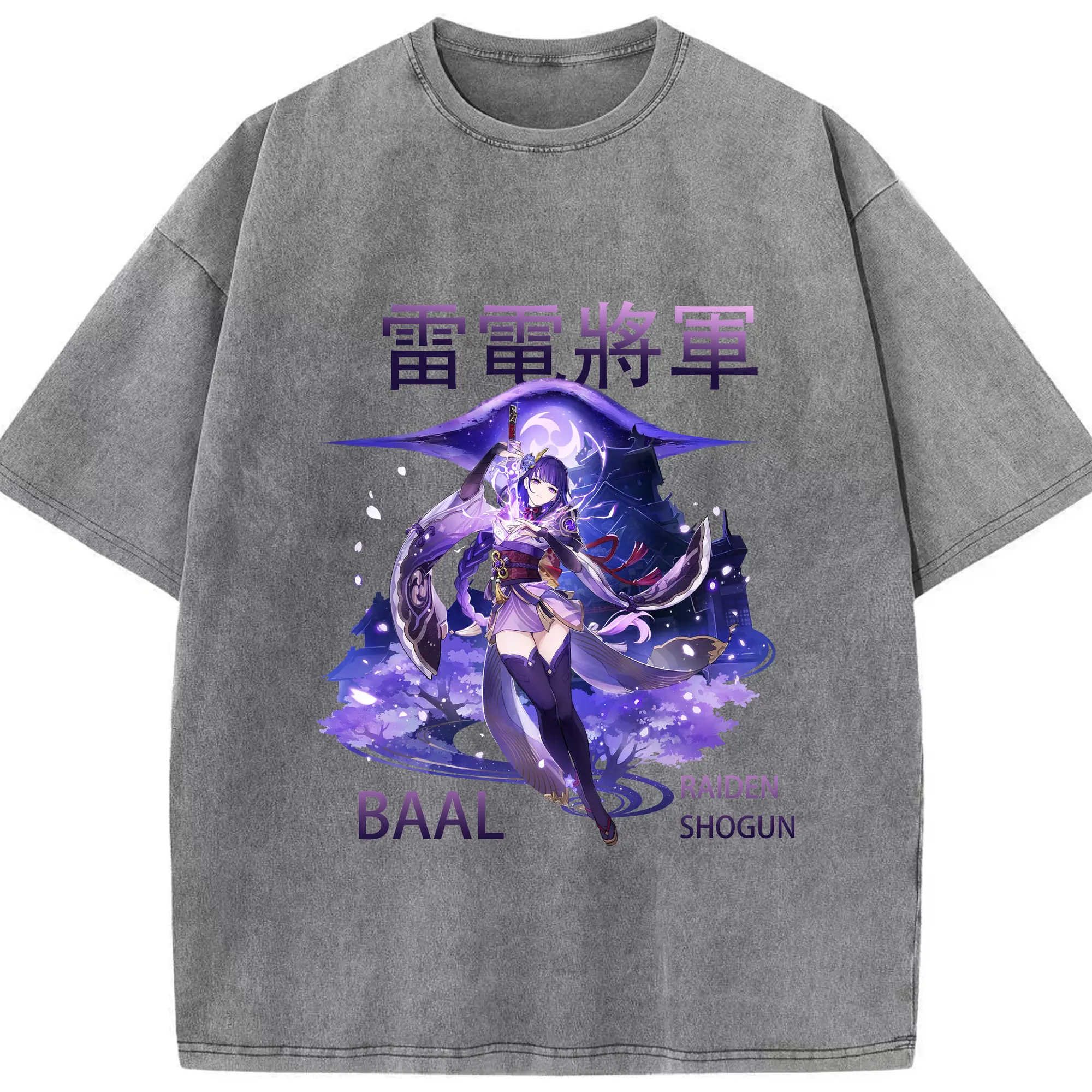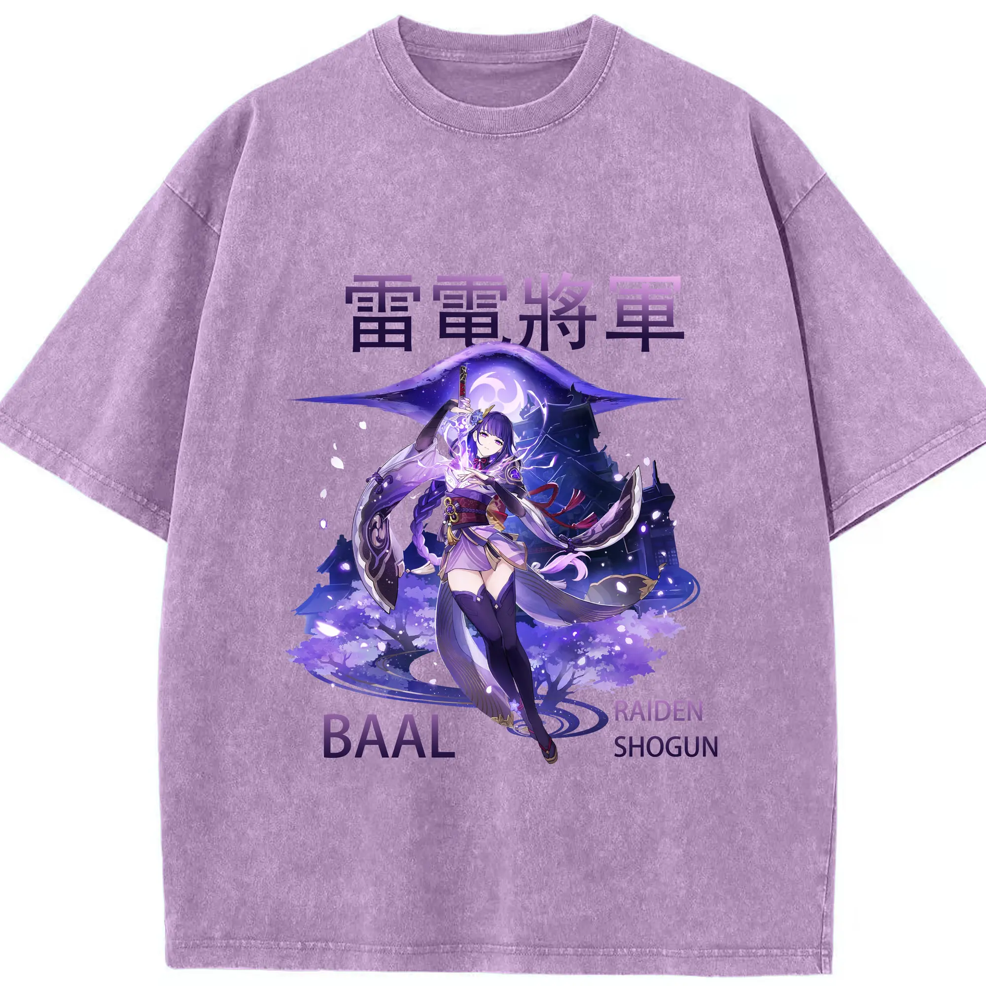 原神 雷電将軍 グラフィックアート - 綿100% 半袖Tシャツ ・ フロントプリント ・ 快適 通気性 ・ 日常使い 散歩 スポーツ用