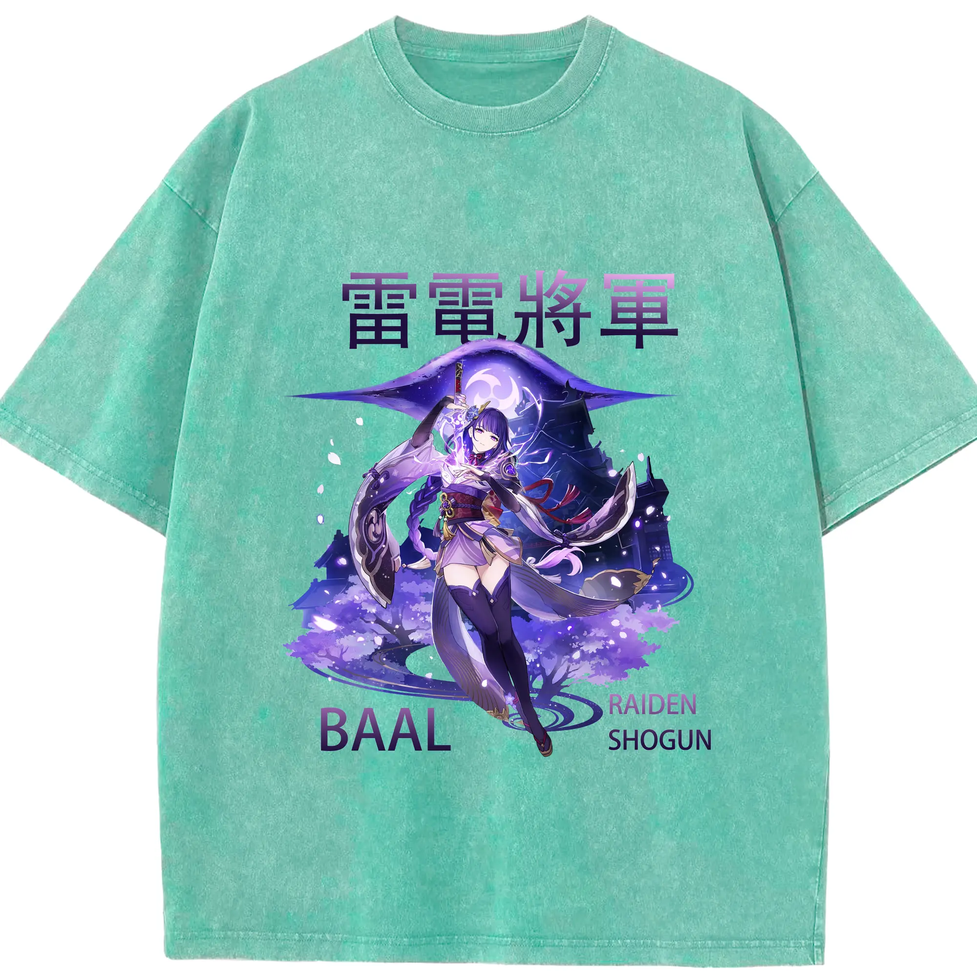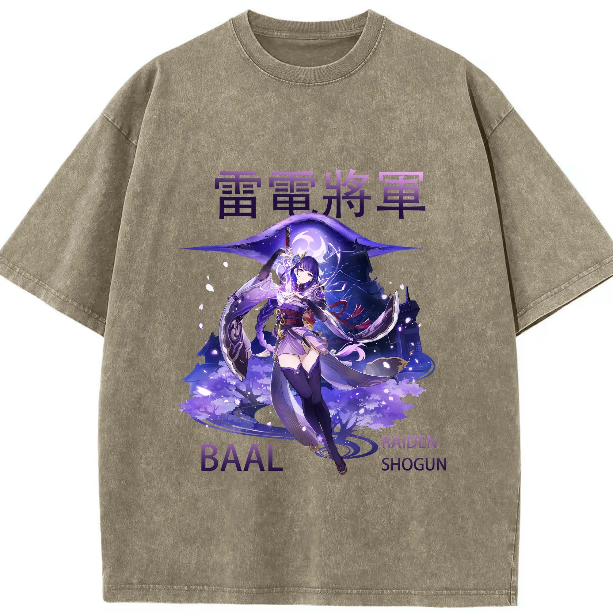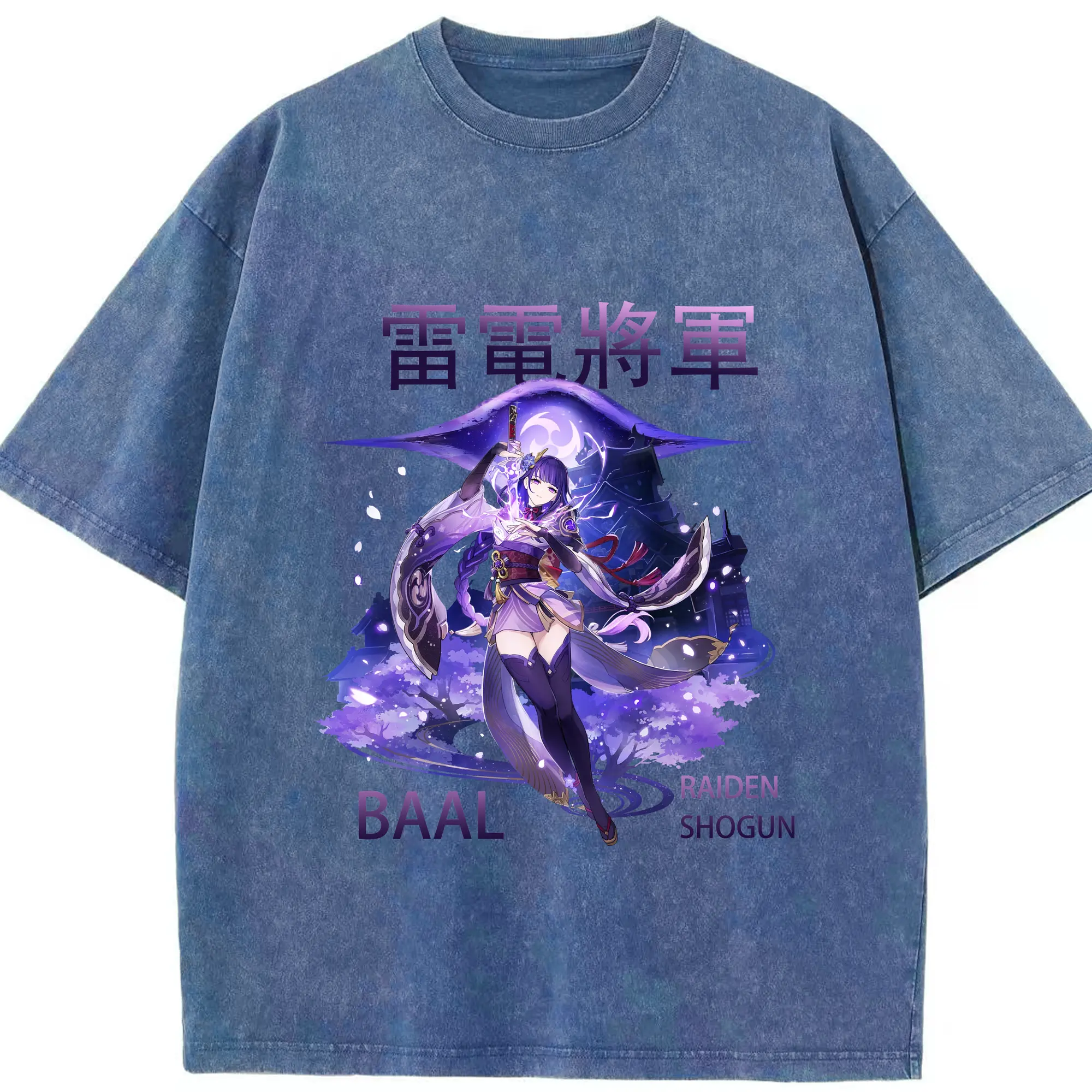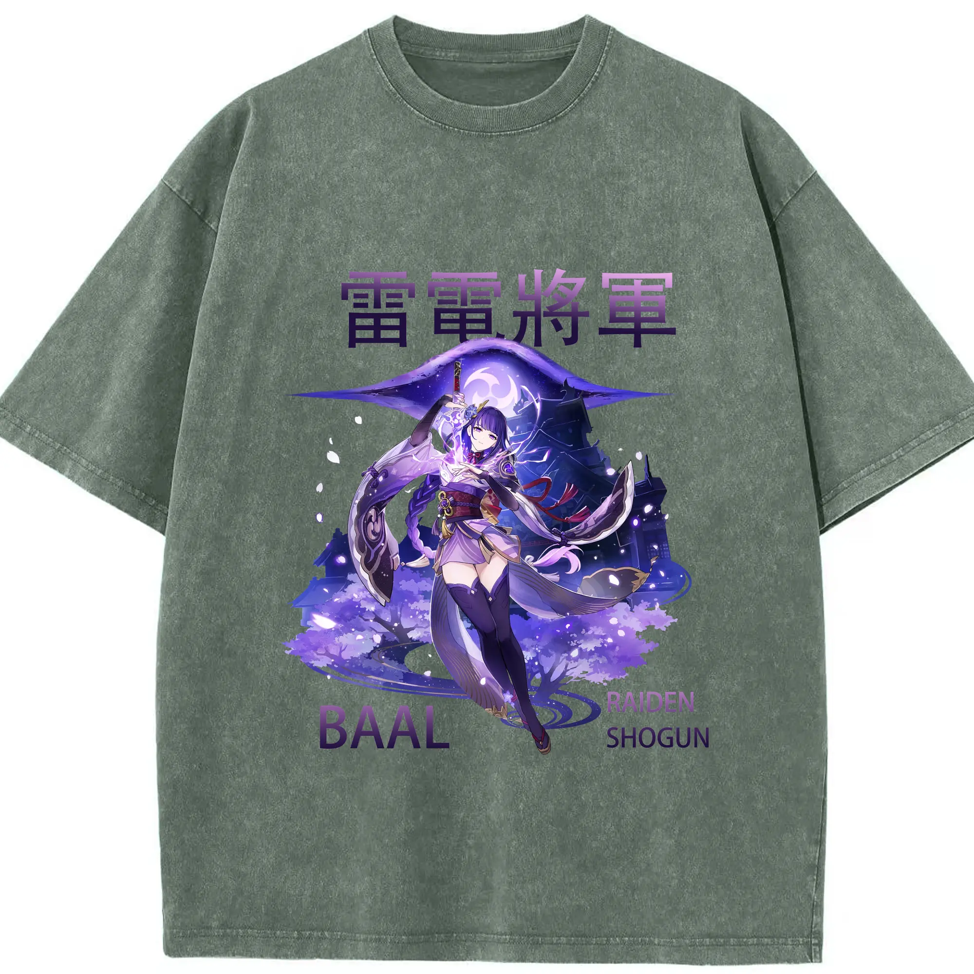 原神 雷電将軍 グラフィックアート - 綿100% 半袖Tシャツ ・ フロントプリント ・ 快適 通気性 ・ 日常使い 散歩 スポーツ用