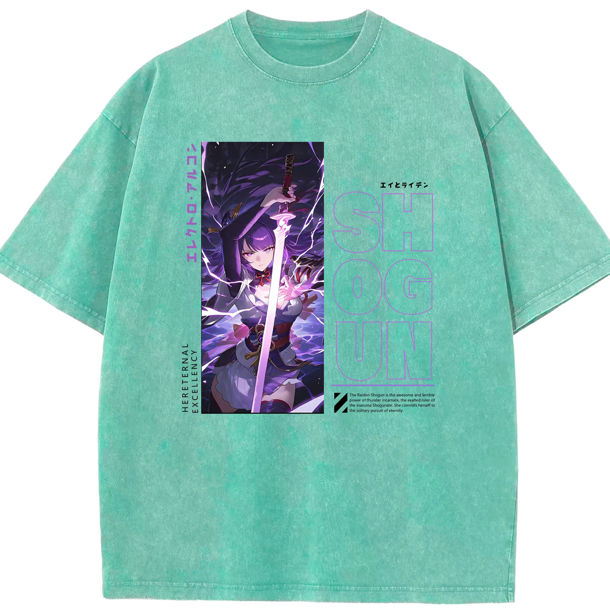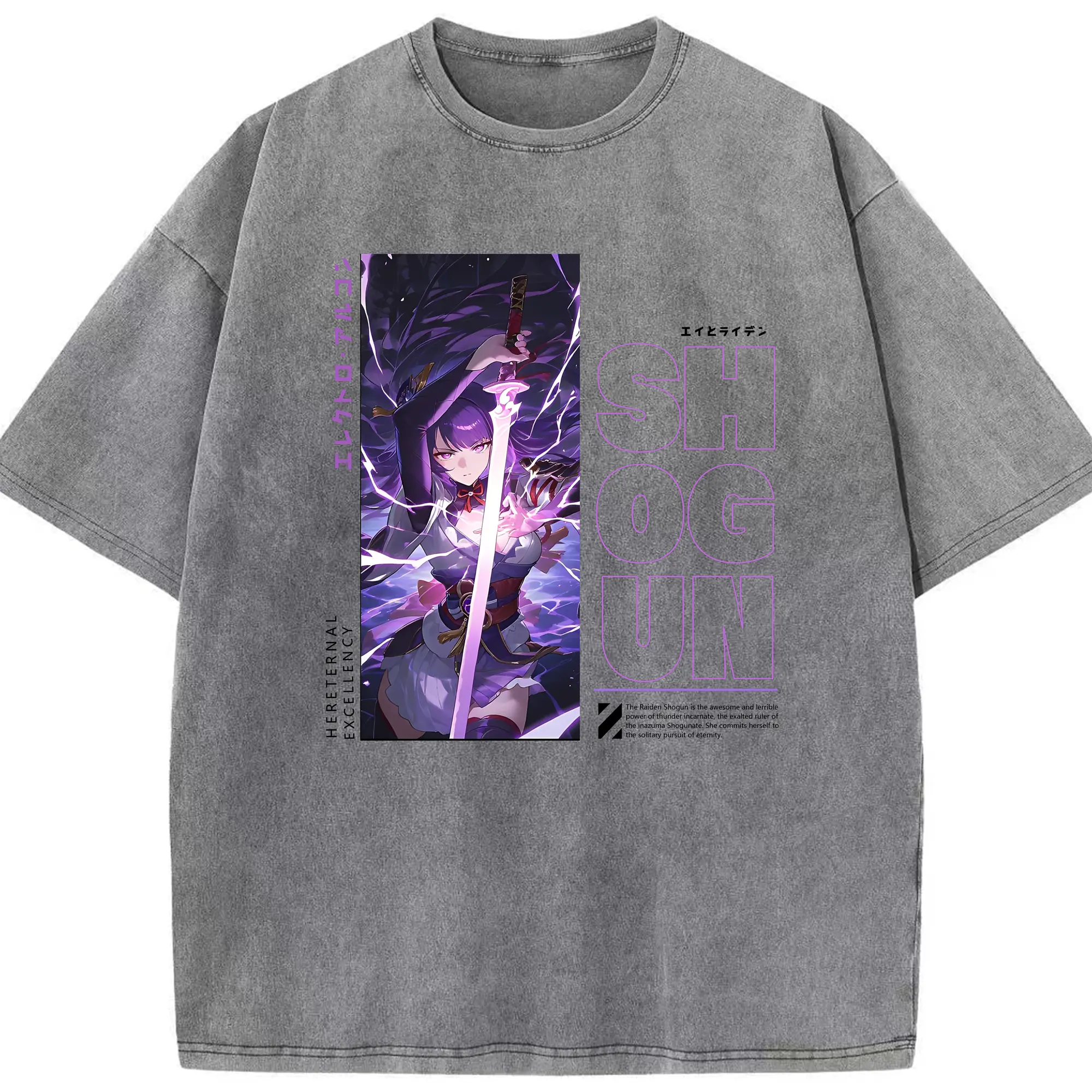 原神 ヌヴィレット アニメ風プリント 推し活グッズ - 綿100% ヴィンテージ風 半袖Tシャツ ・ フロントプリント ・ 柔らか肌触り ・ 通気性 快適 ・ スポーツ カジュアル 外出用