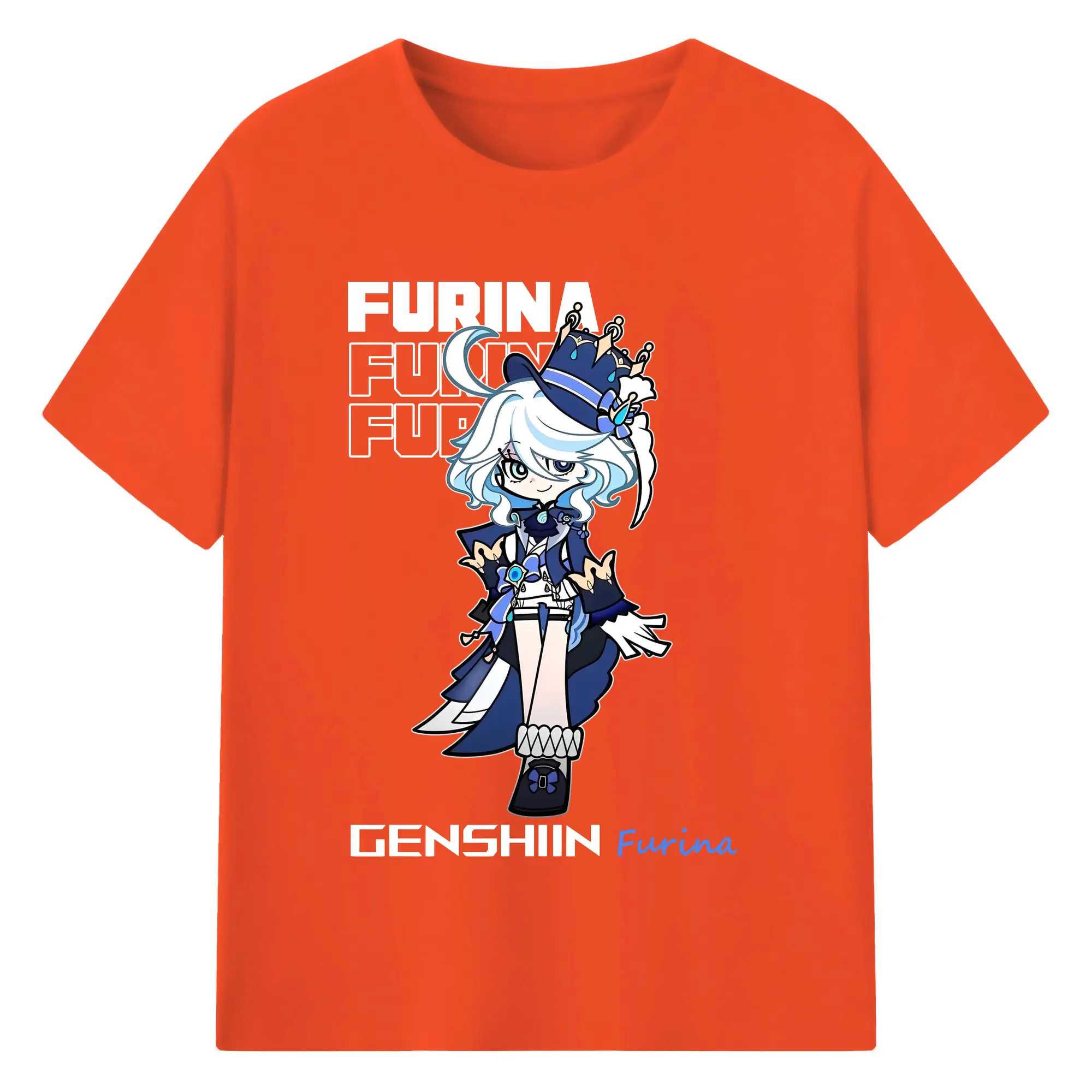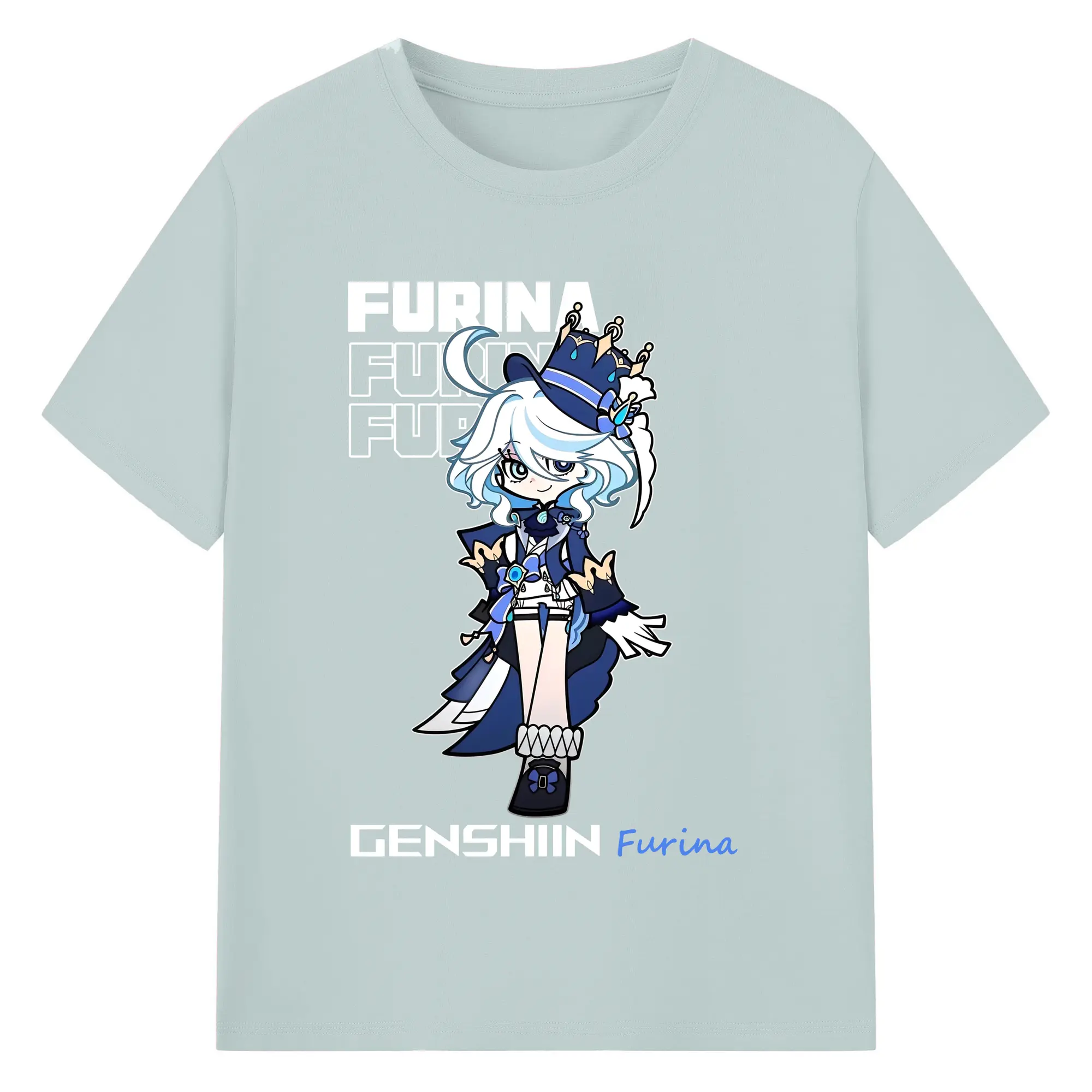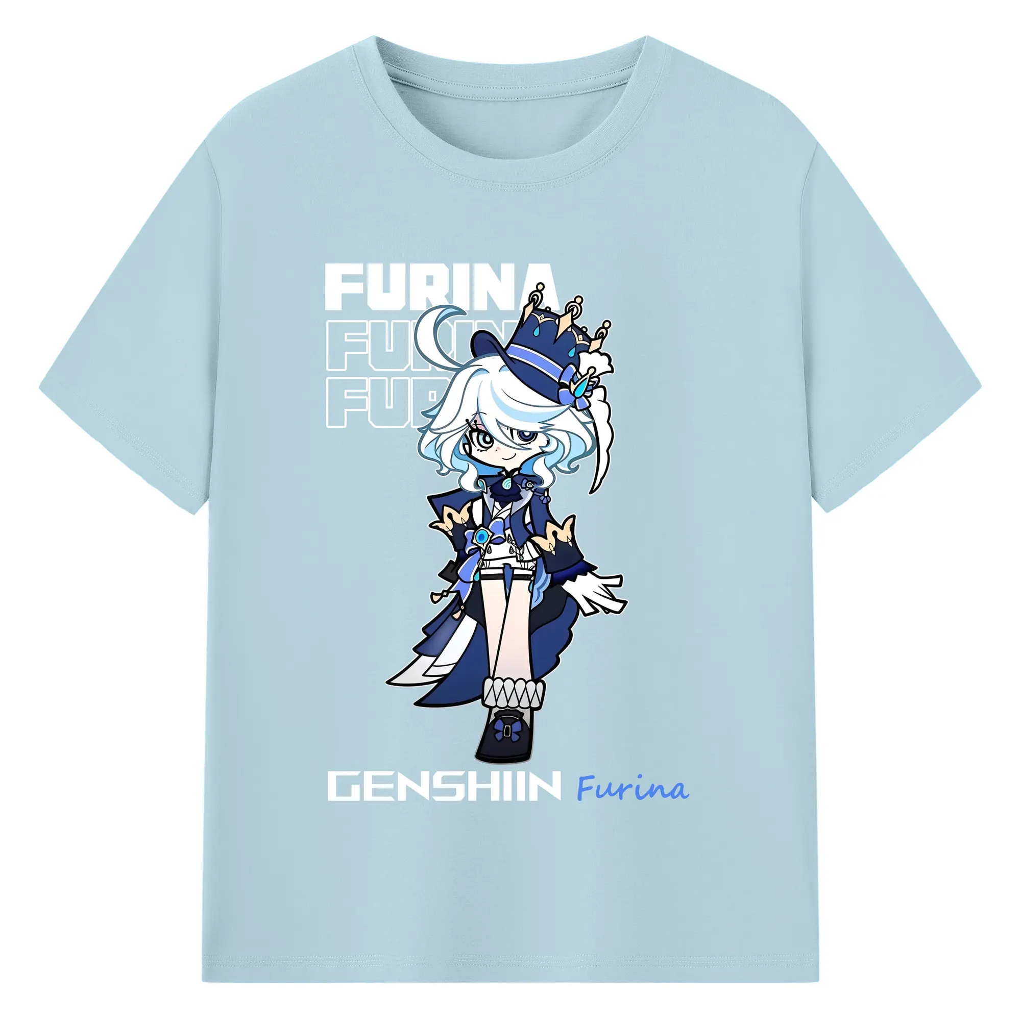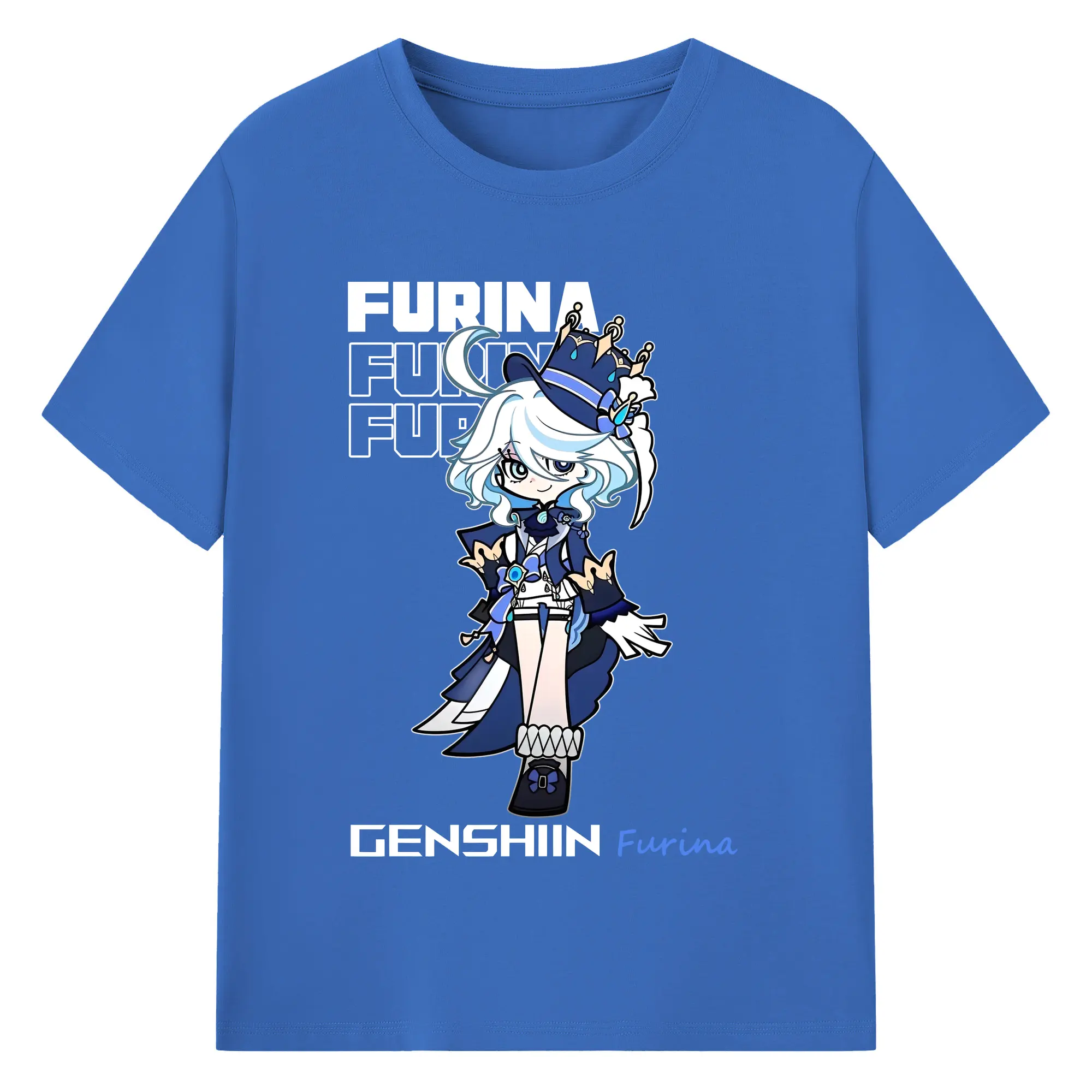 原神 フリナ(水神)人気キャラクター限定プリント - 綿100% 半袖Tシャツ ・ フロントプリント ・ 快適 通気性 ・ 日常使い 散歩 スポーツ用