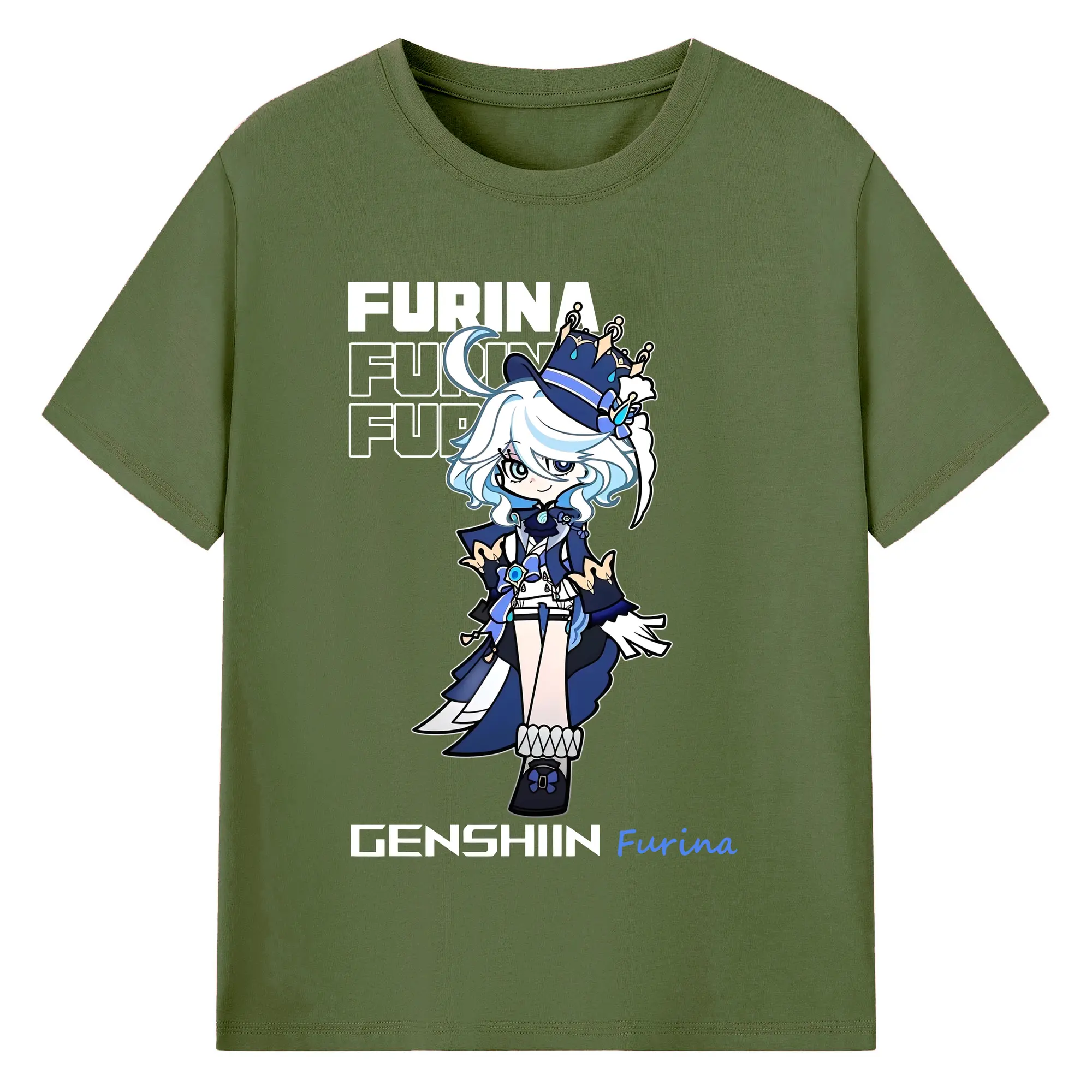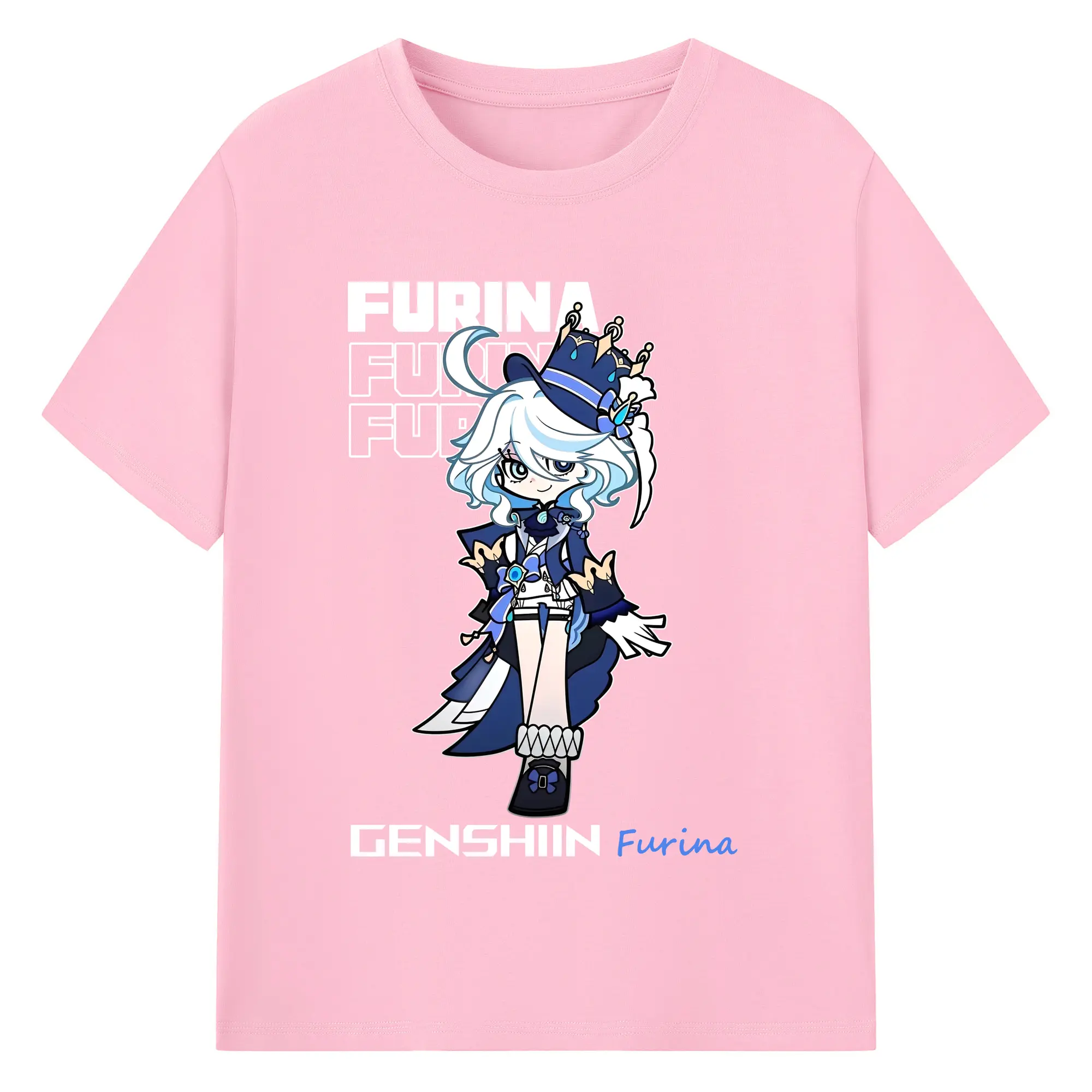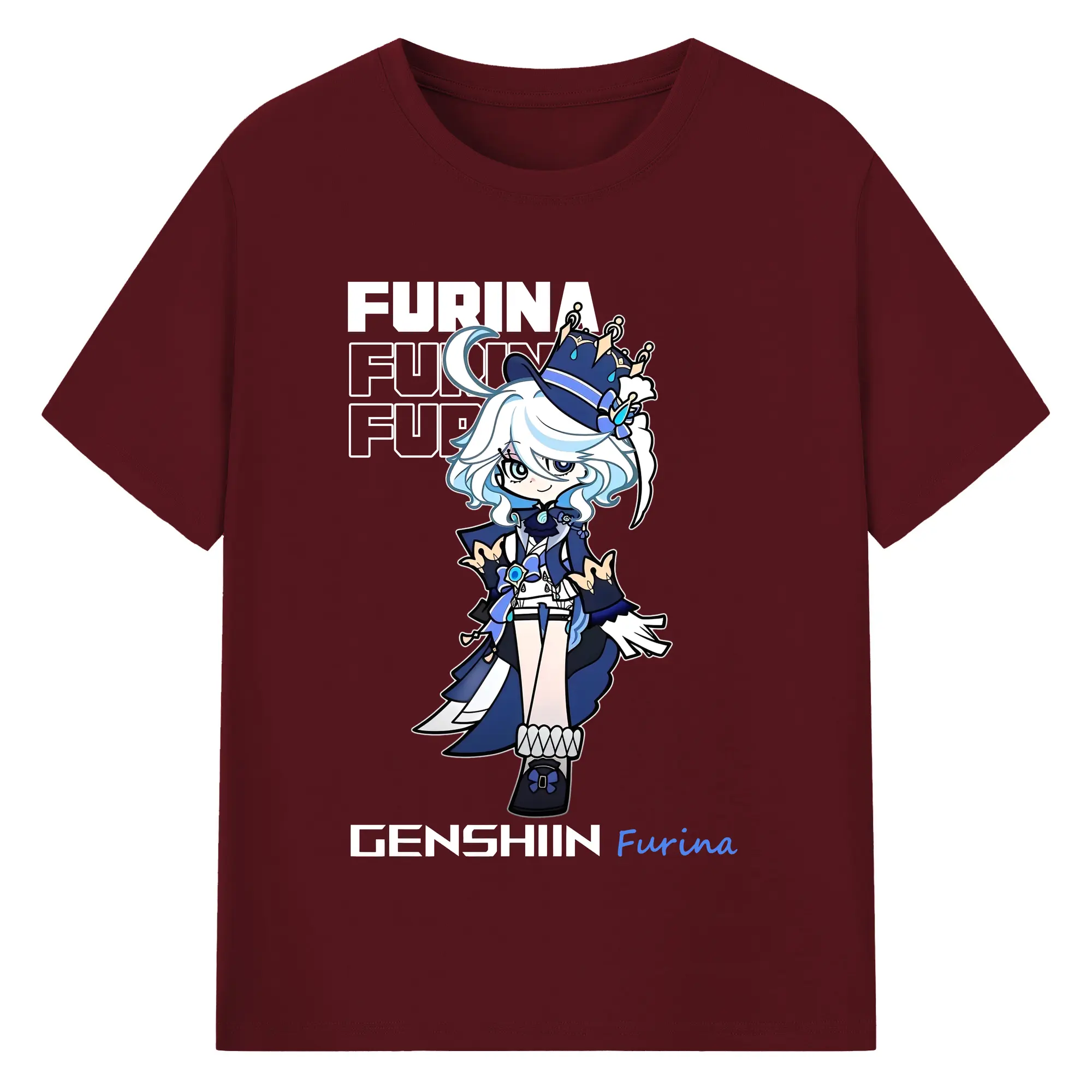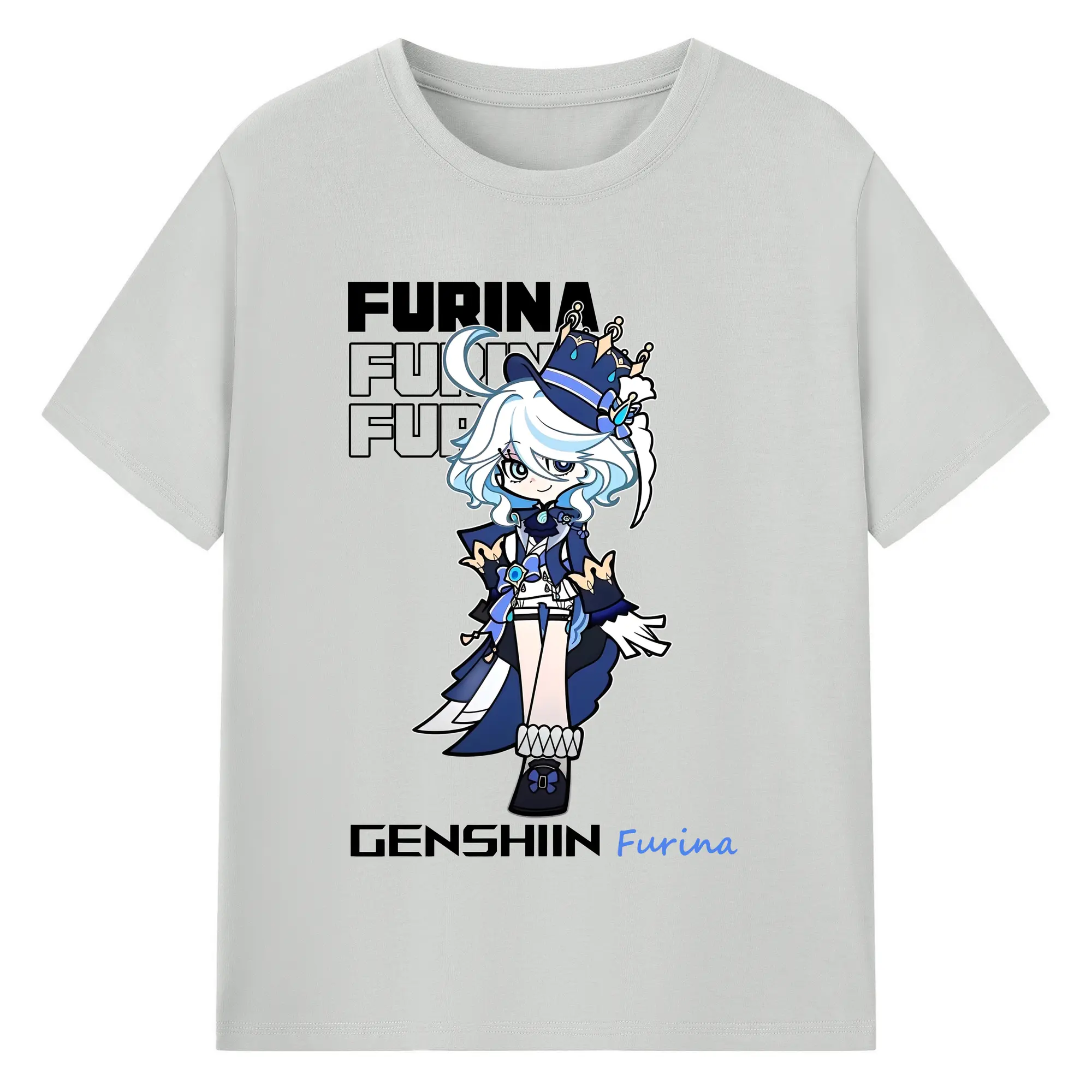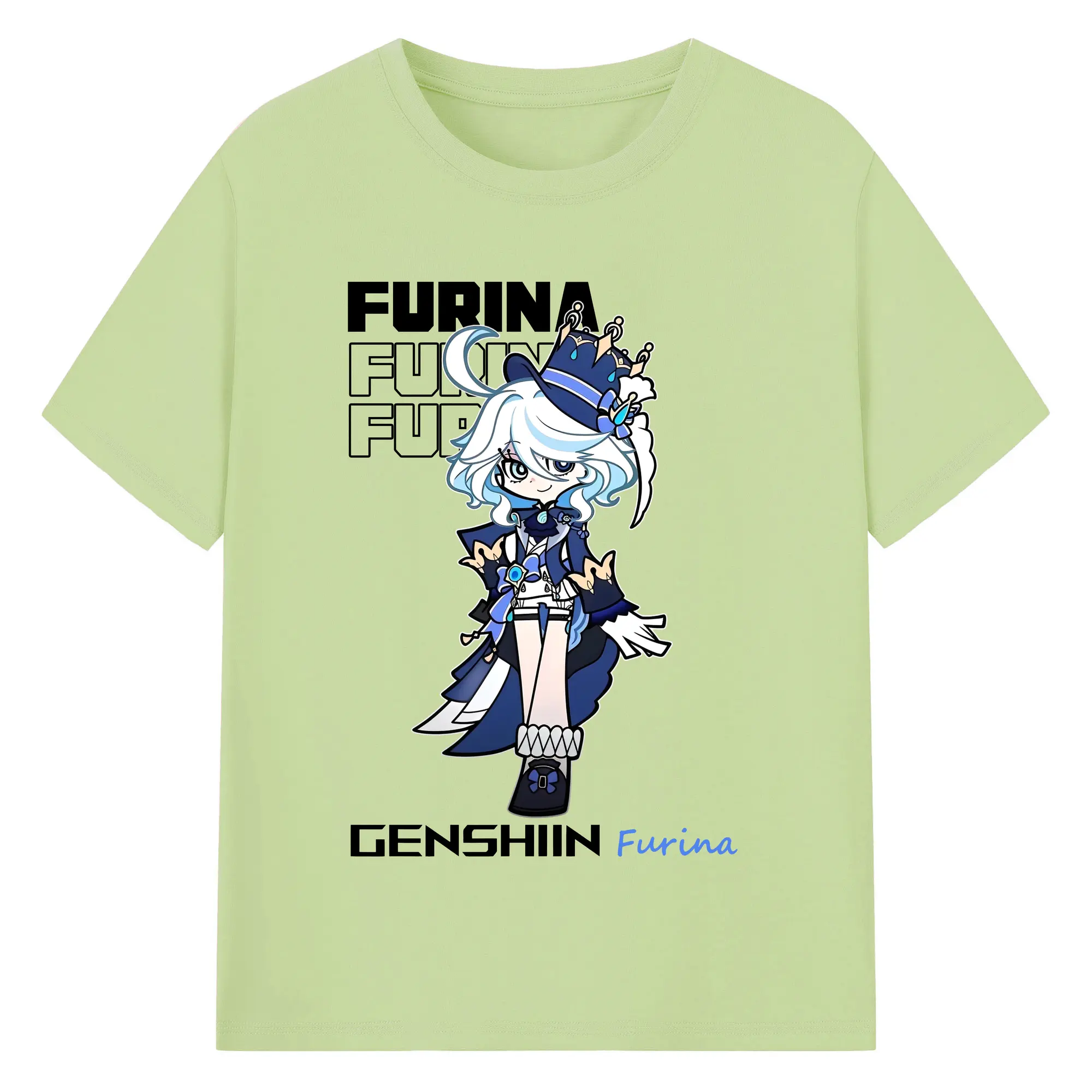 原神 フリナ(水神)人気キャラクター限定プリント - 綿100% 半袖Tシャツ ・ フロントプリント ・ 快適 通気性 ・ 日常使い 散歩 スポーツ用