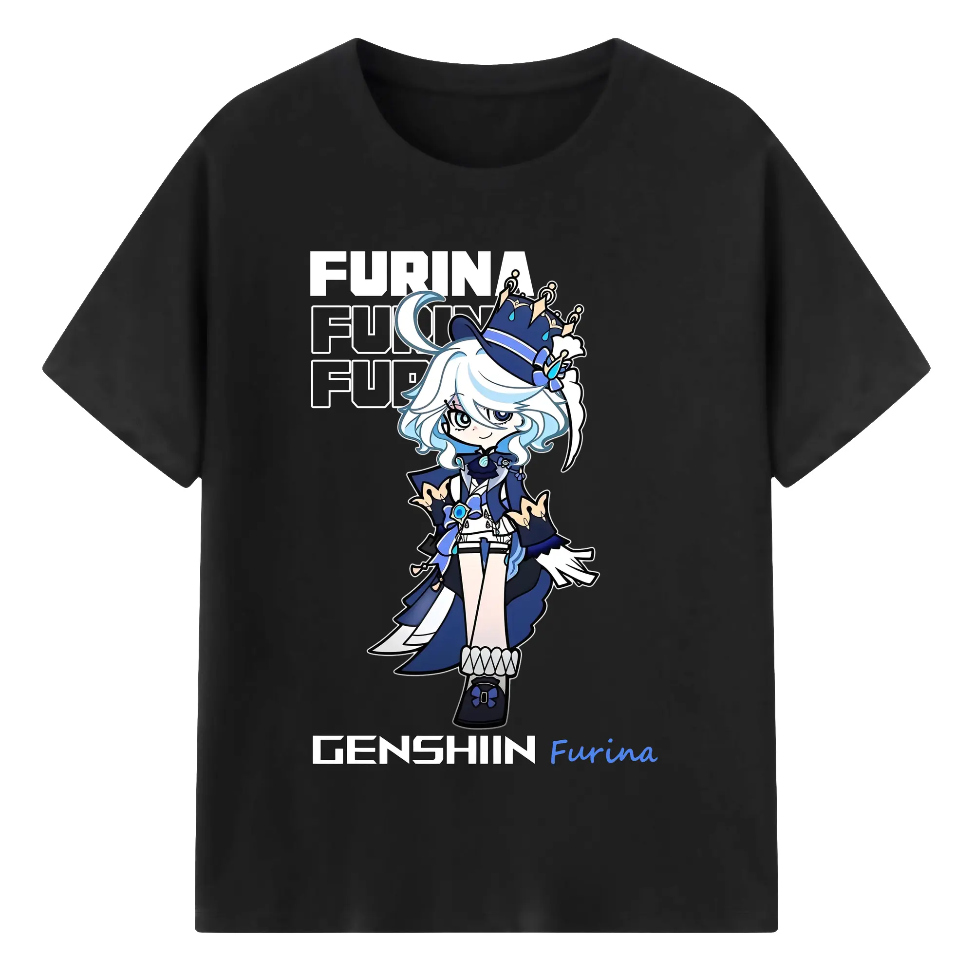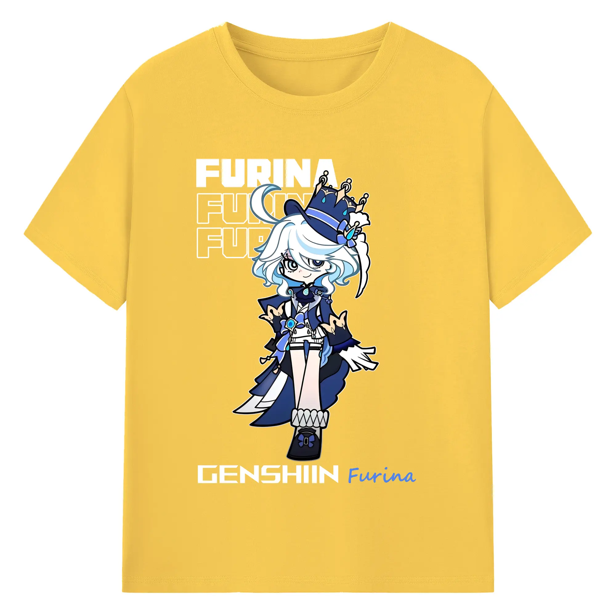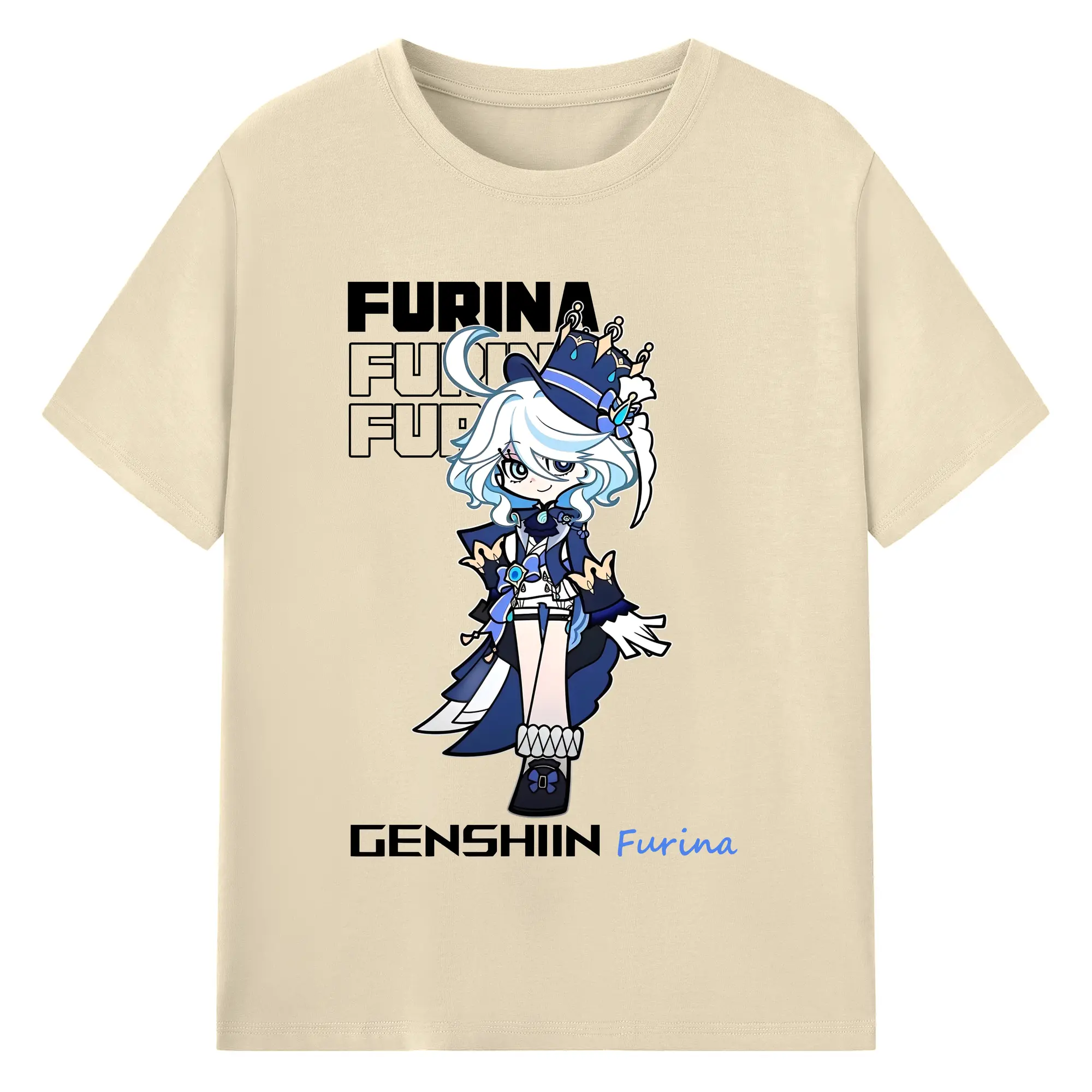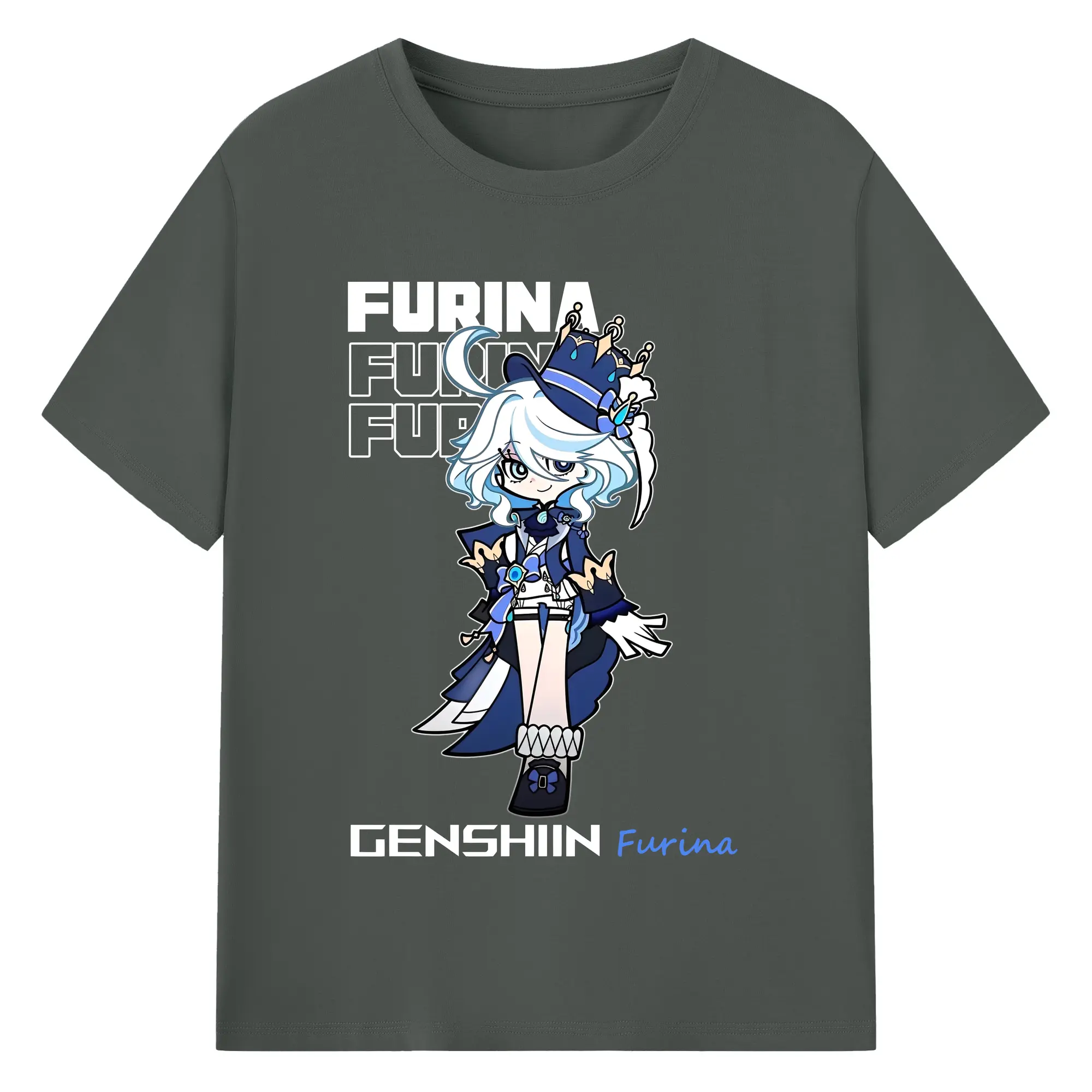 原神 Furina ファン必見!可愛いデザイン - 綿100% ヴィンテージ風 半袖Tシャツ ・ フロントプリント ・ 柔らか肌触り ・ 通気性 快適 ・ スポーツ カジュアル 外出用