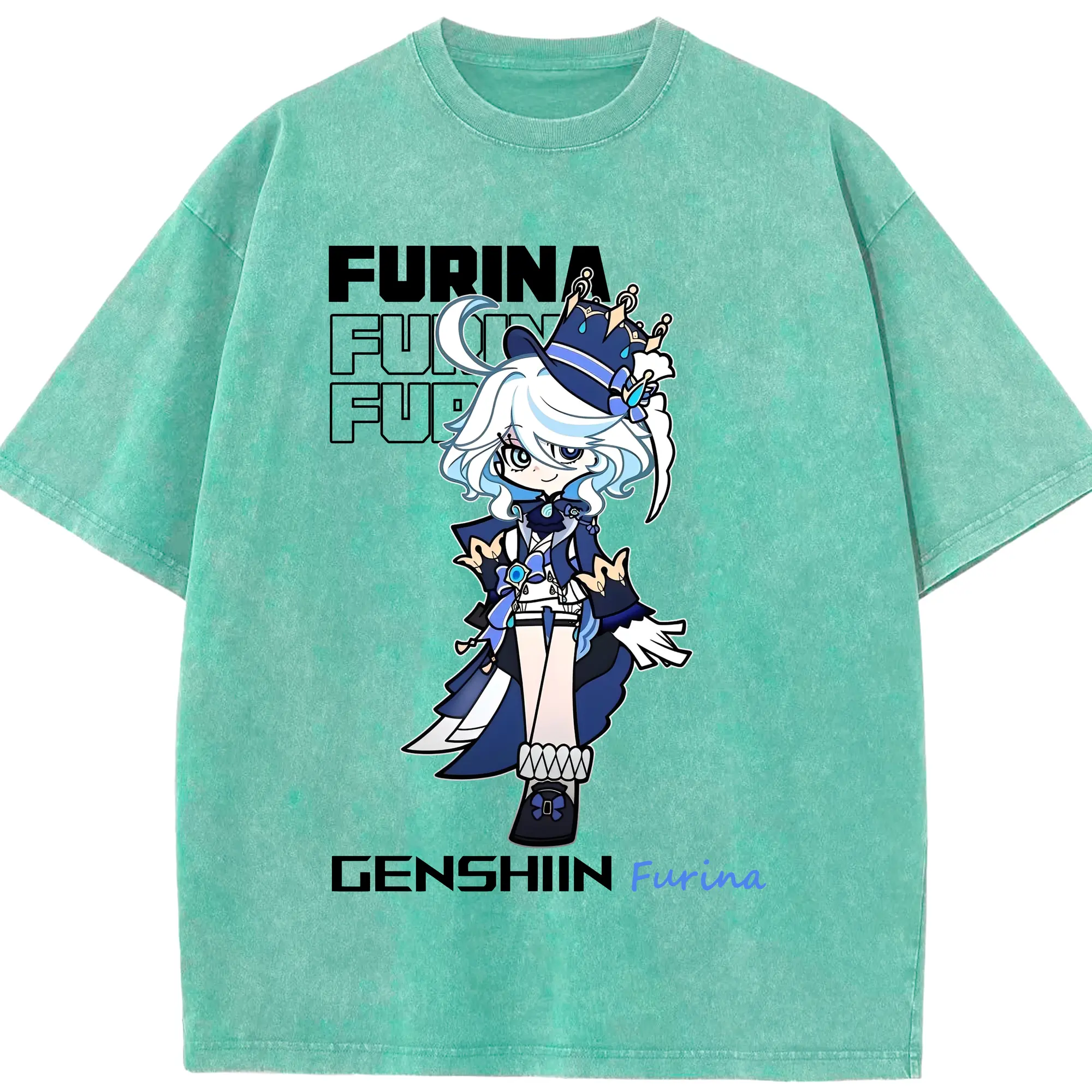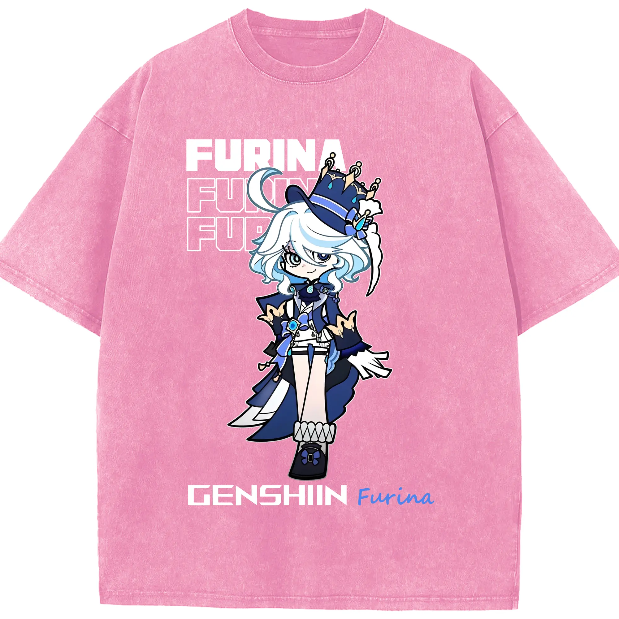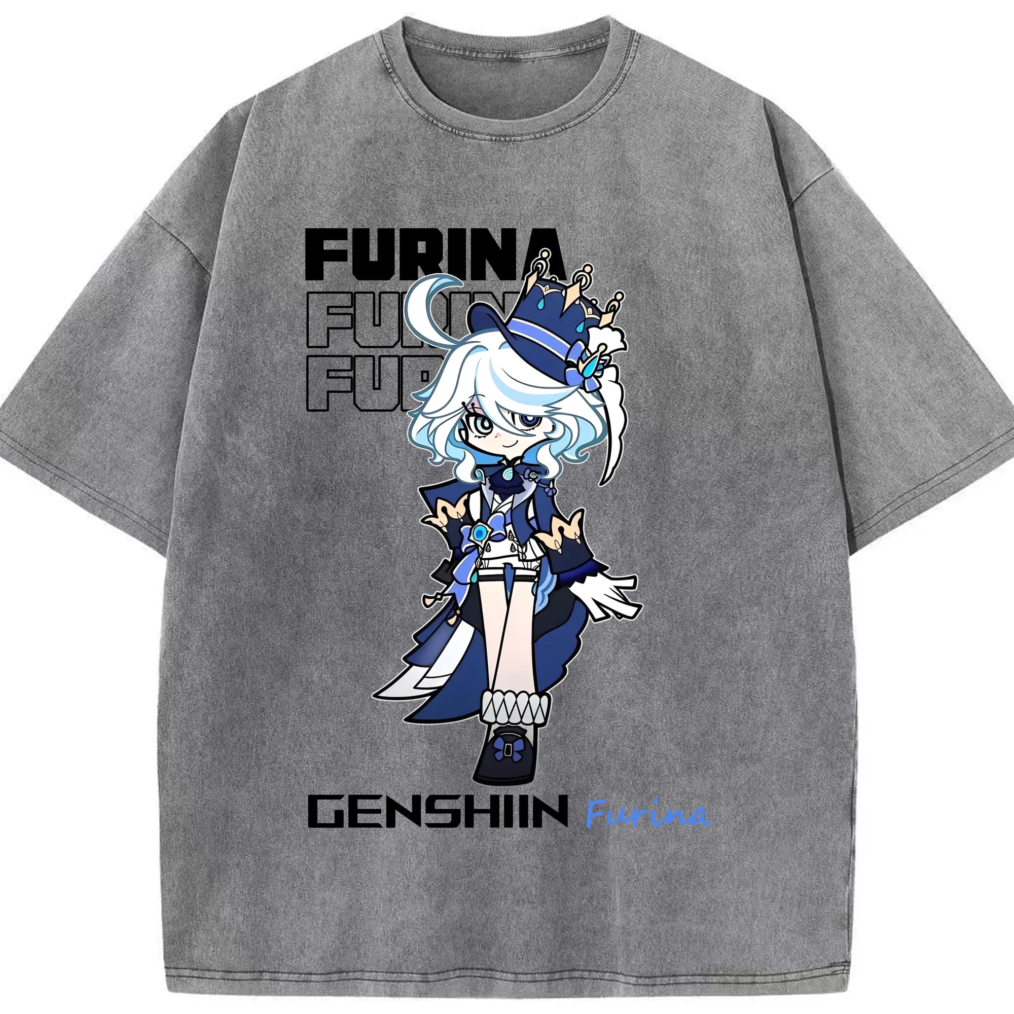 原神 Furina ファン必見!可愛いデザイン - 綿100% 半袖Tシャツ ・ フロントプリント ・ 快適 通気性 ・ 日常使い 散歩 スポーツ用