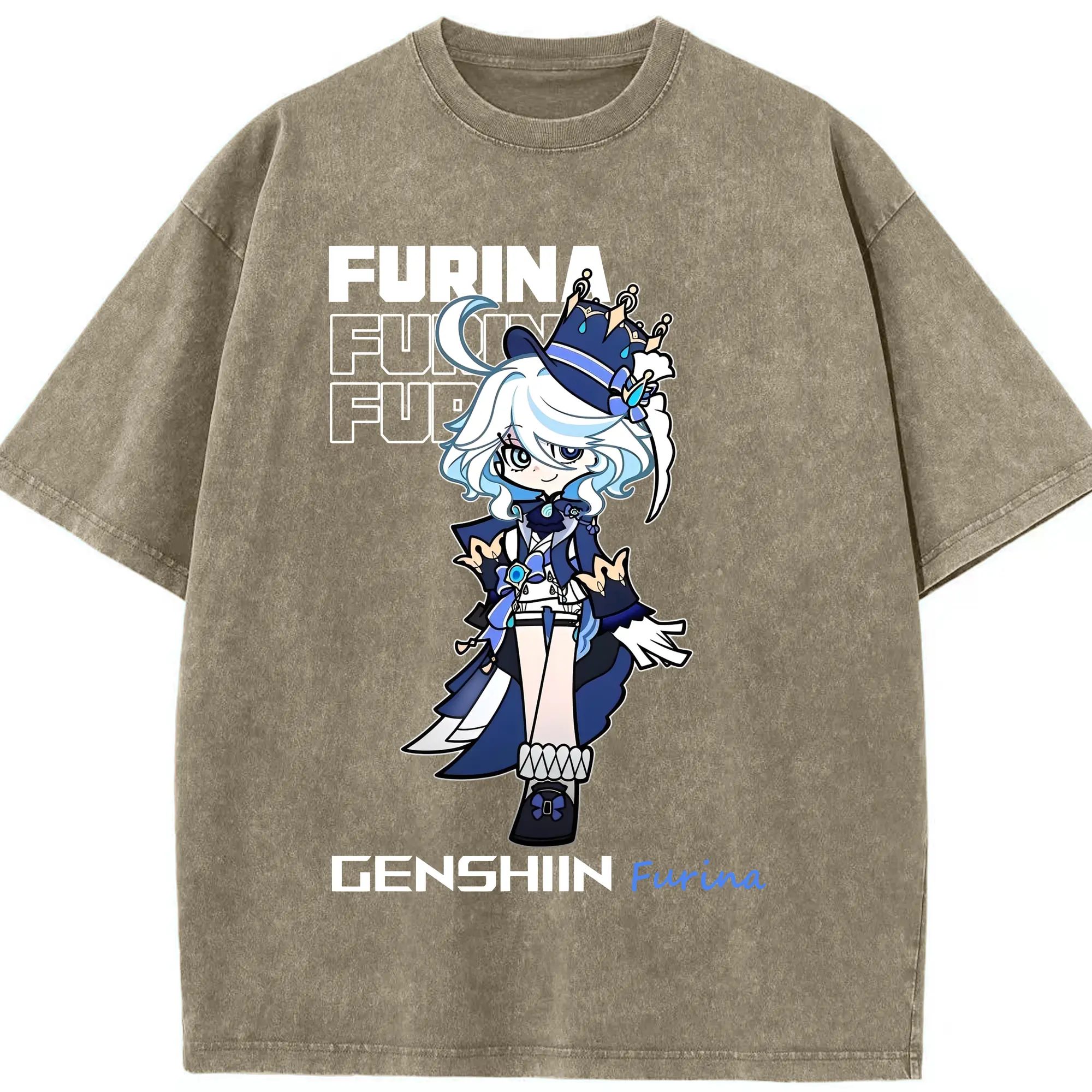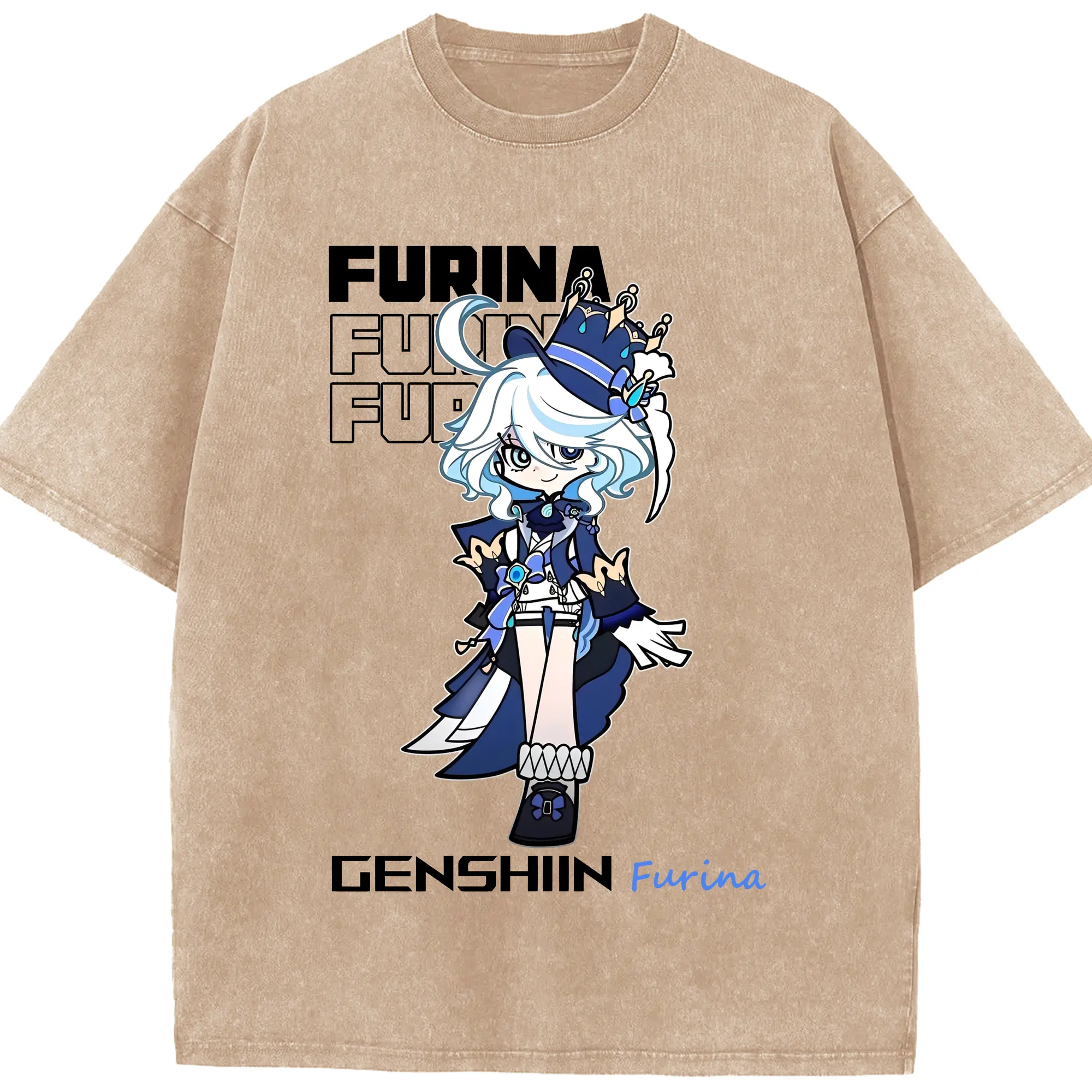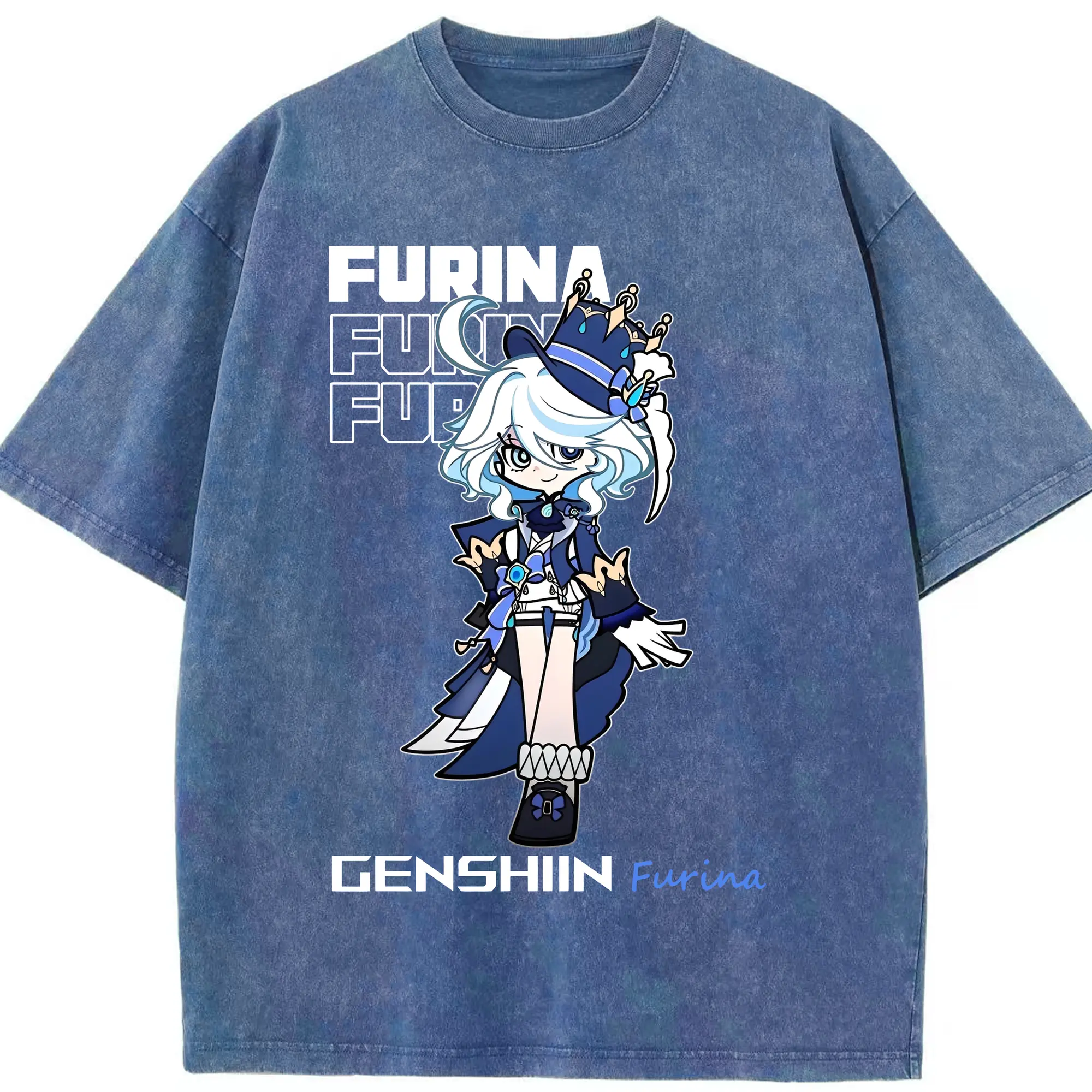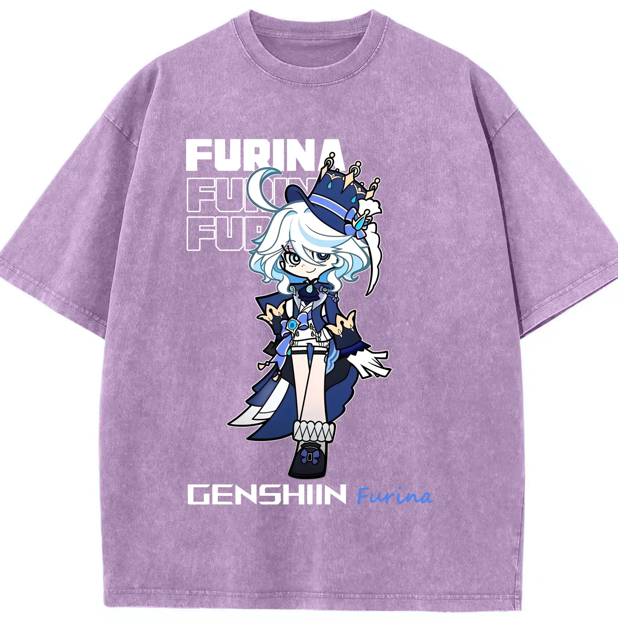 原神 Furina ファン必見!可愛いデザイン - 綿100% 半袖Tシャツ ・ フロントプリント ・ 快適 通気性 ・ 日常使い 散歩 スポーツ用