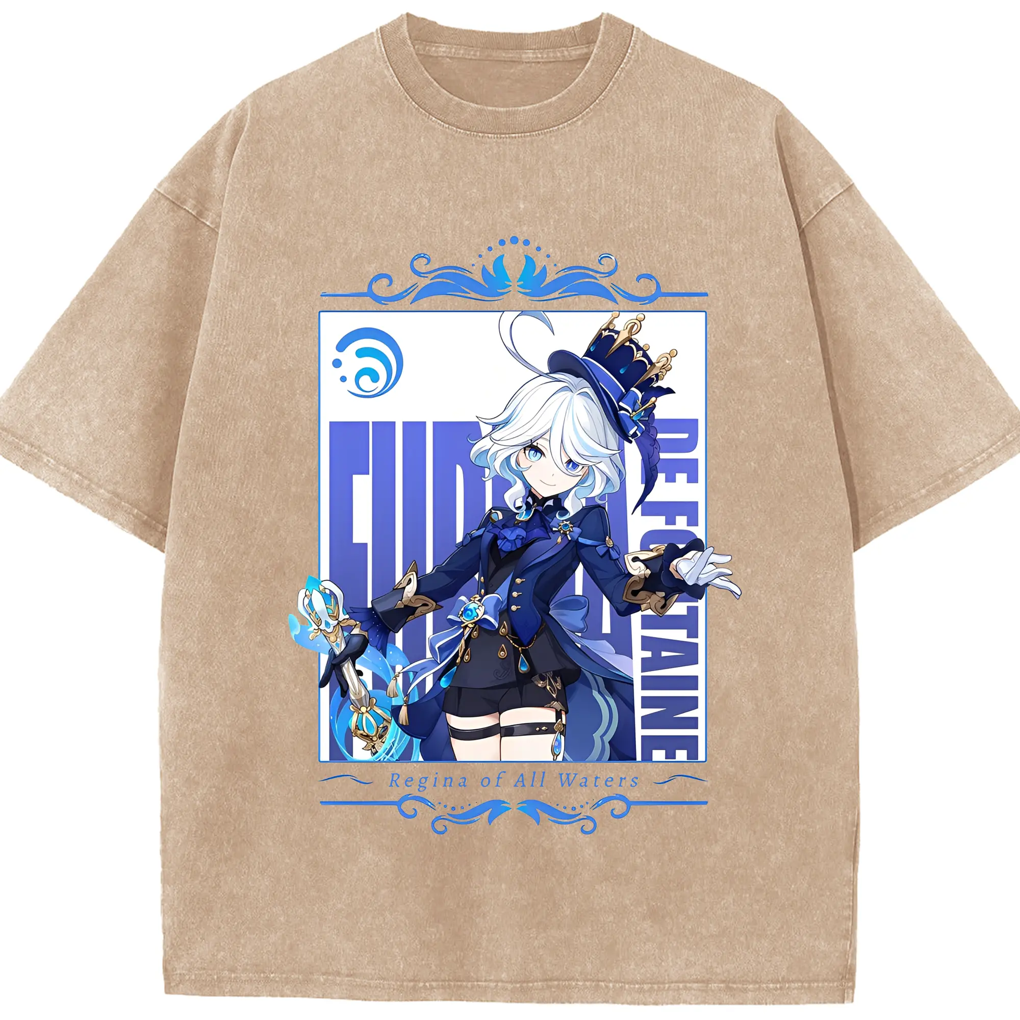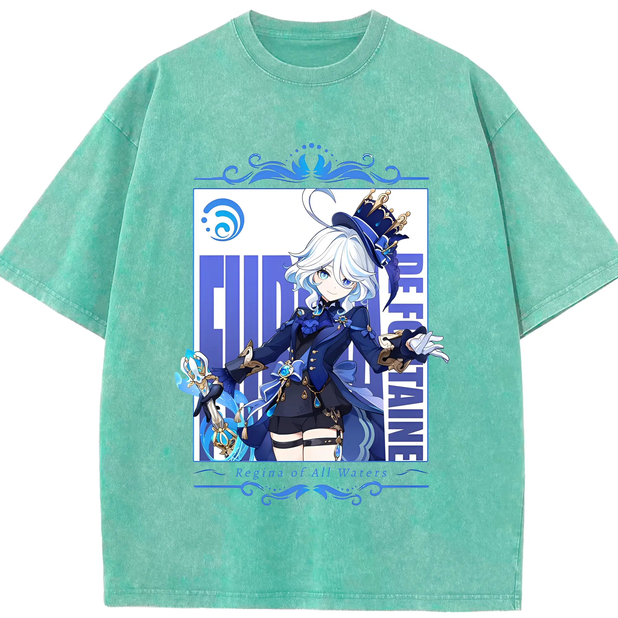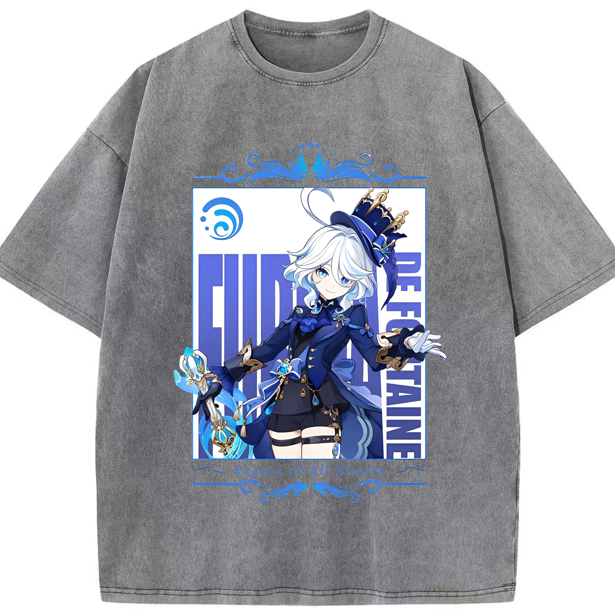 原神 Furina 限定デザイン キュートキャラクター - 綿100% 半袖Tシャツ ・ フロントプリント ・ 快適 通気性 ・ 日常使い 散歩 スポーツ用