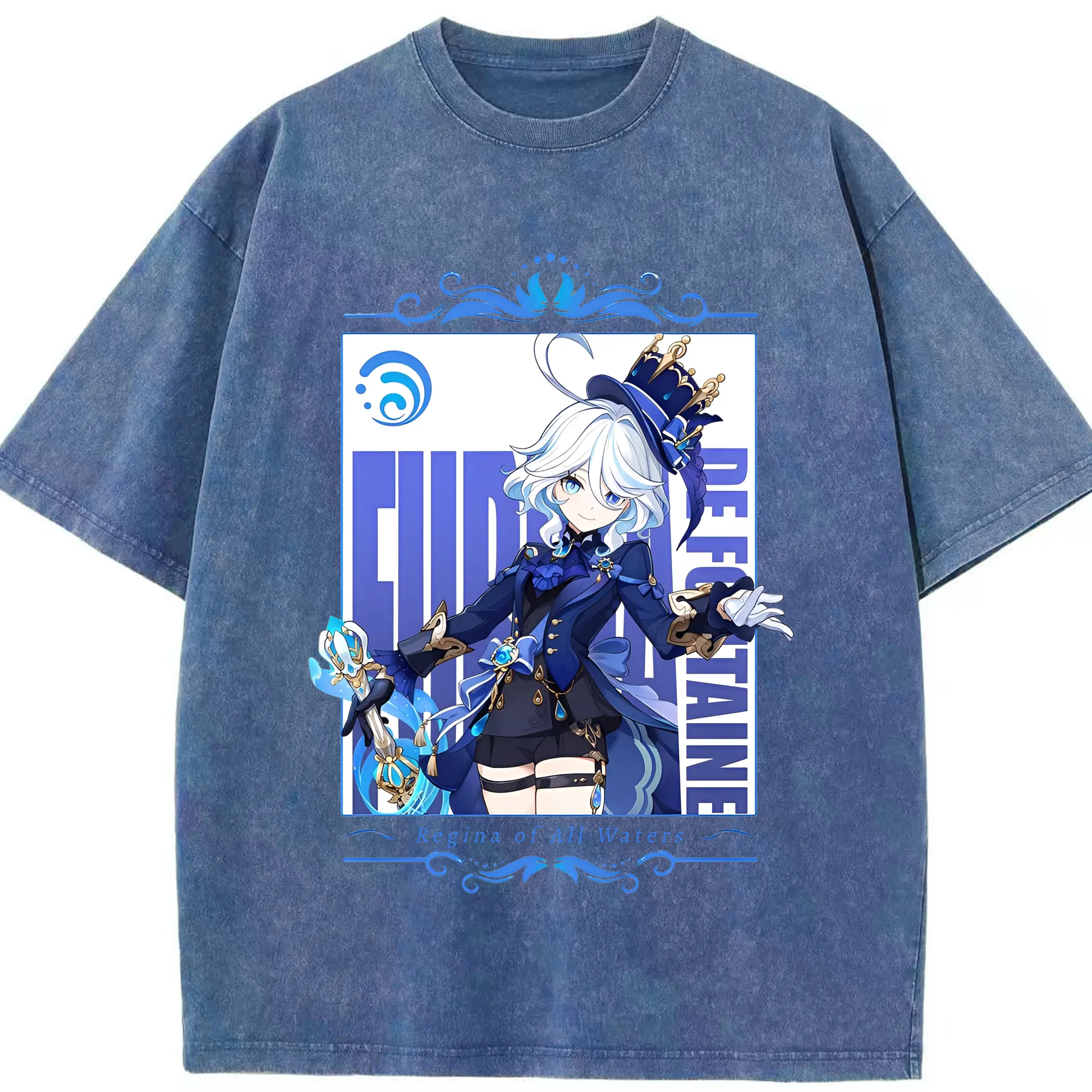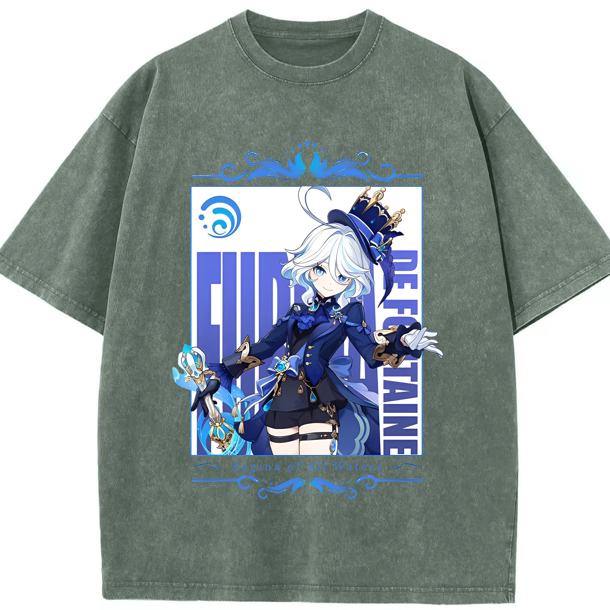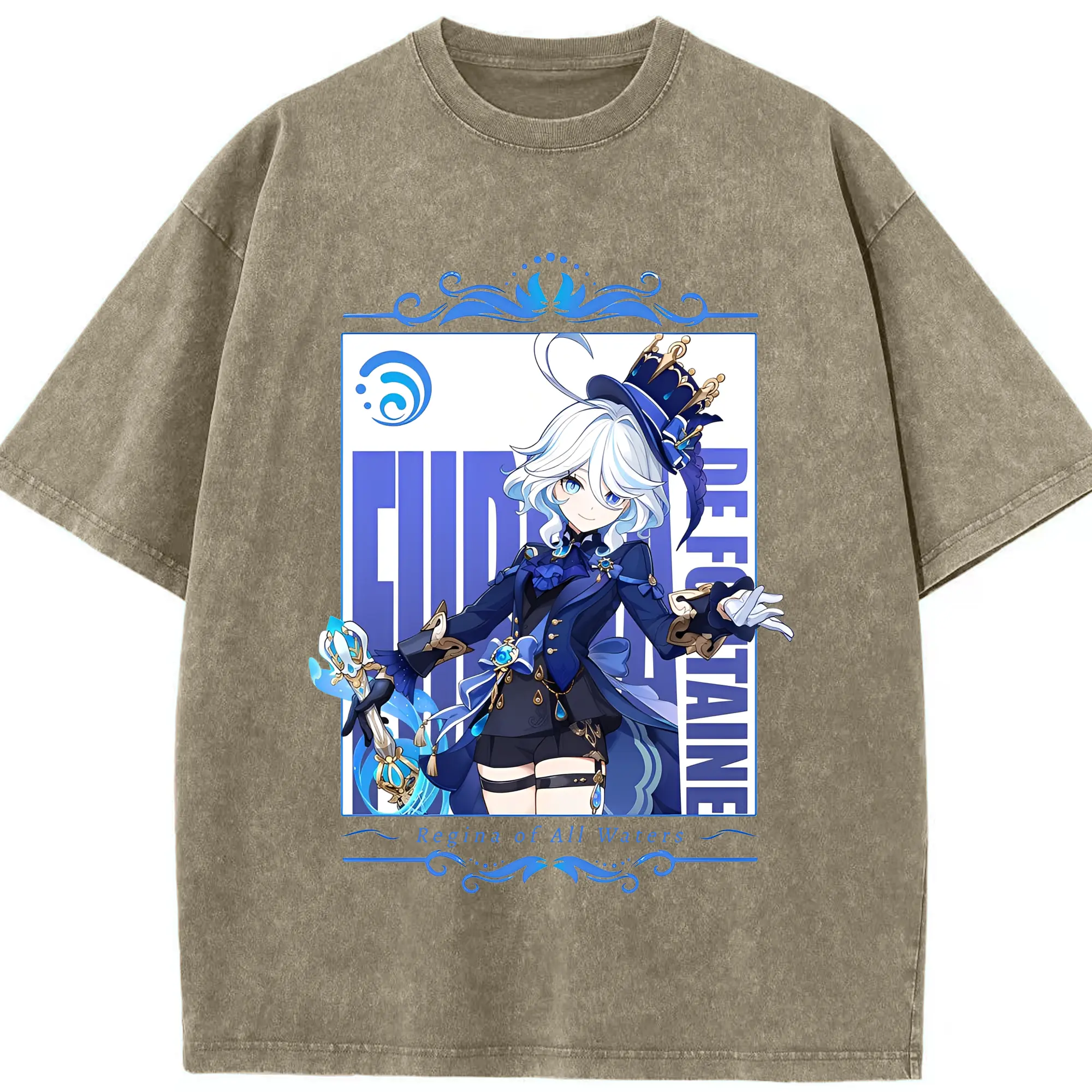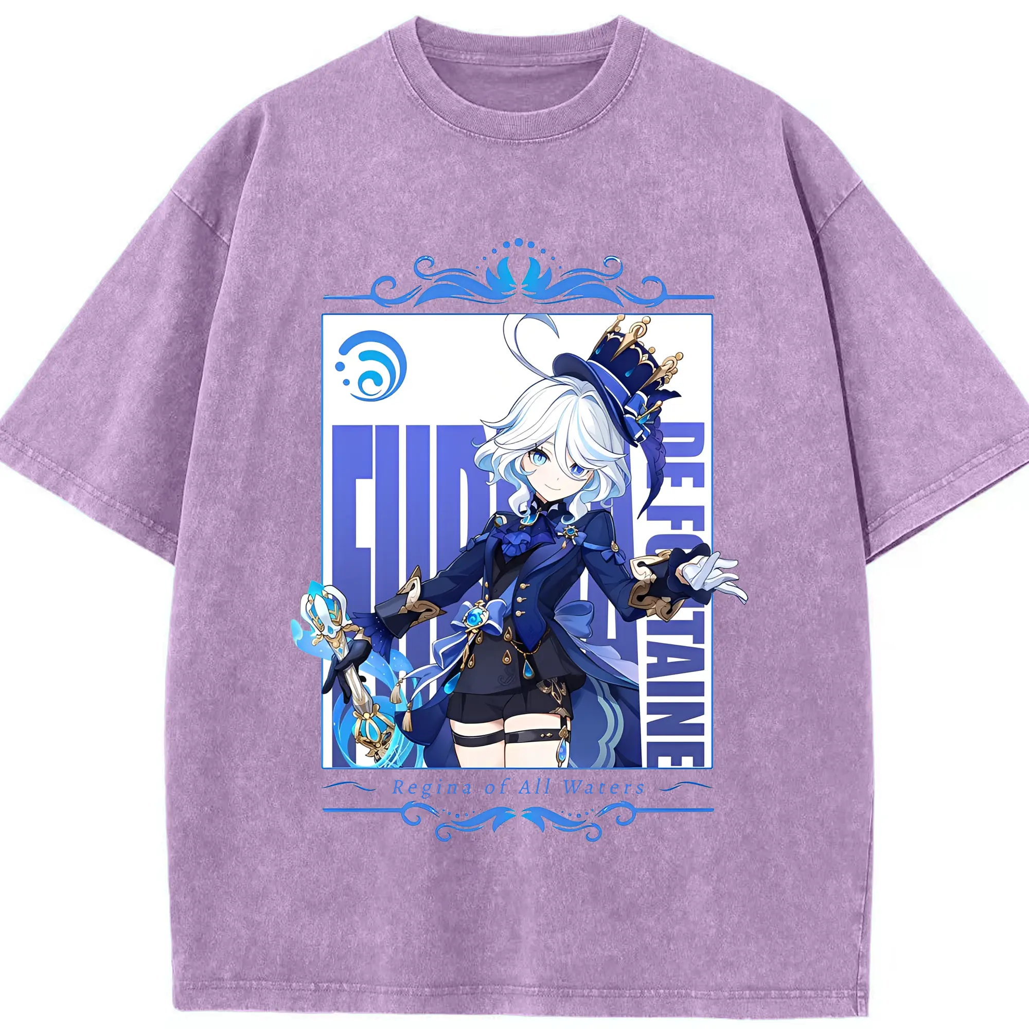 原神 Furina 限定デザイン キュートキャラクター - 綿100% 半袖Tシャツ ・ フロントプリント ・ 快適 通気性 ・ 日常使い 散歩 スポーツ用