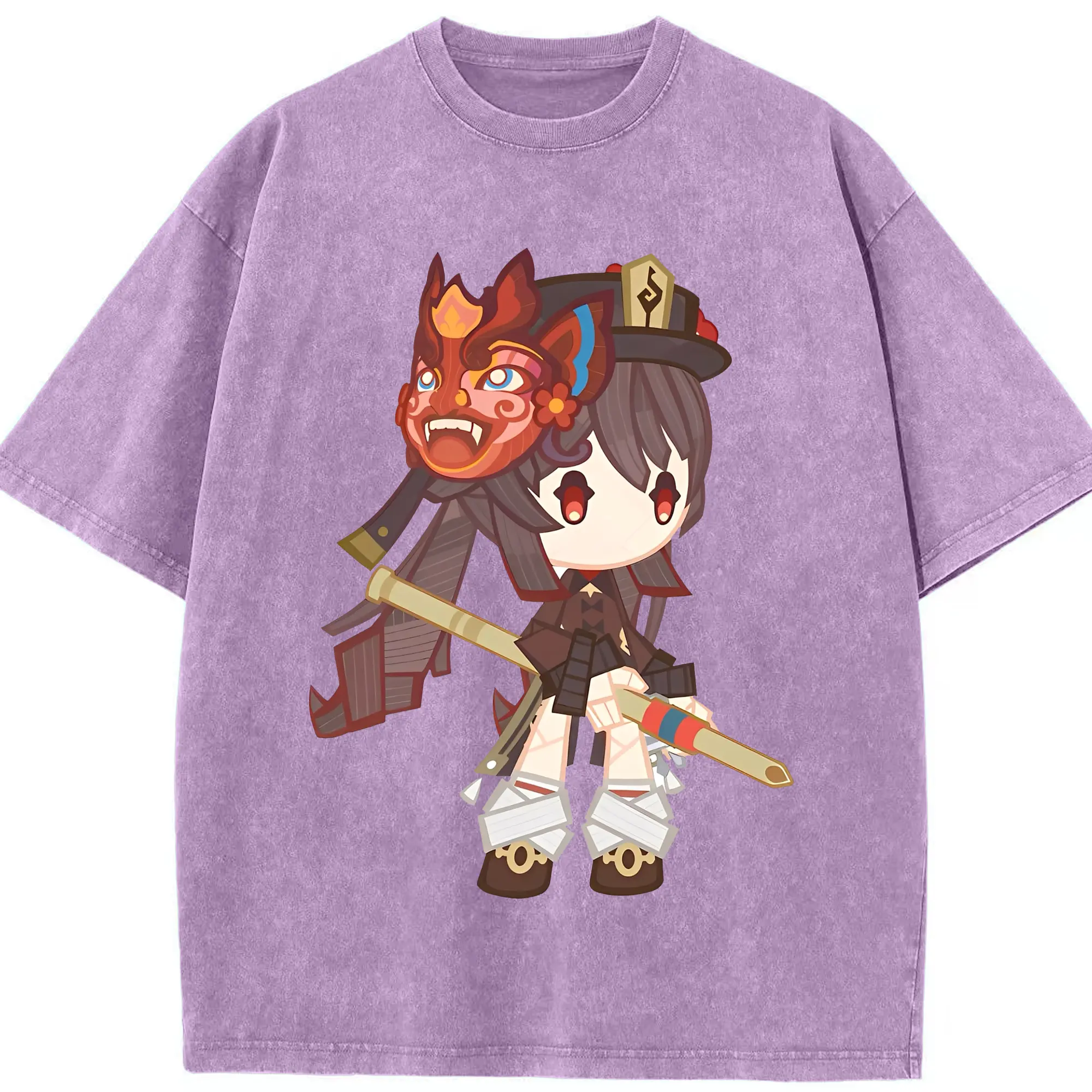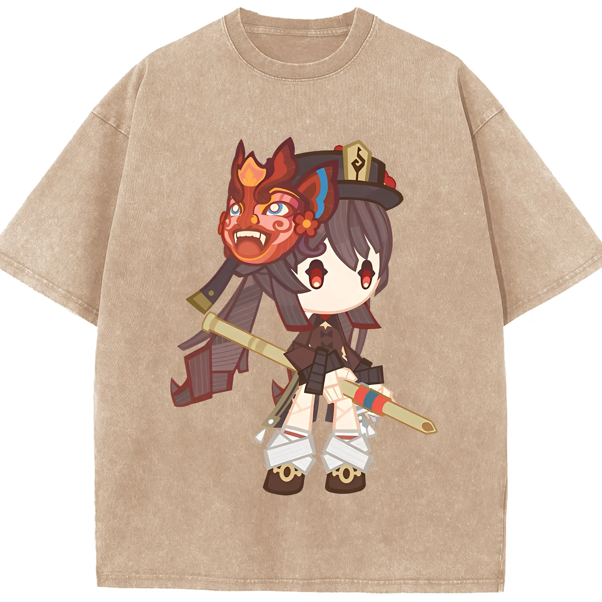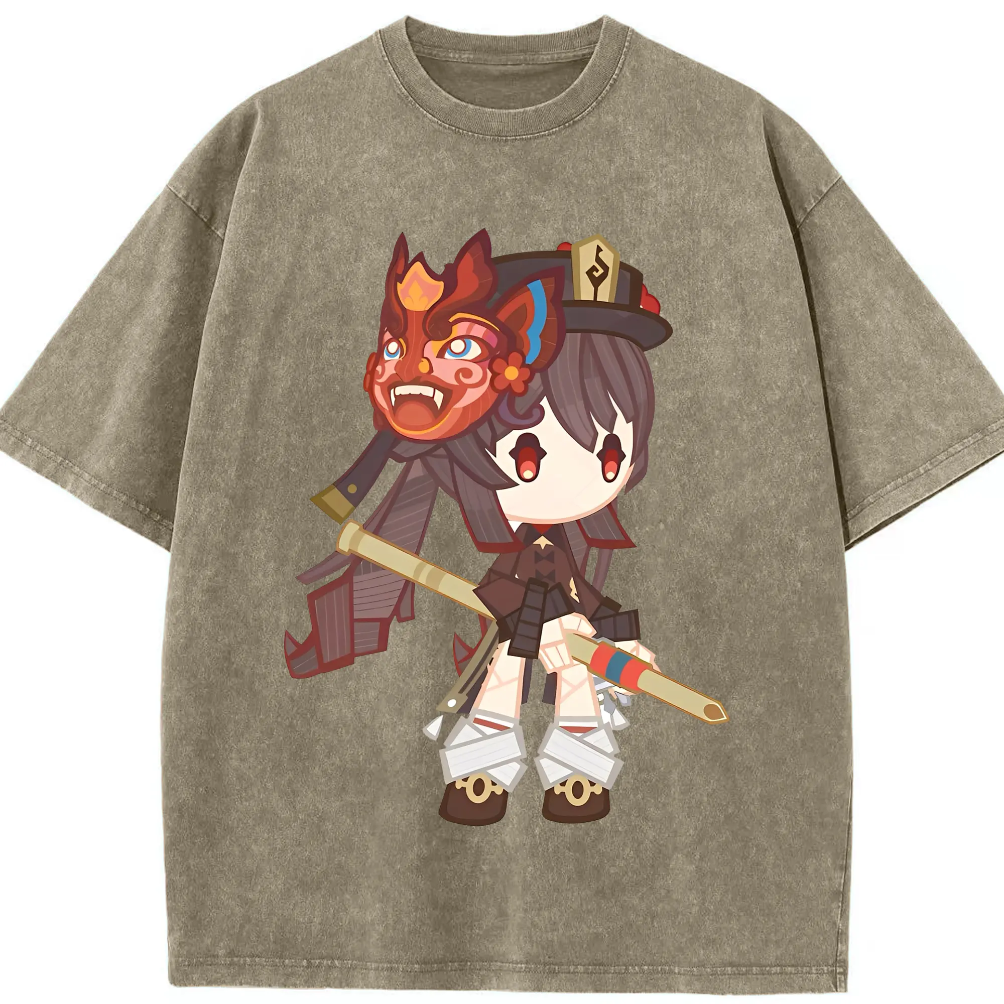 Genshin Impact 放浪者 Q版キャラクター 可愛いファングッズ - 綿100% ヴィンテージ風 半袖Tシャツ ・ フロントプリント ・ 柔らか肌触り ・ 通気性 快適 ・ スポーツ カジュアル 外出用