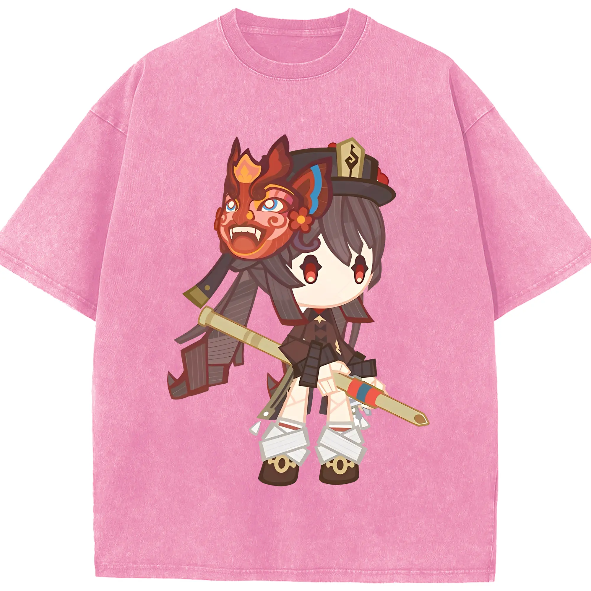 原神 Hu Tao 限定デザイン キュートキャラクター - 綿100% 半袖Tシャツ ・ フロントプリント ・ 快適 通気性 ・ 日常使い 散歩 スポーツ用
