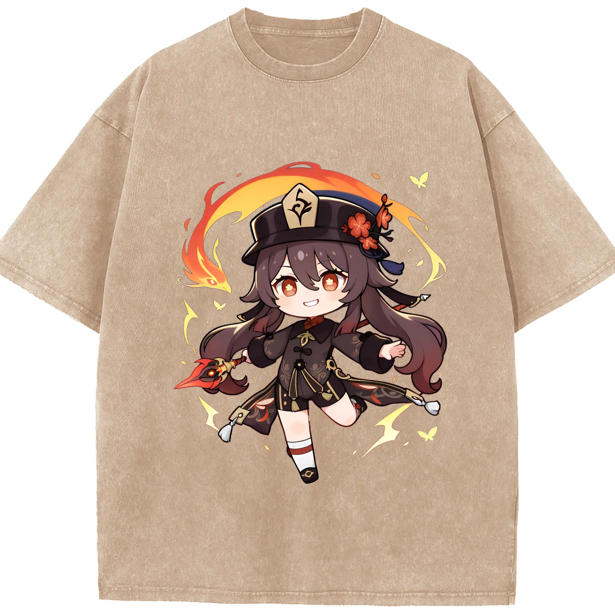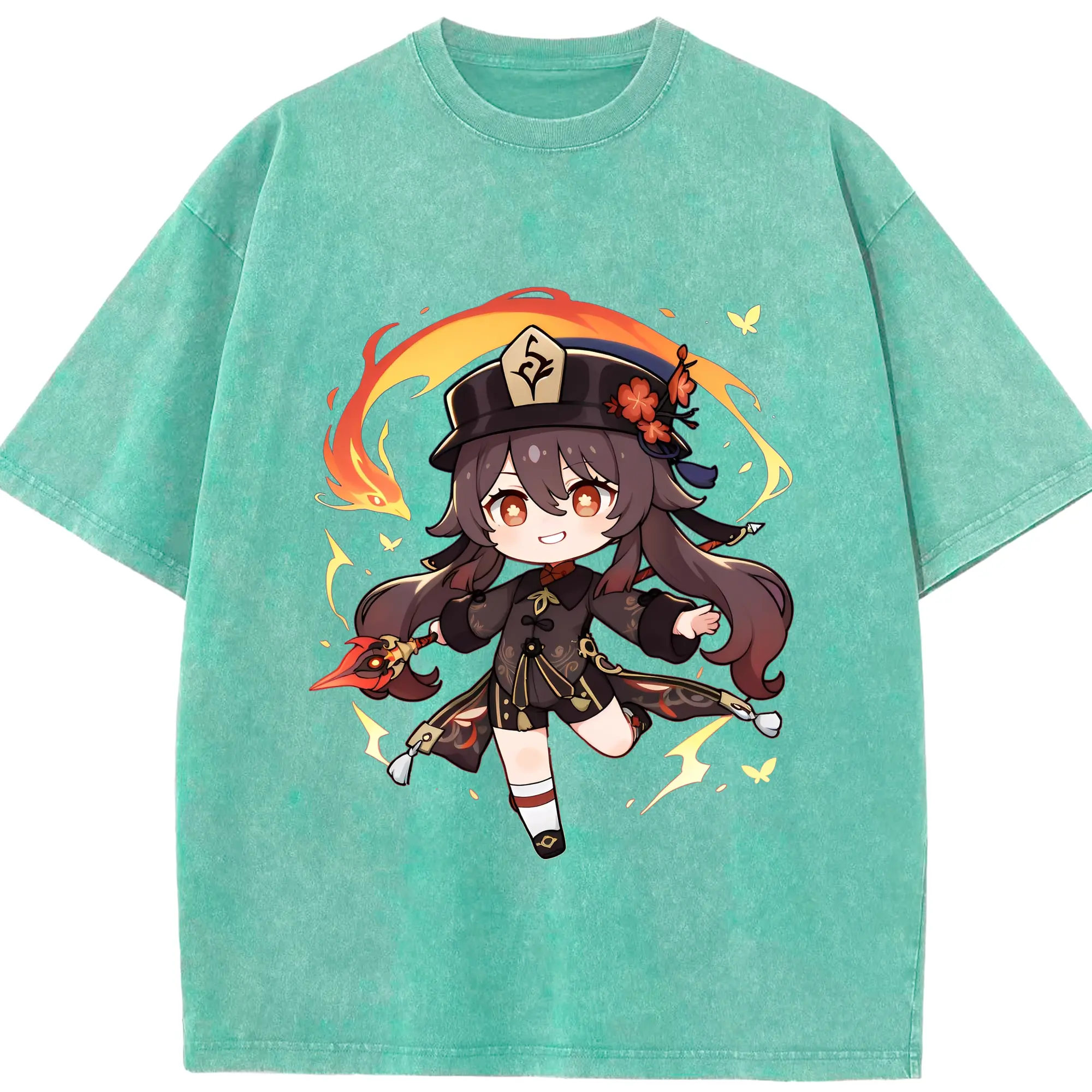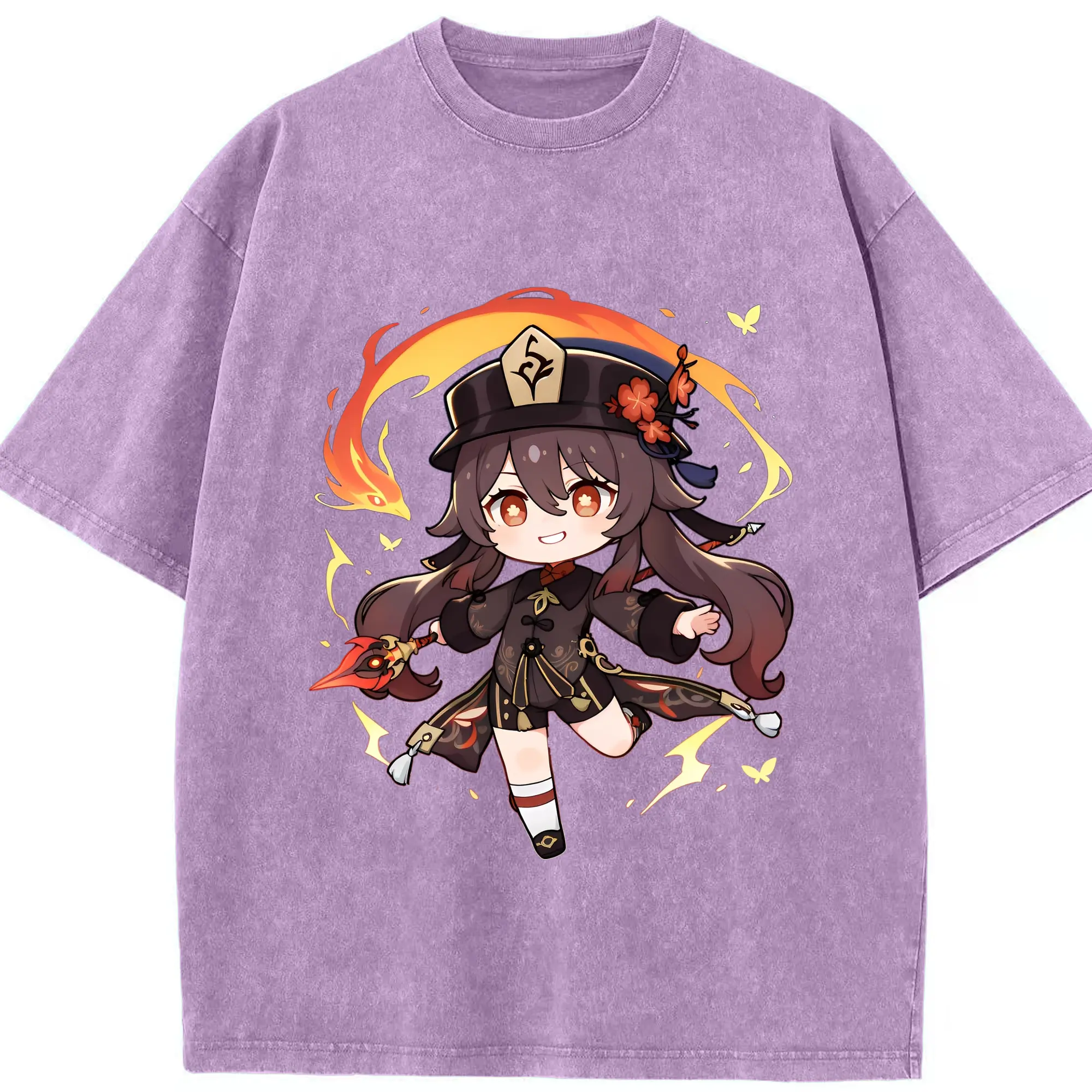 原神 Hu Tao 限定デザイン キュートキャラクター - 綿100% 半袖Tシャツ ・ フロントプリント ・ 快適 通気性 ・ 日常使い 散歩 スポーツ用