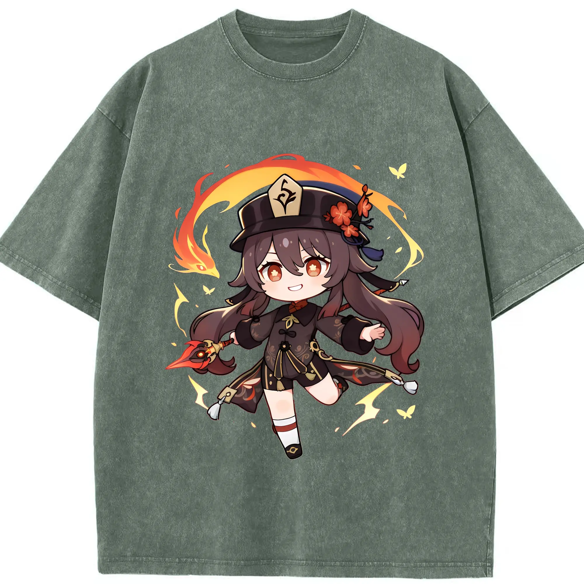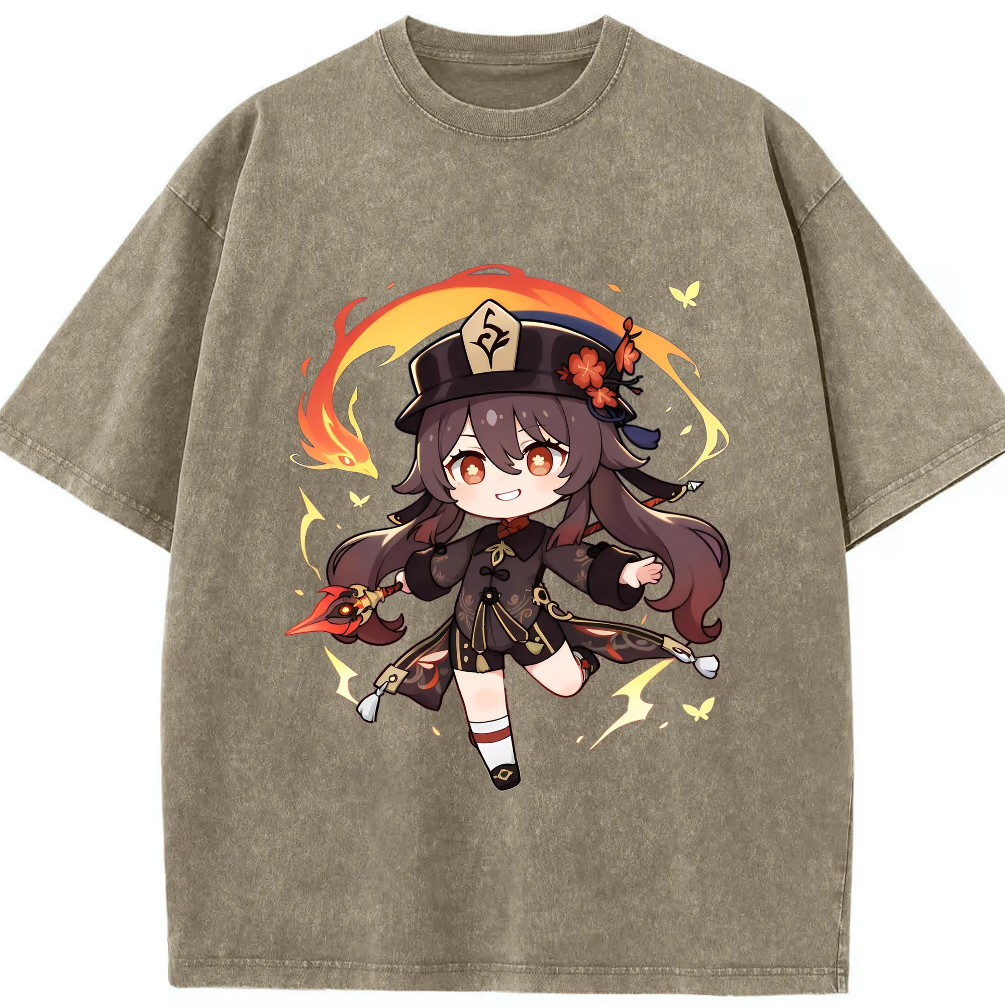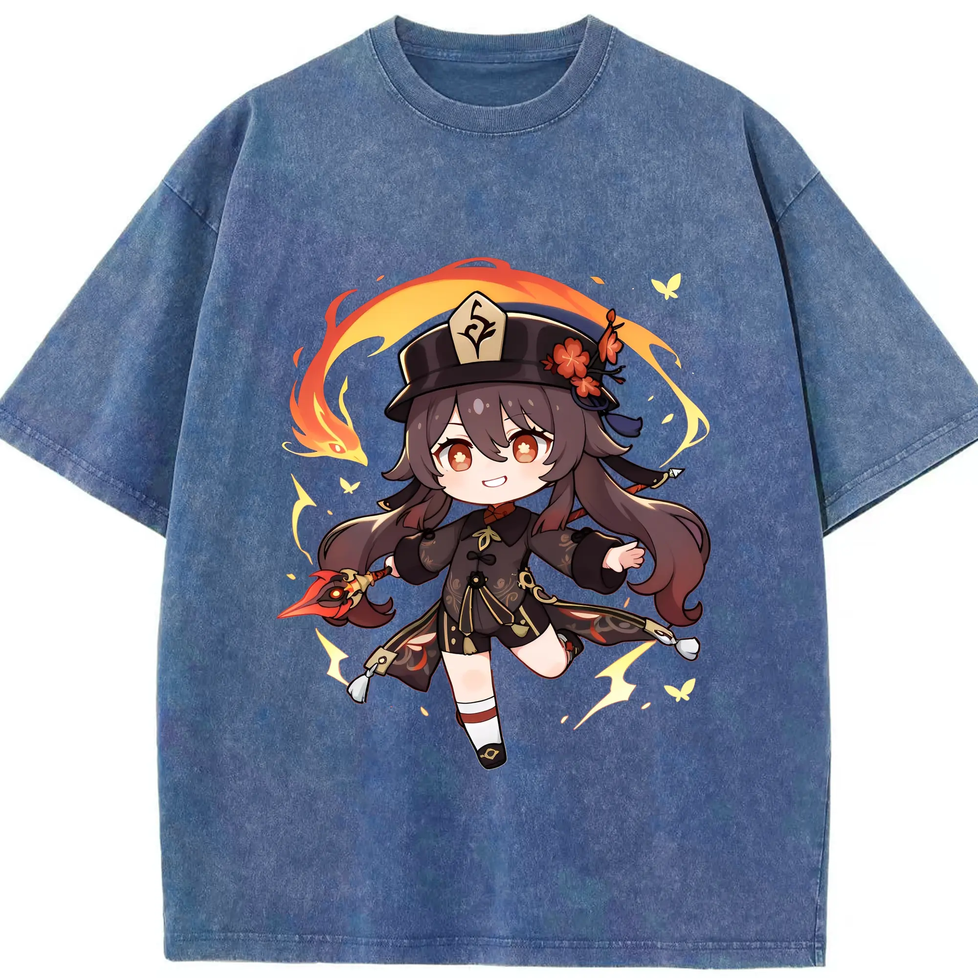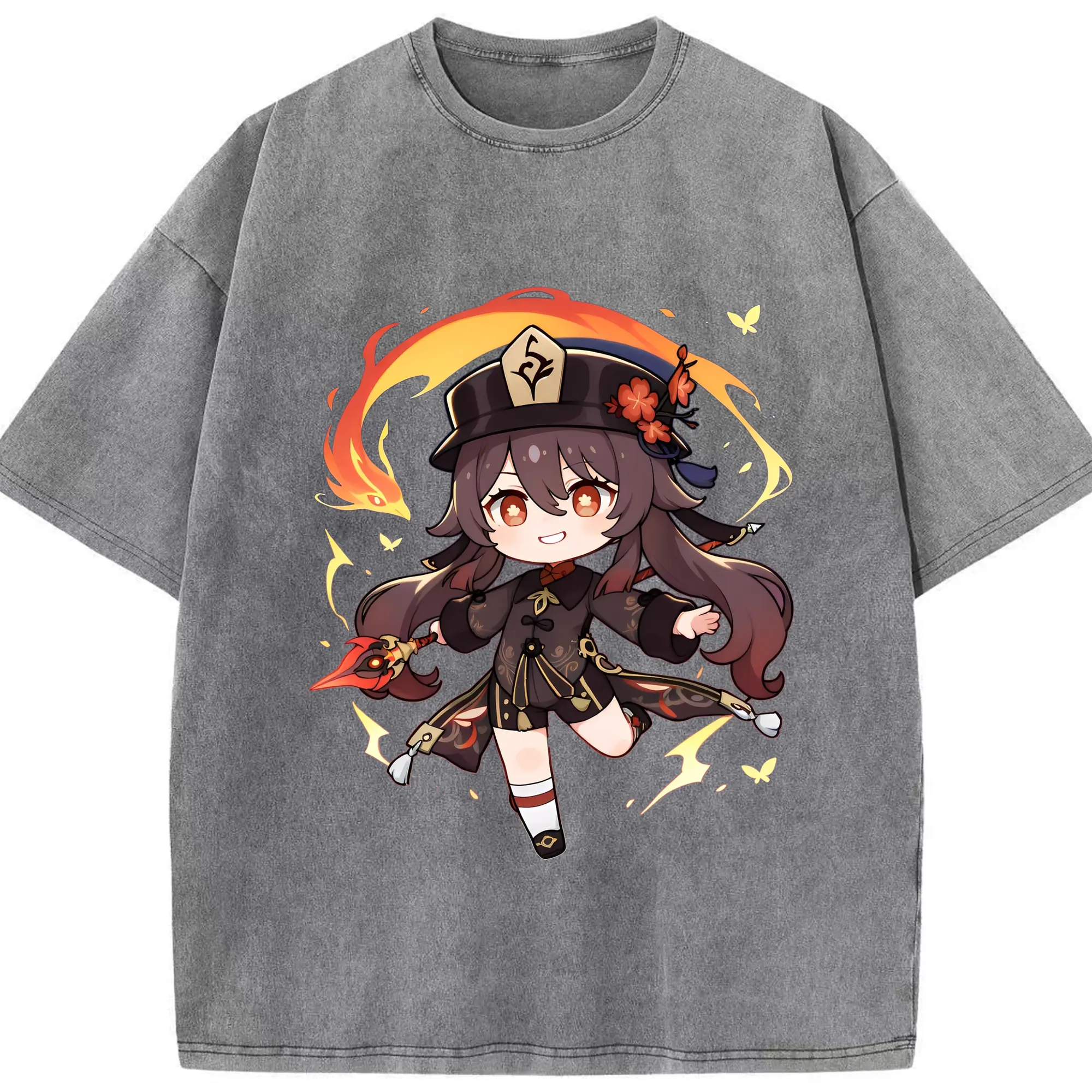原神 Hu Tao 限定デザイン キュートキャラクター - 綿100% 半袖Tシャツ ・ フロントプリント ・ 快適 通気性 ・ 日常使い 散歩 スポーツ用