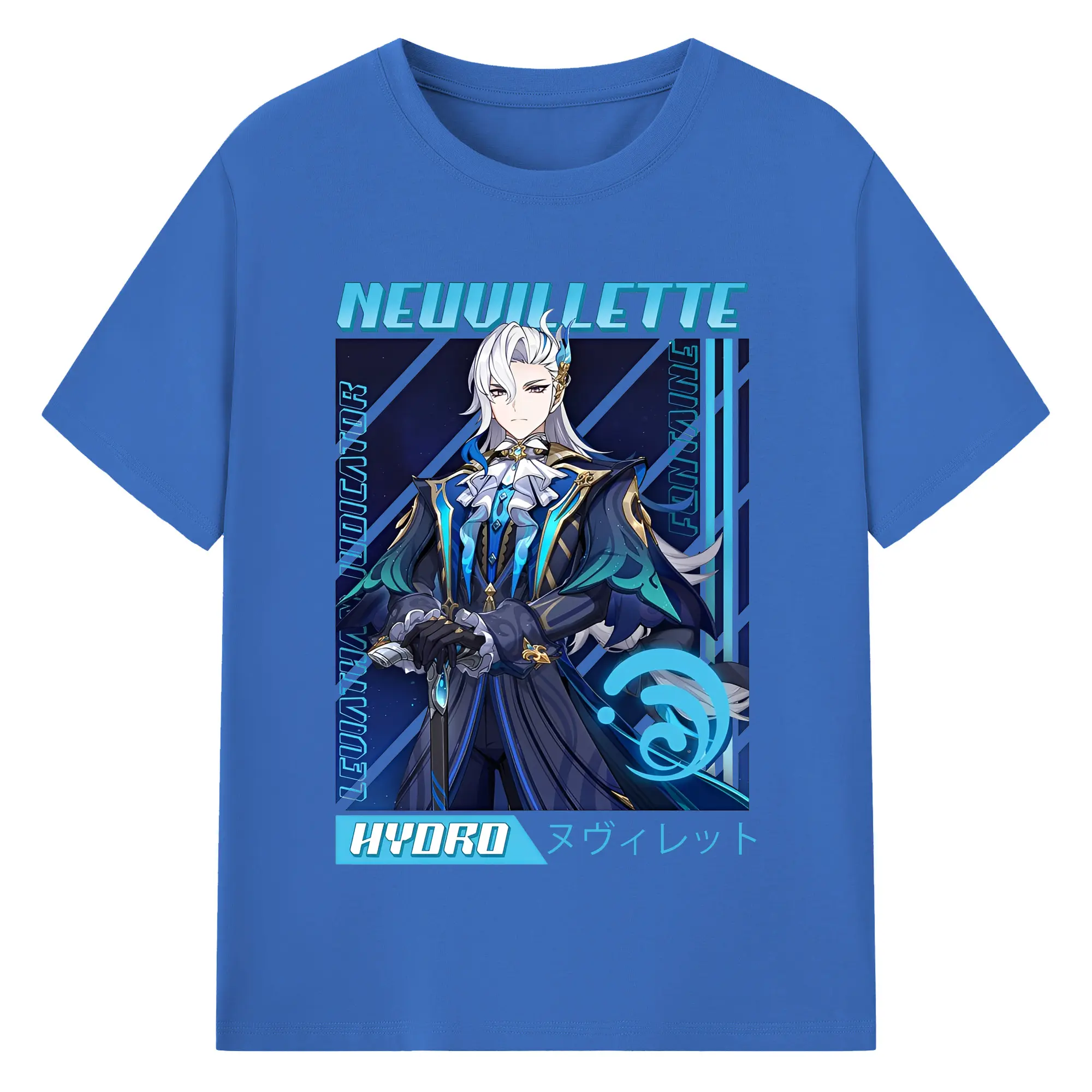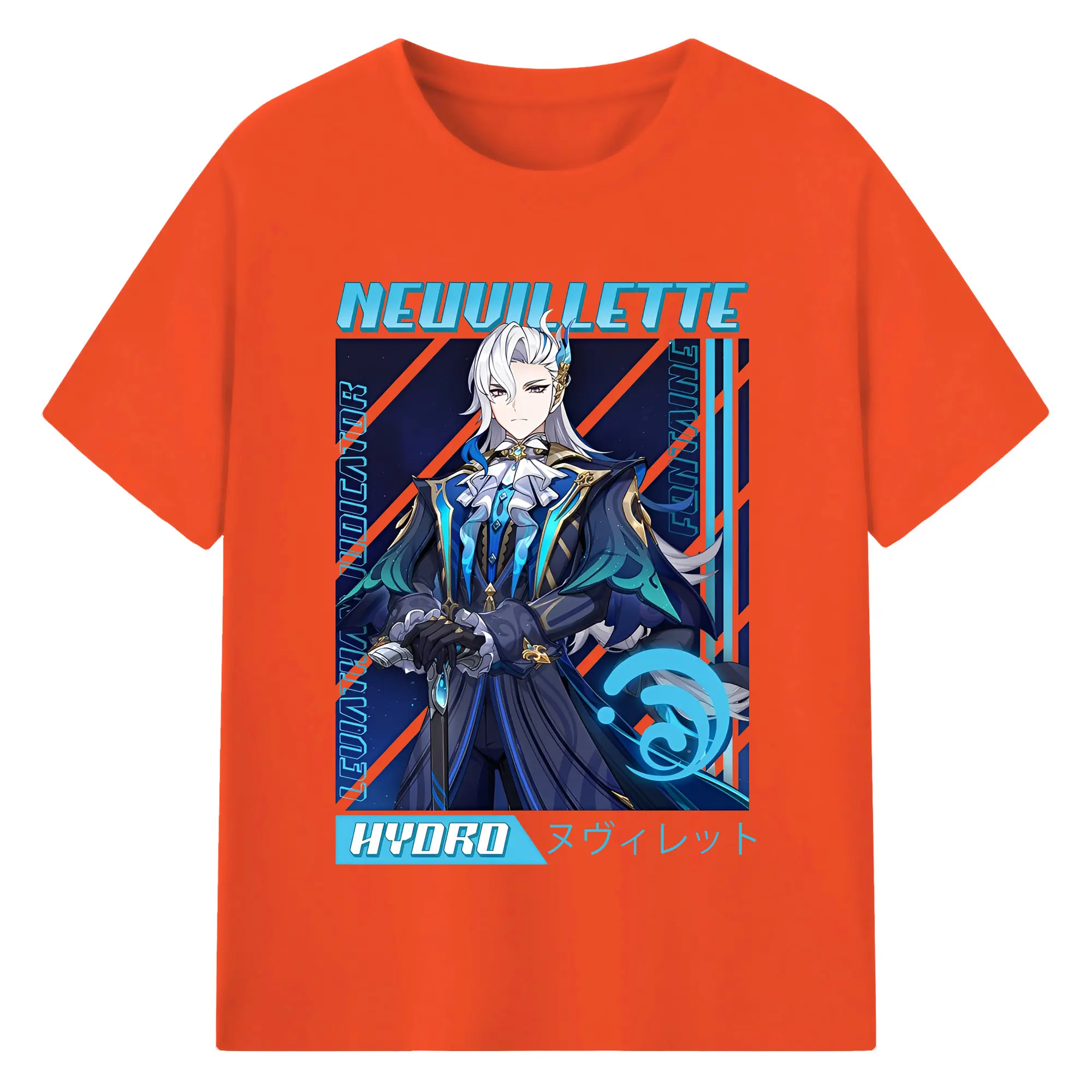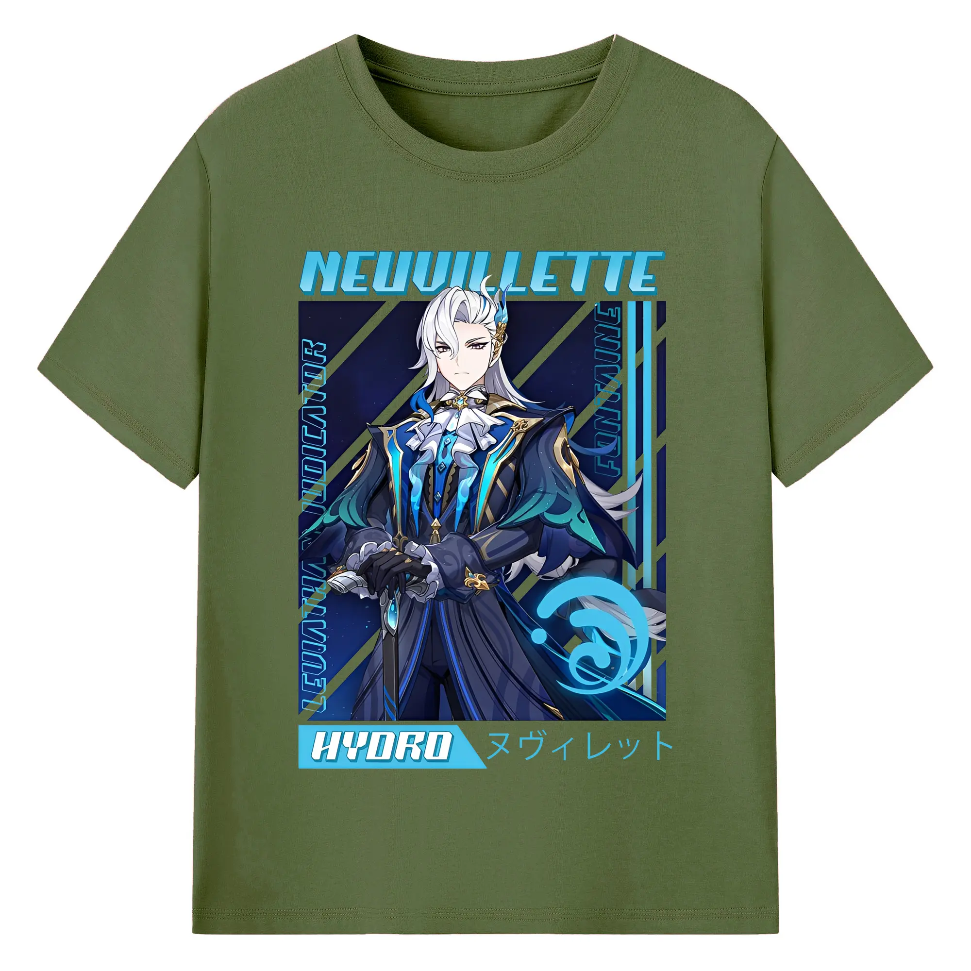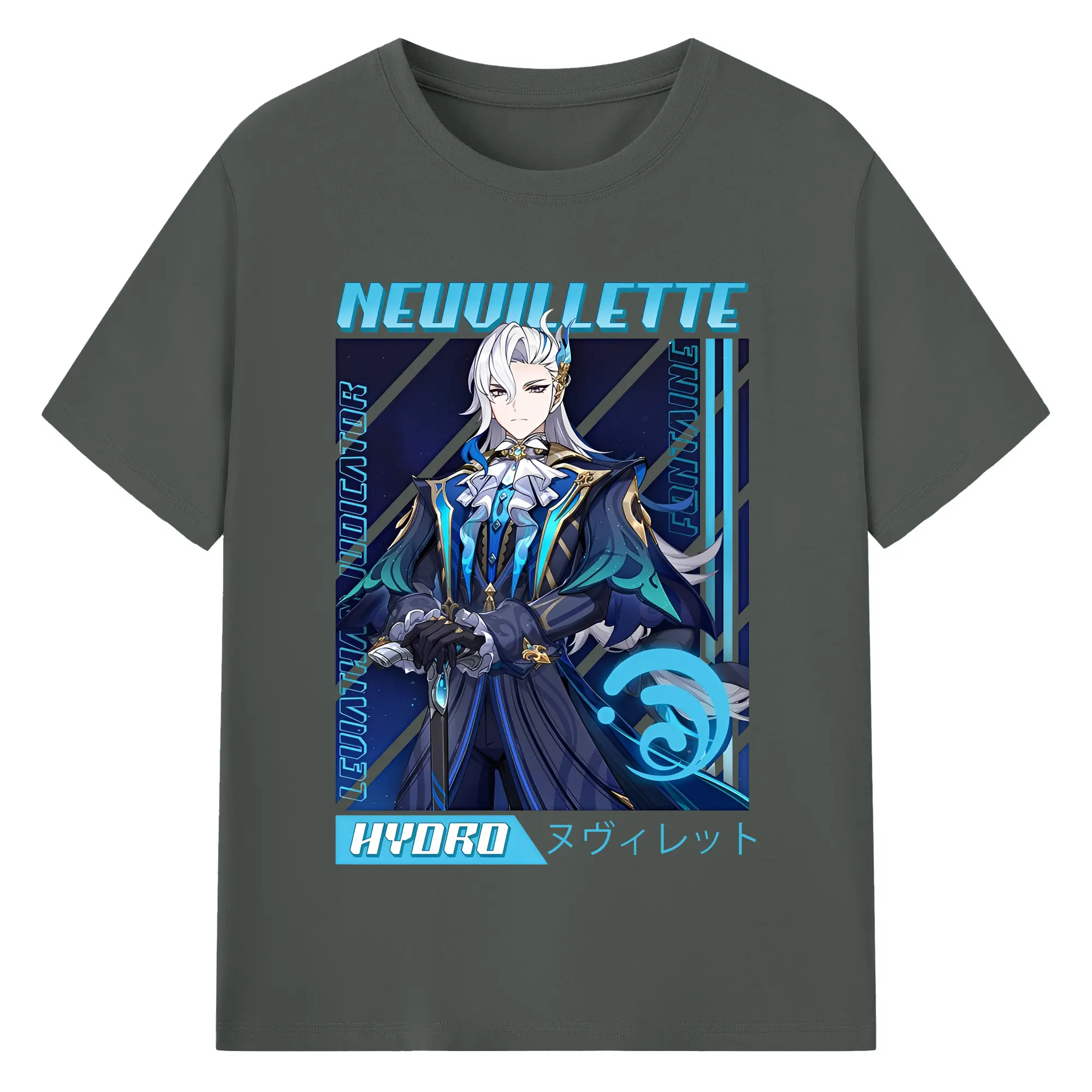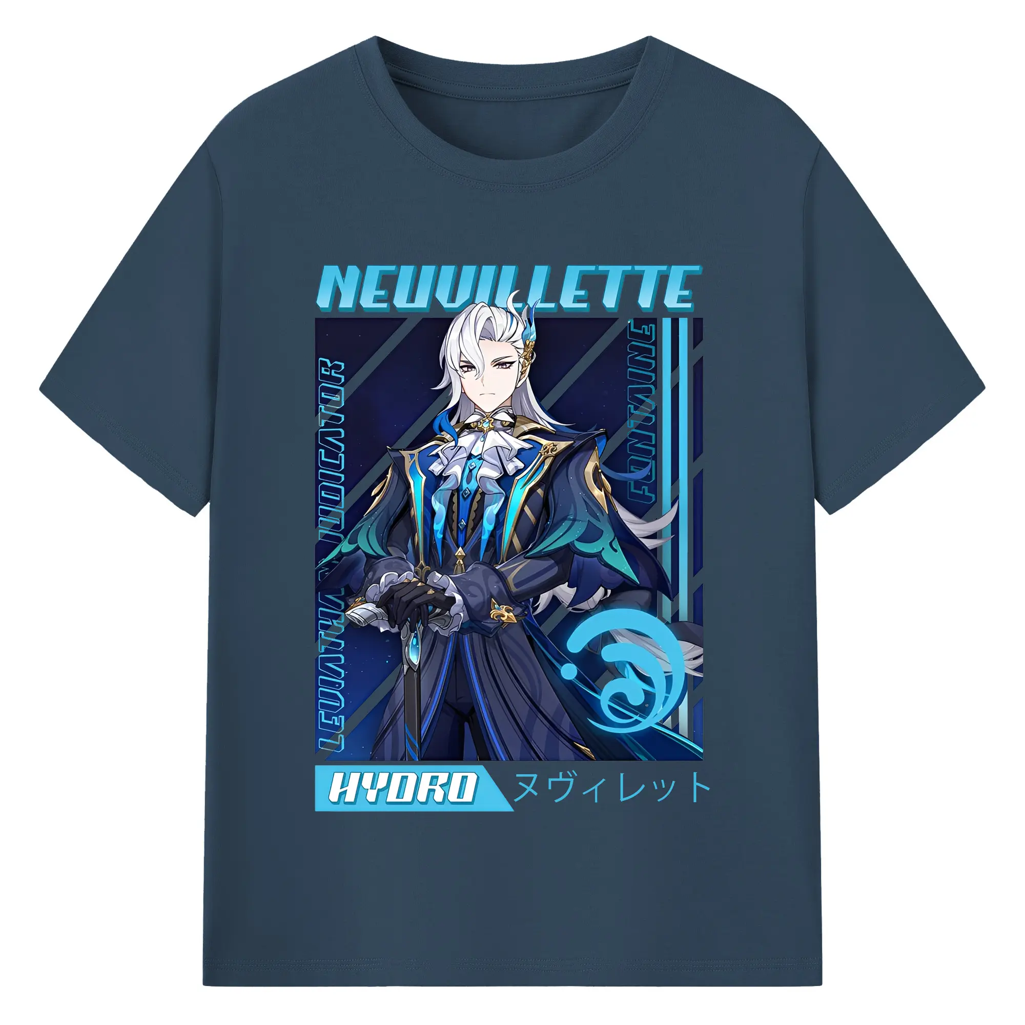 原神 Neuvillette ファン必見!カッコいいデザイン - 綿100% ヴィンテージ風 半袖Tシャツ ・ フロントプリント ・ 柔らか肌触り ・ 通気性 快適 ・ スポーツ カジュアル 外出用