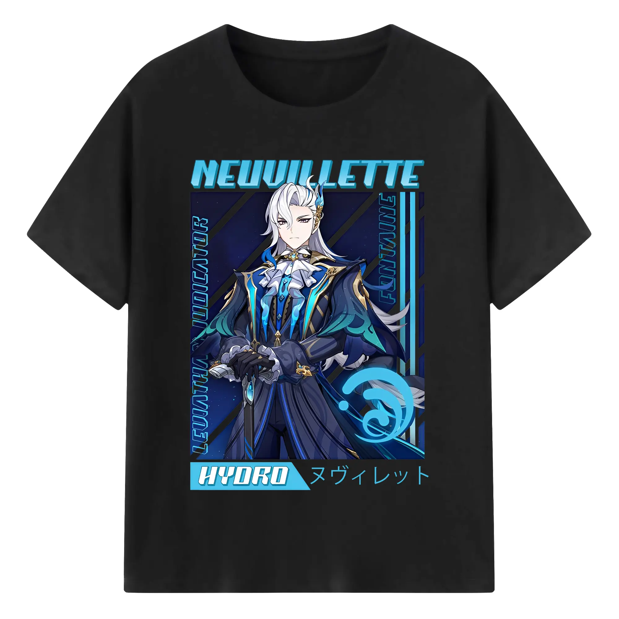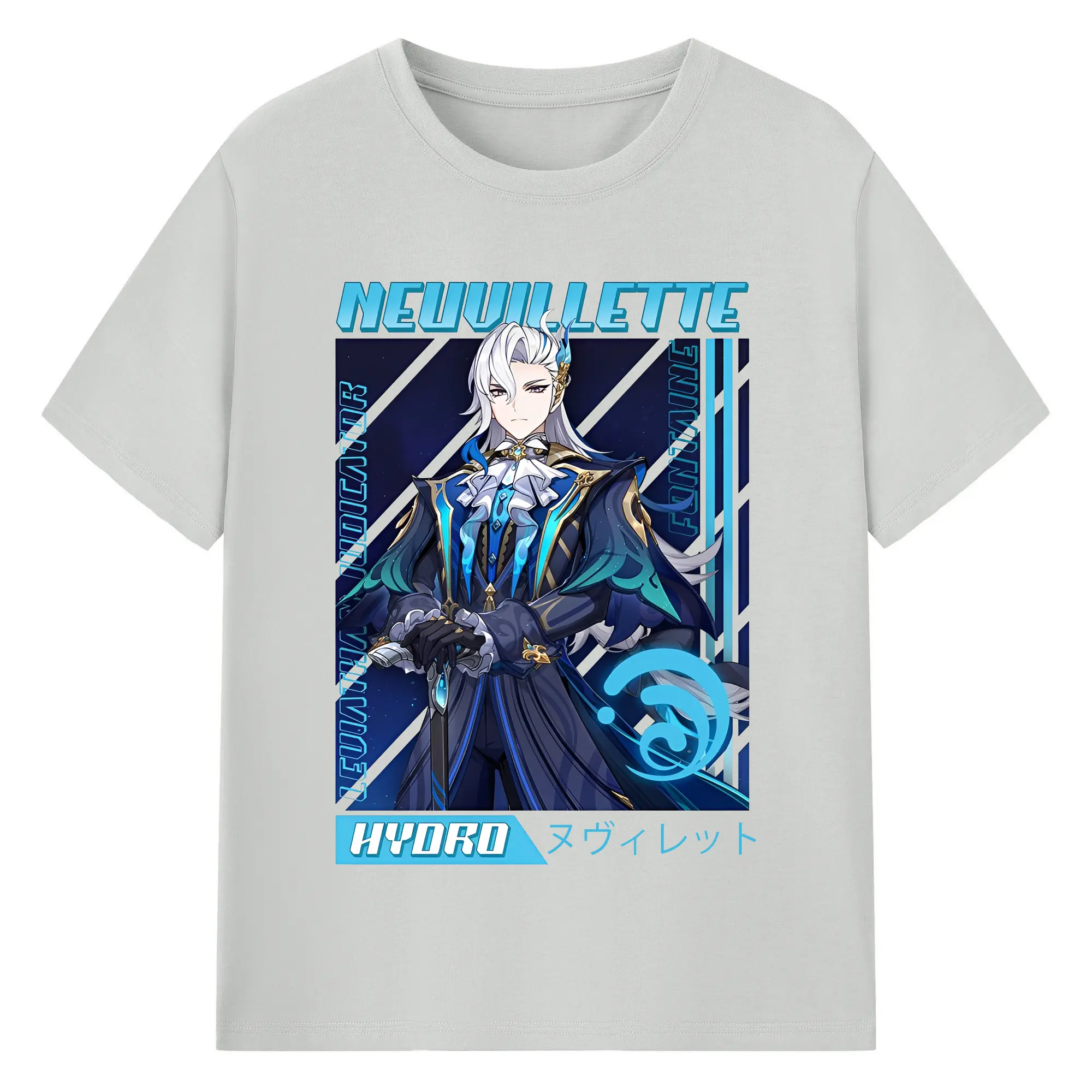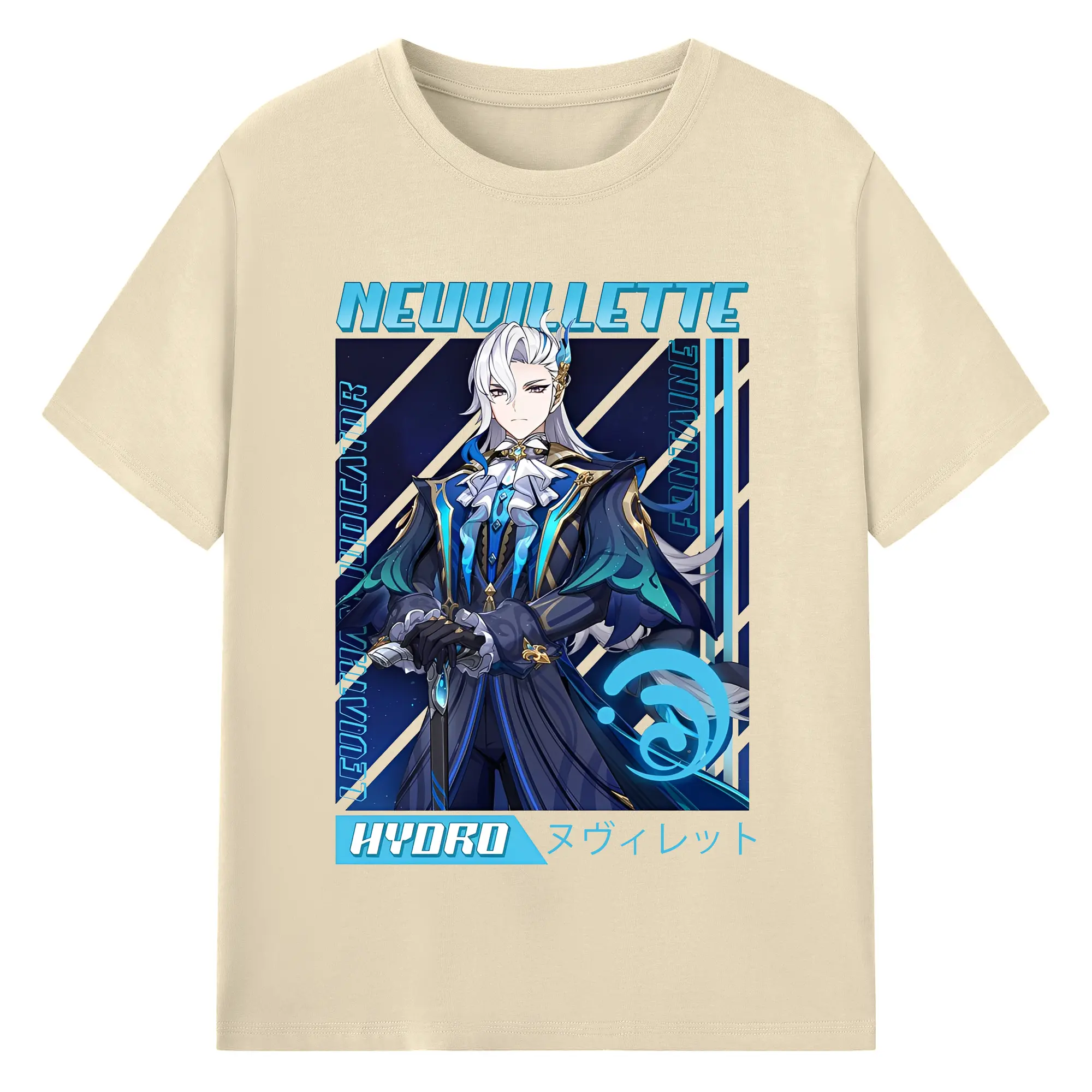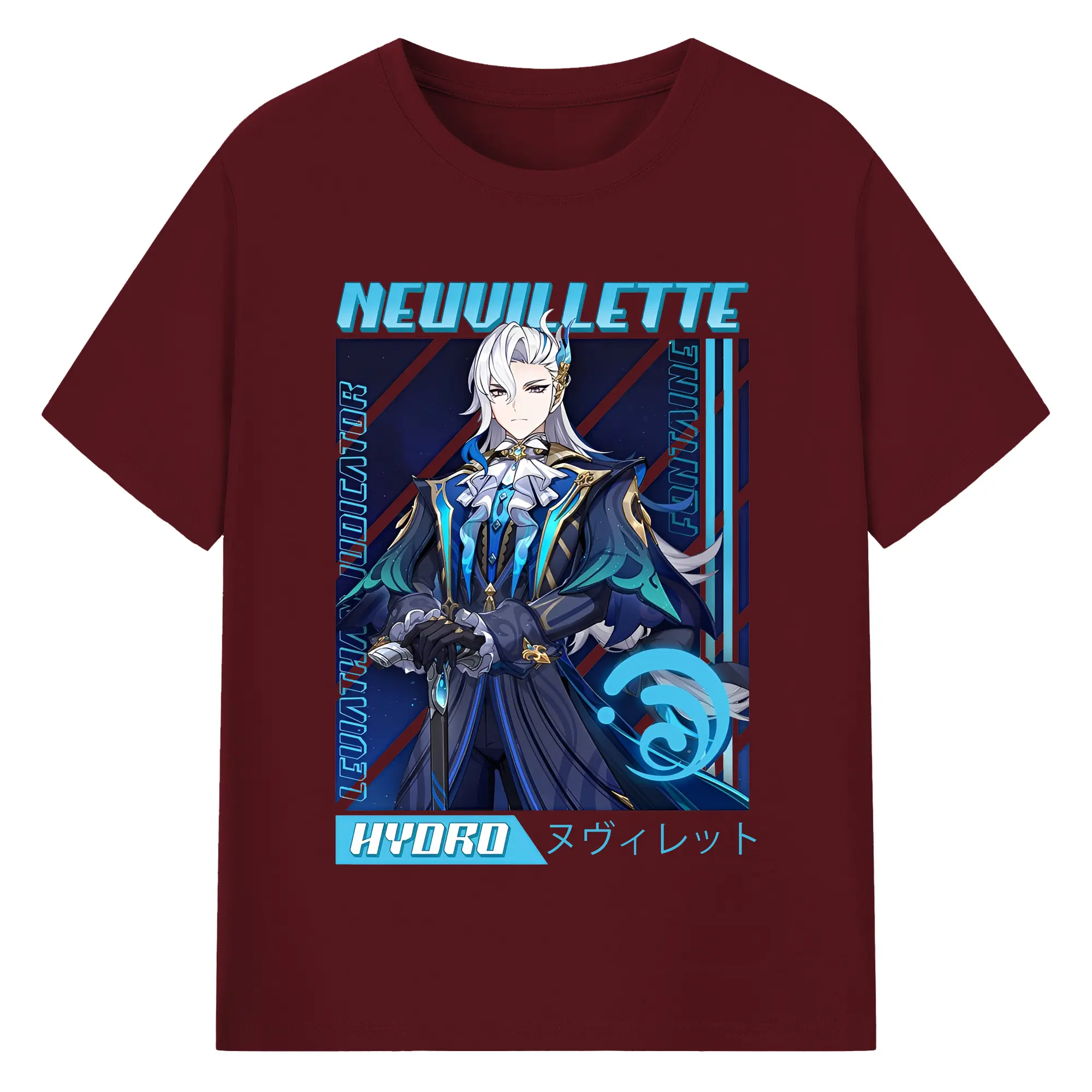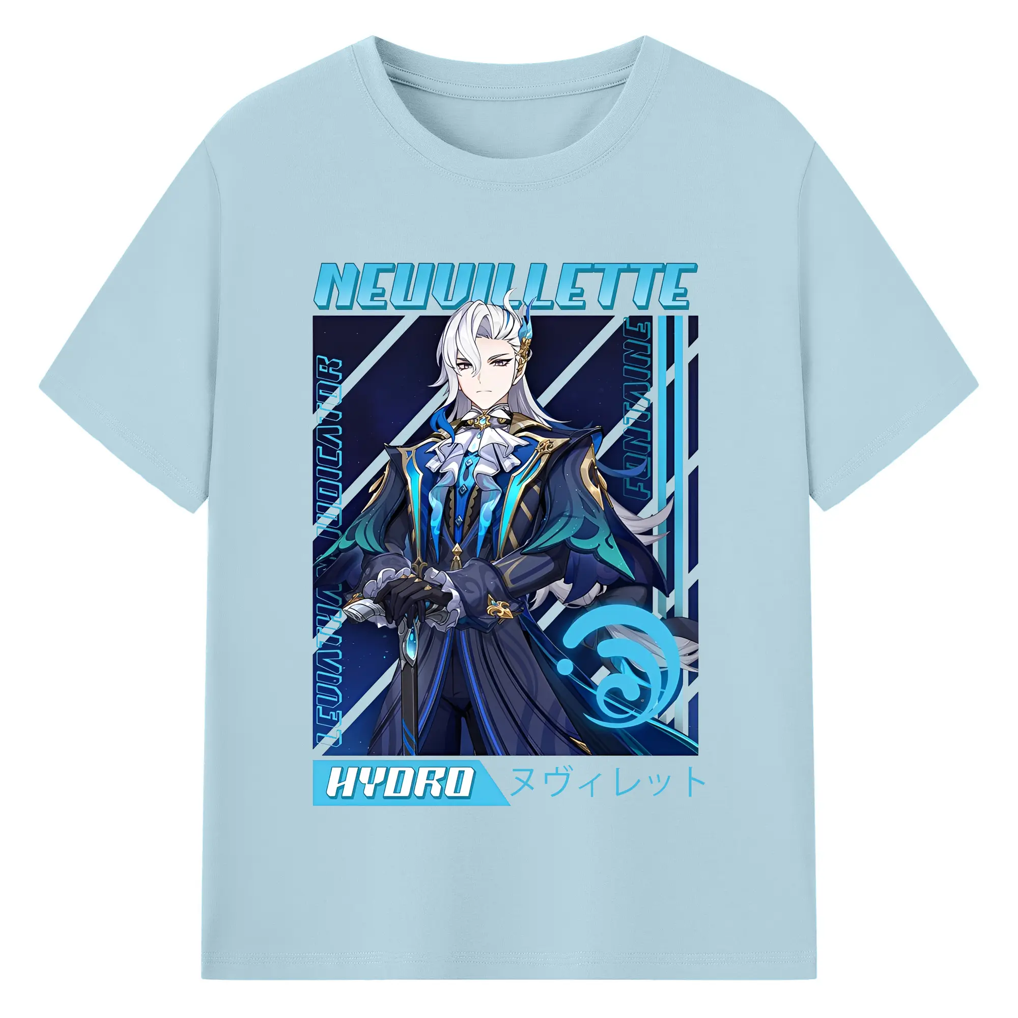 原神 Neuvillette ファン必見!カッコいいデザイン - 綿100% ヴィンテージ風 半袖Tシャツ ・ フロントプリント ・ 柔らか肌触り ・ 通気性 快適 ・ スポーツ カジュアル 外出用