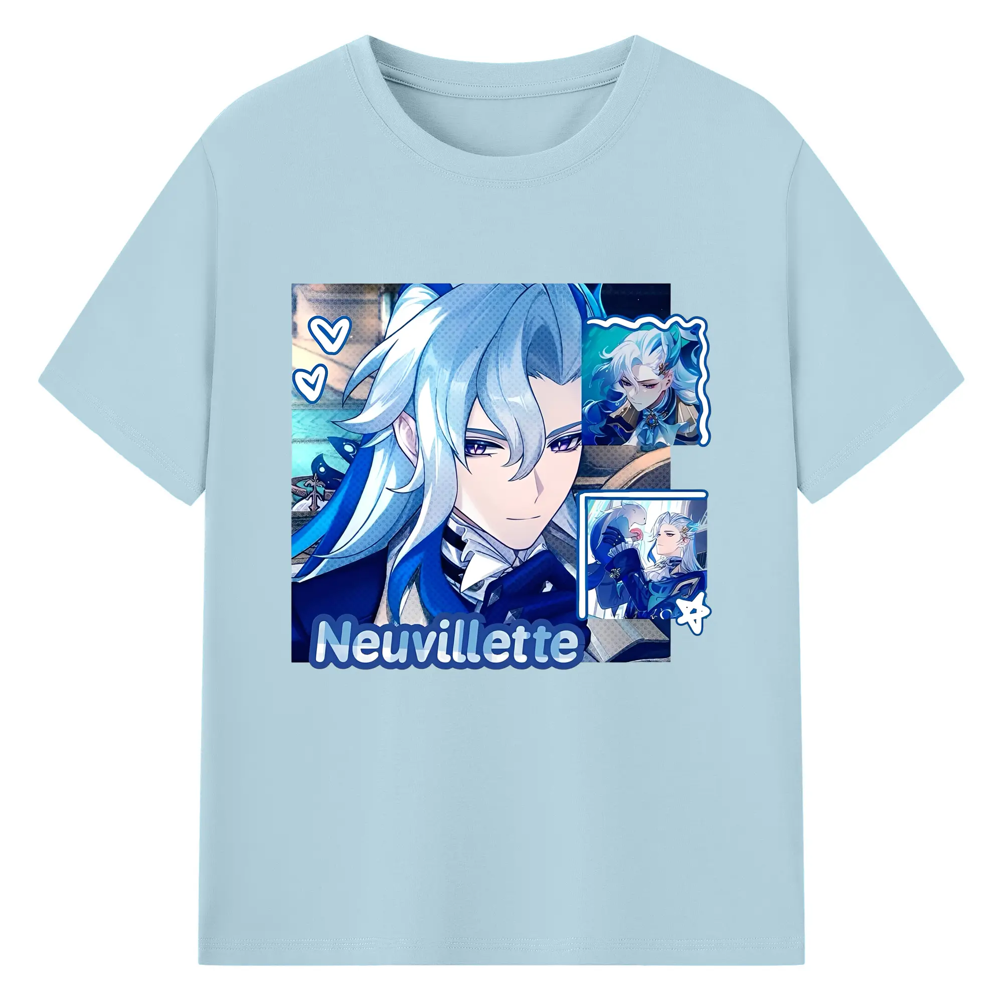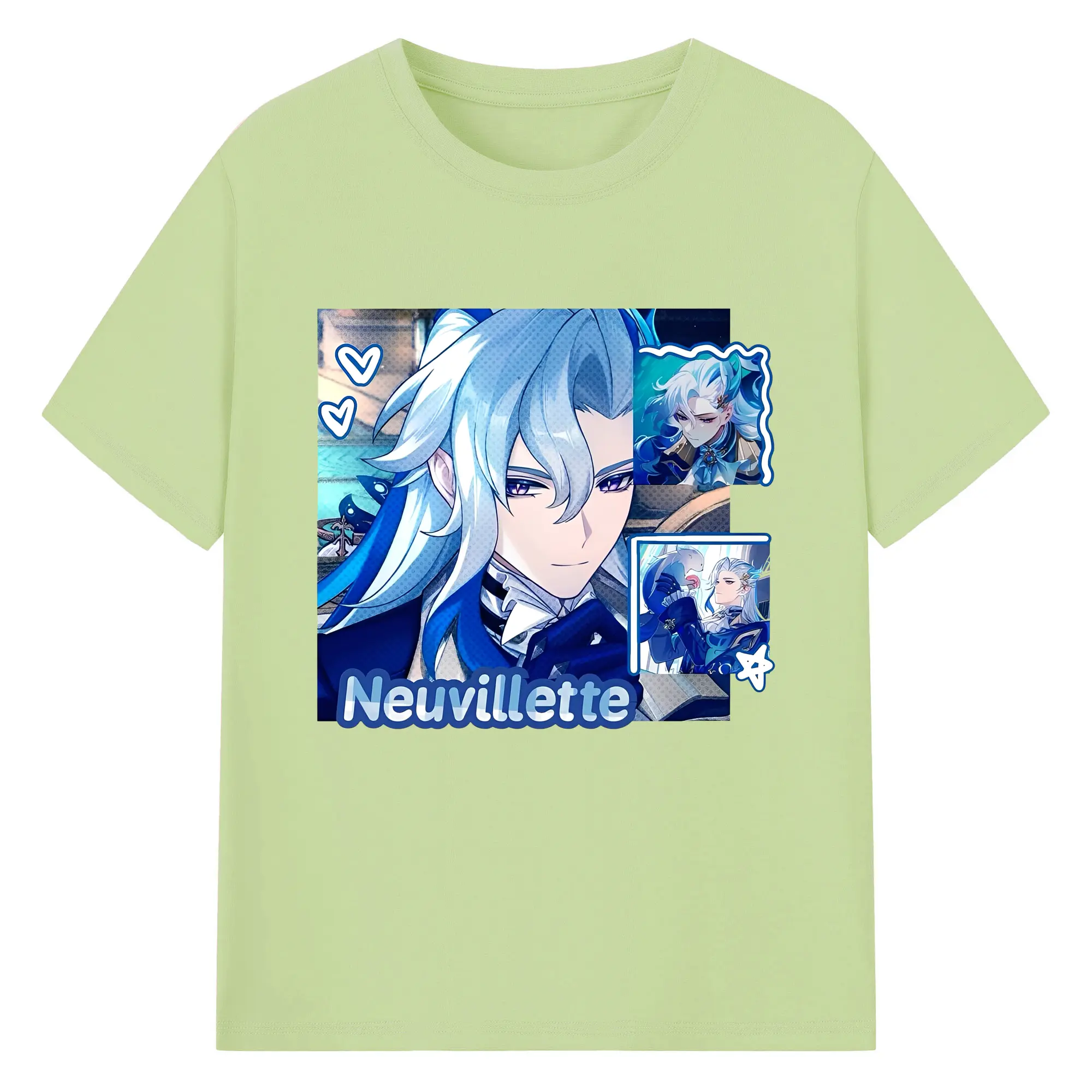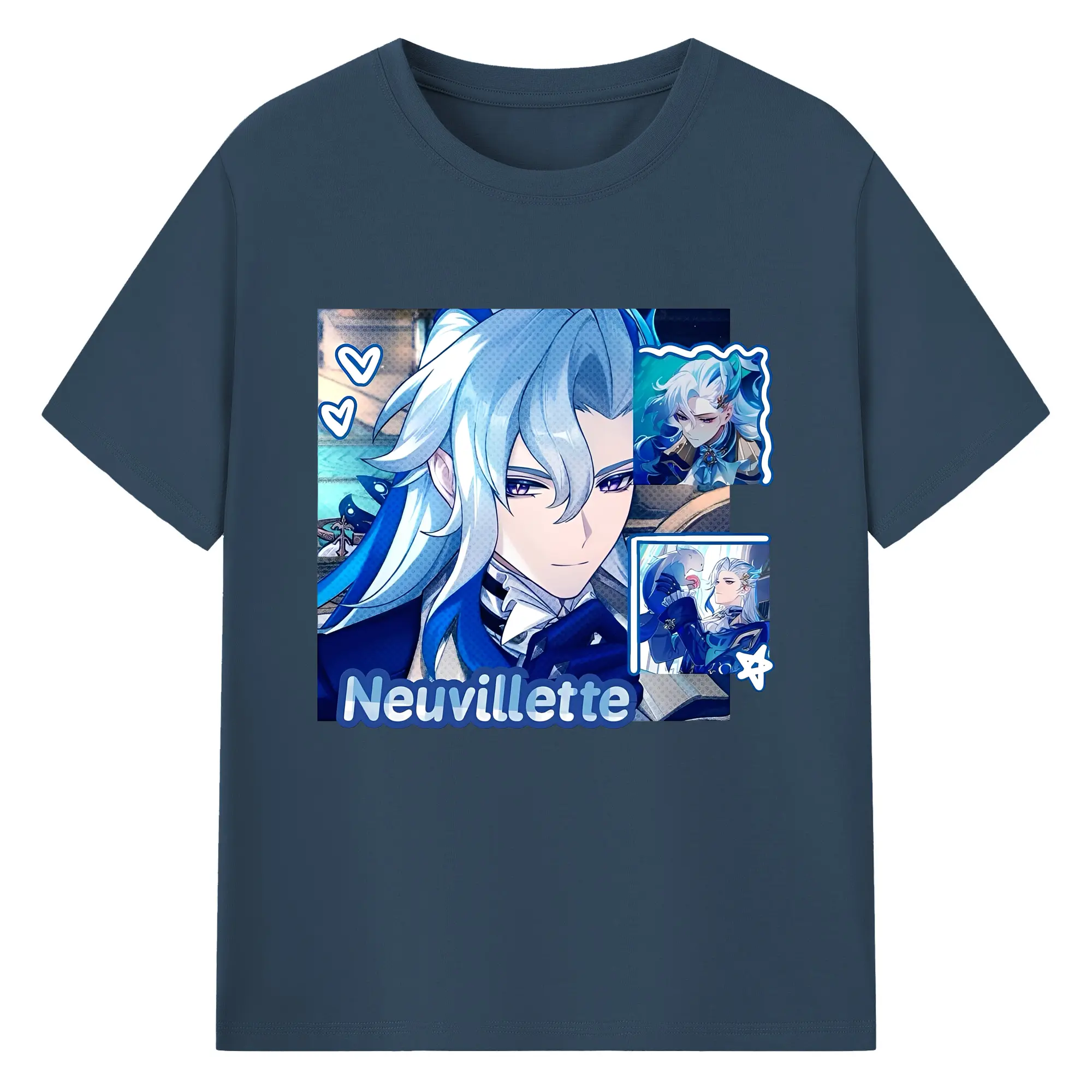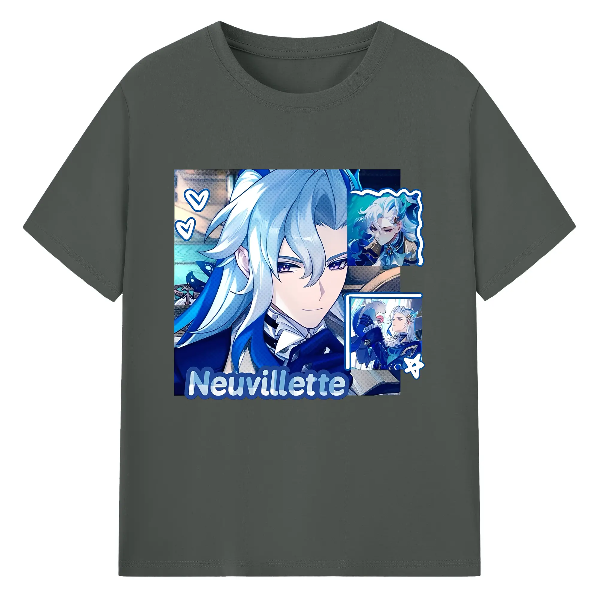 原神 Neuvillette 限定デザイン キャラクター - 綿100% ヴィンテージ風 半袖Tシャツ ・ フロントプリント ・ 柔らか肌触り ・ 通気性 快適 ・ スポーツ カジュアル 外出用