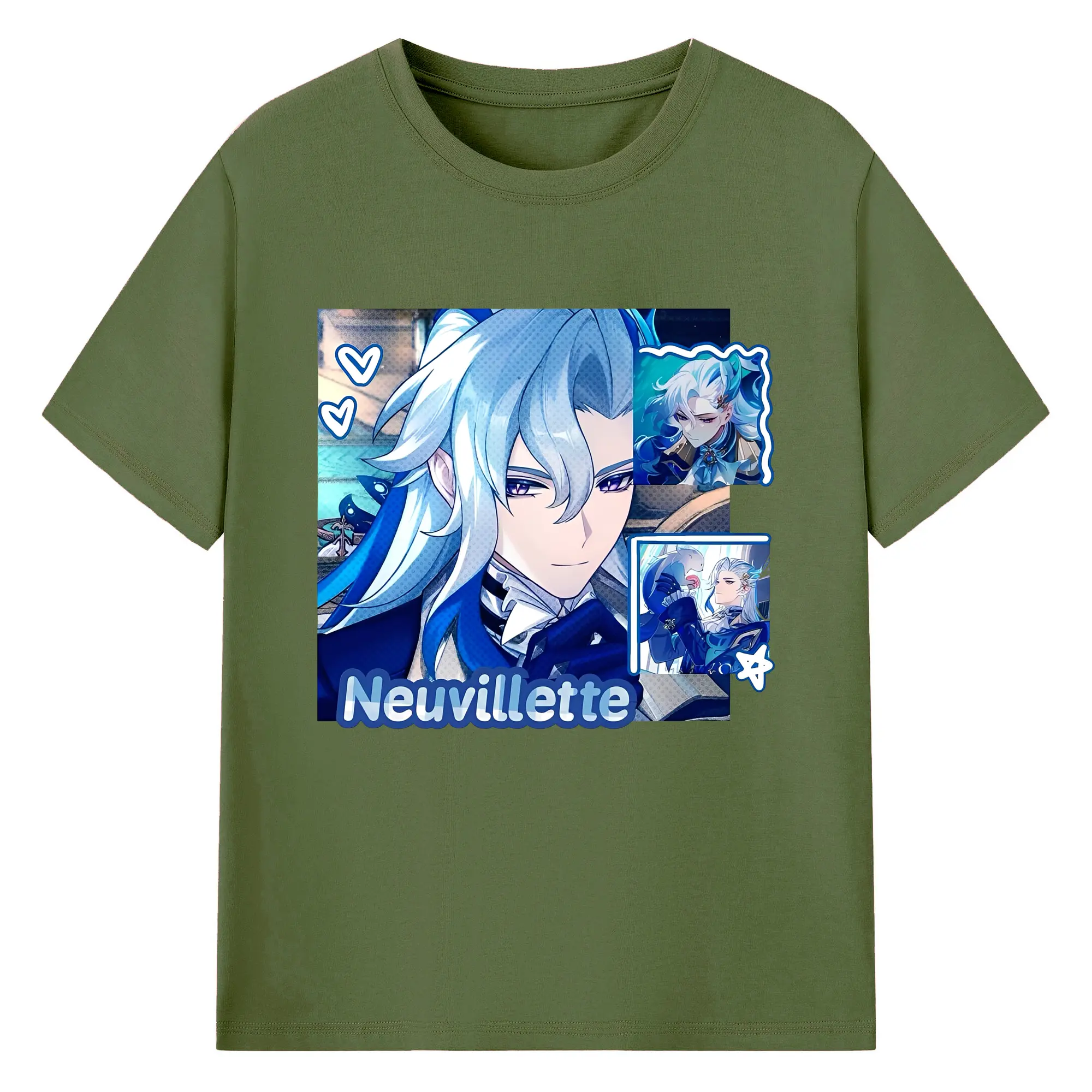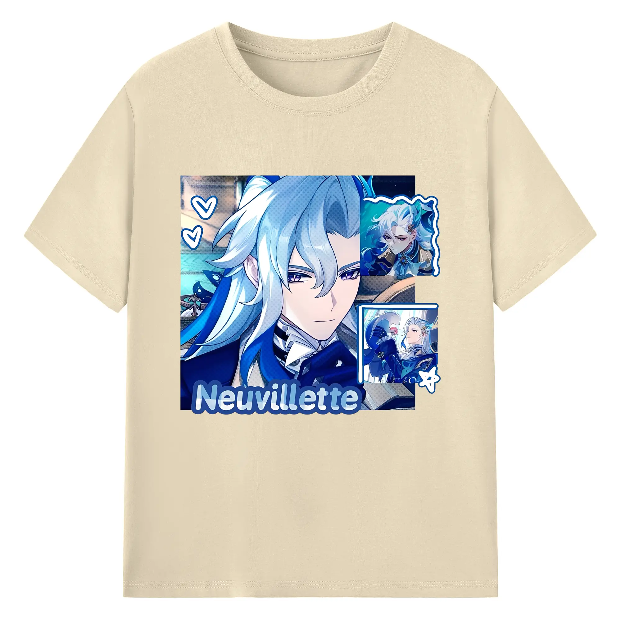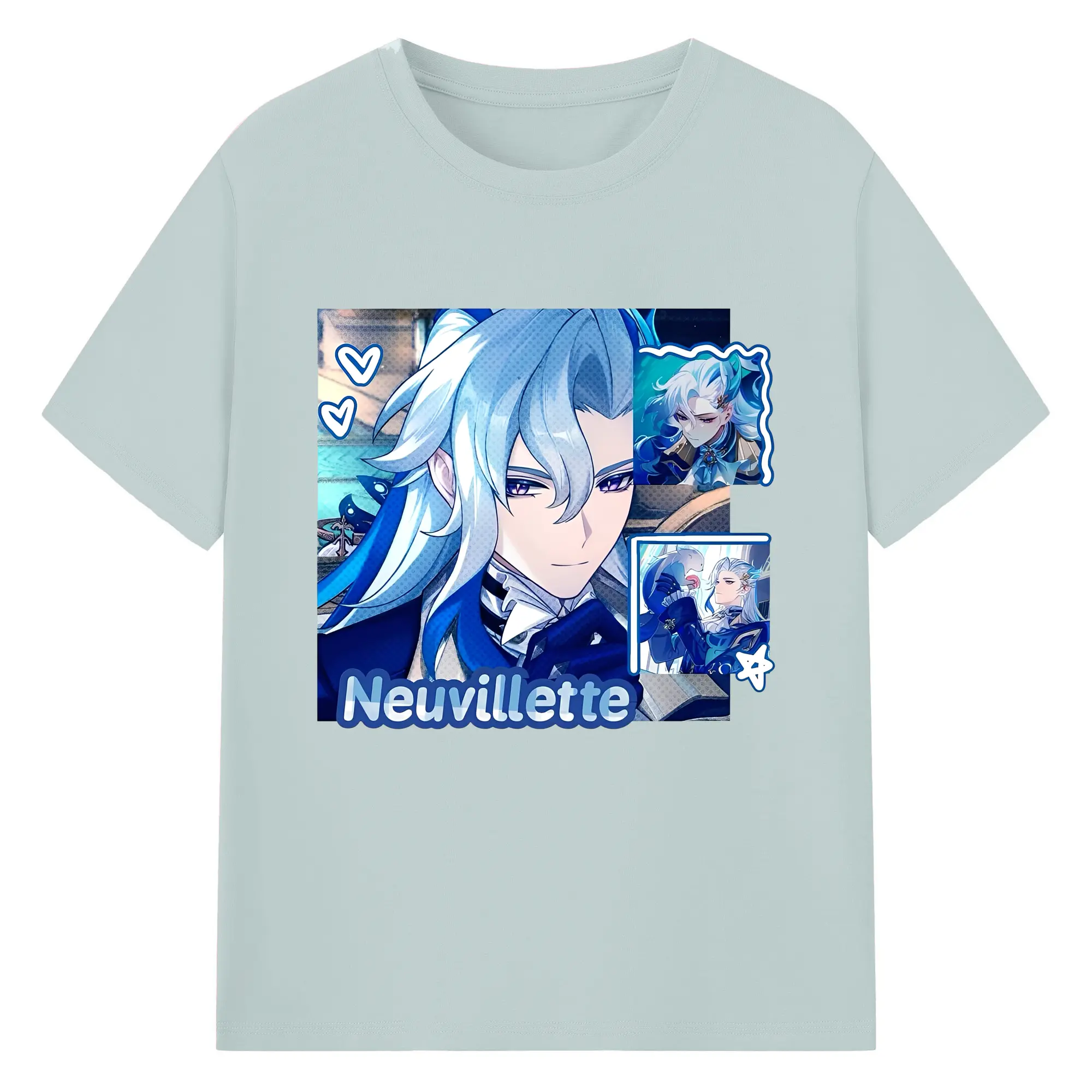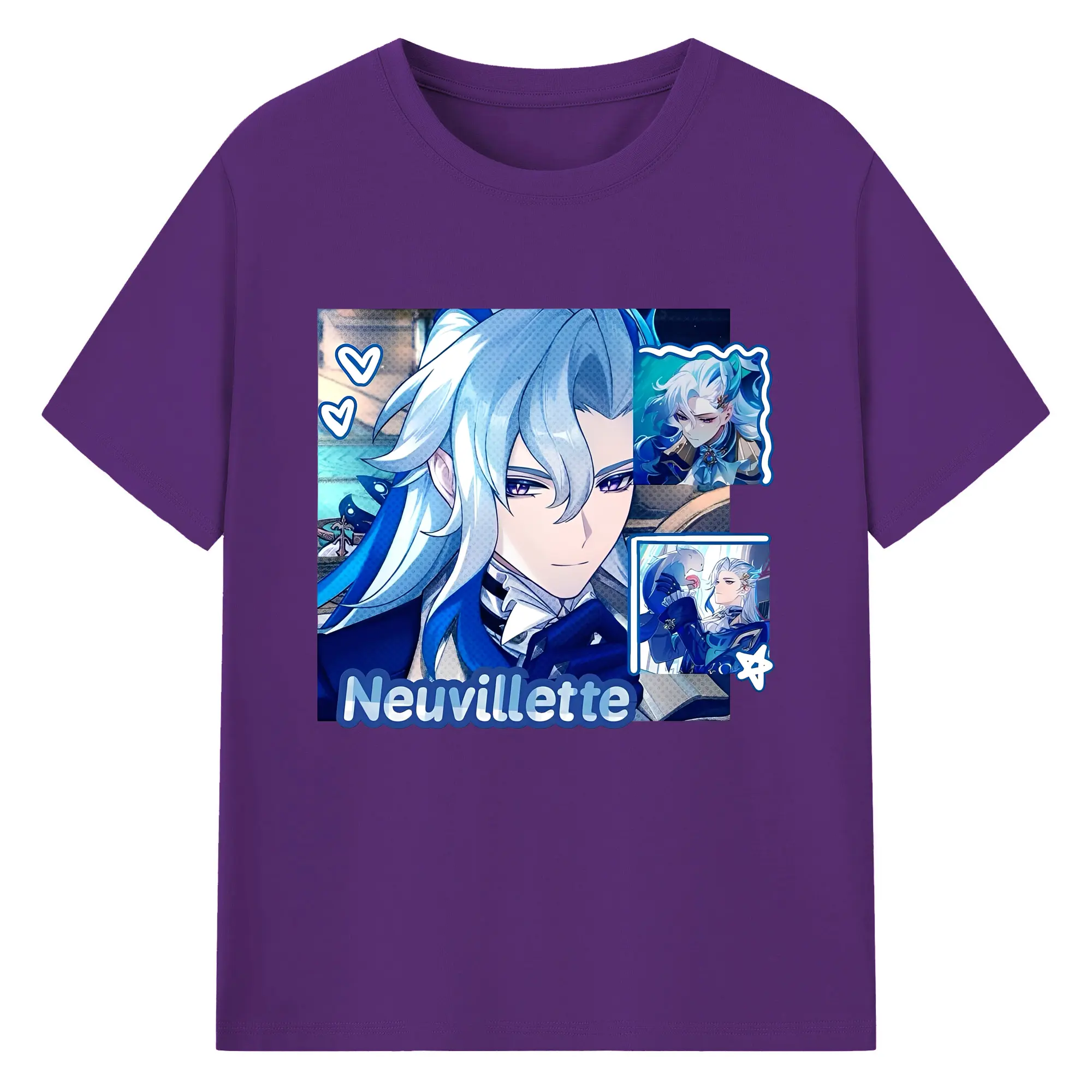 原神 Neuvillette 限定デザイン キャラクター - 綿100% ヴィンテージ風 半袖Tシャツ ・ フロントプリント ・ 柔らか肌触り ・ 通気性 快適 ・ スポーツ カジュアル 外出用