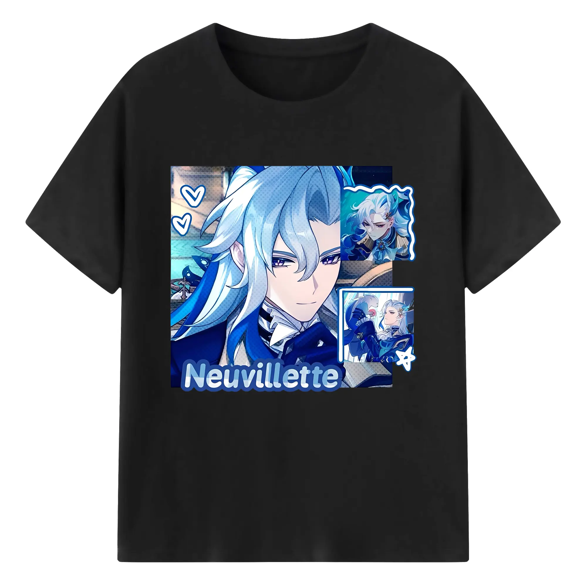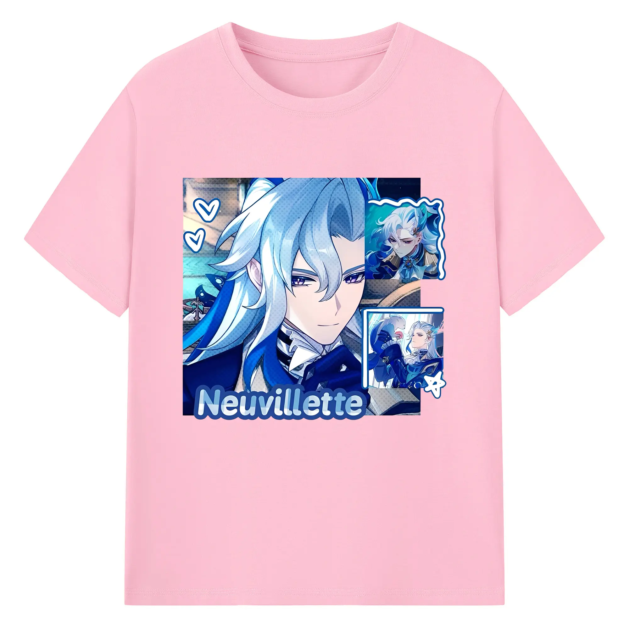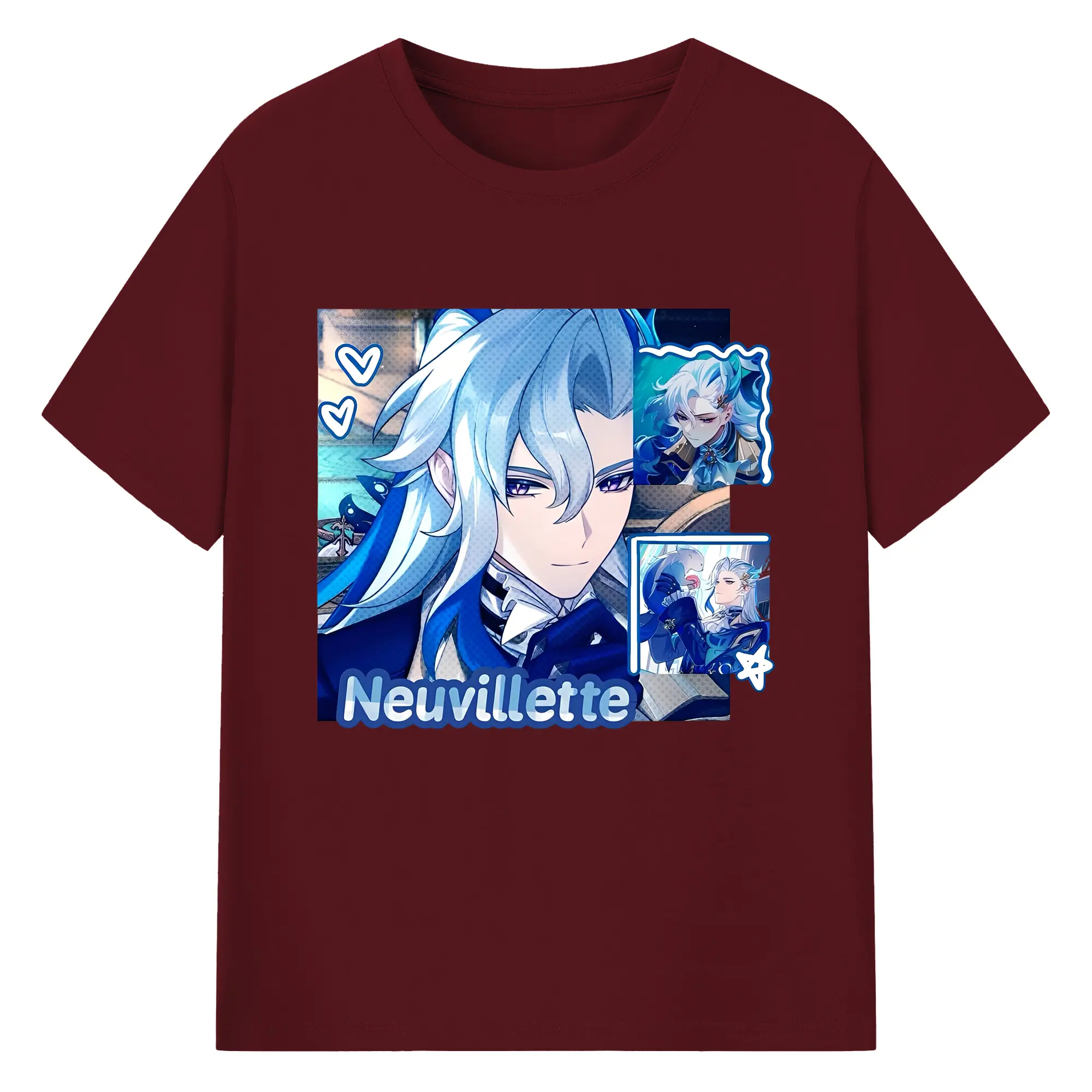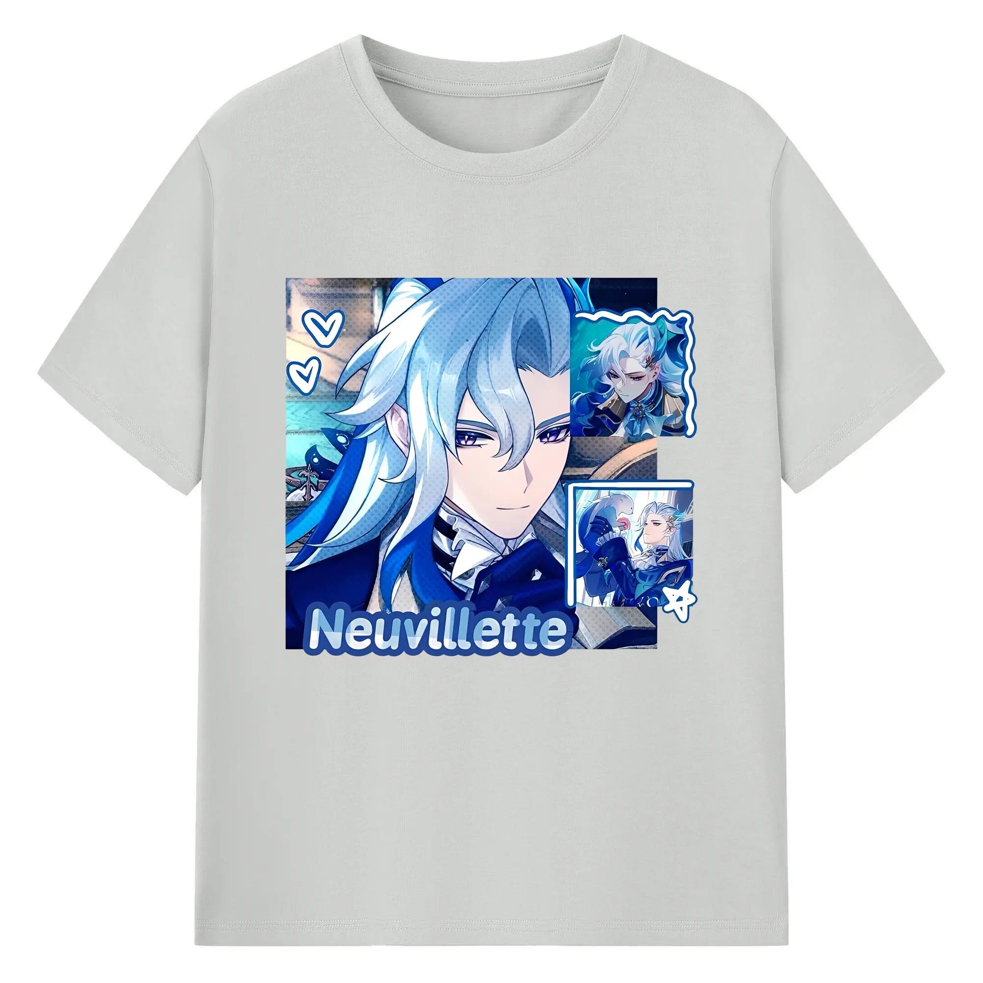 原神 Neuvillette 限定デザイン キャラクター - 綿100% ヴィンテージ風 半袖Tシャツ ・ フロントプリント ・ 柔らか肌触り ・ 通気性 快適 ・ スポーツ カジュアル 外出用